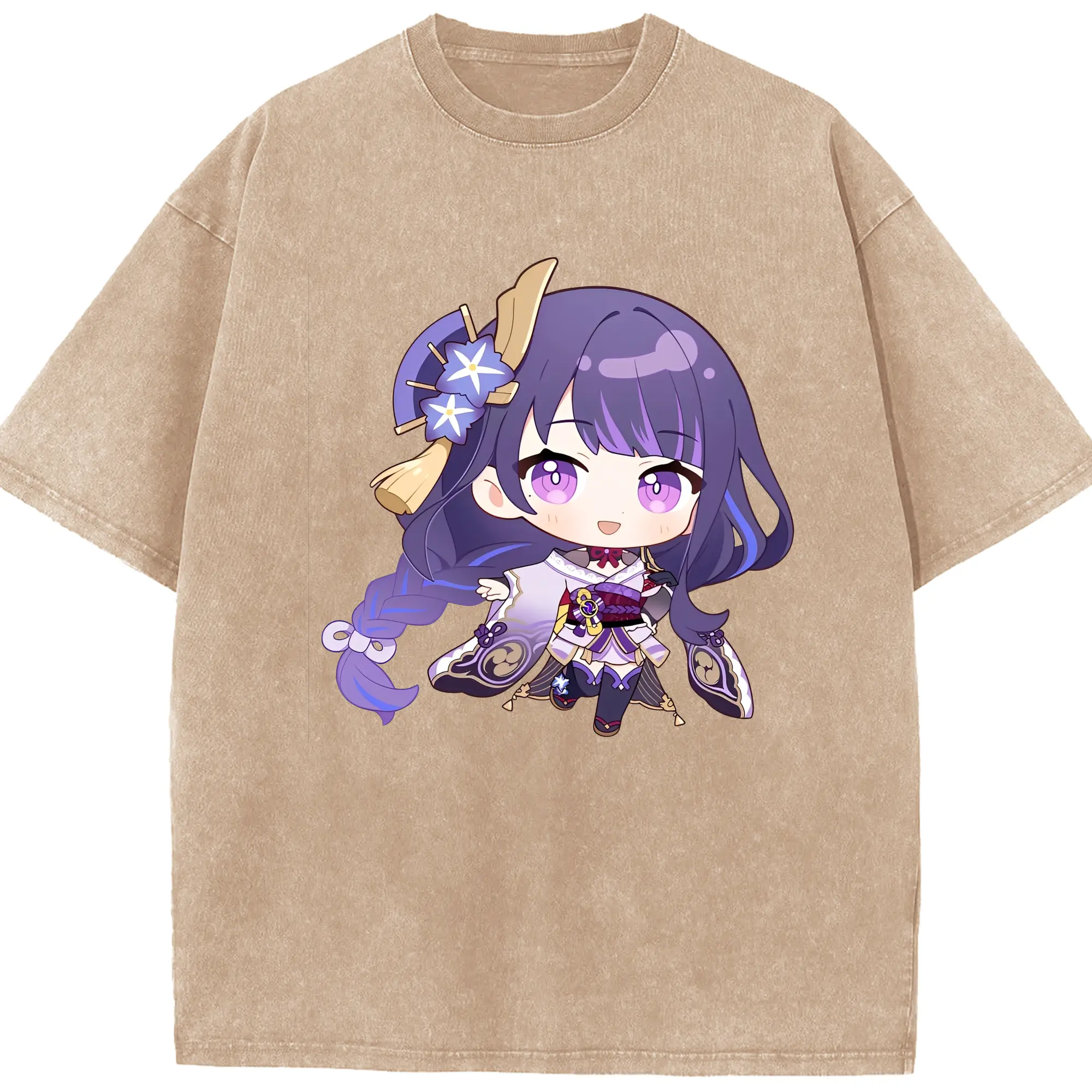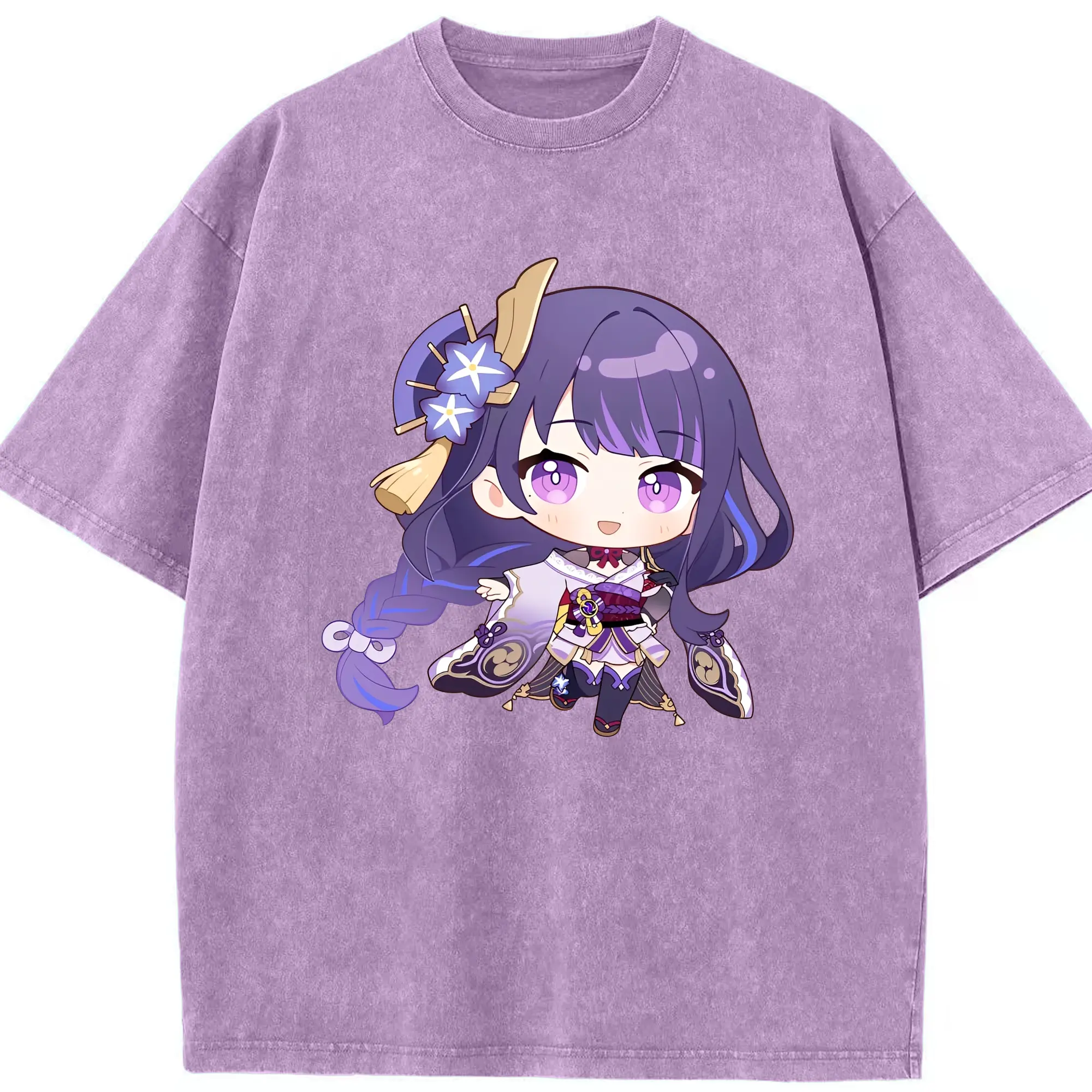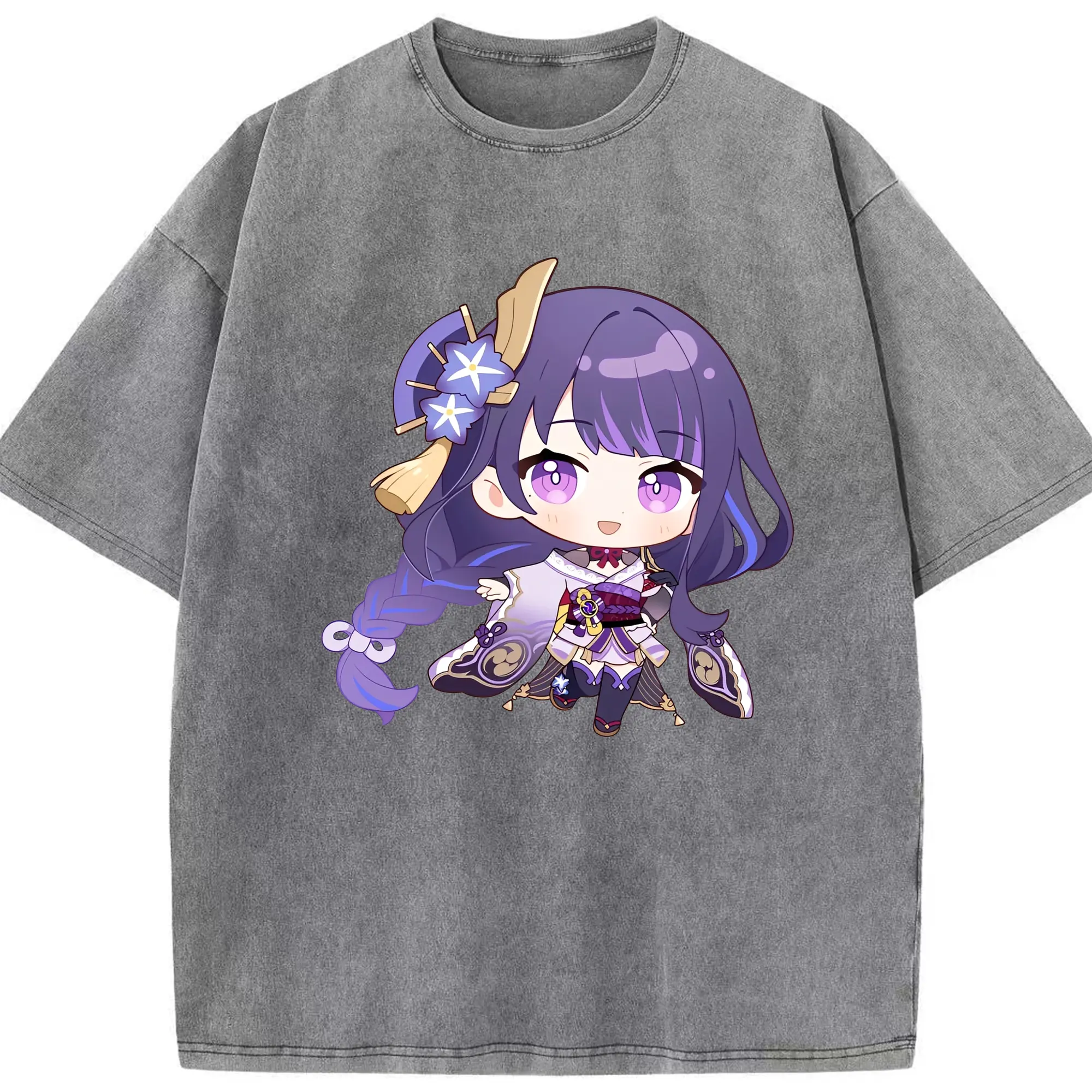 Genshin Impact 雷電将軍 Q版キャラクター可愛いファングッズ - 綿100% 半袖Tシャツ ・ フロントプリント ・ 快適 通気性 ・ 日常使い 散歩 スポーツ用