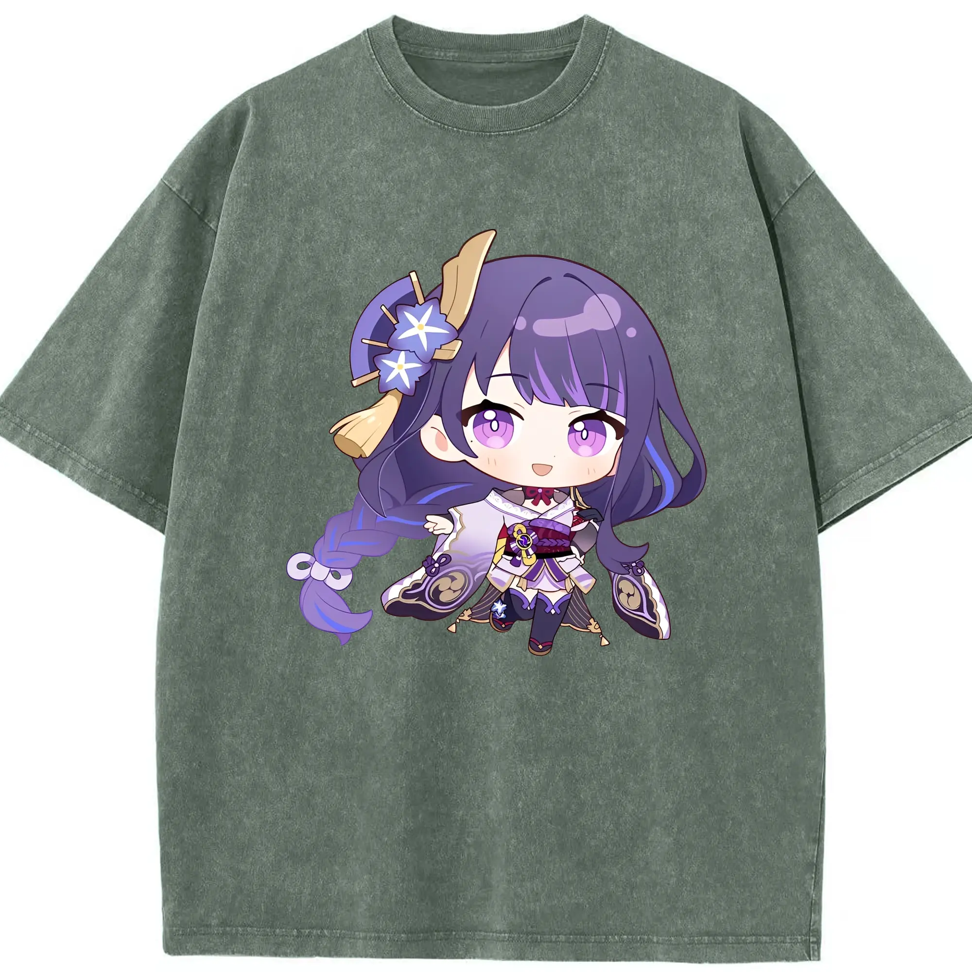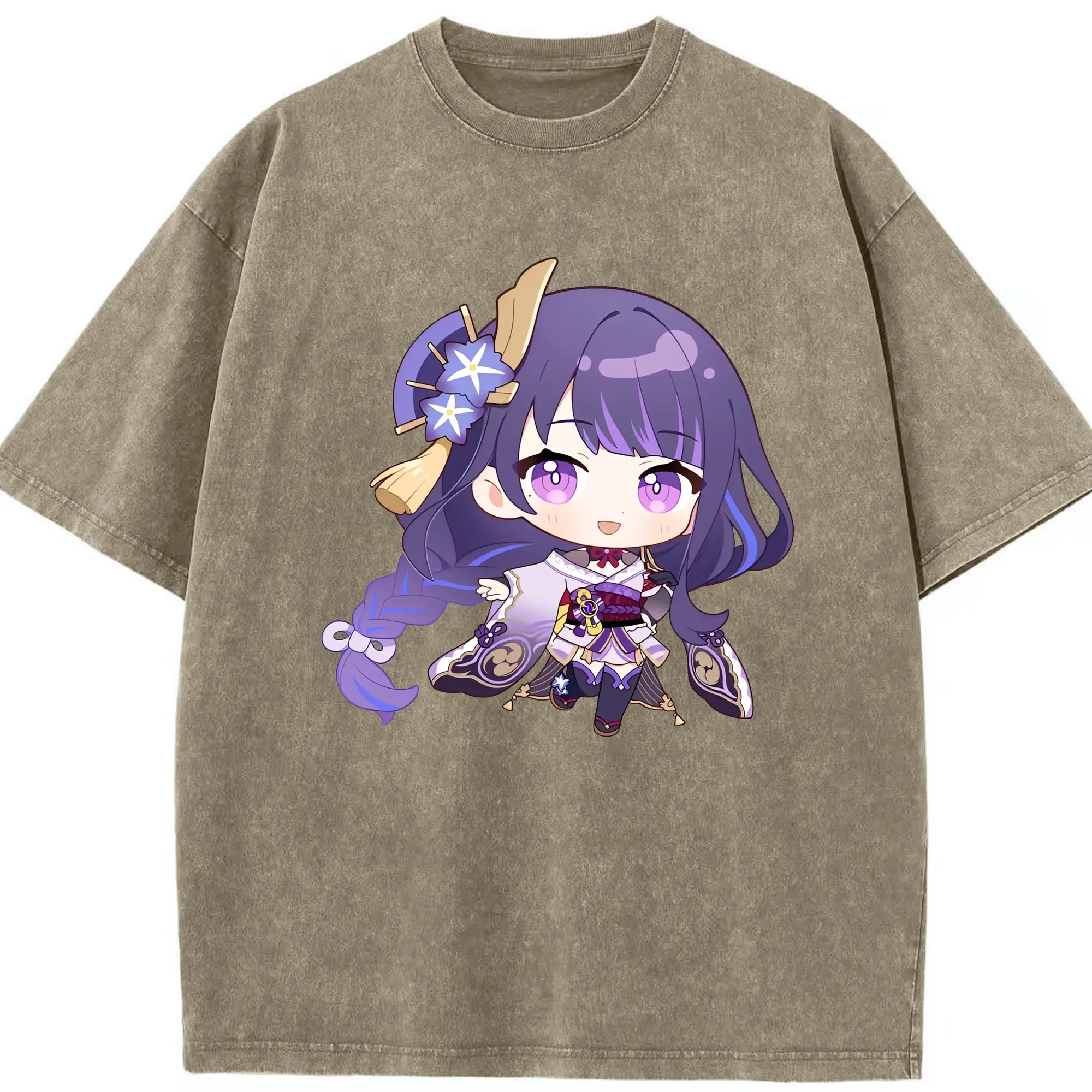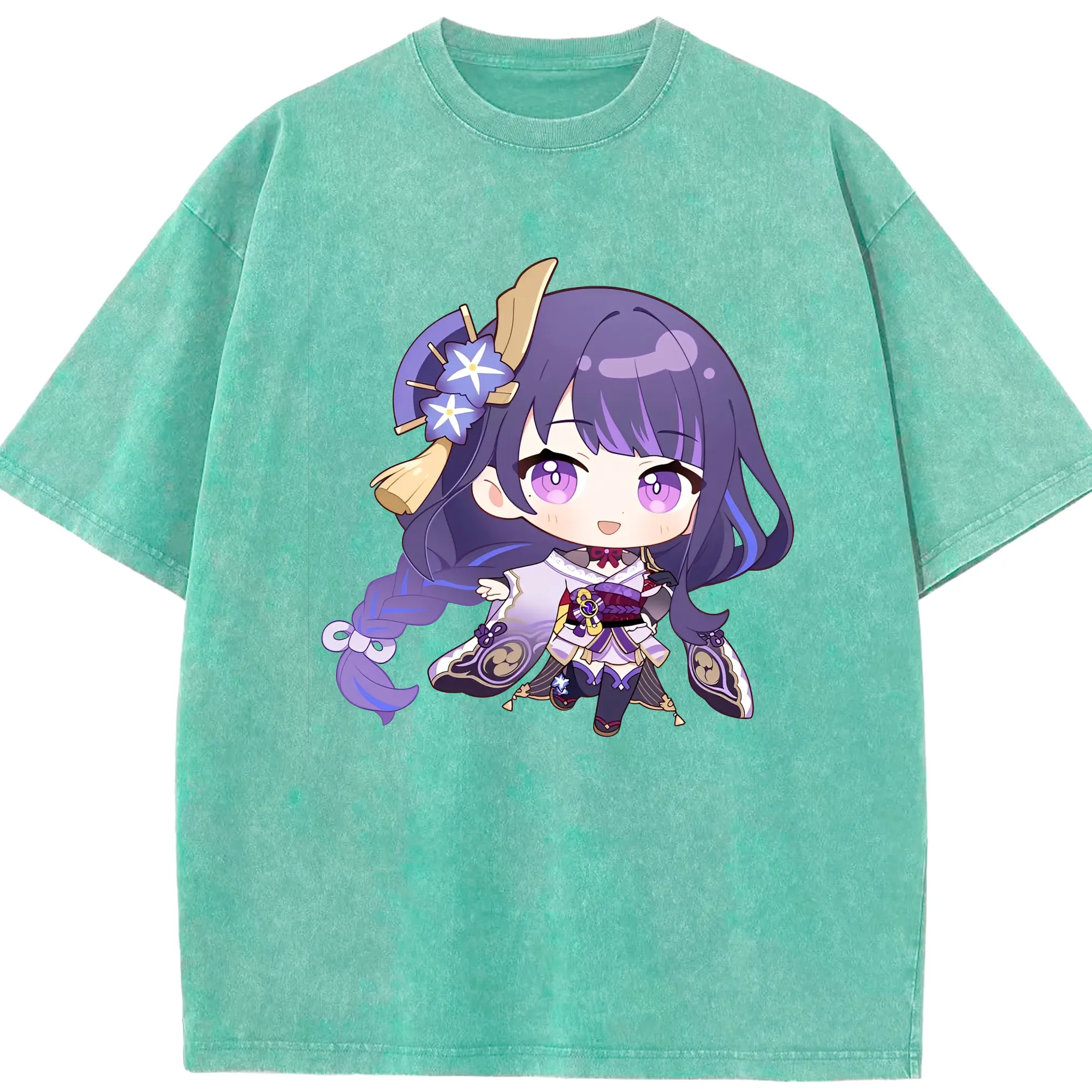Genshin Impact 雷電将軍 Q版キャラクター可愛いファングッズ - 綿100% 半袖Tシャツ ・ フロントプリント ・ 快適 通気性 ・ 日常使い 散歩 スポーツ用