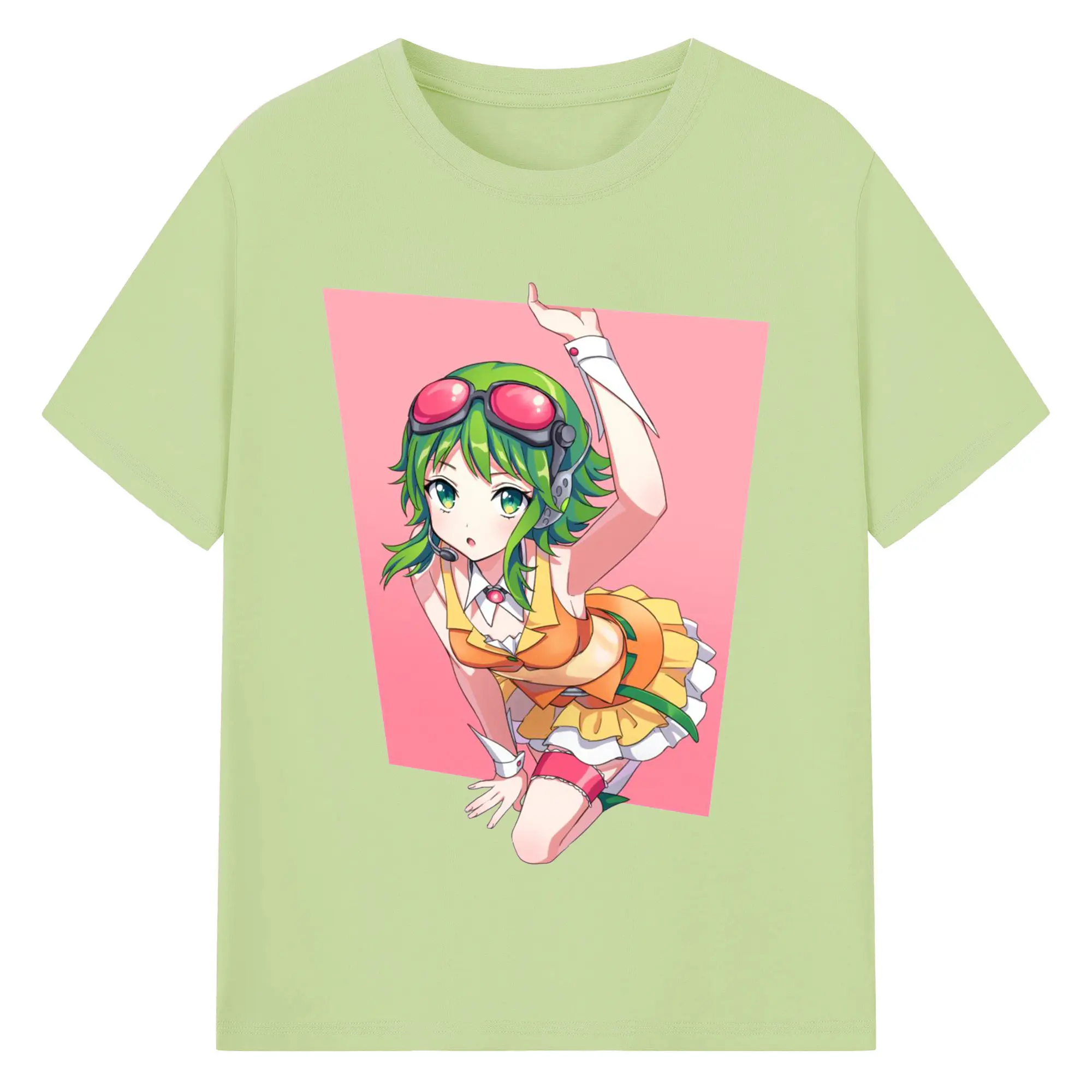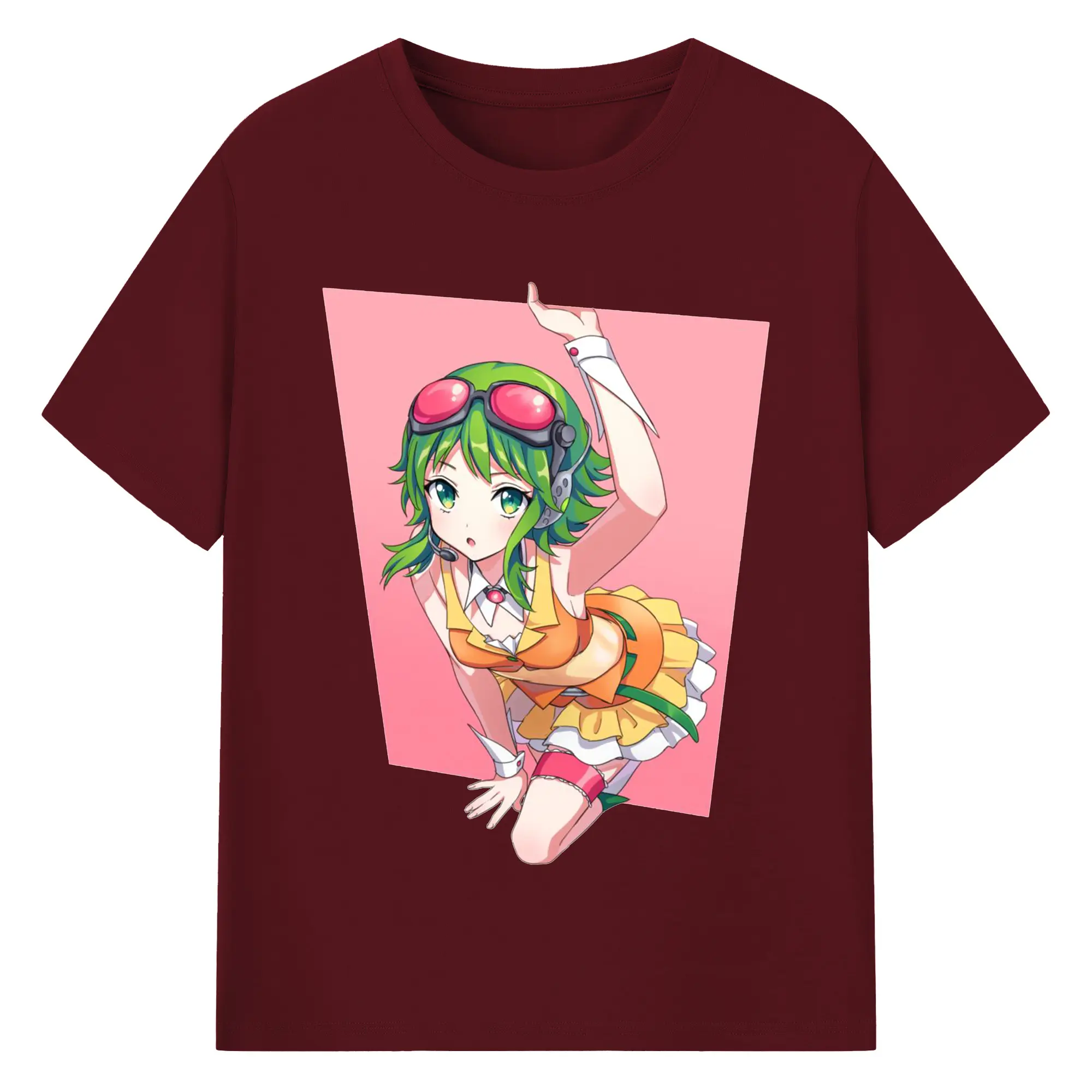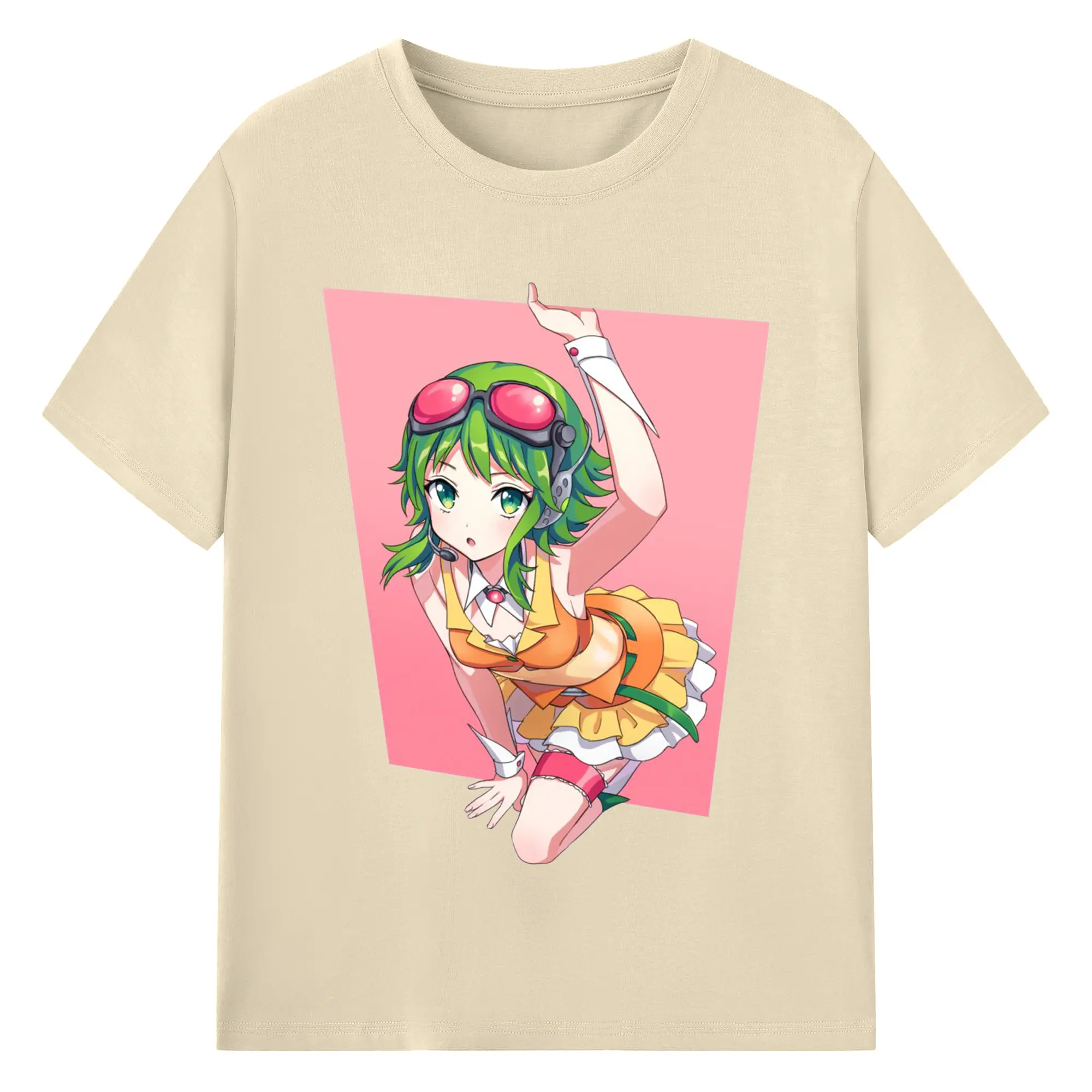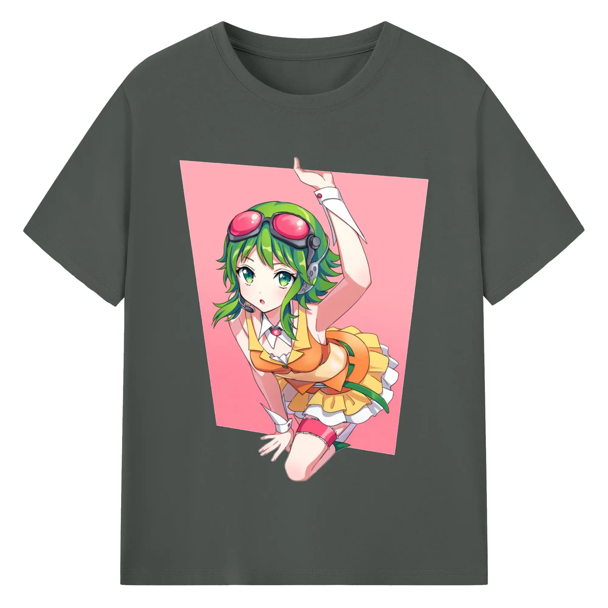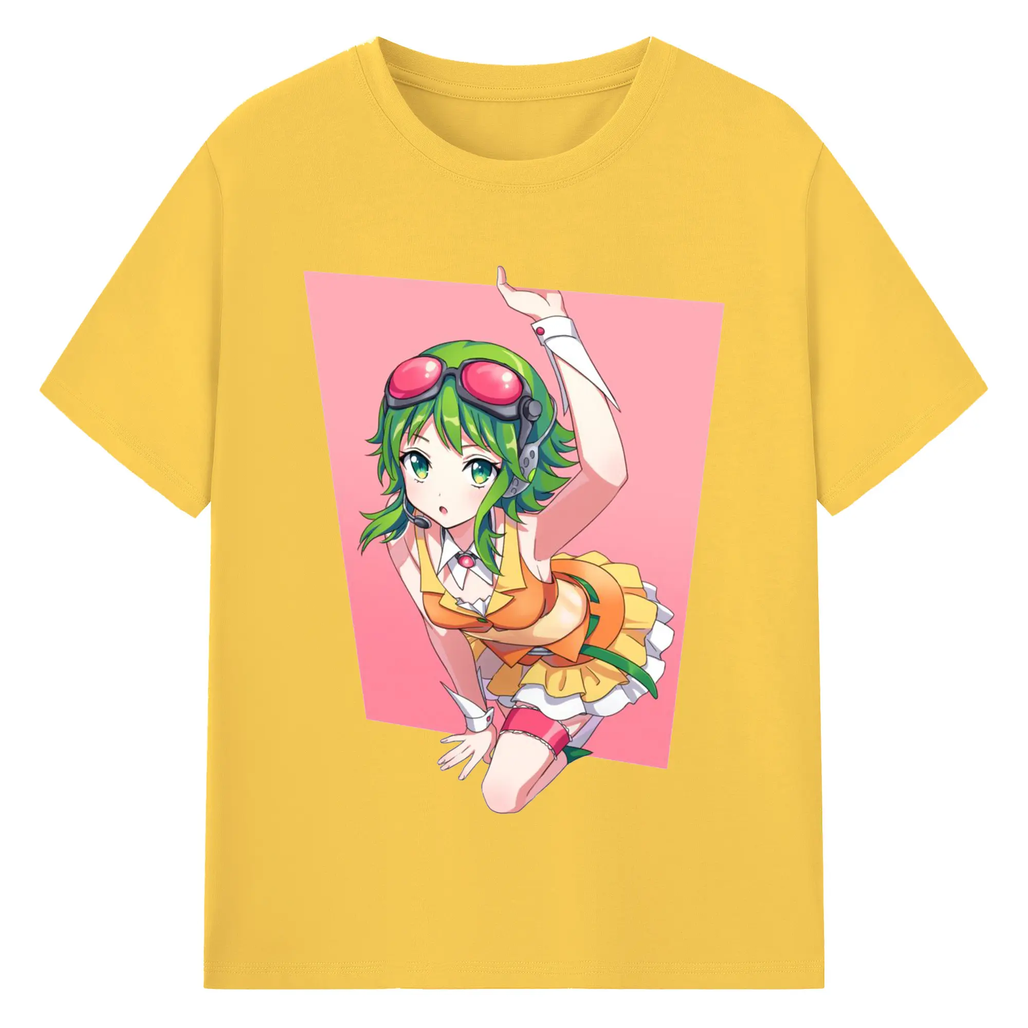 GUMI バーチャルアイドル - 綿100% ヴィンテージ風 半袖Tシャツ ・ フロントプリント ・ 柔らか肌触り ・ 通気性 快適 ・ スポーツ カジュアル 外出用