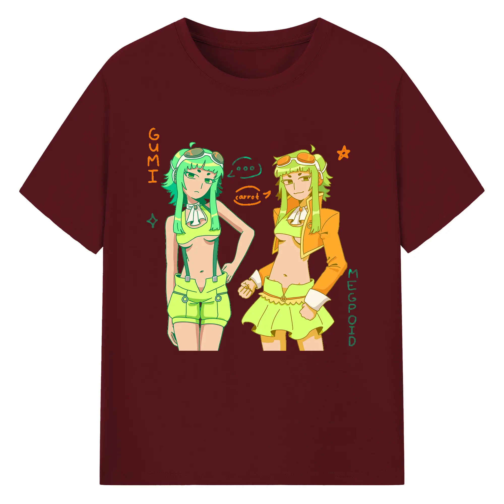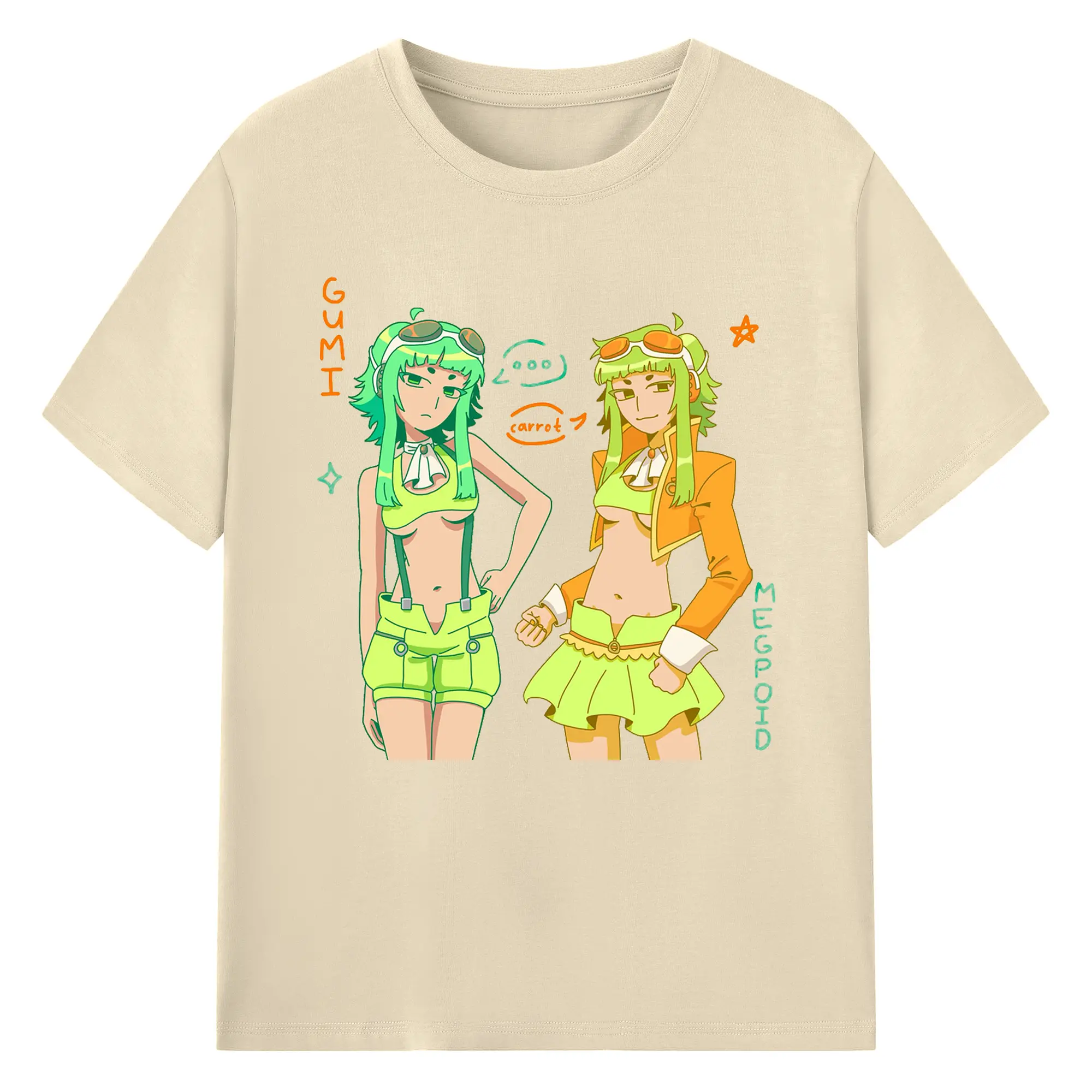 GUMI MEGPOID carrot - 綿100% ヴィンテージ風 半袖Tシャツ ・ フロントプリント ・ 柔らか肌触り ・ 通気性 快適 ・ スポーツ カジュアル 外出用
