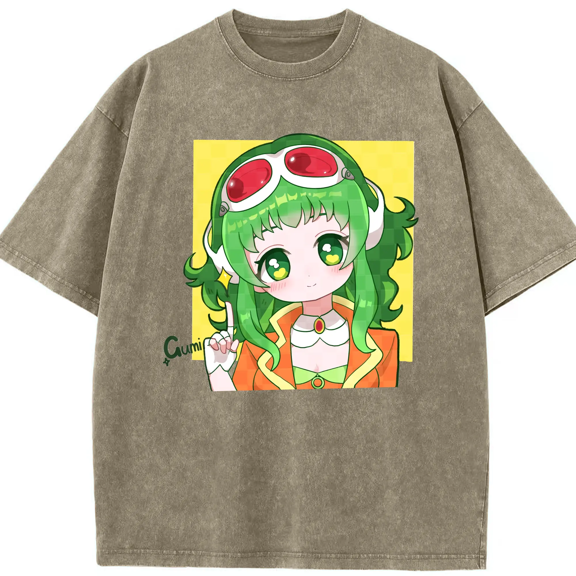 人気バーチャル歌手GUMIファン専用 - 綿100% ヴィンテージ風 半袖Tシャツ ・ フロントプリント ・ 柔らか肌触り ・ 通気性 快適 ・ スポーツ カジュアル 外出用