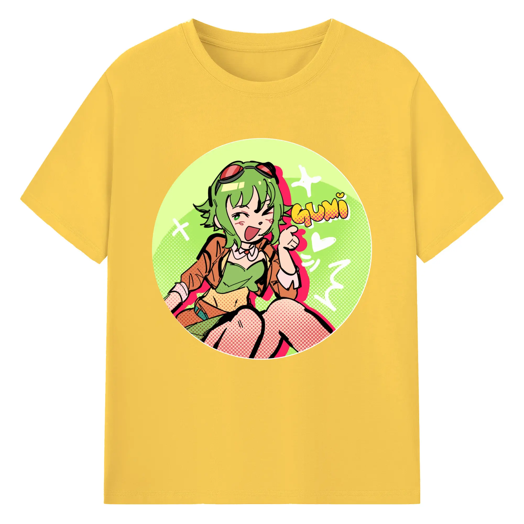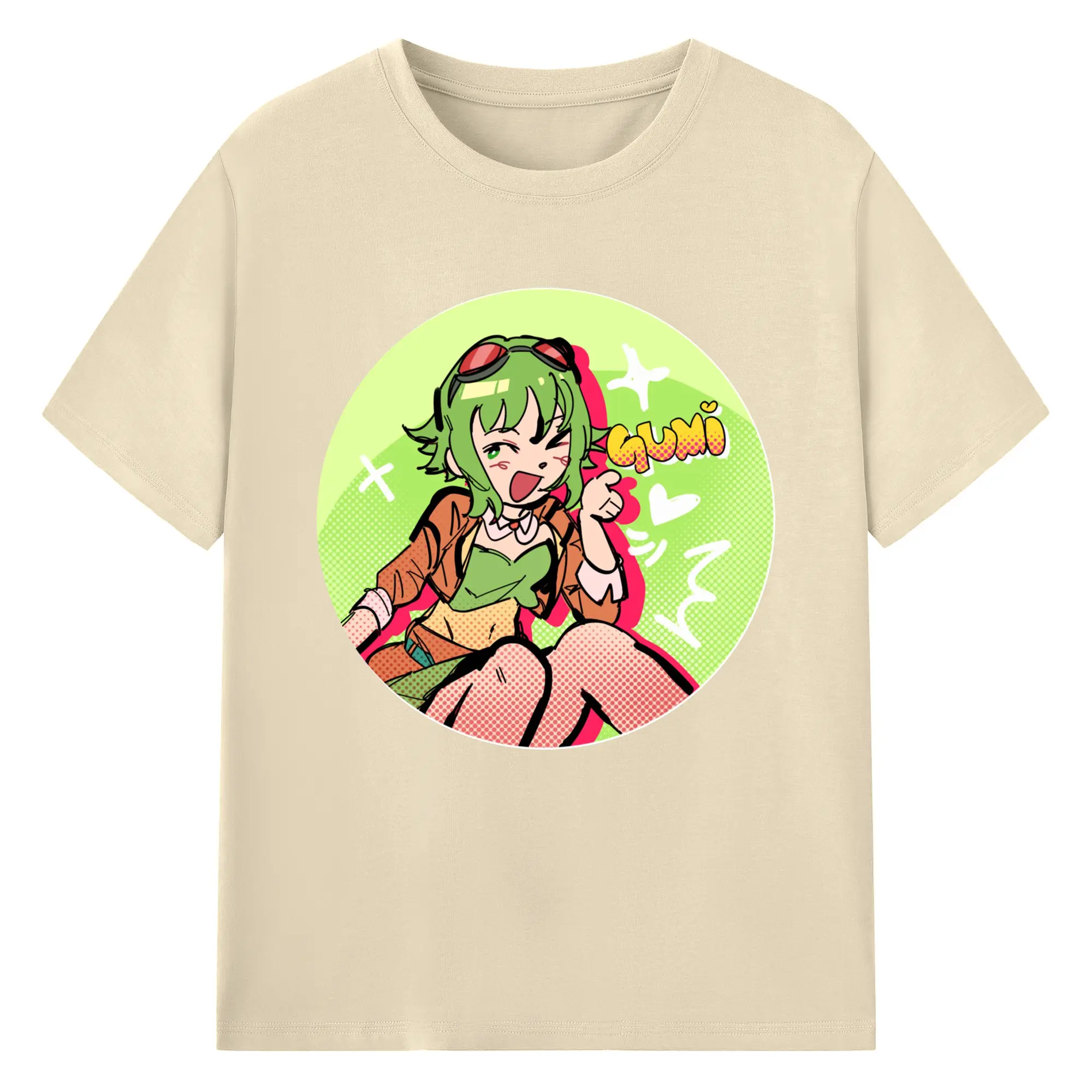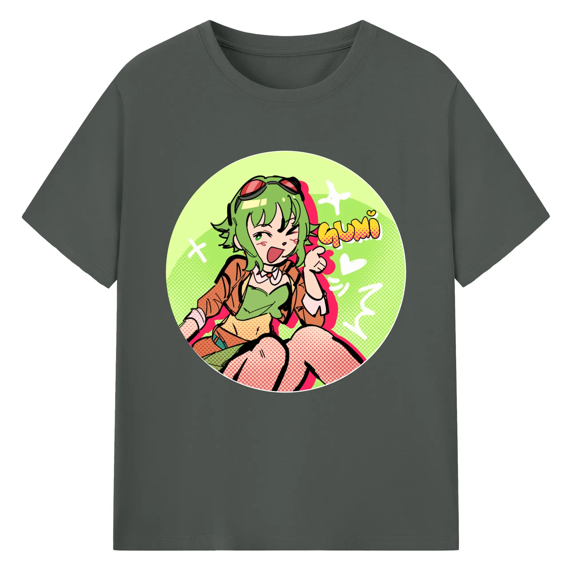 GUMI VOCALOID - 綿100% ヴィンテージ風 半袖Tシャツ ・ フロントプリント ・ 柔らか肌触り ・ 通気性 快適 ・ スポーツ カジュアル 外出用