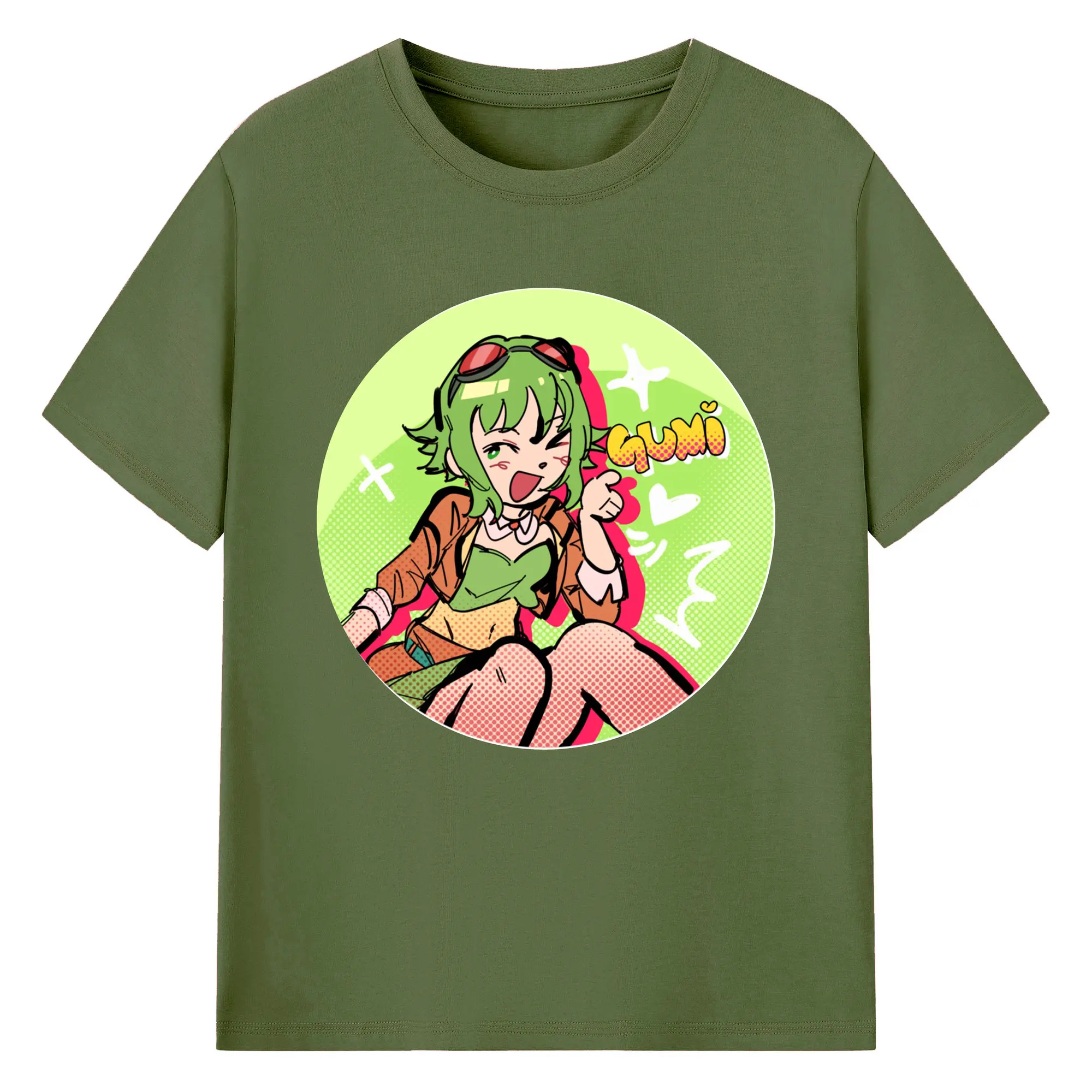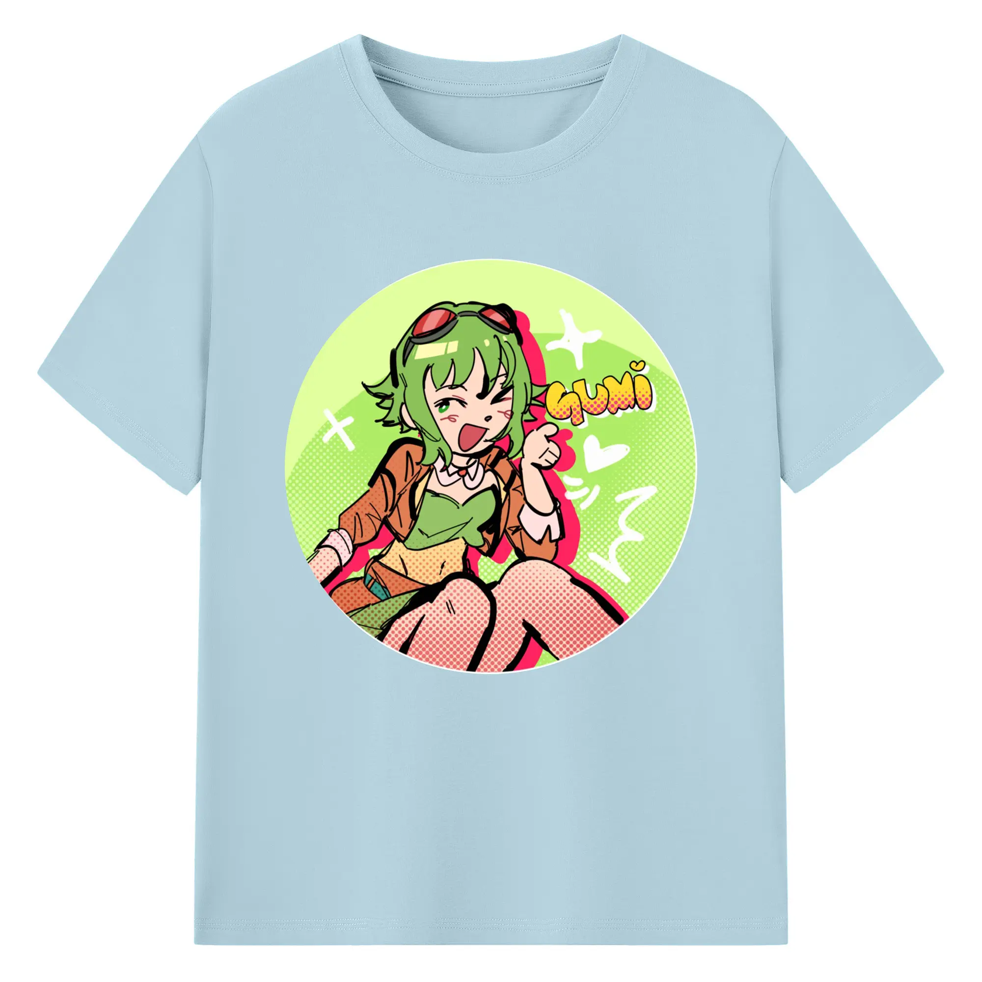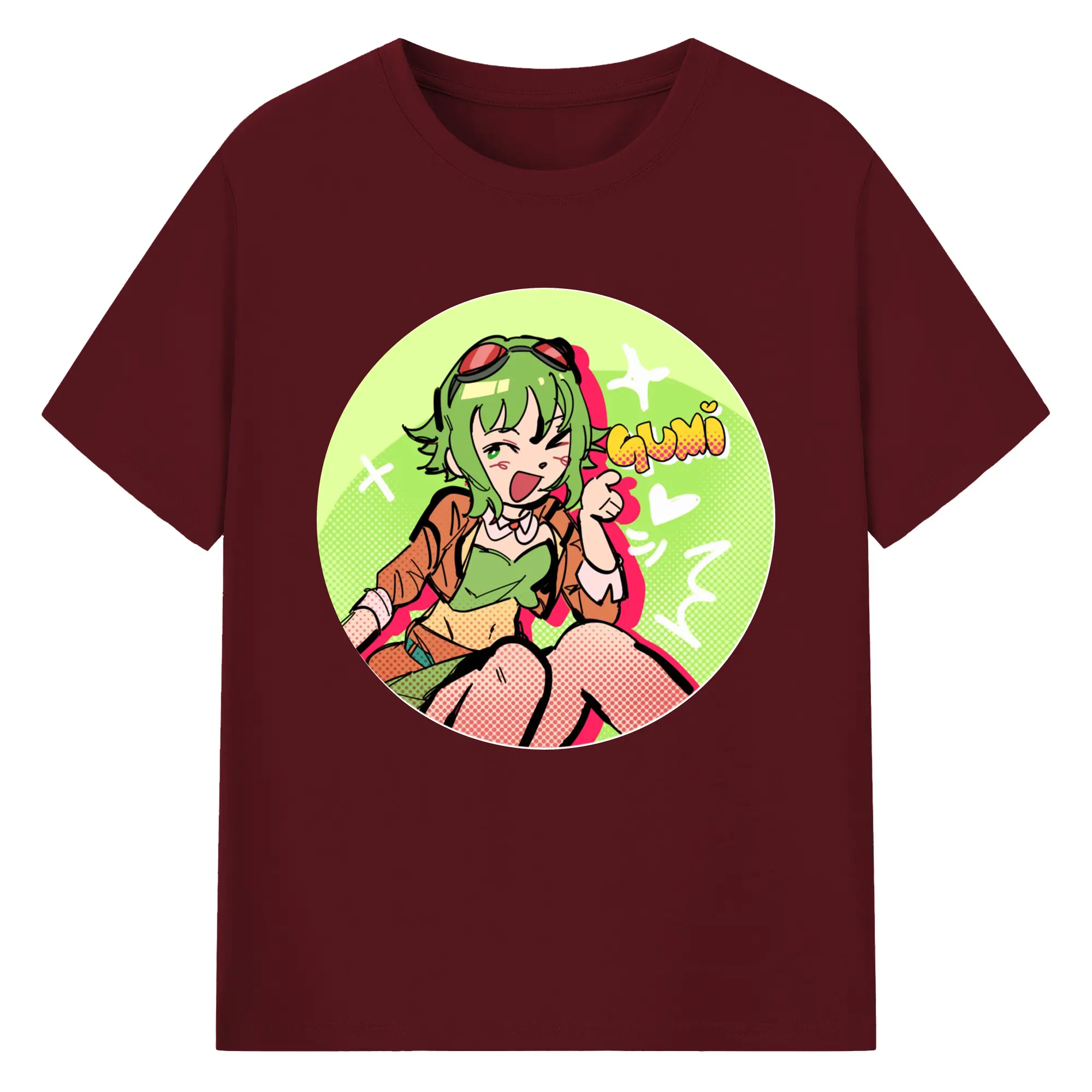 GUMI VOCALOID - 綿100% ヴィンテージ風 半袖Tシャツ ・ フロントプリント ・ 柔らか肌触り ・ 通気性 快適 ・ スポーツ カジュアル 外出用