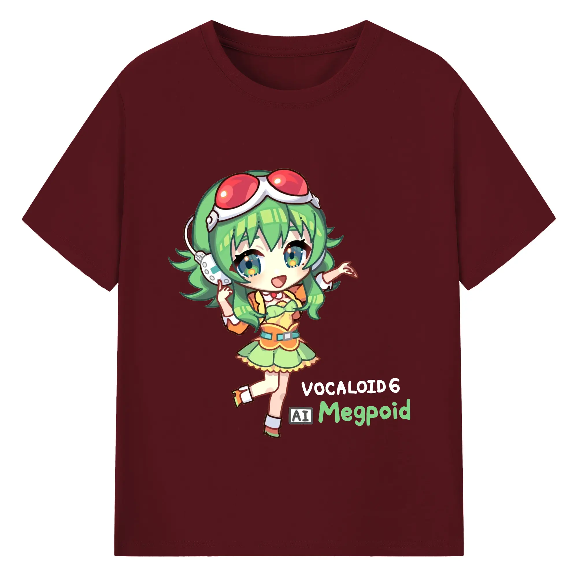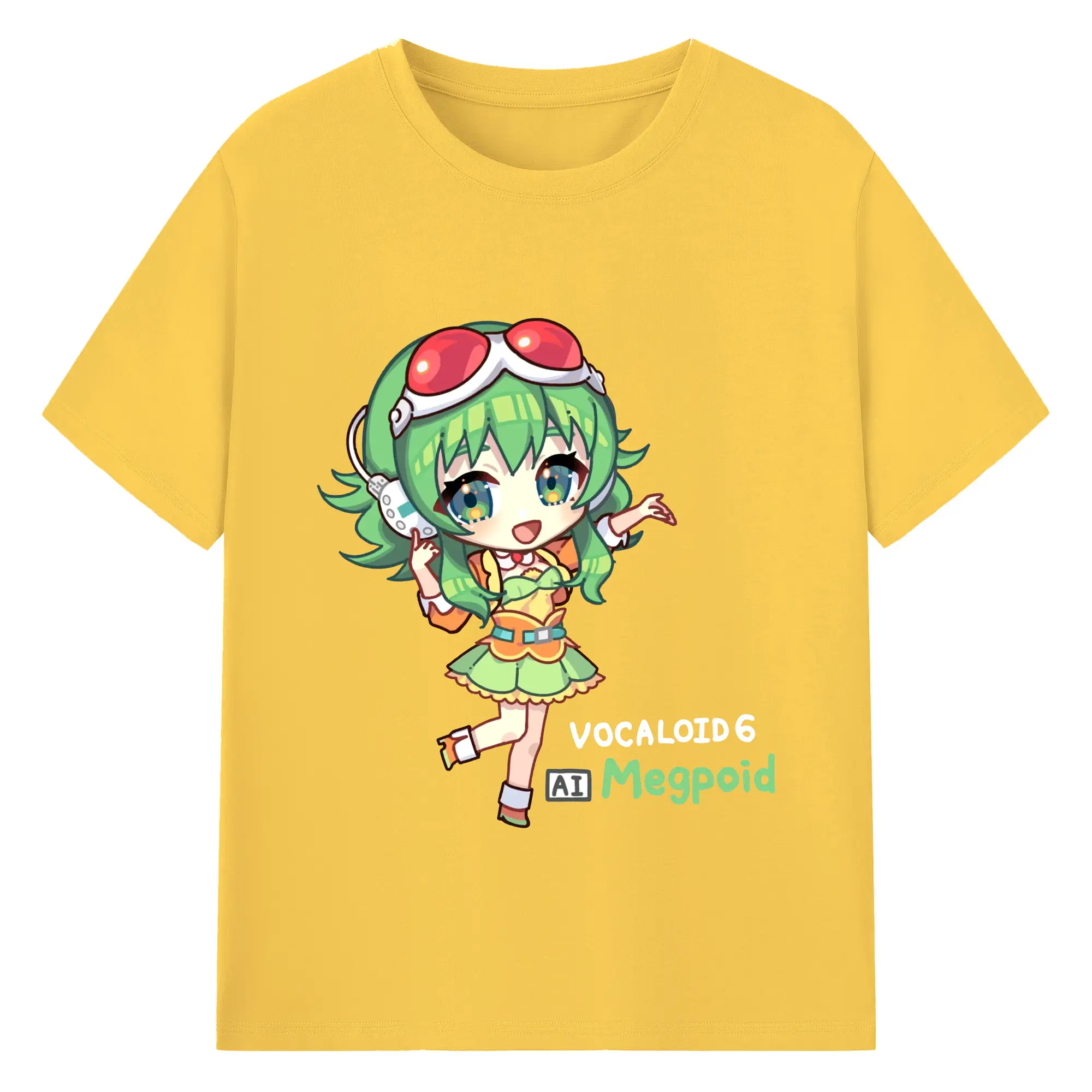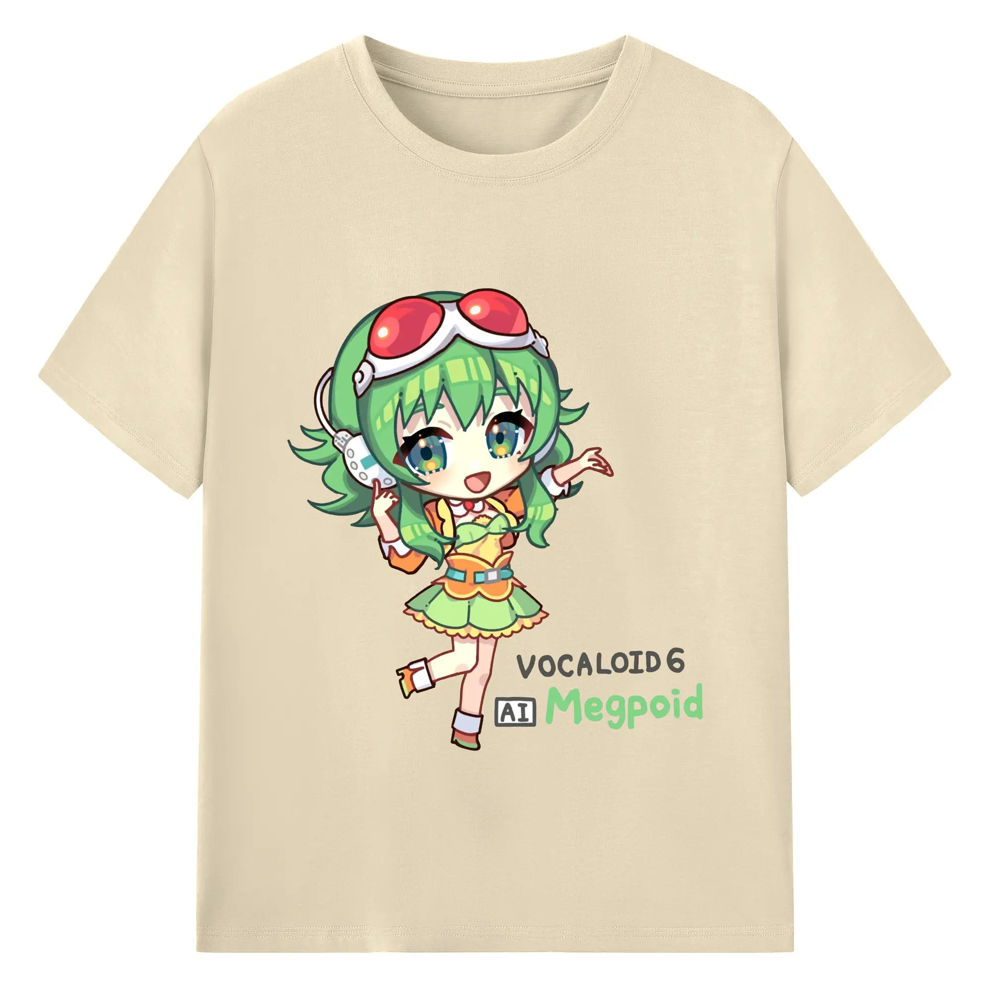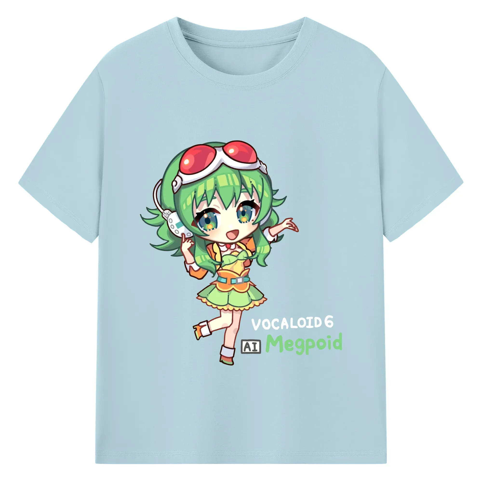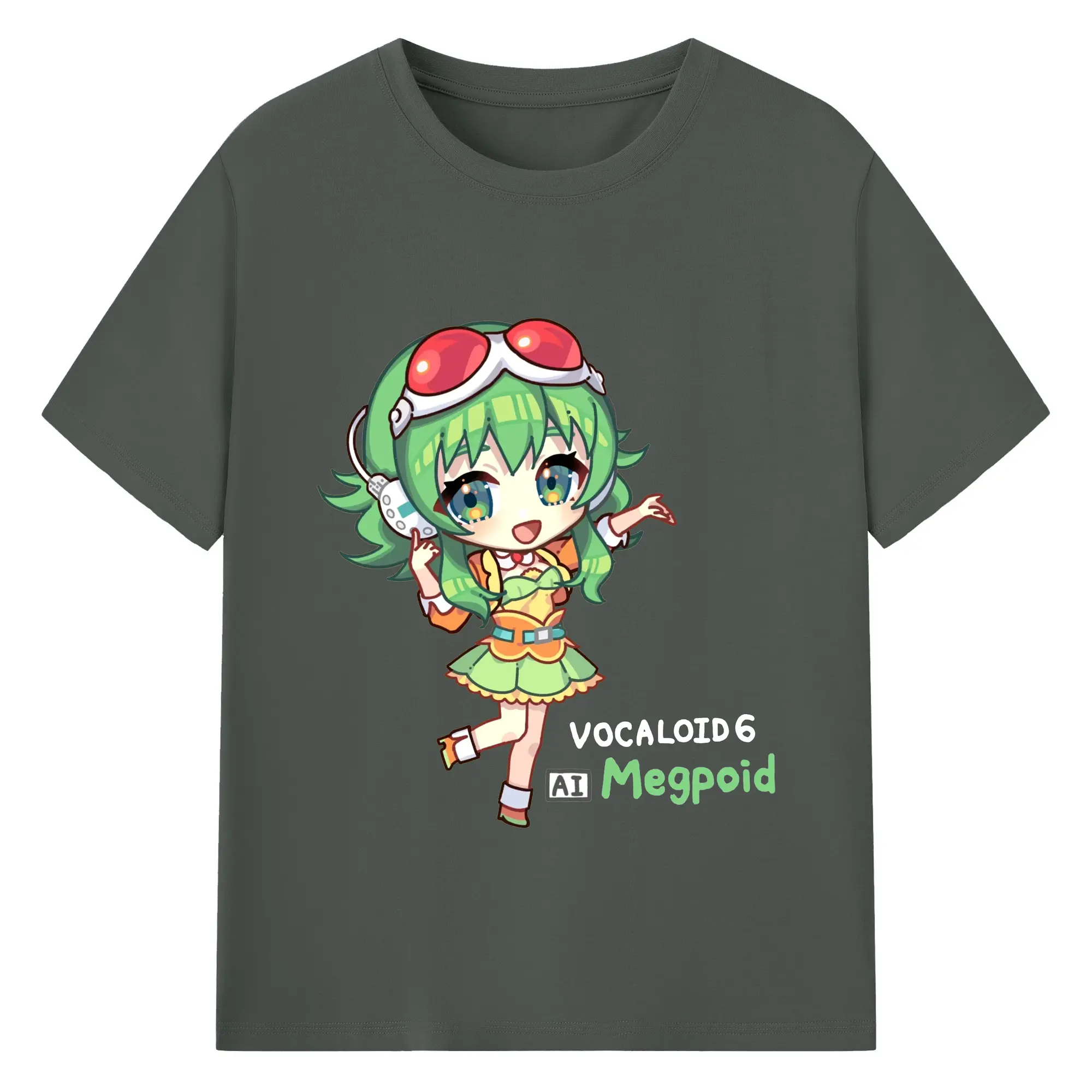 GUMI VOCALOID6 AI Megpoid - 綿100% ヴィンテージ風 半袖Tシャツ ・ フロントプリント ・ 柔らか肌触り ・ 通気性 快適 ・ スポーツ カジュアル 外出用