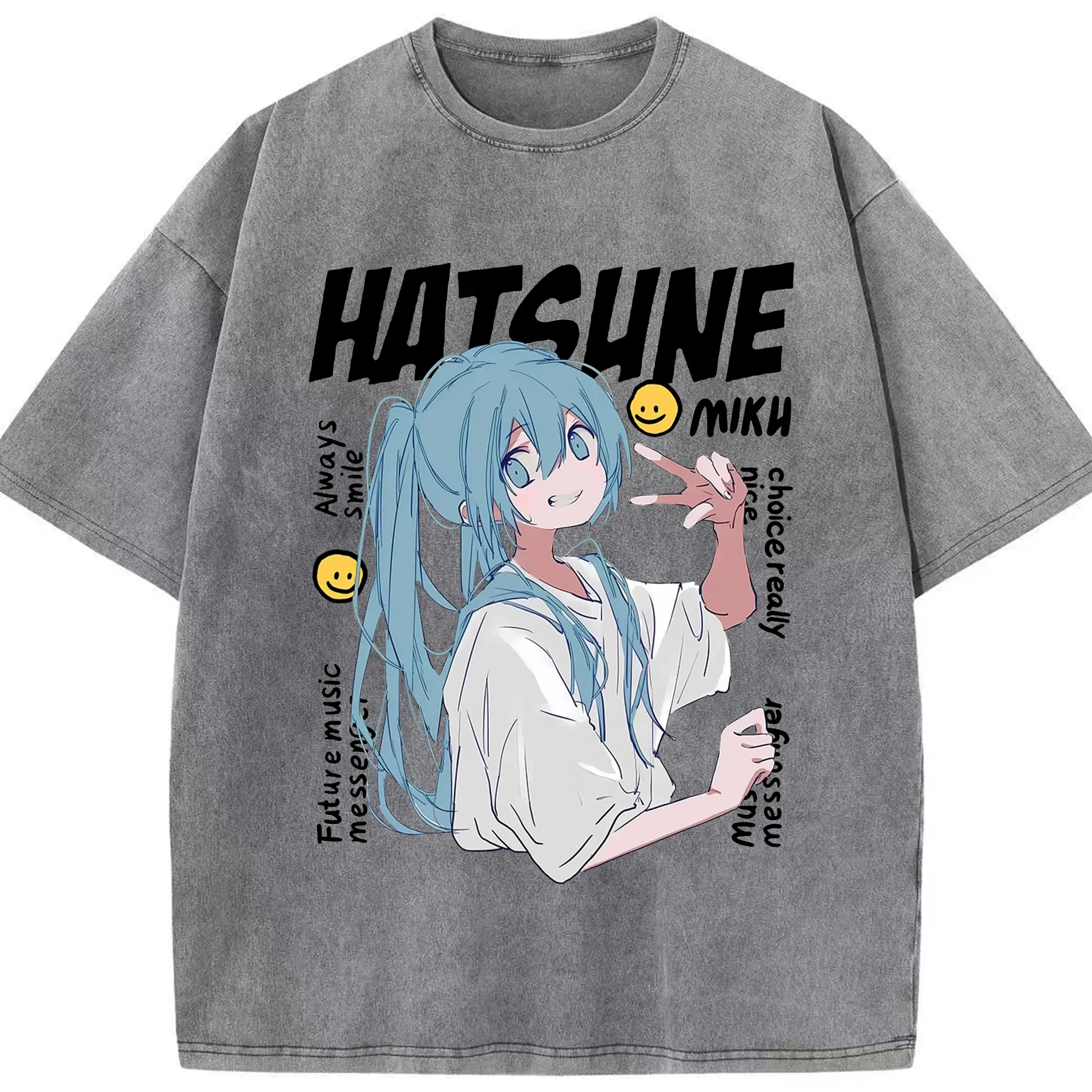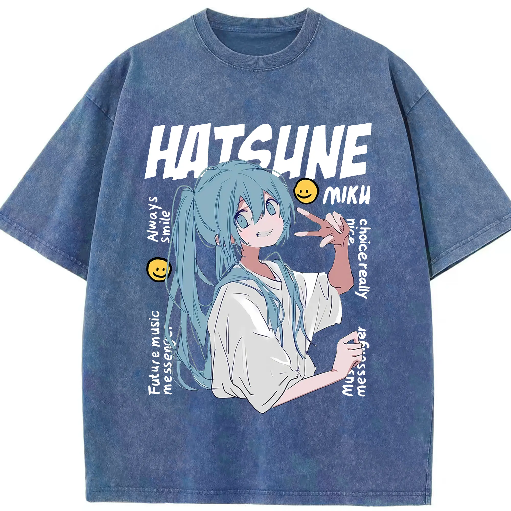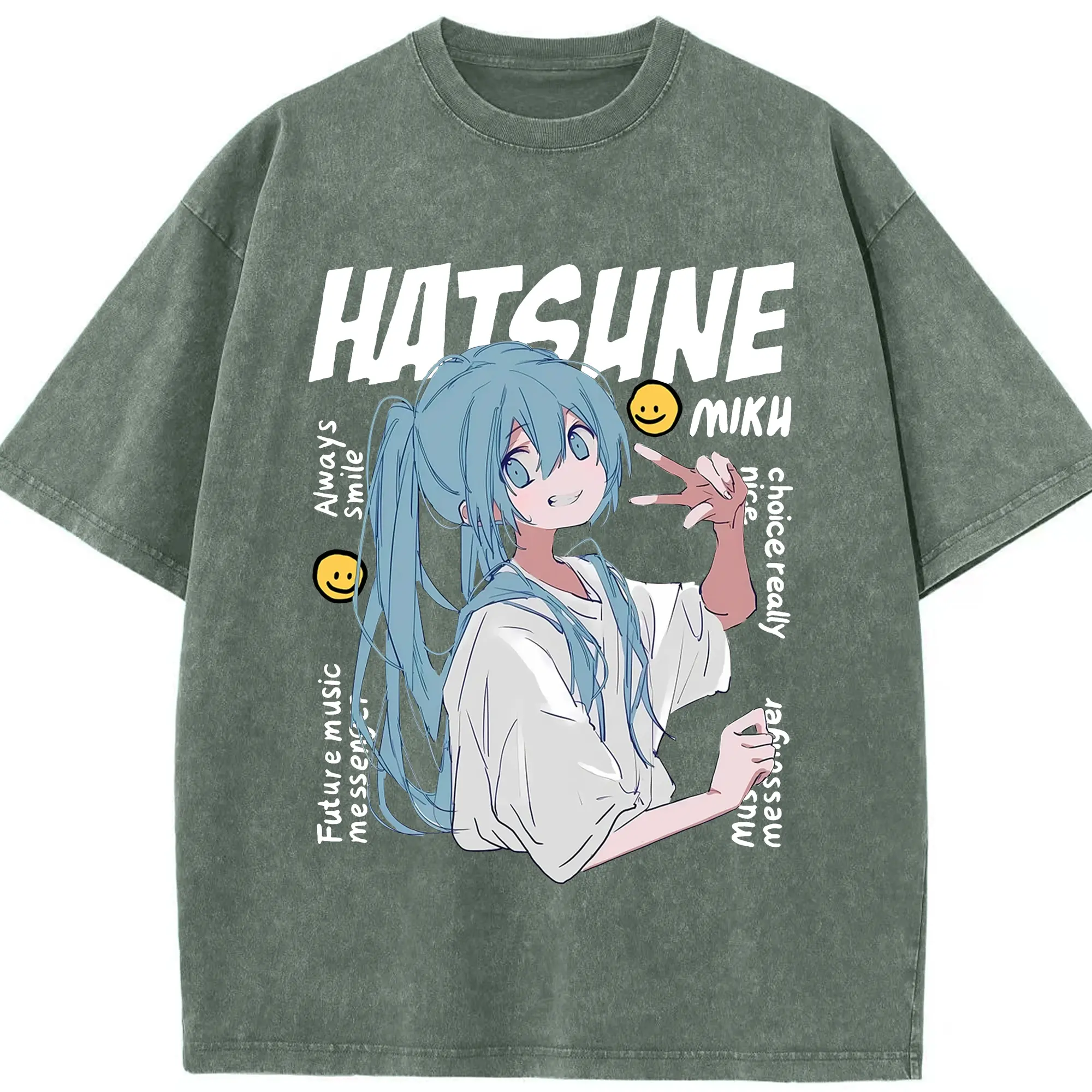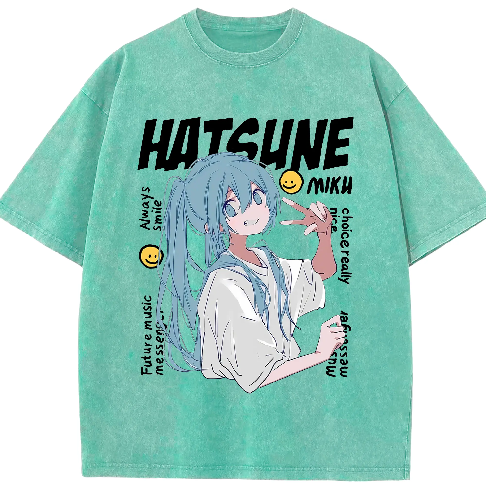 初音ミクHatsune Miku Miku Fanart - 綿100% ヴィンテージ風 半袖Tシャツ ・ フロントプリント ・ 柔らか肌触り ・ 通気性 快適 ・ スポーツ カジュアル 外出用