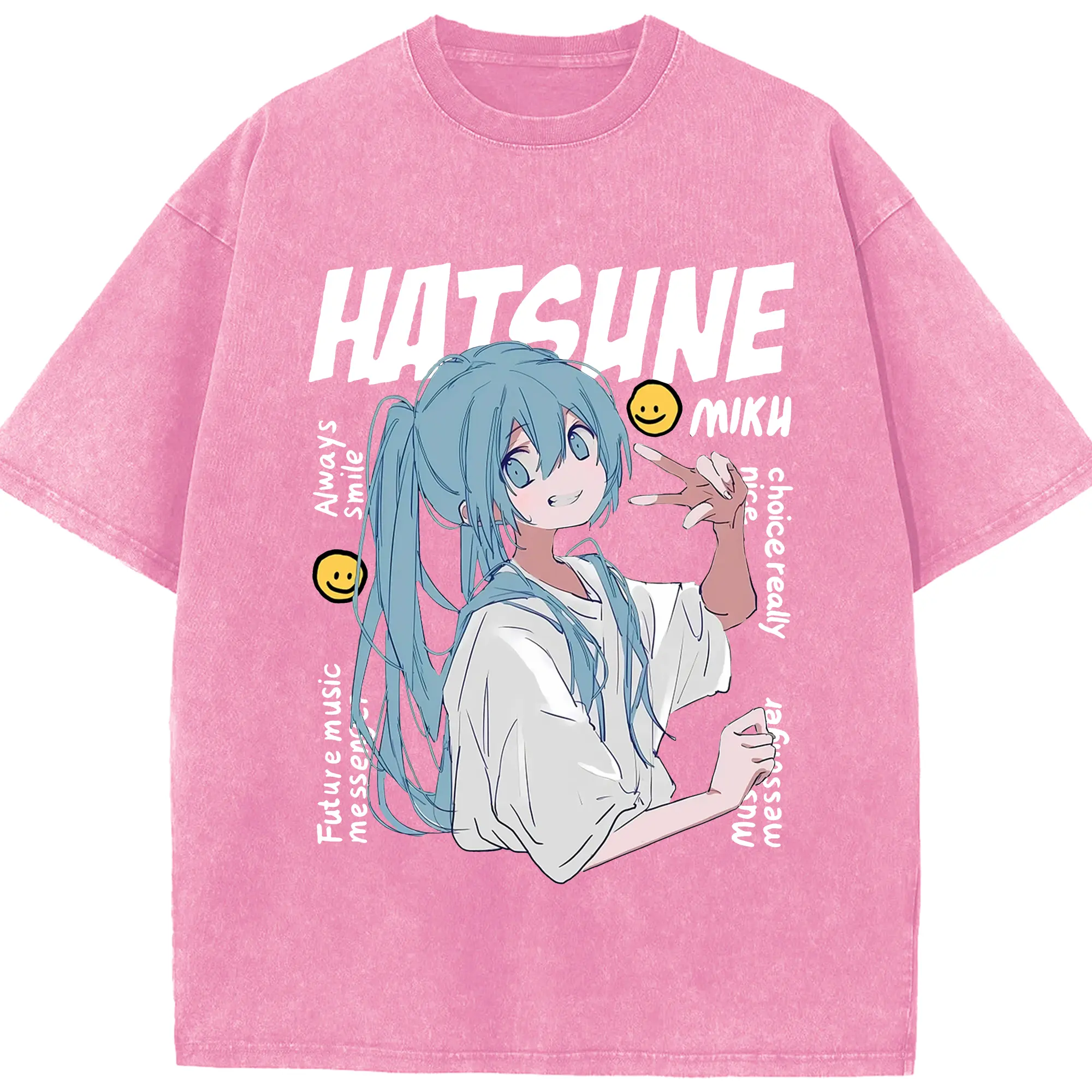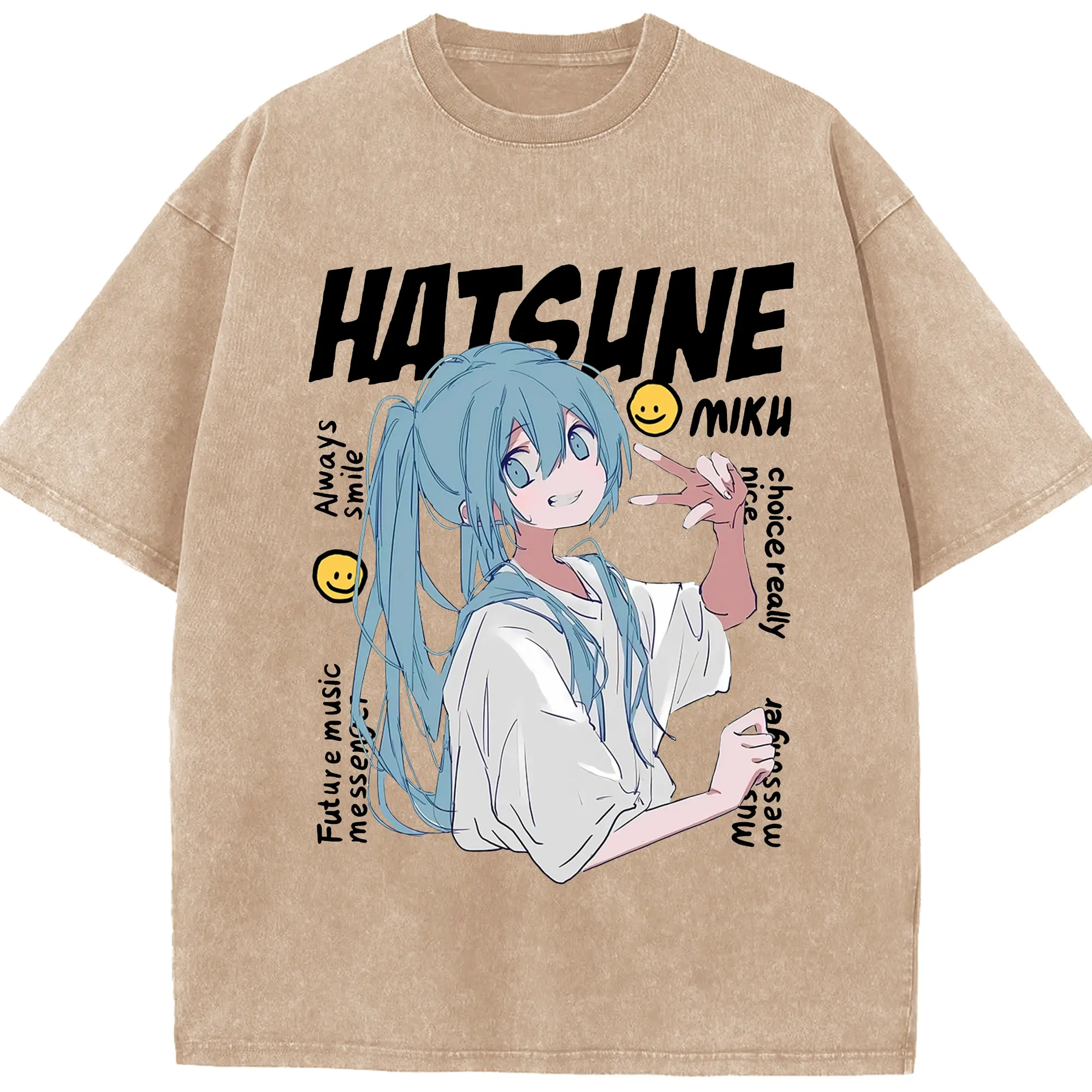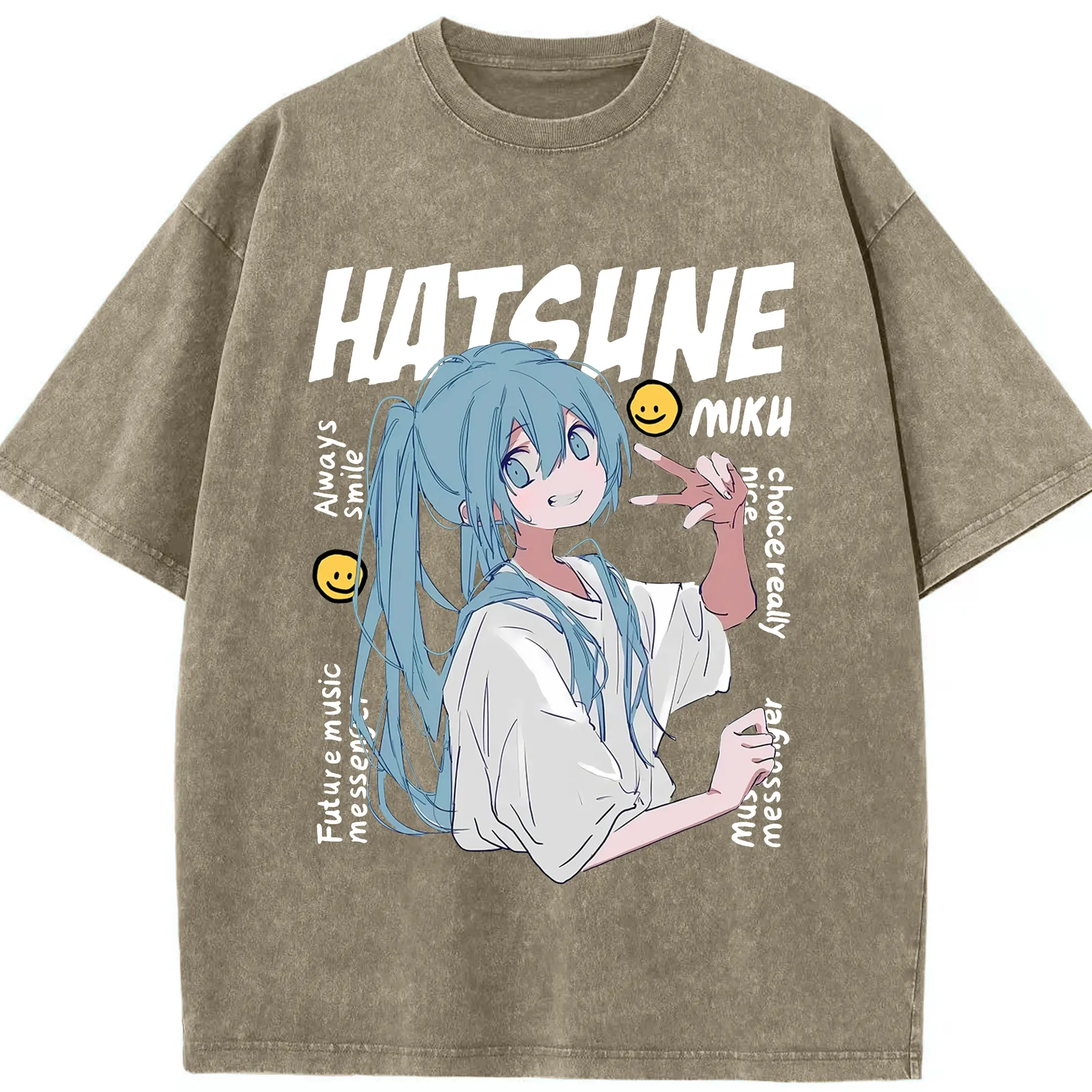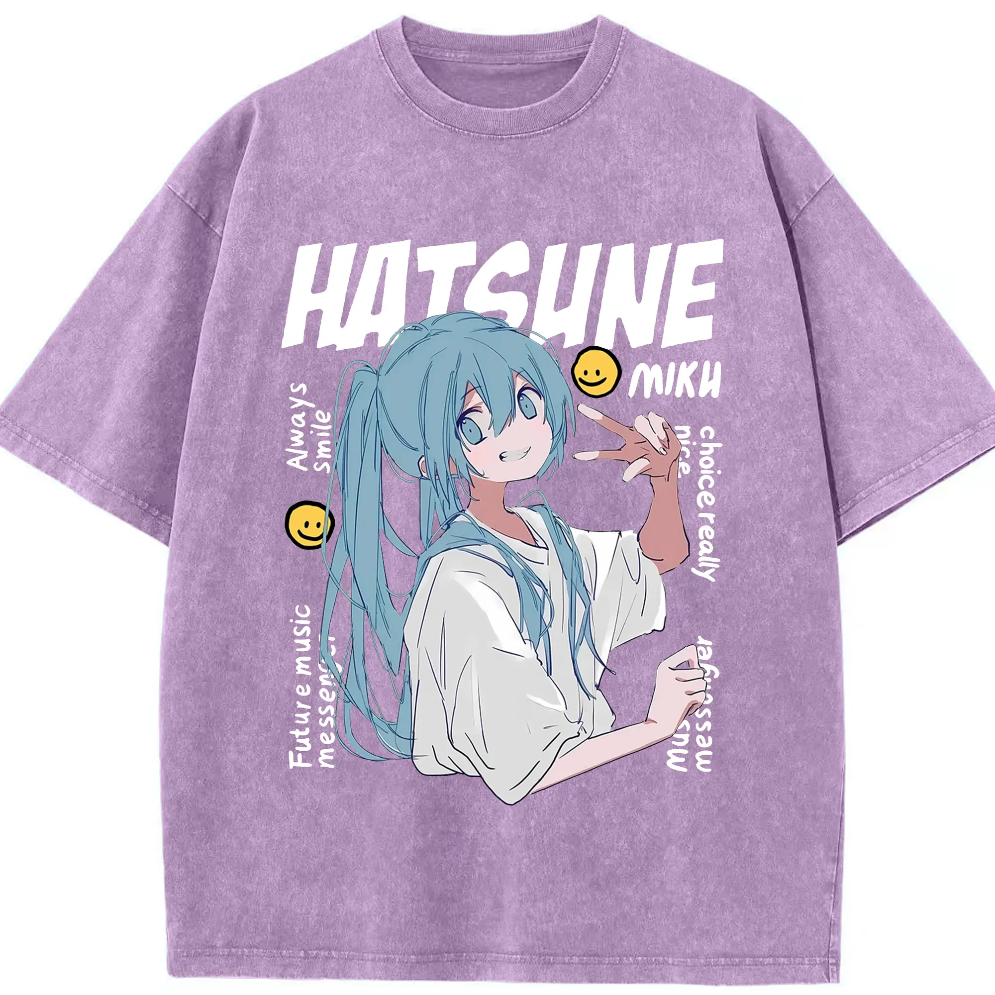 初音ミクHatsune Miku Miku Fanart - 綿100% ヴィンテージ風 半袖Tシャツ ・ フロントプリント ・ 柔らか肌触り ・ 通気性 快適 ・ スポーツ カジュアル 外出用