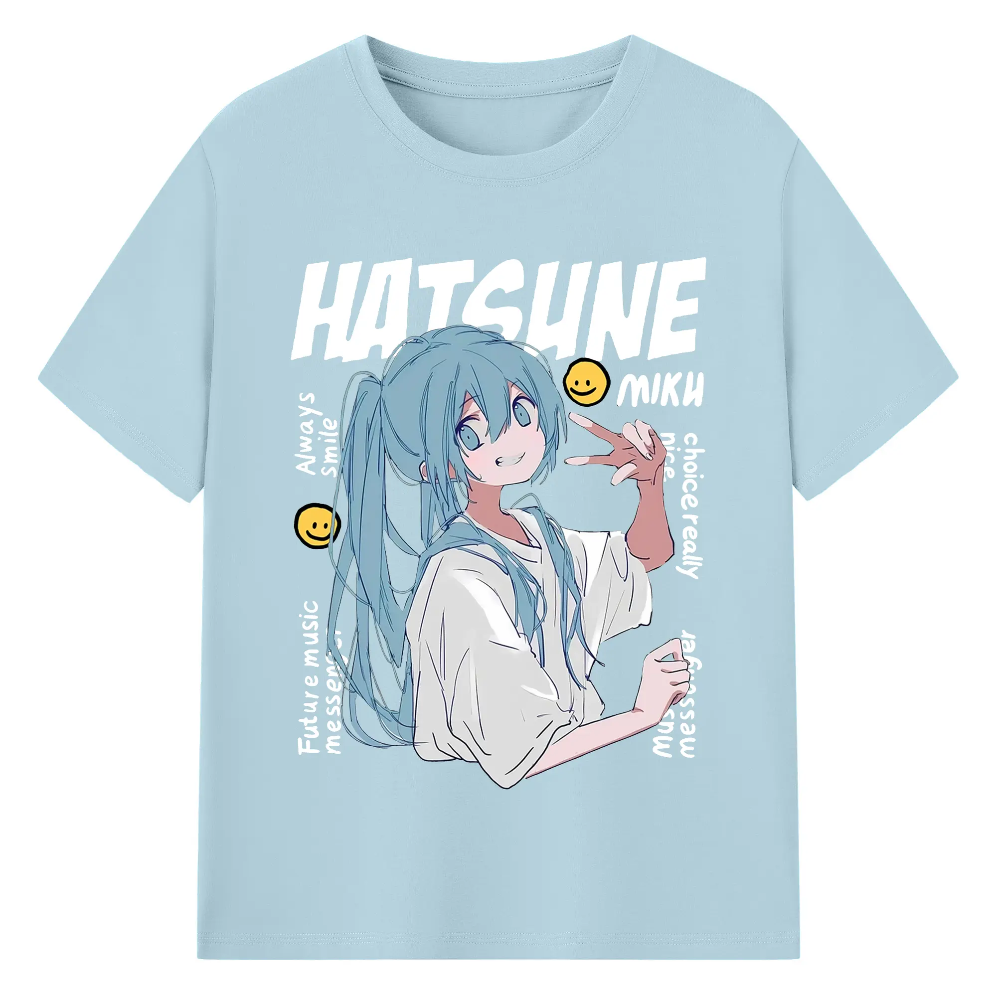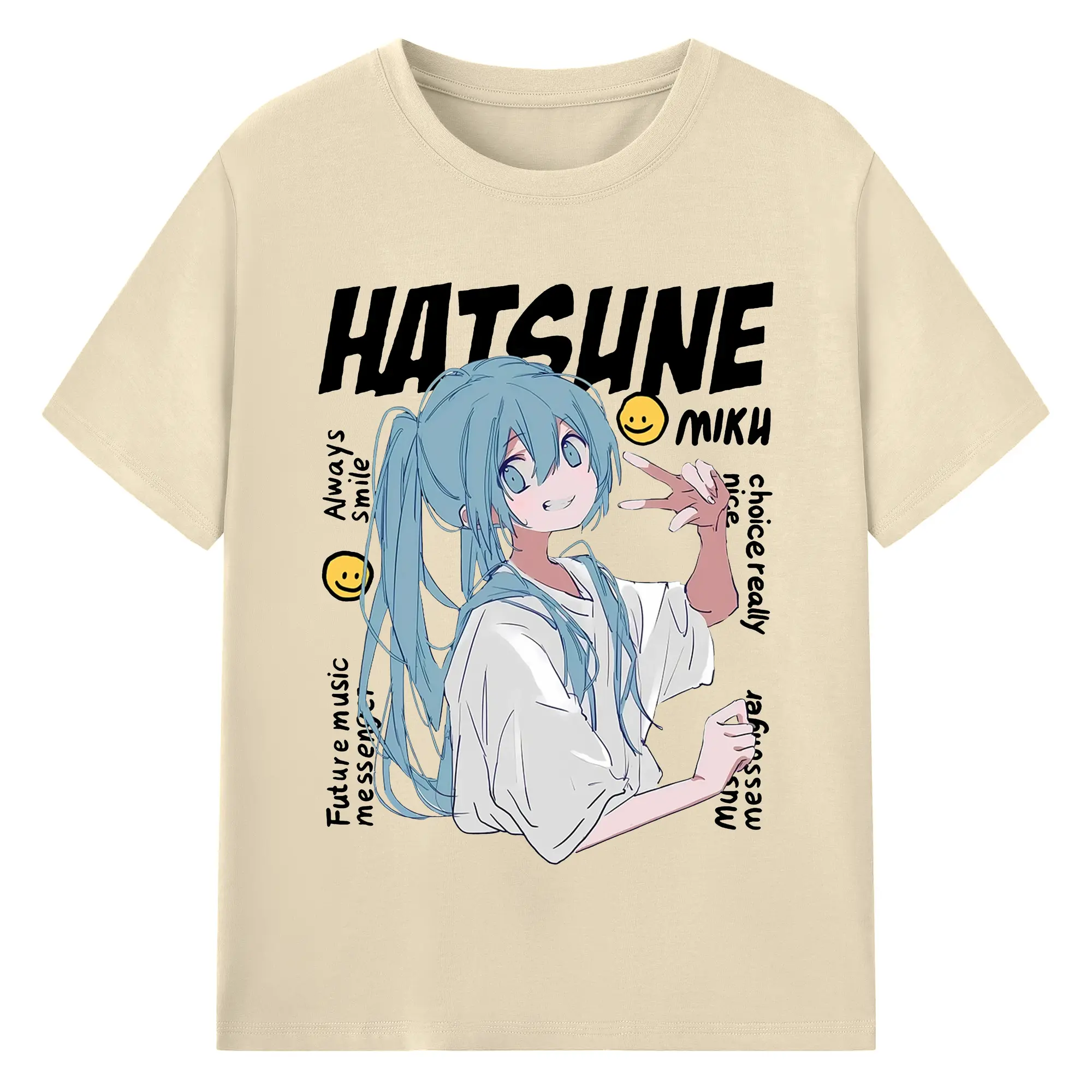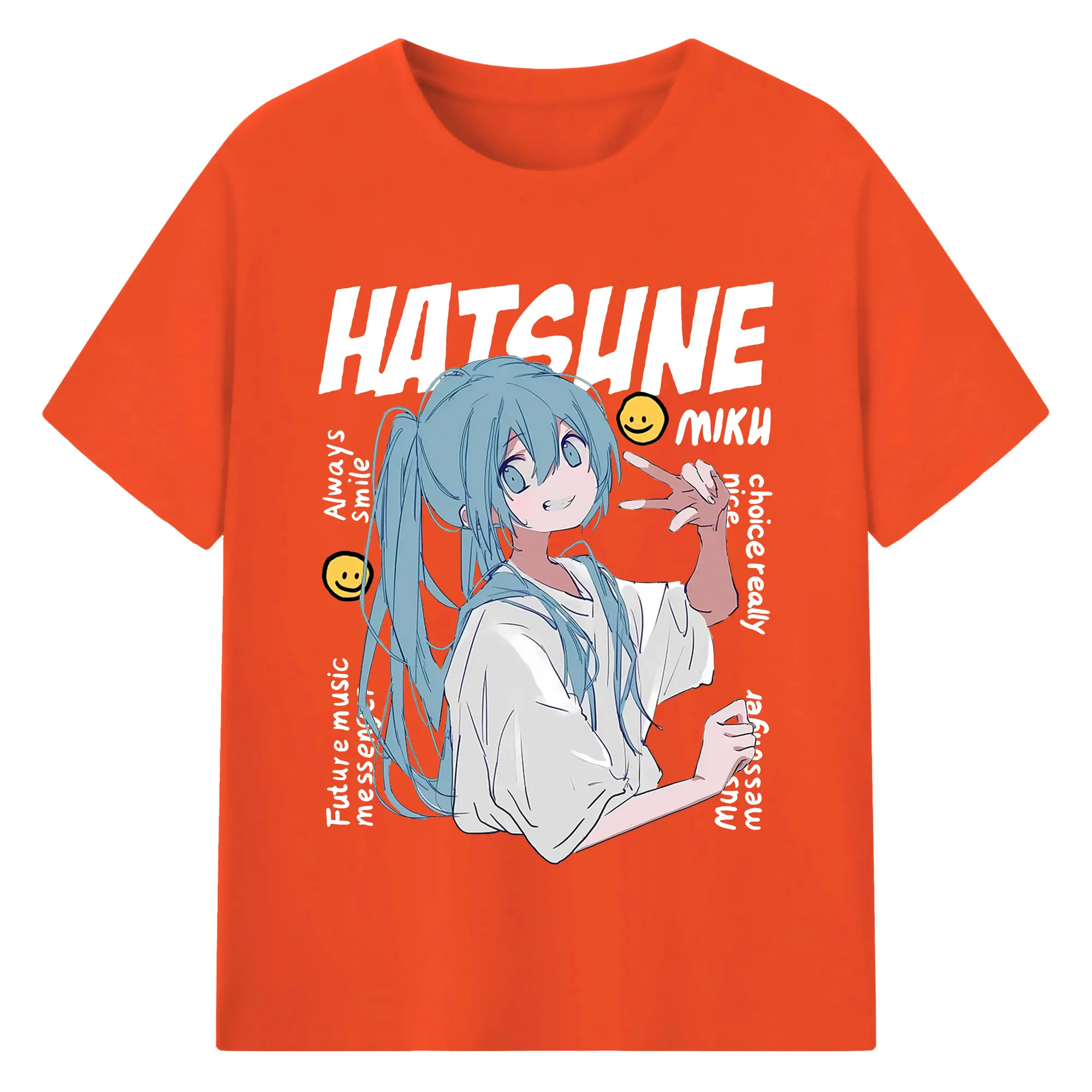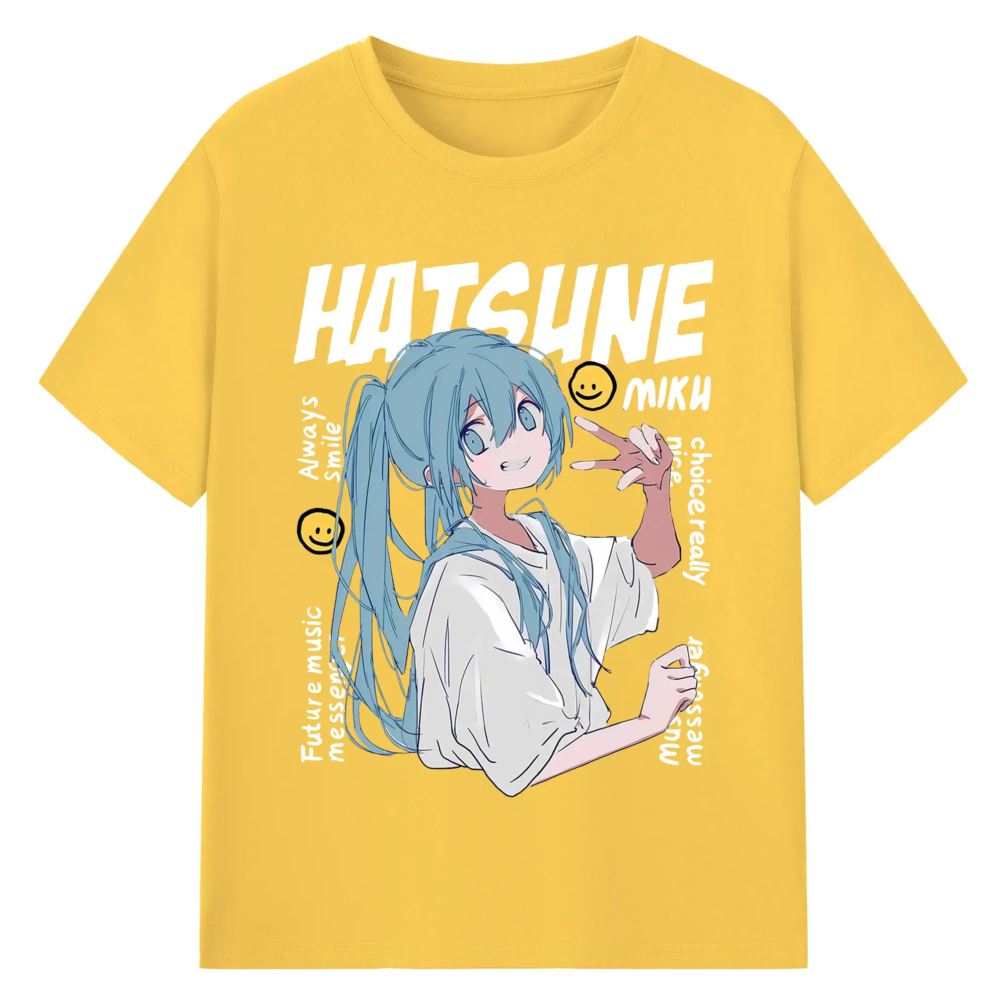 Hatsune Miku 二次元 グッズ太陽のような歌手 - 綿100% ヴィンテージ風 半袖Tシャツ ・ フロントプリント ・ 柔らか肌触り ・ 通気性 快適 ・ スポーツ カジュアル 外出用