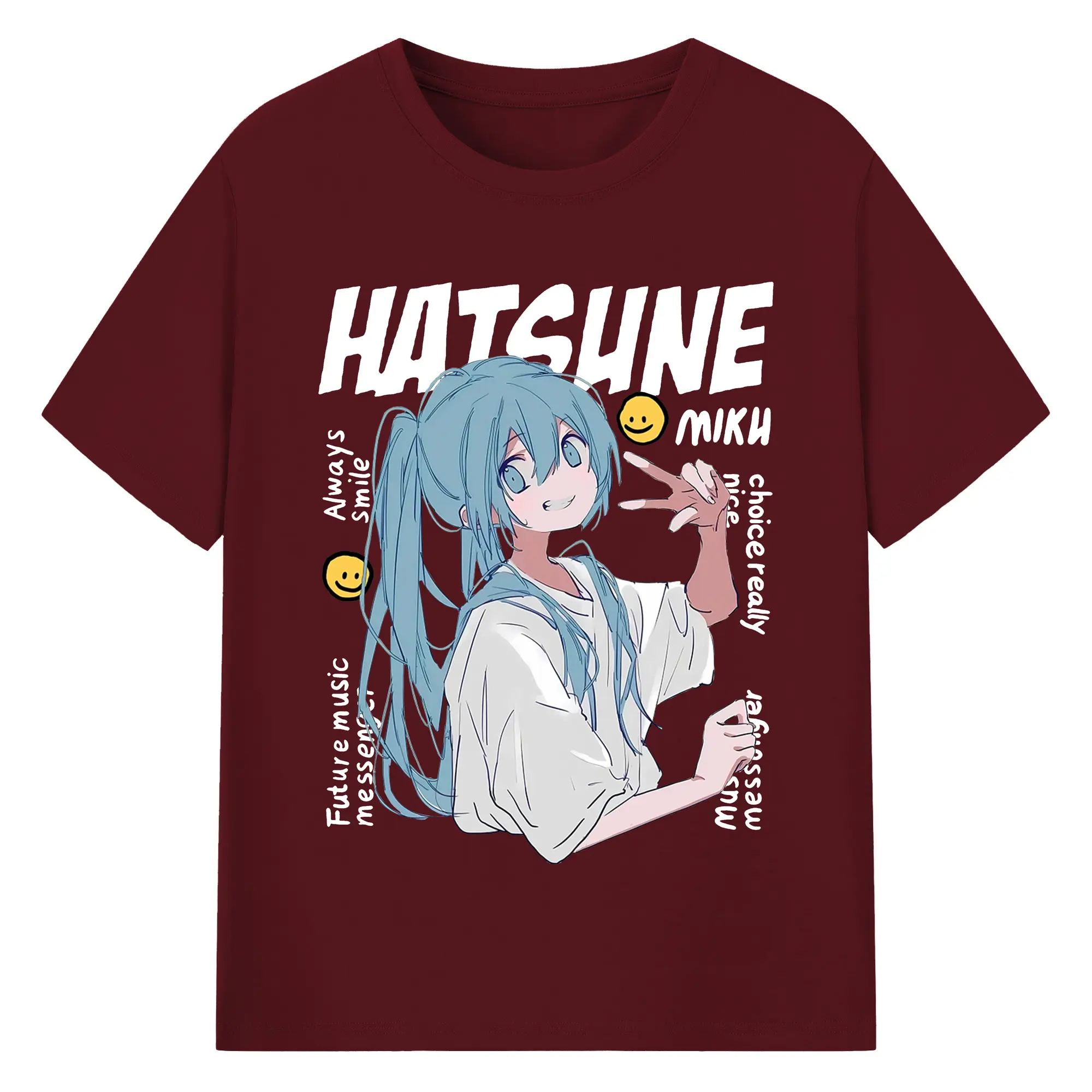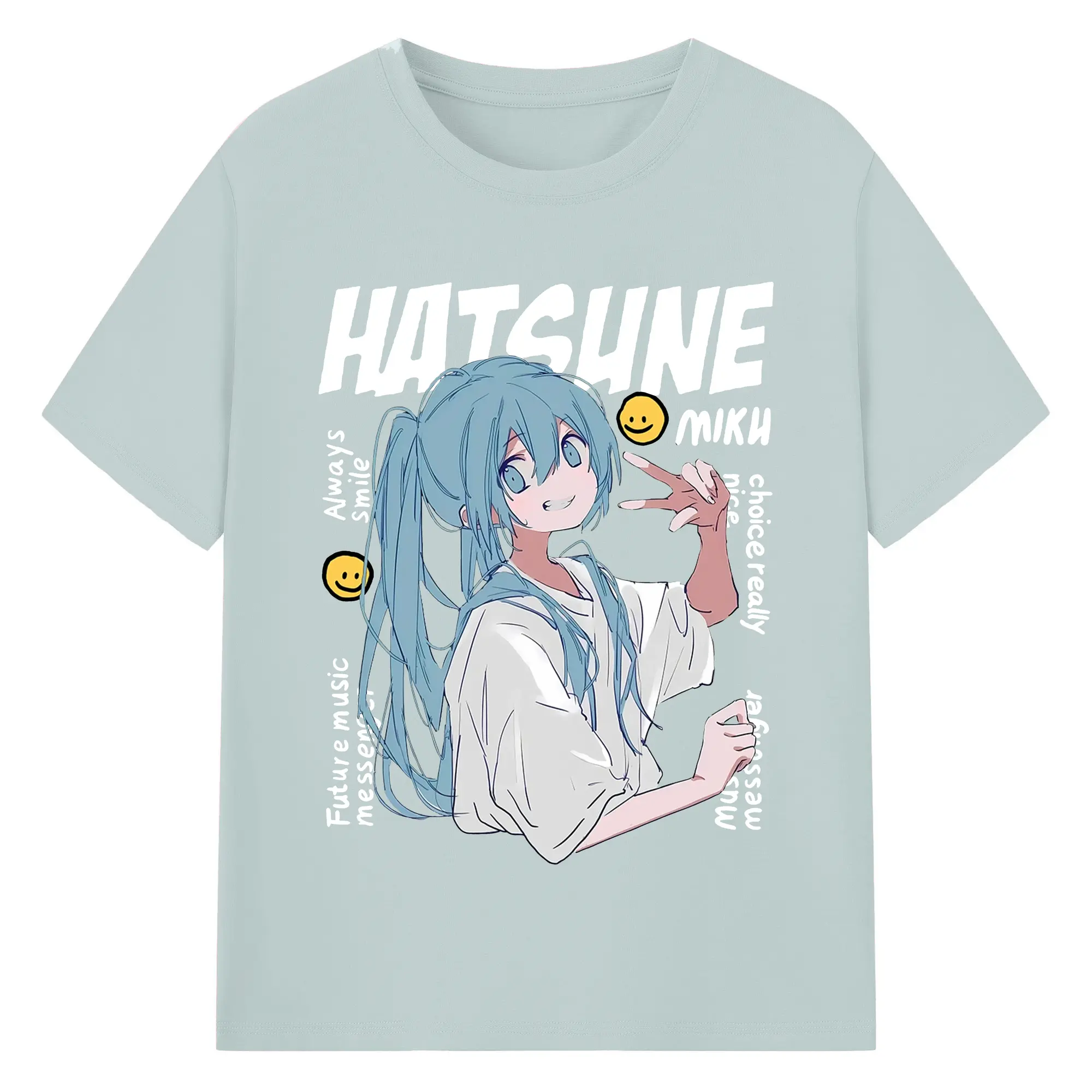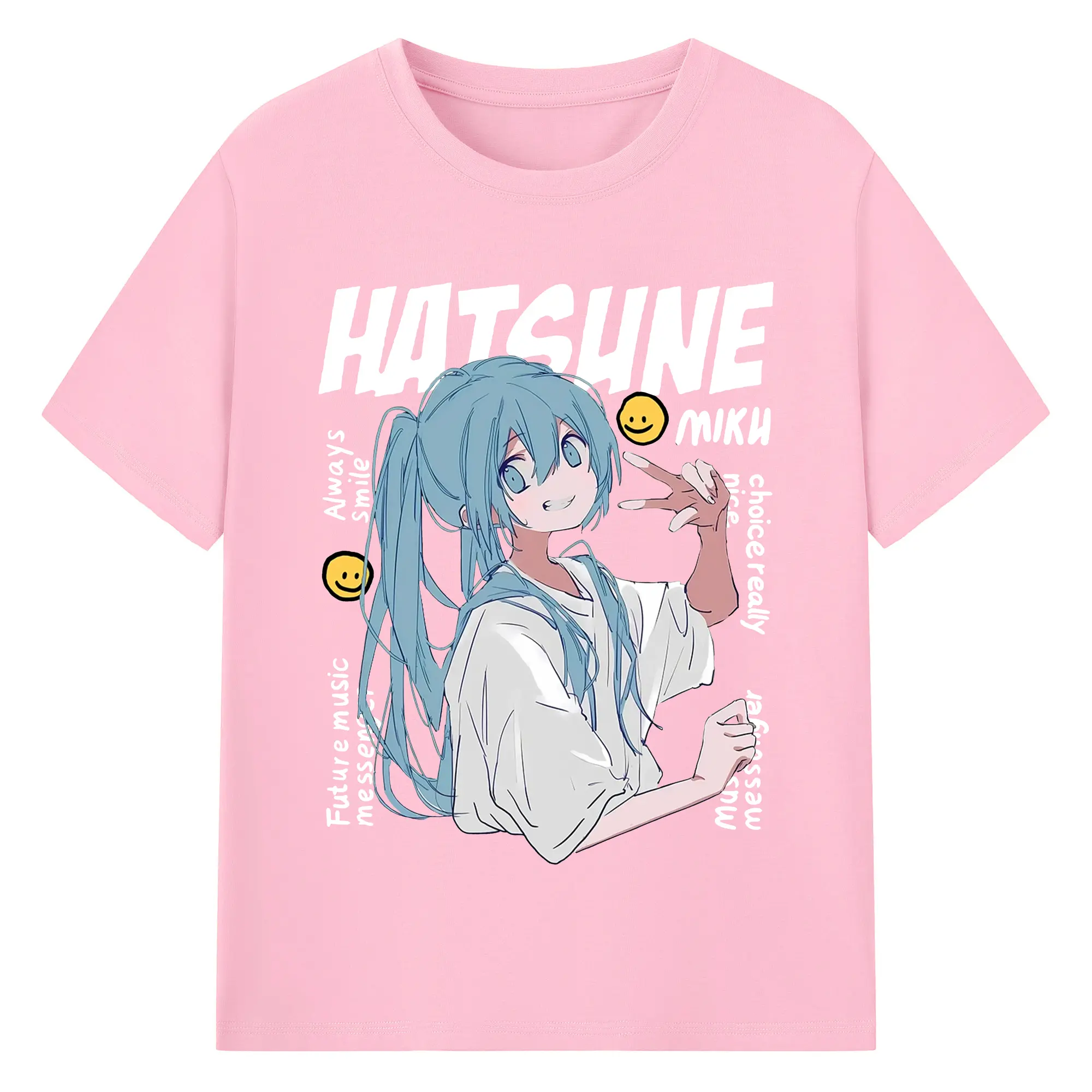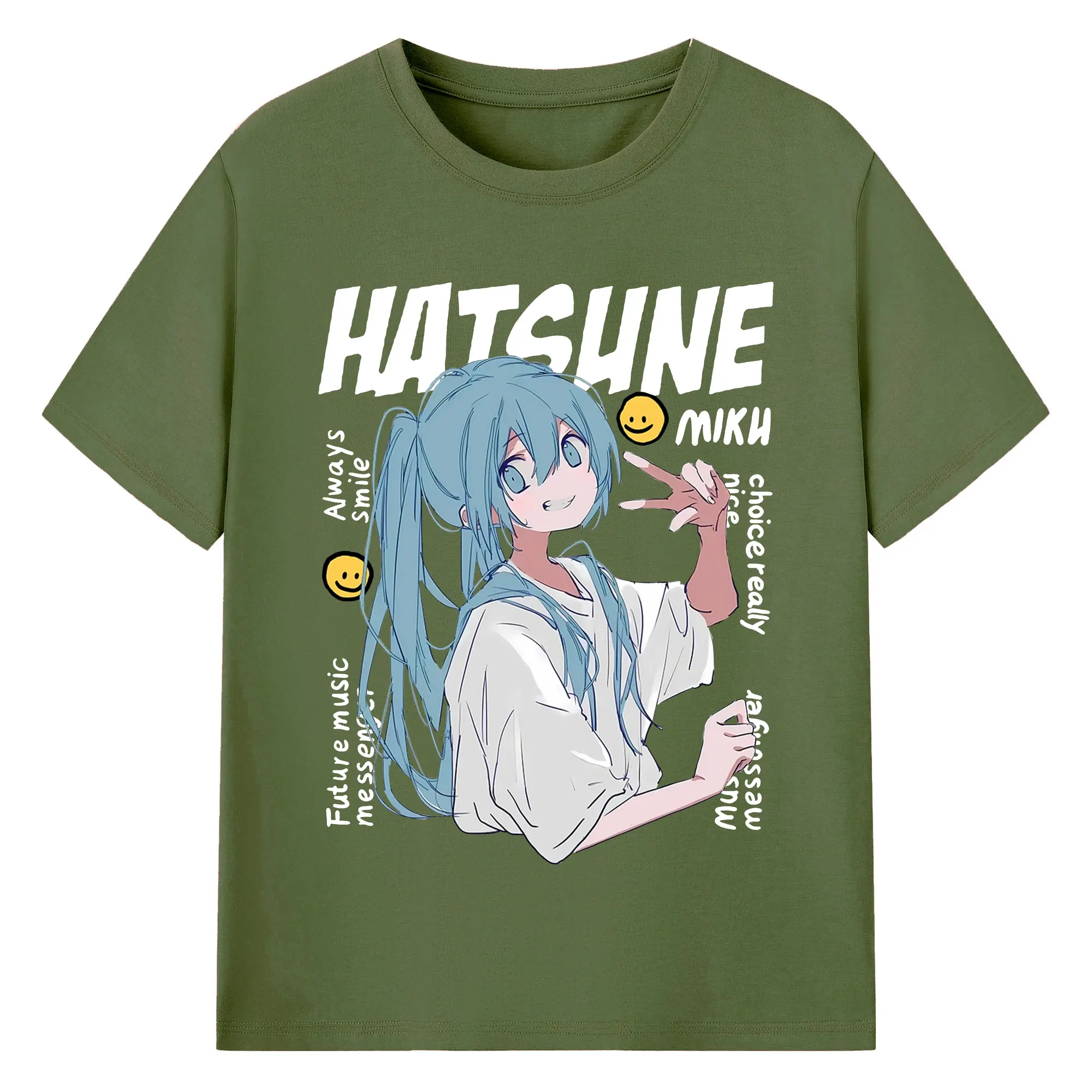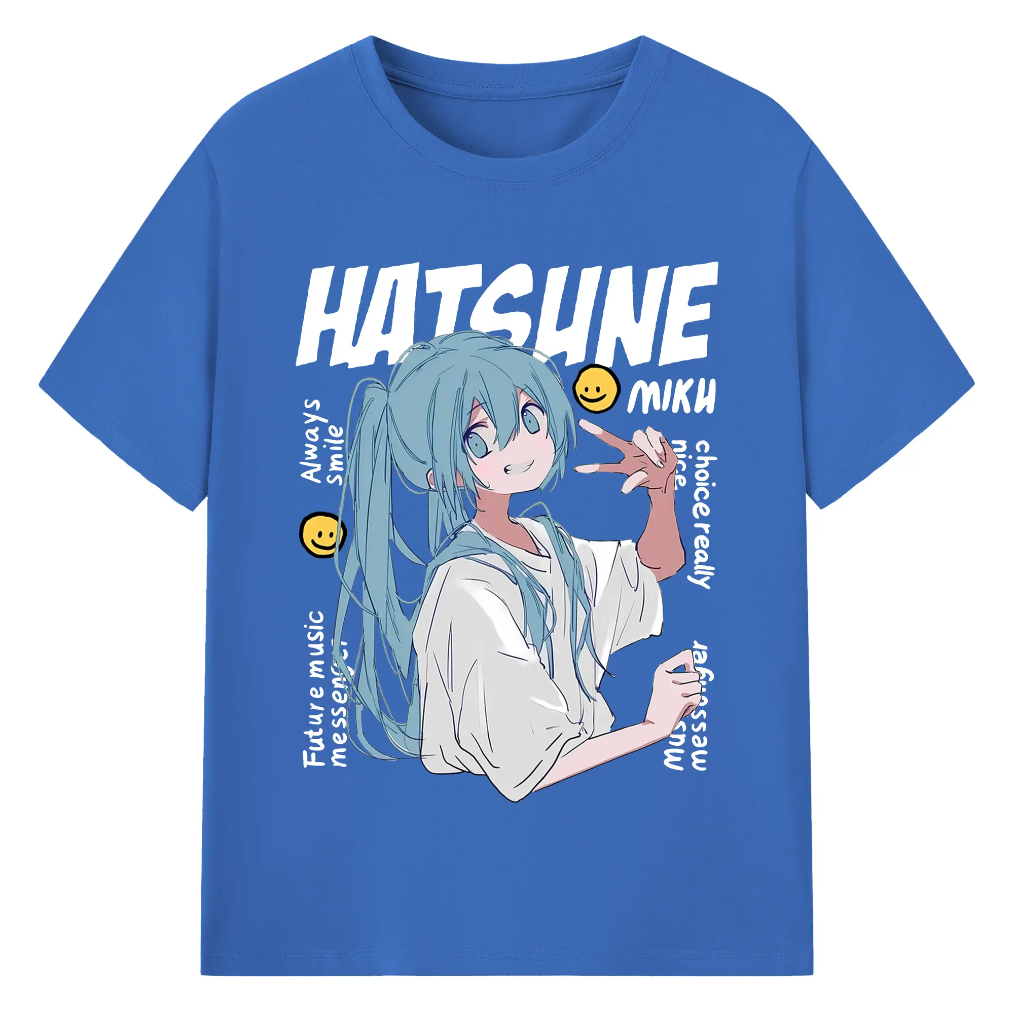 Hatsune Miku 二次元 グッズ太陽のような歌手 - 綿100% ヴィンテージ風 半袖Tシャツ ・ フロントプリント ・ 柔らか肌触り ・ 通気性 快適 ・ スポーツ カジュアル 外出用
