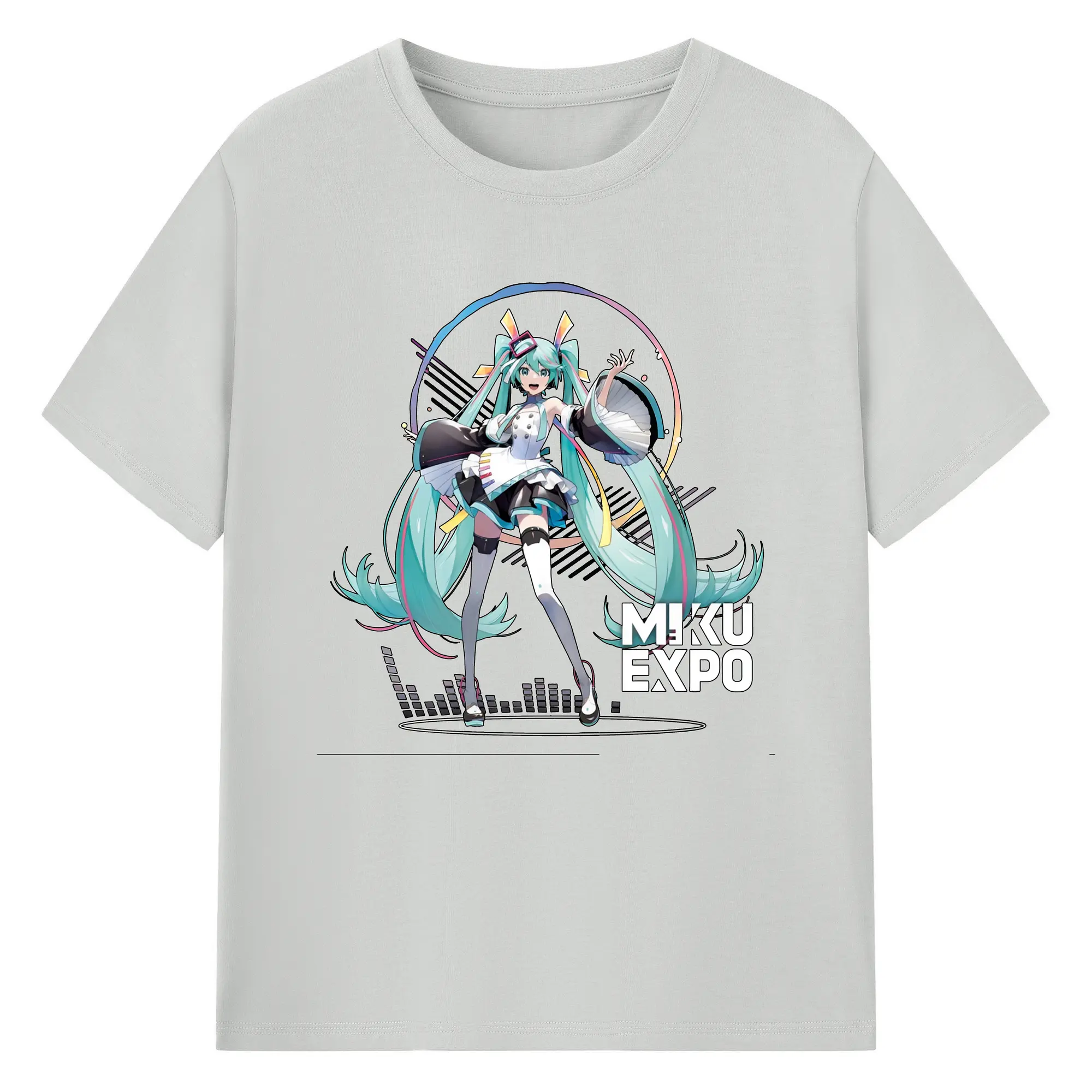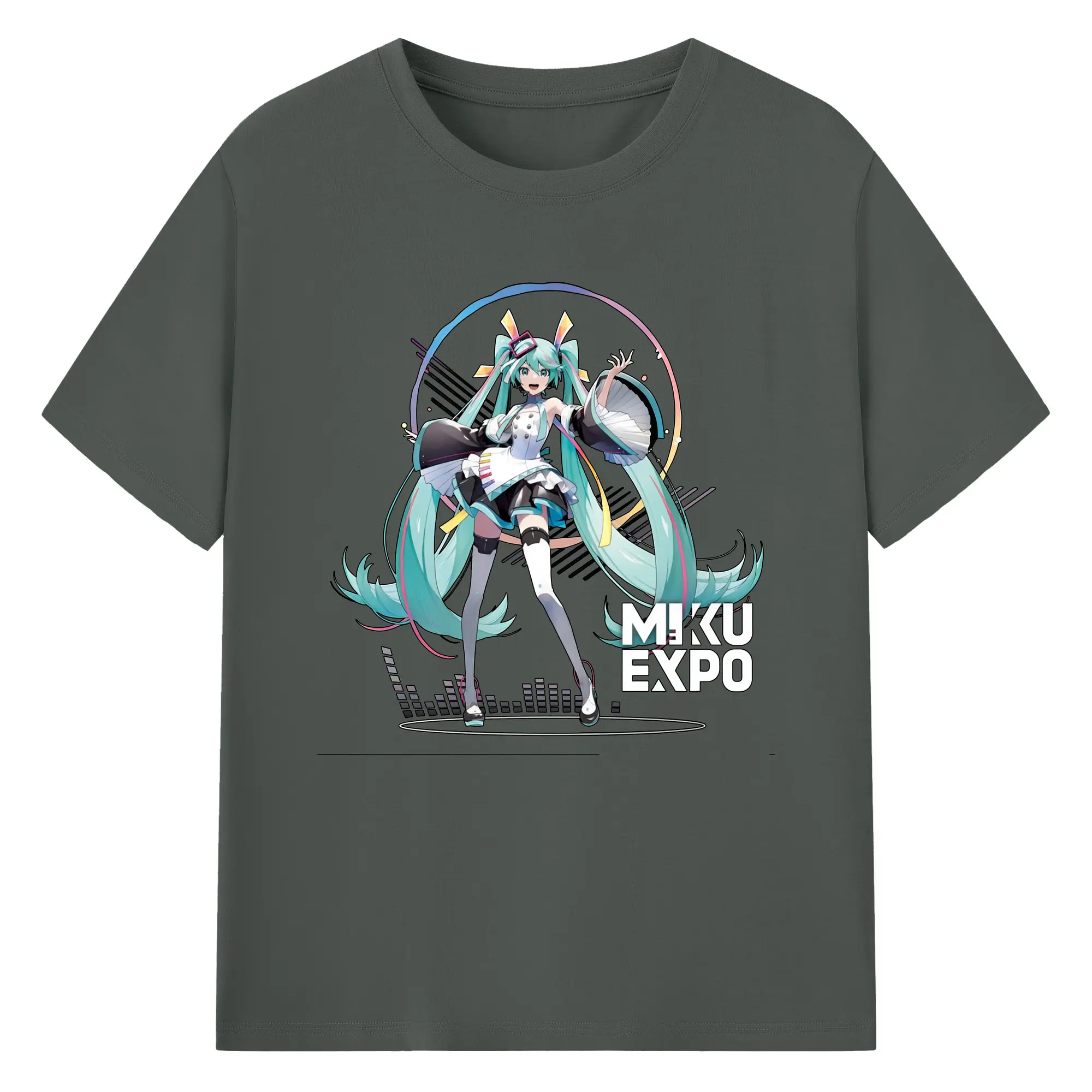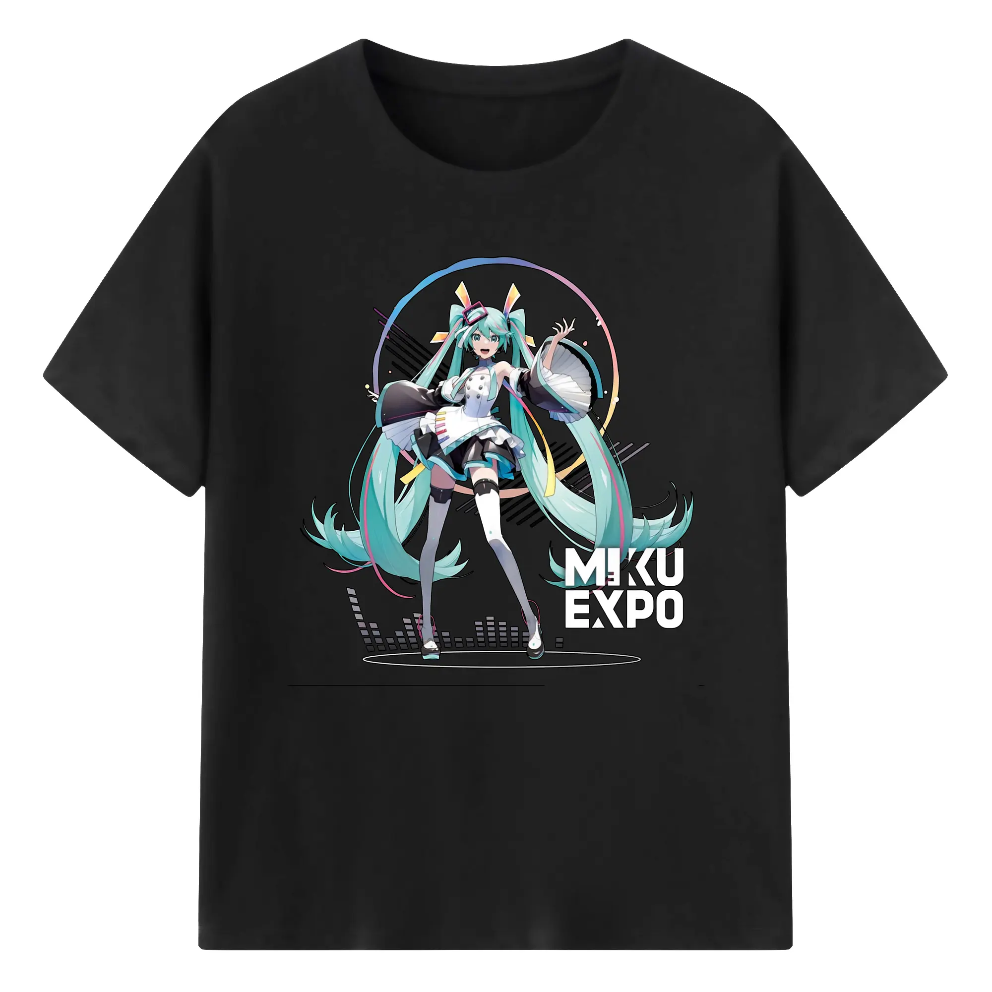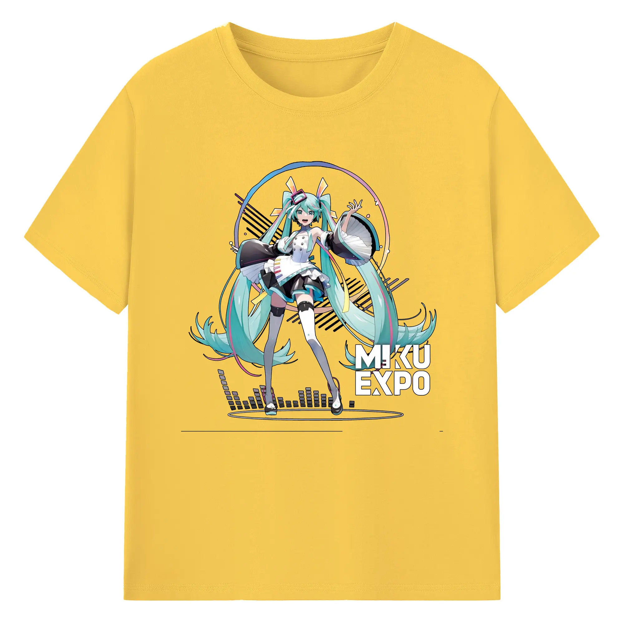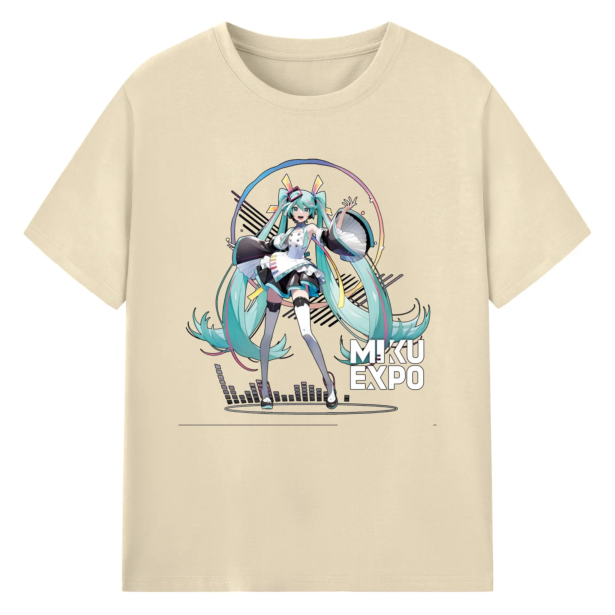 Hatsune Miku EXPO - 綿100% ヴィンテージ風 半袖Tシャツ ・ フロントプリント ・ 柔らか肌触り ・ 通気性 快適 ・ スポーツ カジュアル 外出用