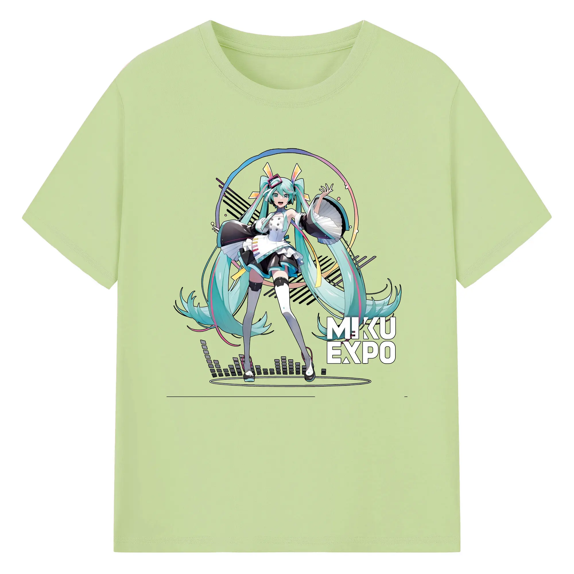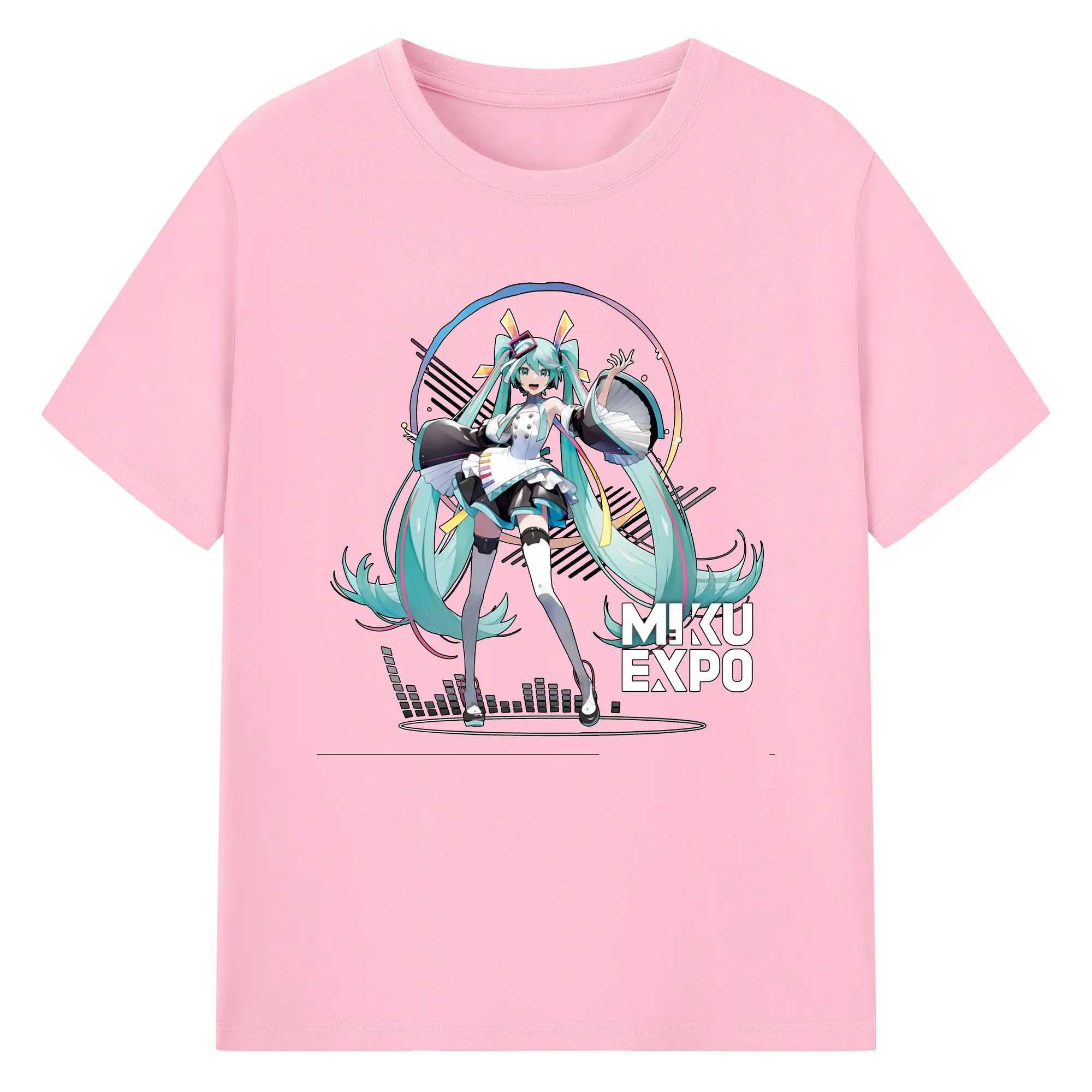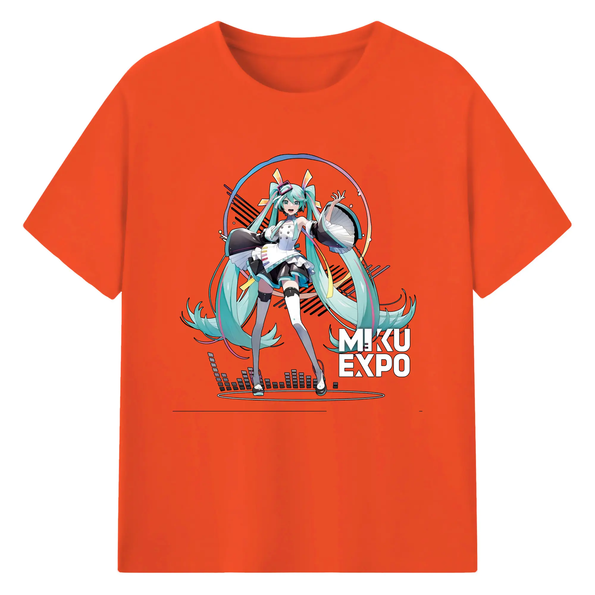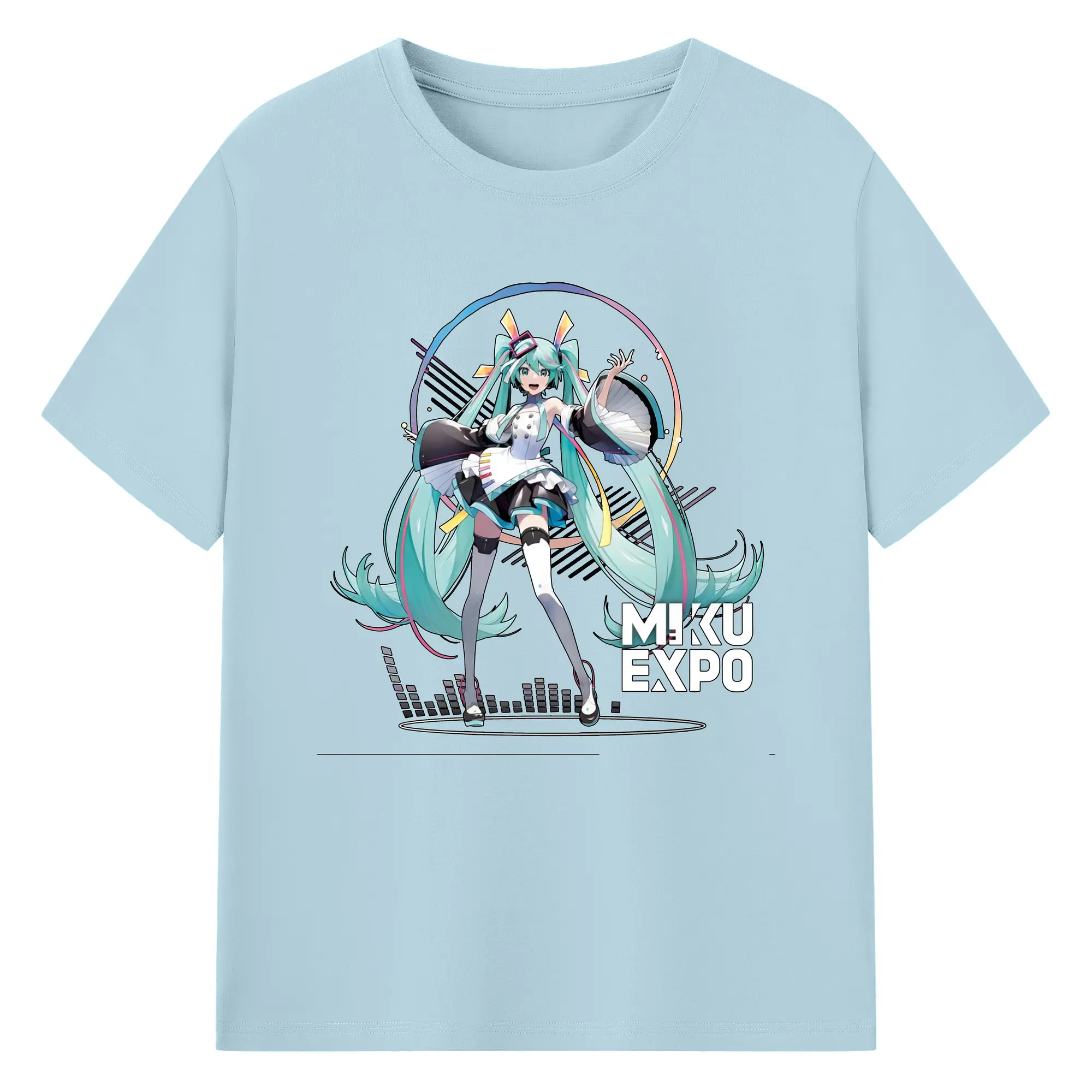 Hatsune Miku EXPO - 綿100% ヴィンテージ風 半袖Tシャツ ・ フロントプリント ・ 柔らか肌触り ・ 通気性 快適 ・ スポーツ カジュアル 外出用