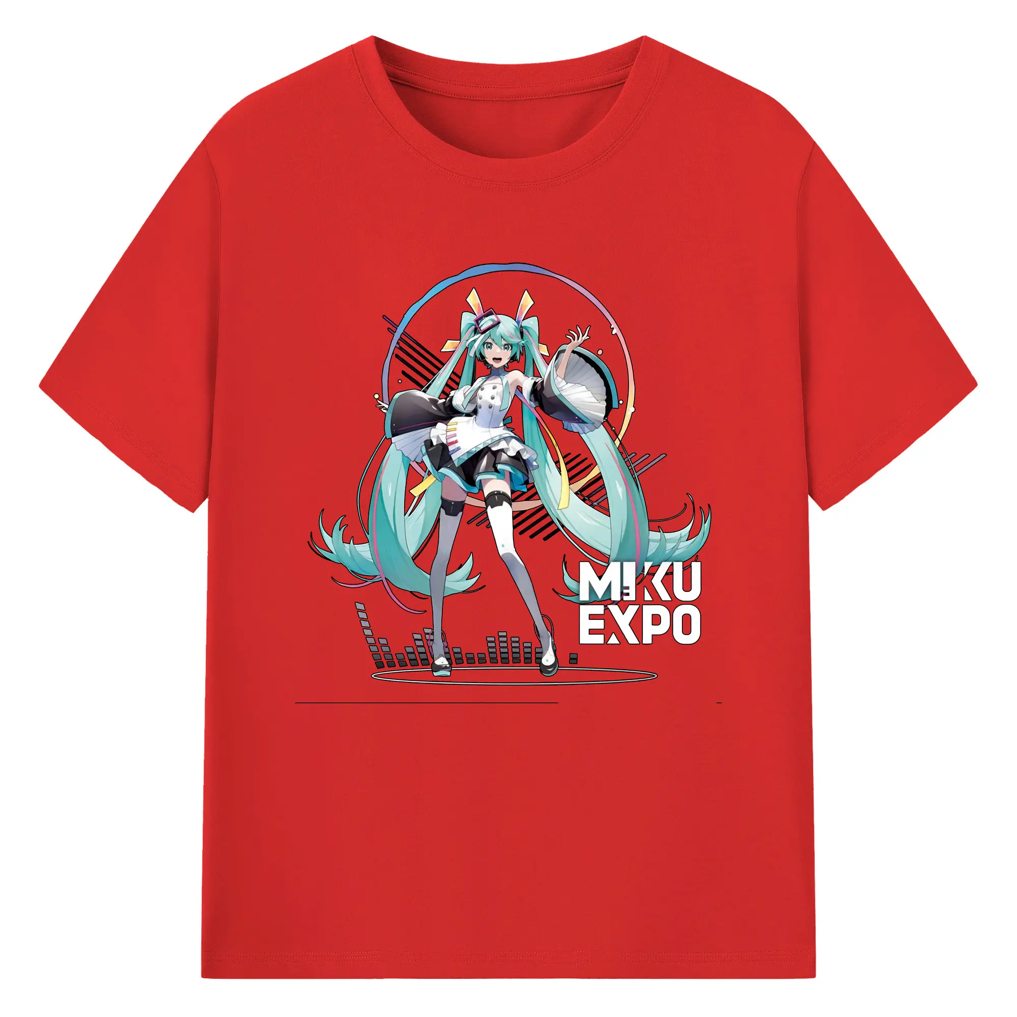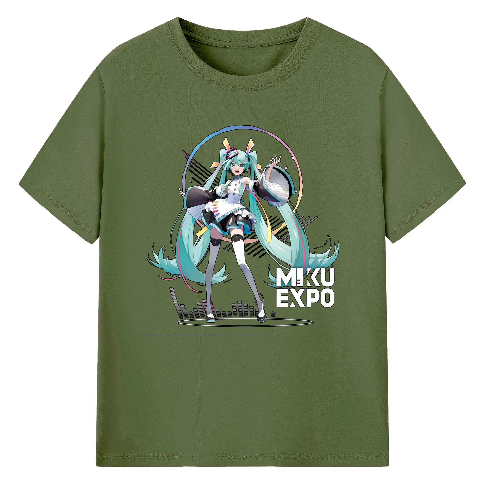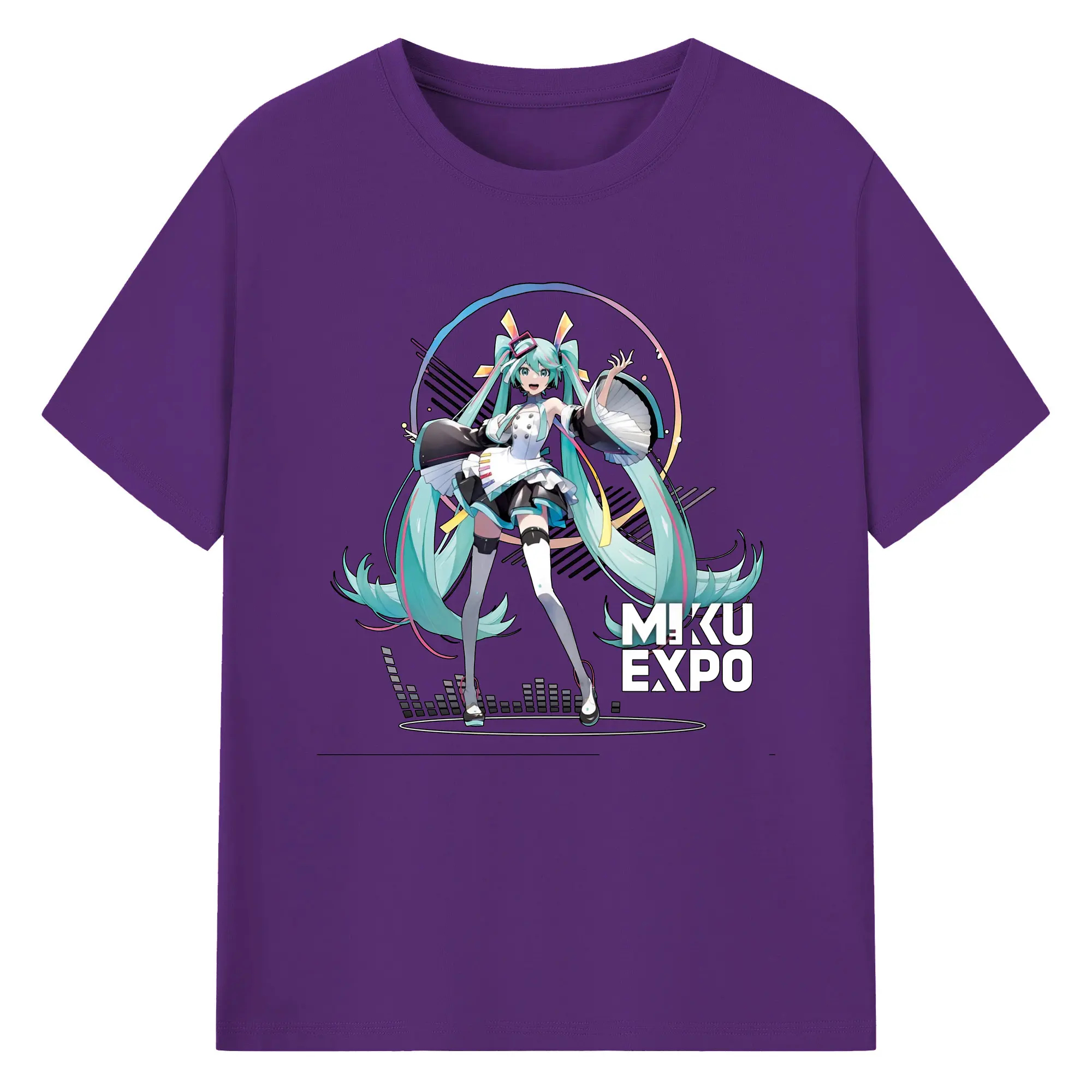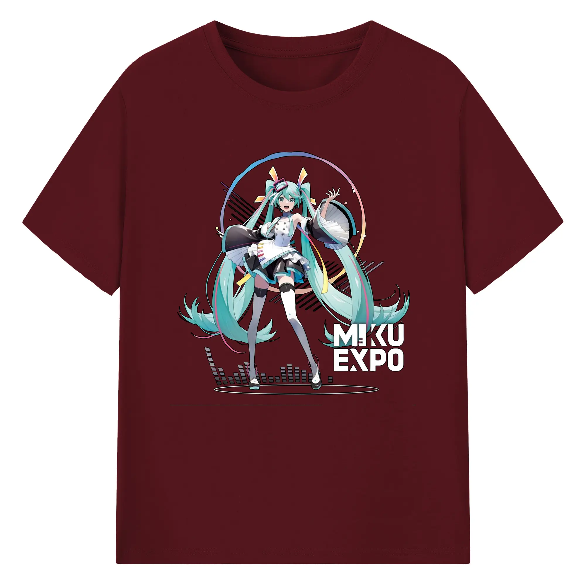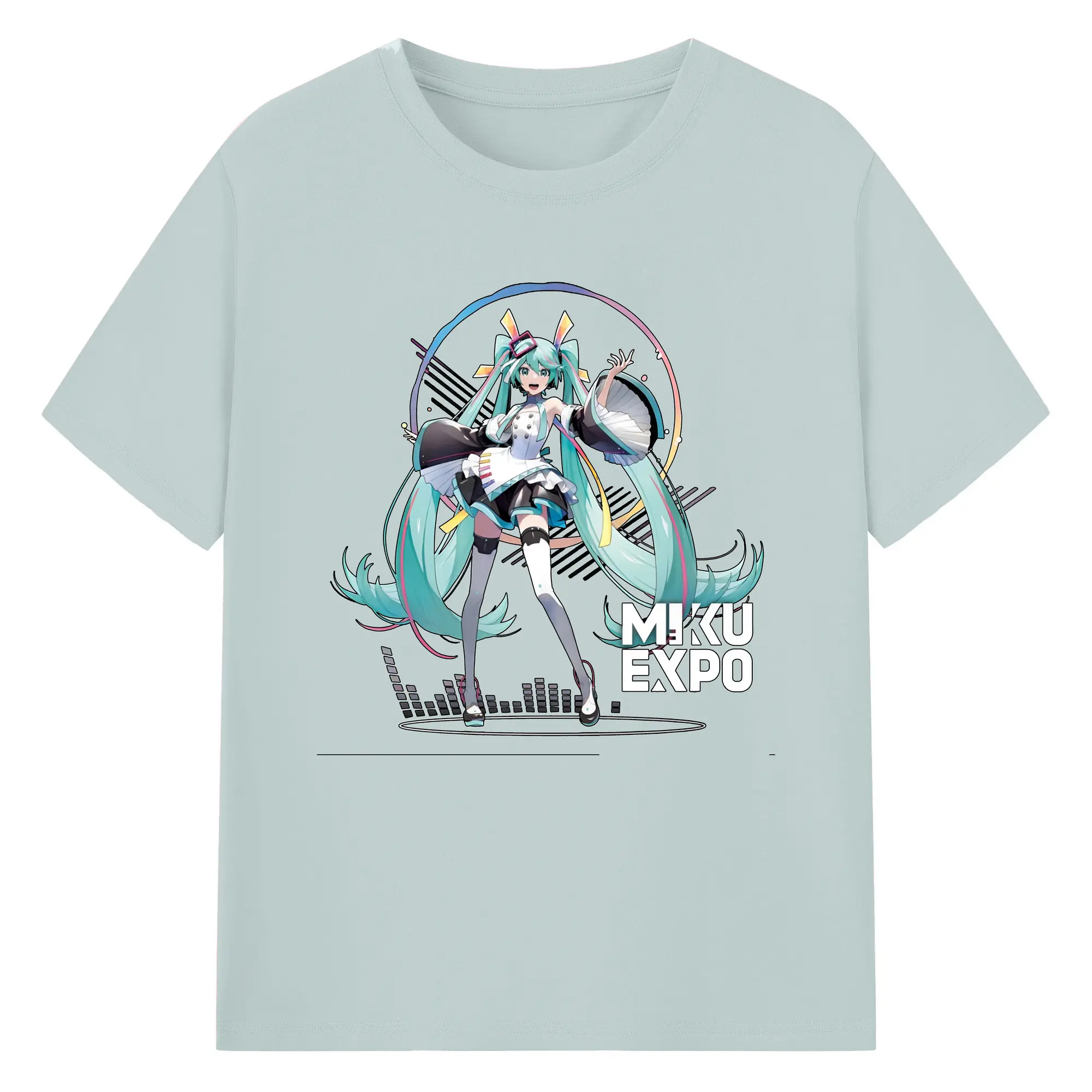 Hatsune Miku EXPO - 綿100% ヴィンテージ風 半袖Tシャツ ・ フロントプリント ・ 柔らか肌触り ・ 通気性 快適 ・ スポーツ カジュアル 外出用
