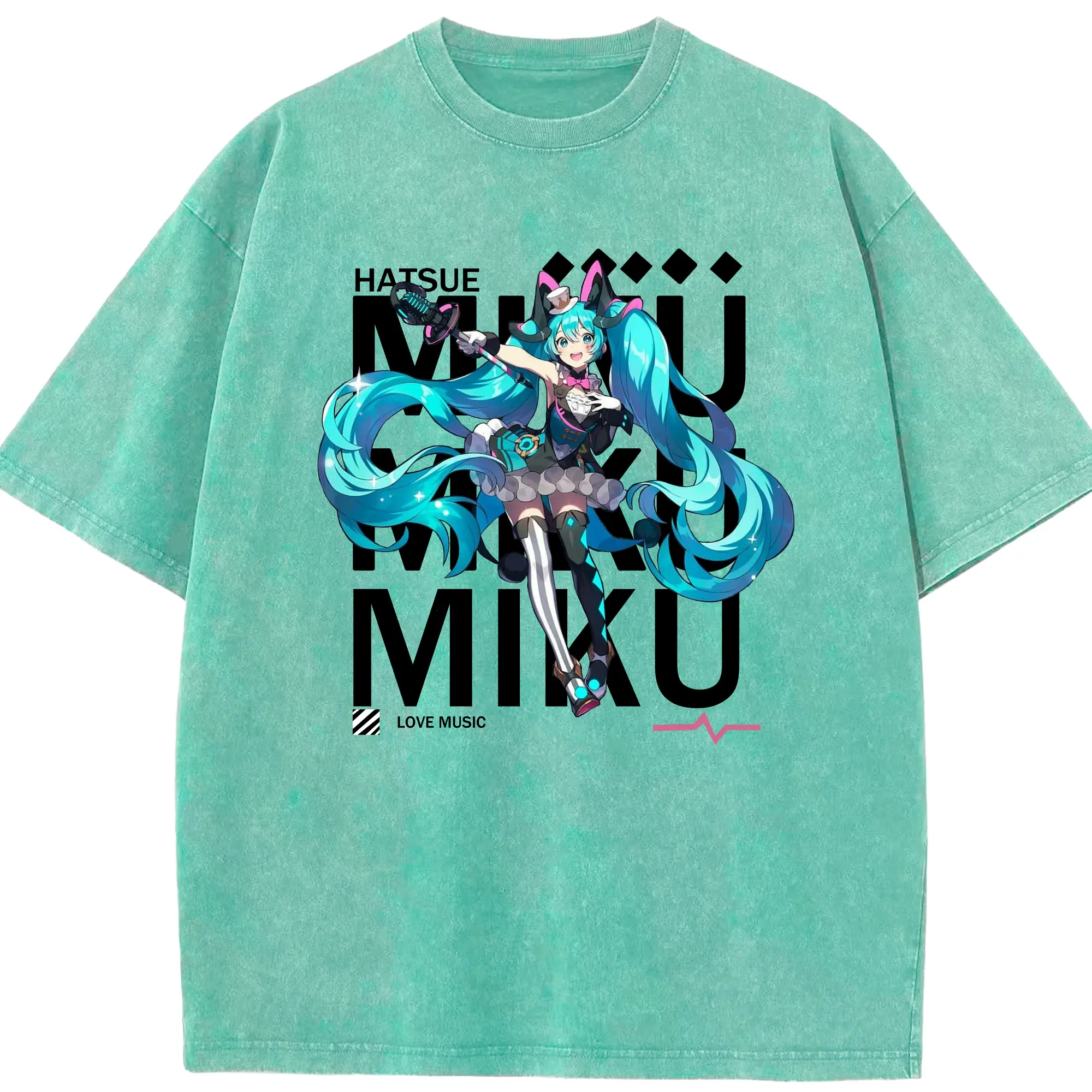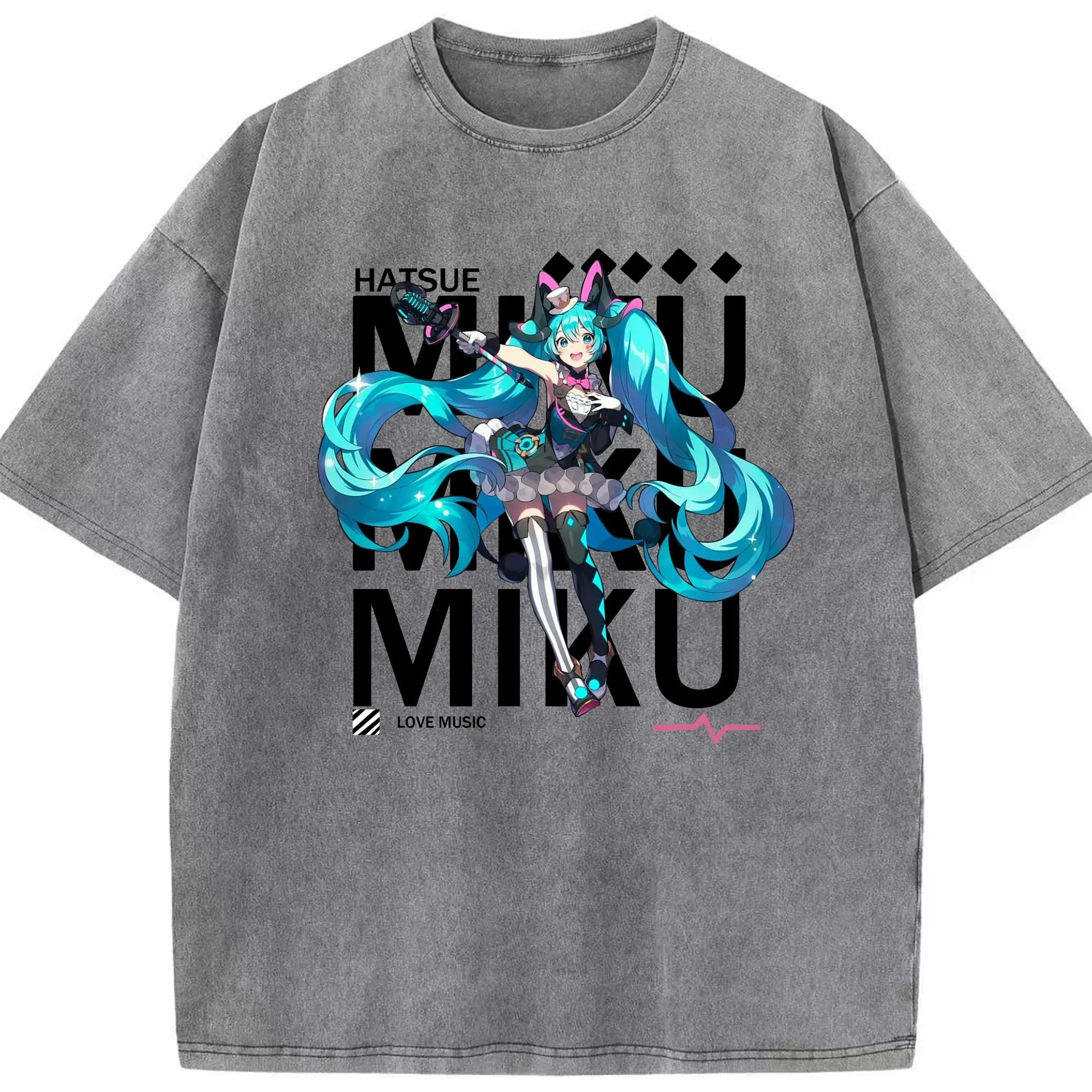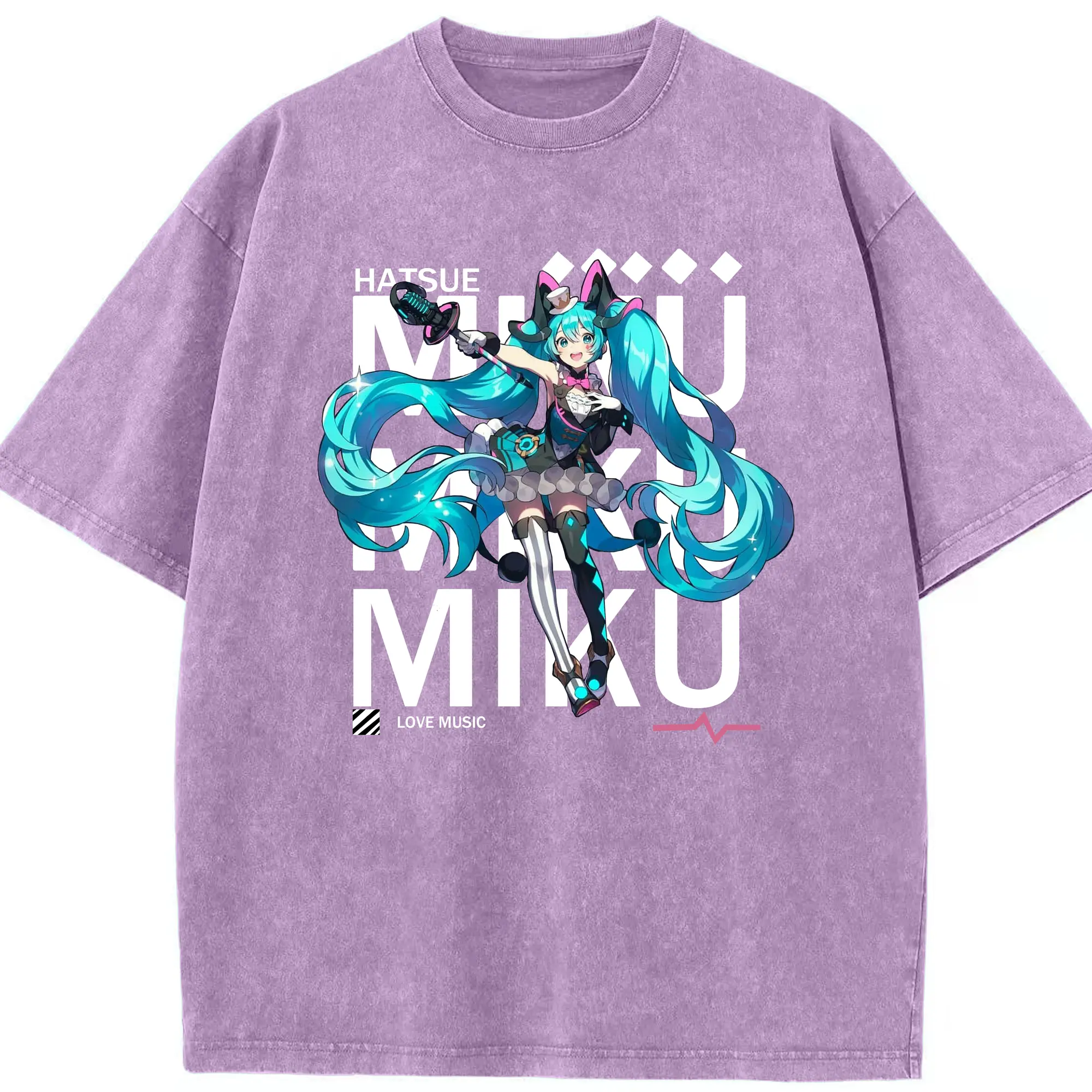 Hatsune Miku LOVE MUSIC - 綿100% 半袖Tシャツ ・ フロントプリント ・ 快適 通気性 ・ 日常使い 散歩 スポーツ用