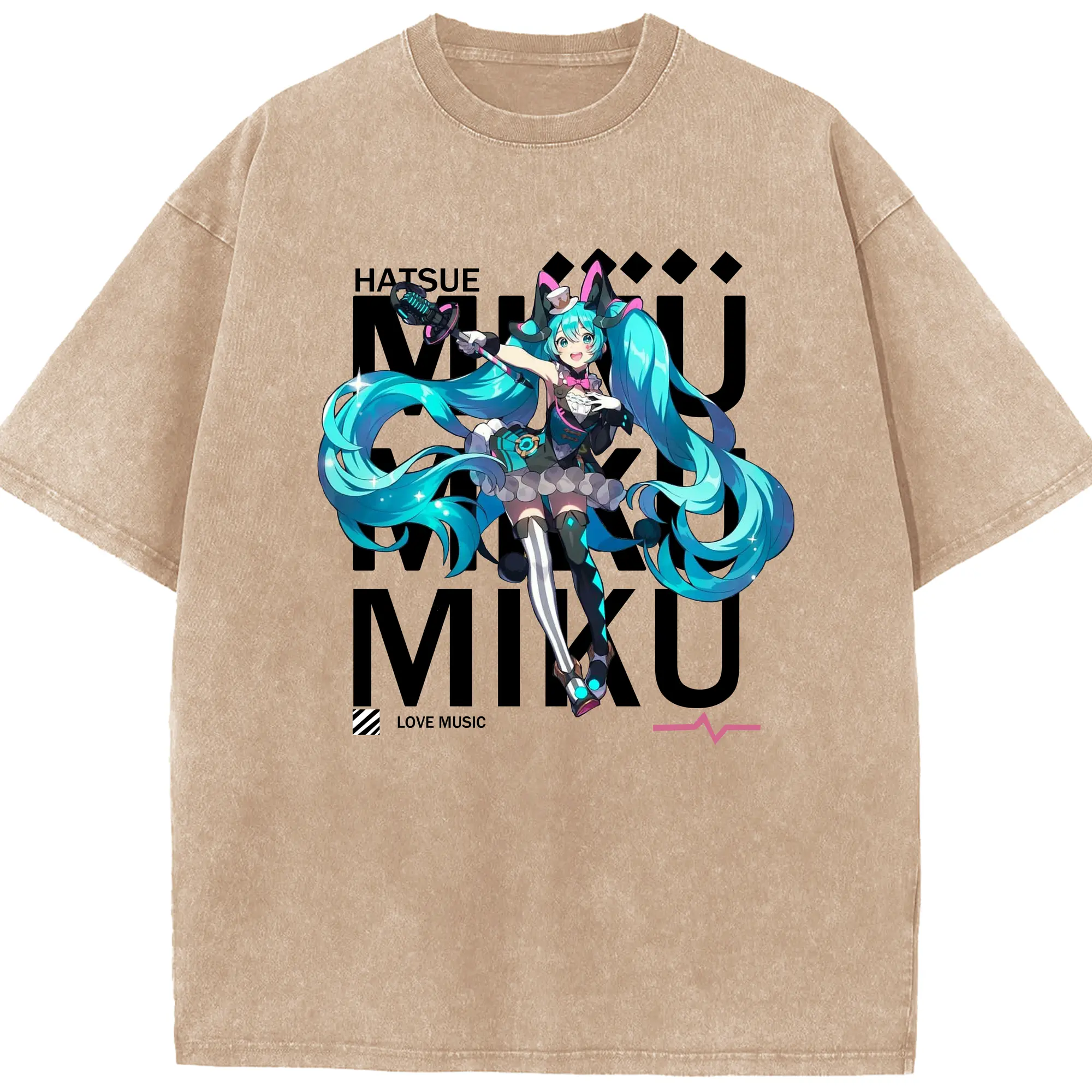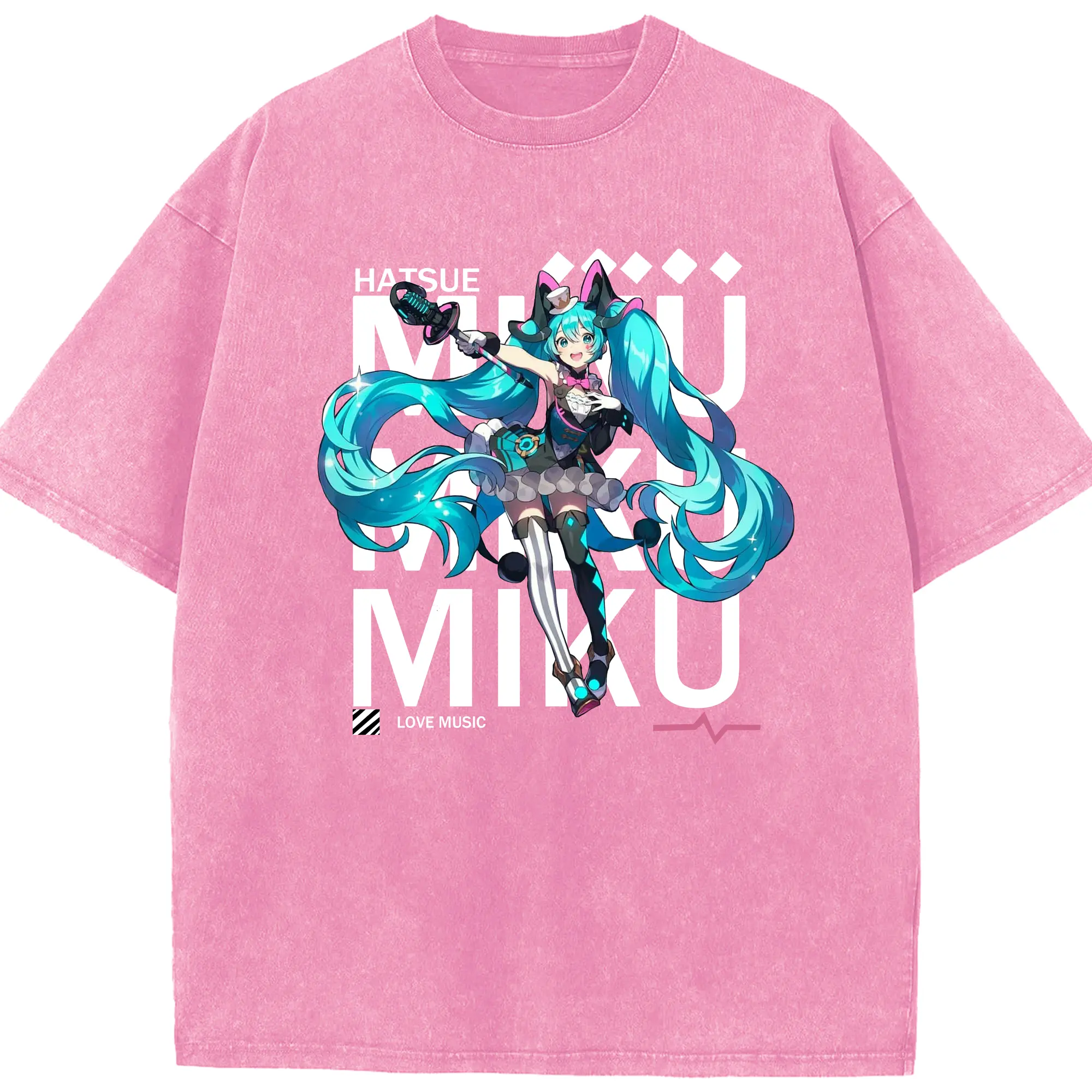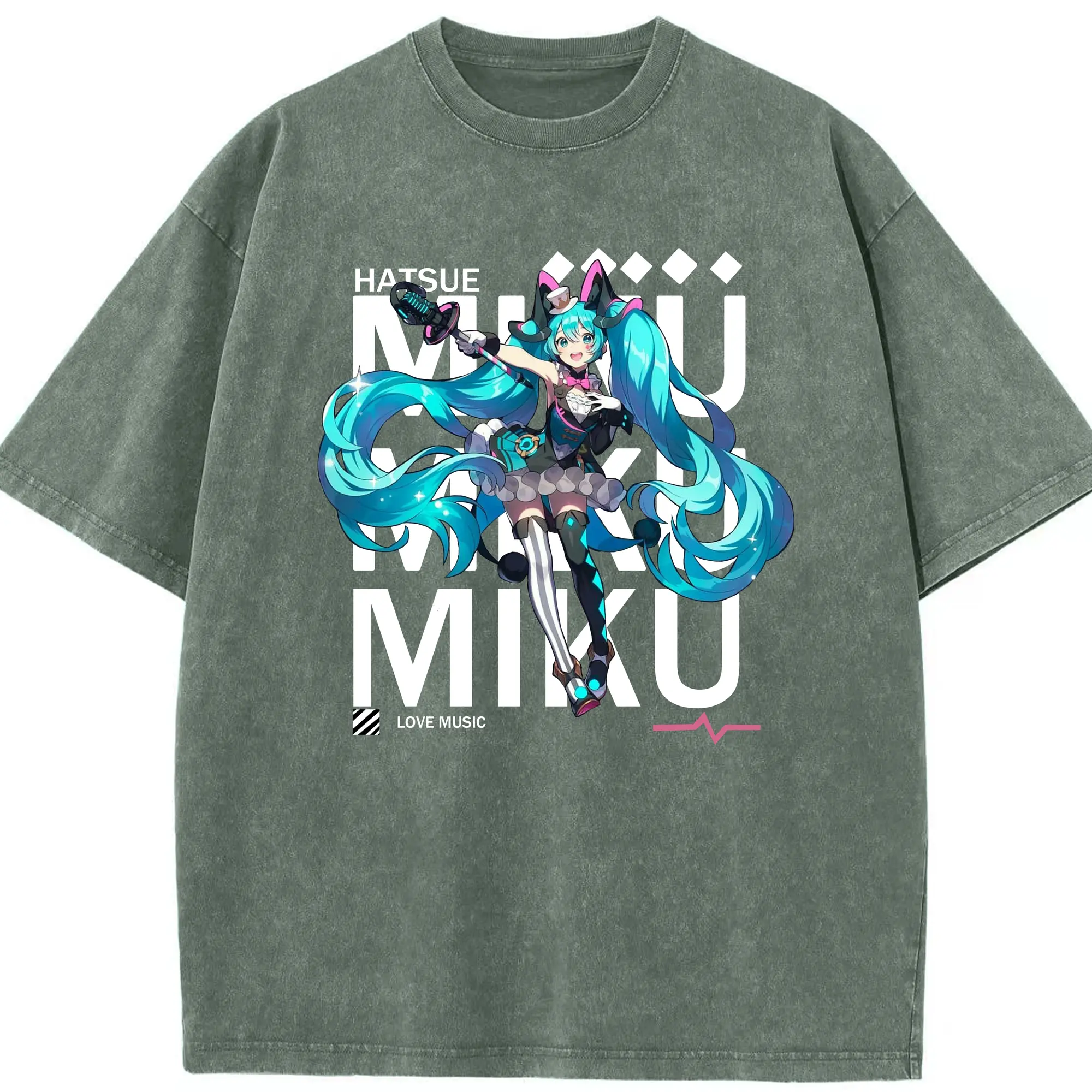 Hatsune Miku LOVE MUSIC - 綿100% 半袖Tシャツ ・ フロントプリント ・ 快適 通気性 ・ 日常使い 散歩 スポーツ用