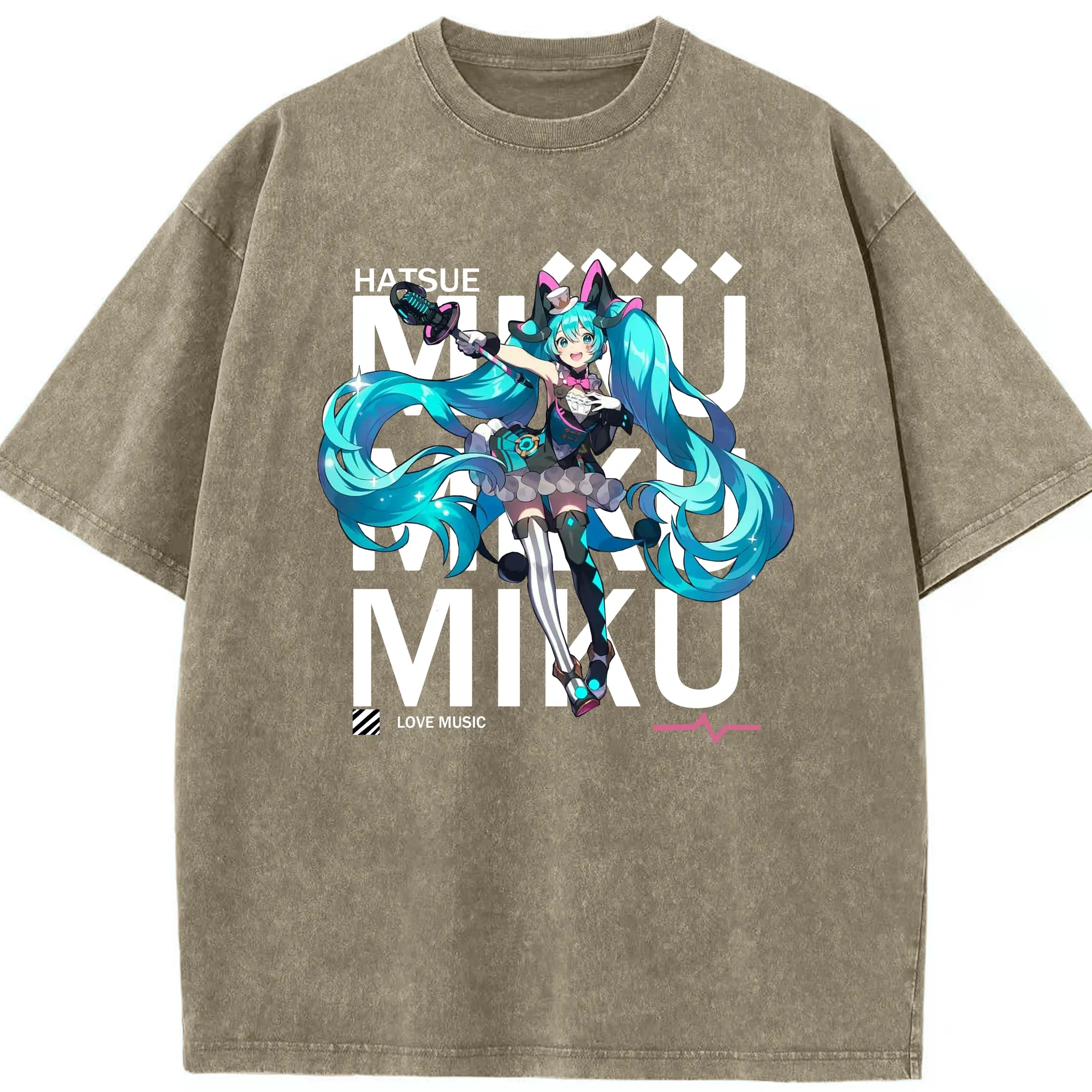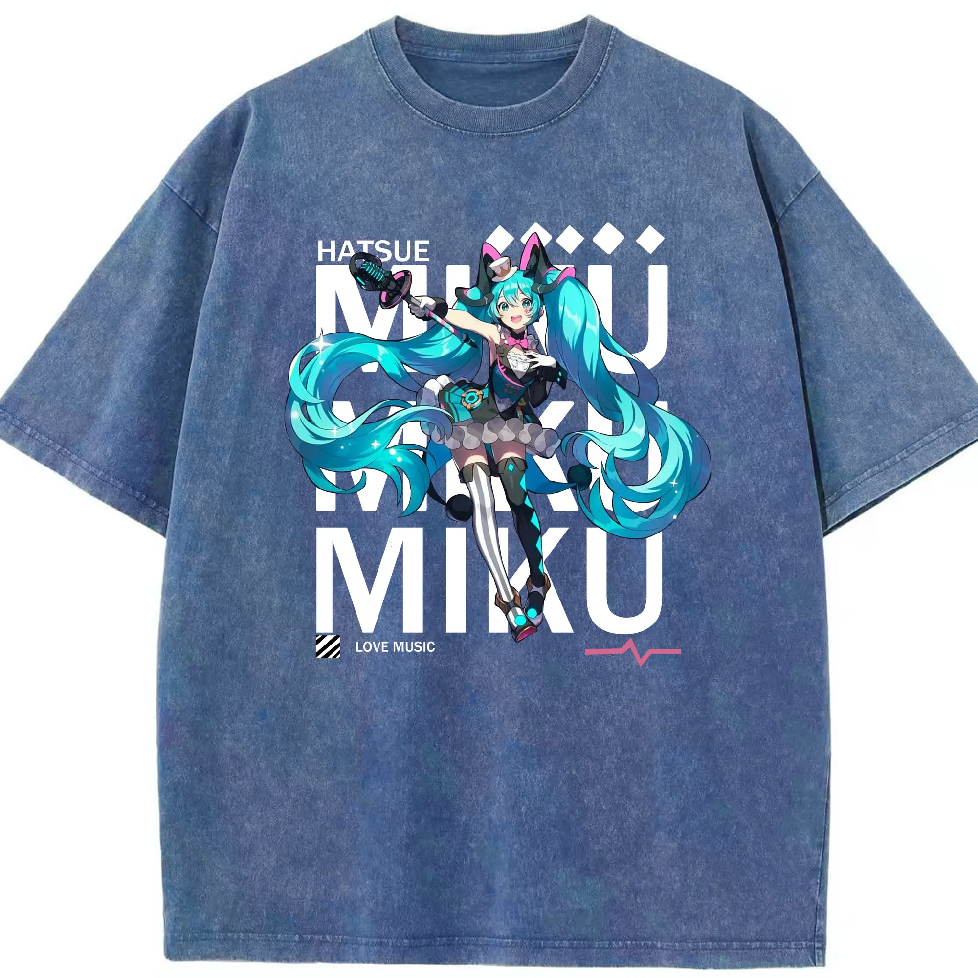 初音ミク かっこいい デザイン - 綿100% ヴィンテージ風 半袖Tシャツ ・ フロントプリント ・ 柔らか肌触り ・ 通気性 快適 ・ スポーツ カジュアル 外出用