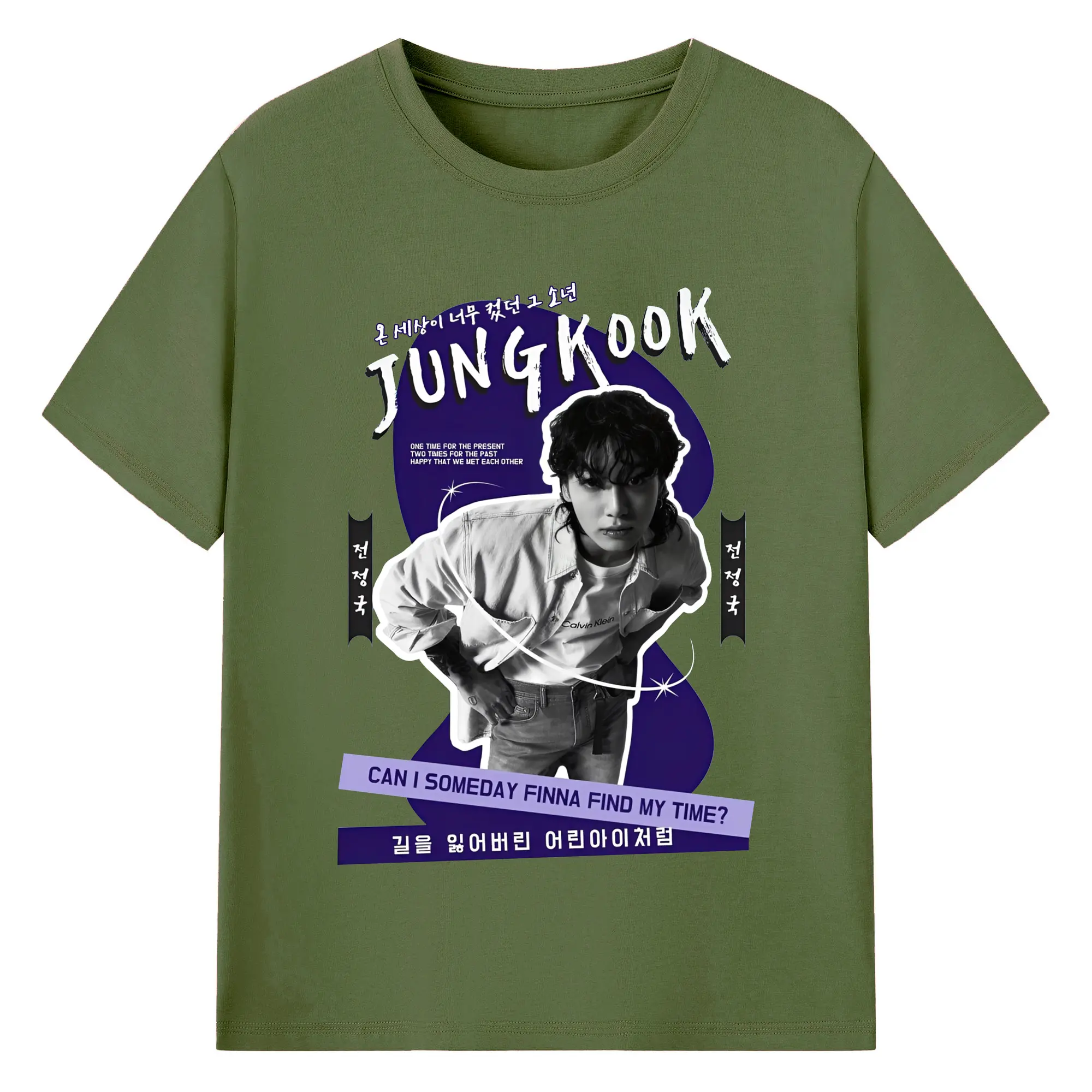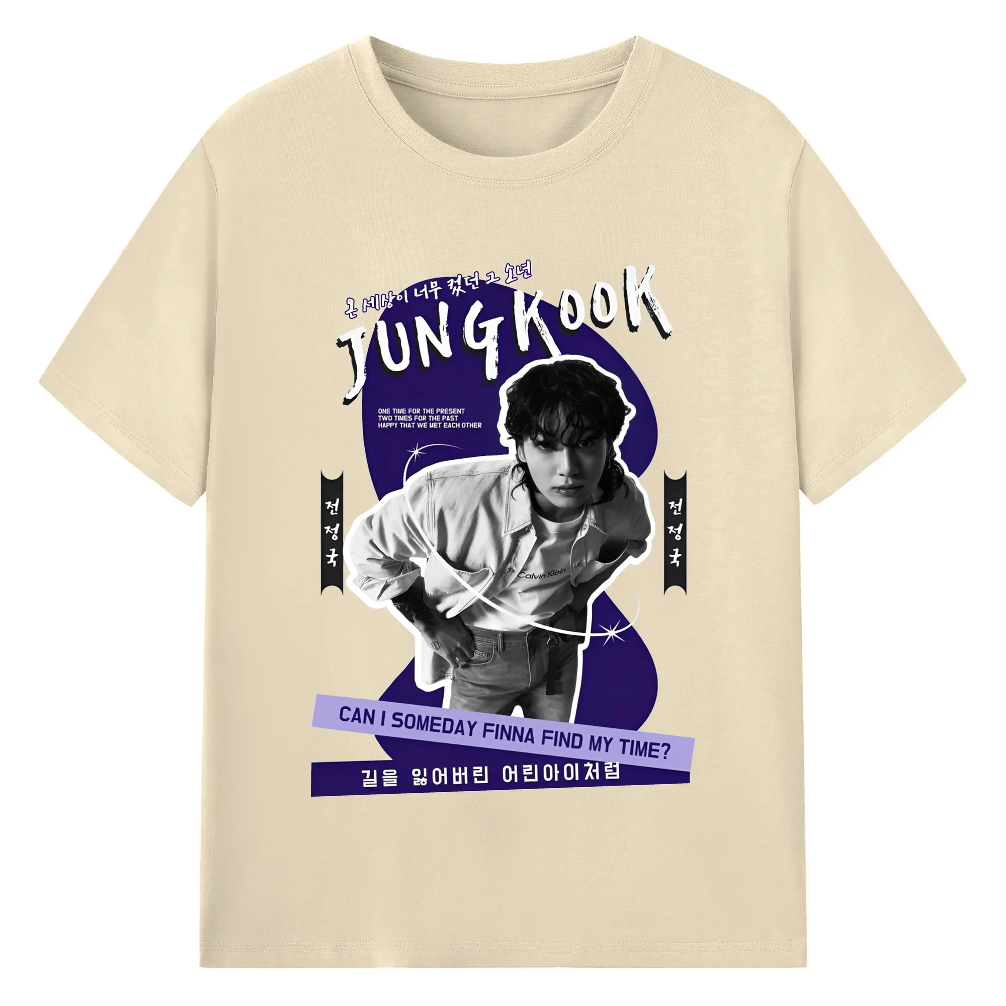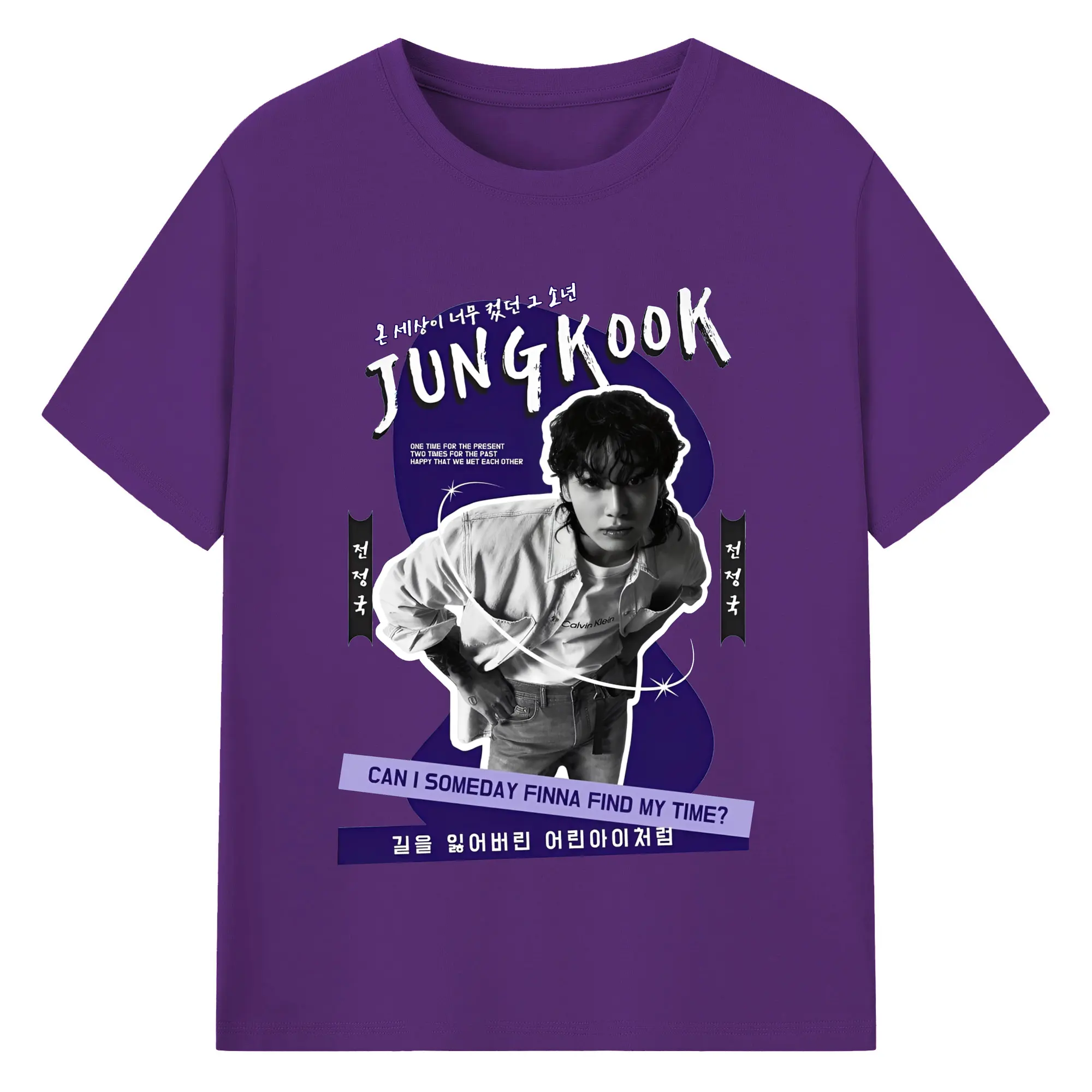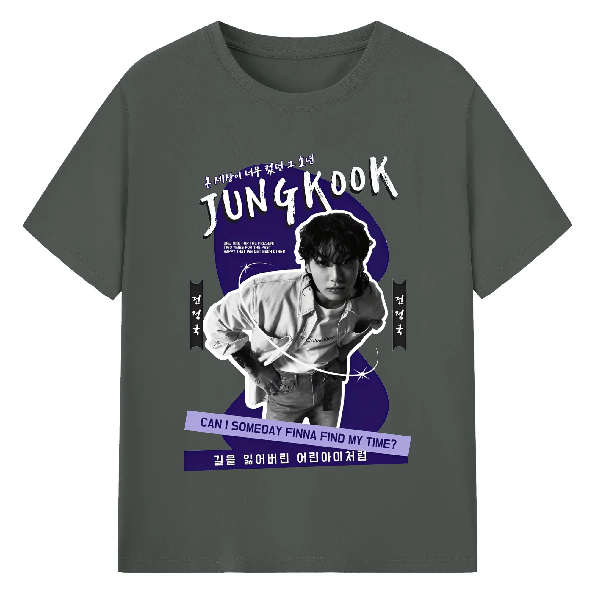 K-POP ジョングク ファンアート 韓流アイドル 推し活コーデ - 綿100% ヴィンテージ風 半袖Tシャツ ・ フロントプリント ・ 柔らか肌触り ・ 通気性 快適 ・ スポーツ カジュアル 外出用
