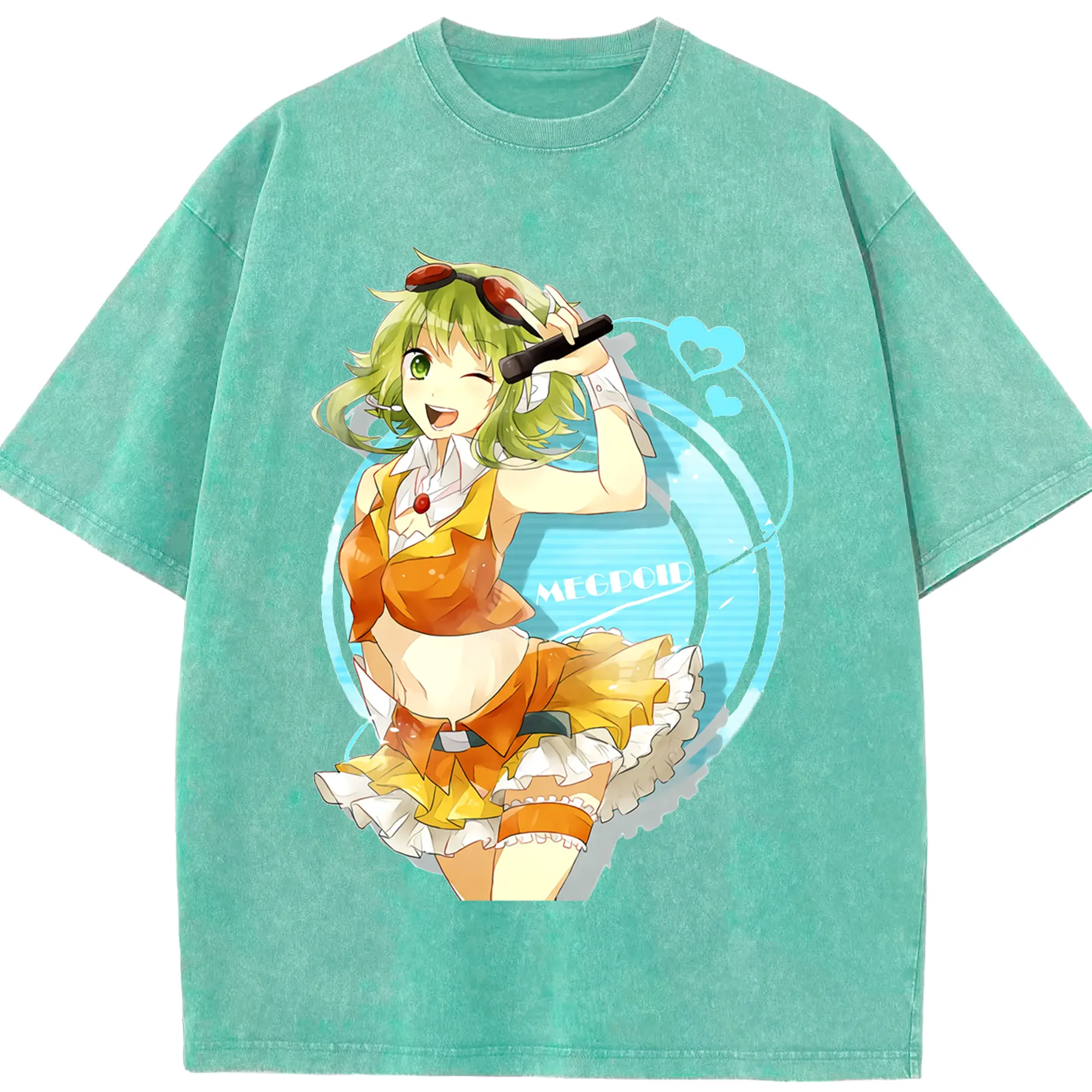 Megpoidバーチャルアイドル - 綿100% 半袖Tシャツ ・ フロントプリント ・ 快適 通気性 ・ 日常使い 散歩 スポーツ用