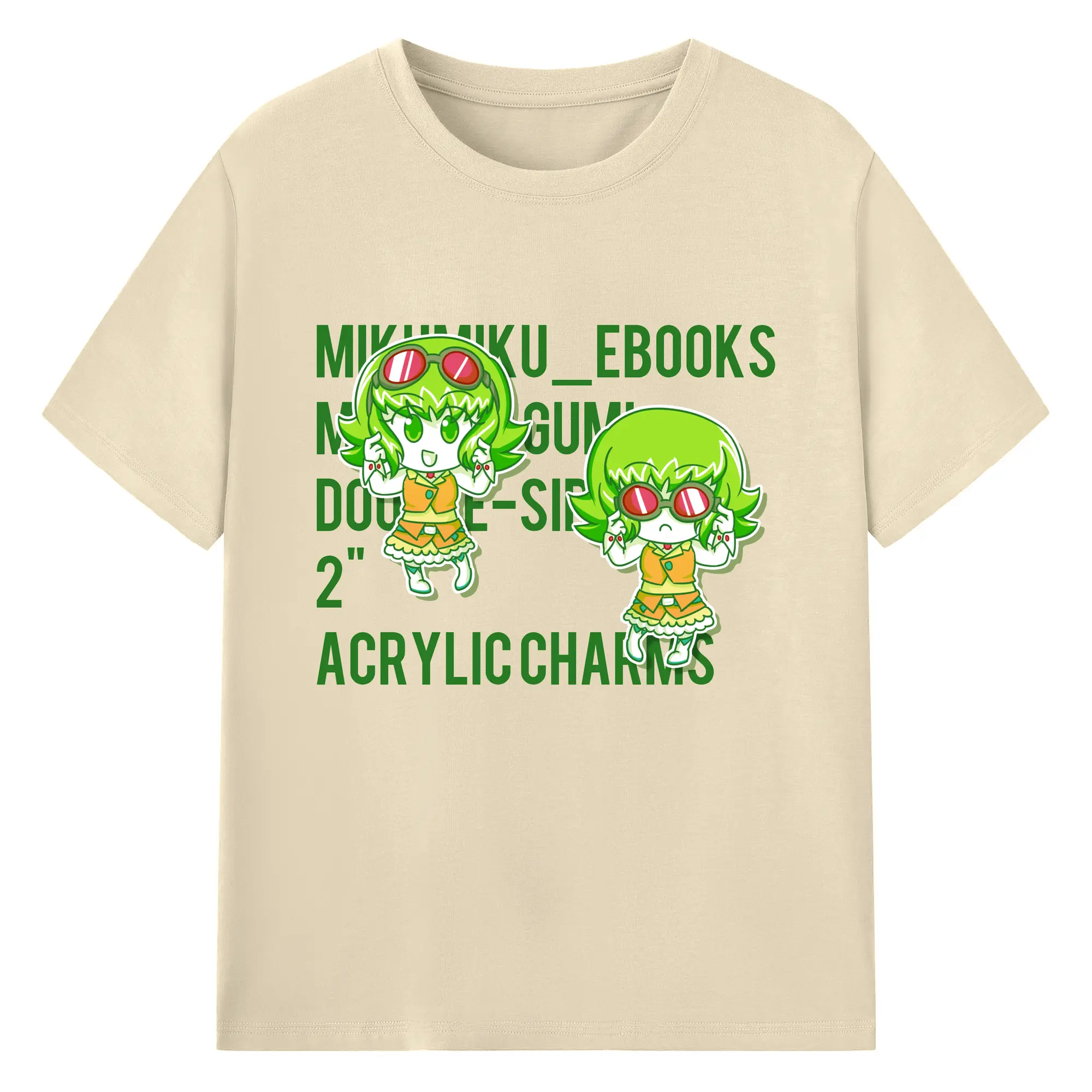 Megpoid GUMI ゴーグル付き - 綿100% ヴィンテージ風 半袖Tシャツ ・ フロントプリント ・ 柔らか肌触り ・ 通気性 快適 ・ スポーツ カジュアル 外出用