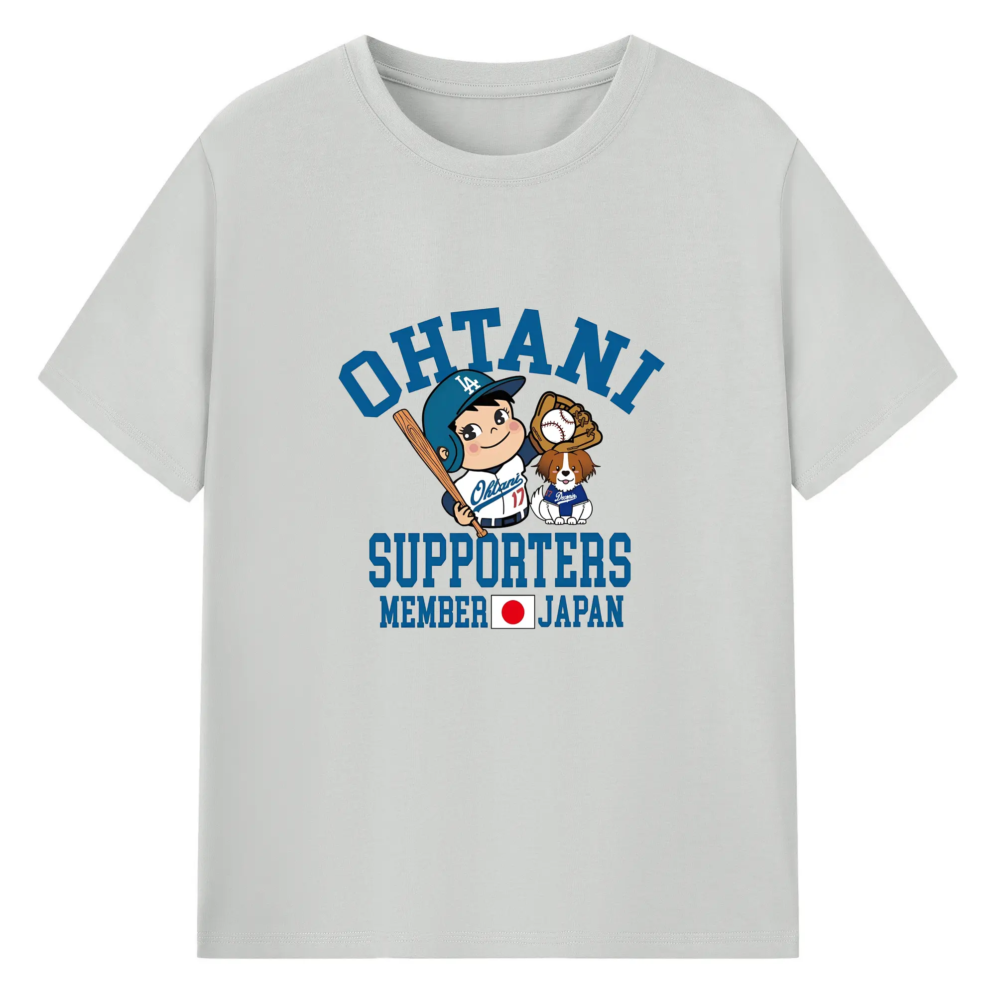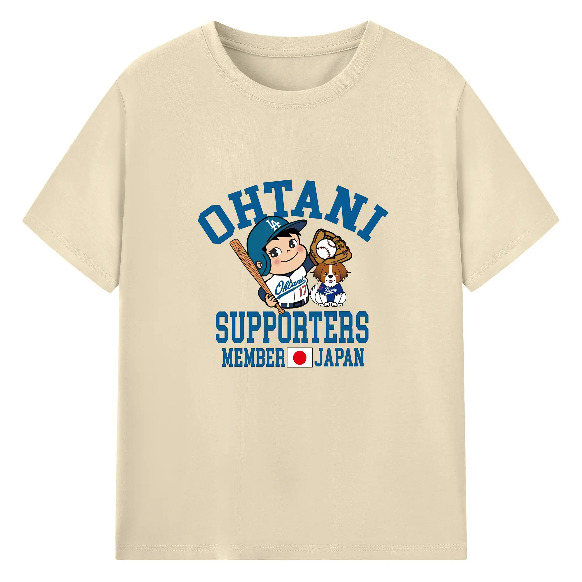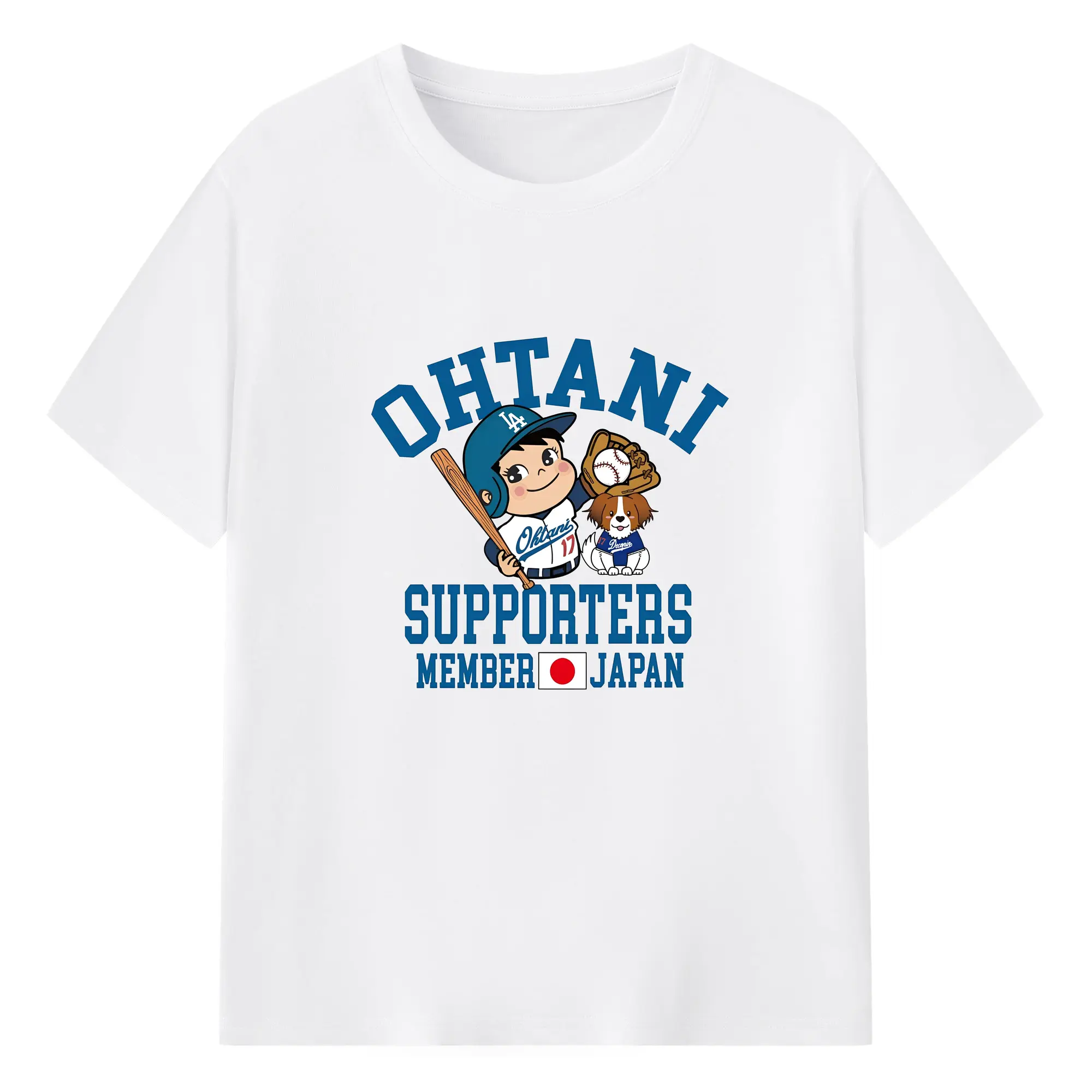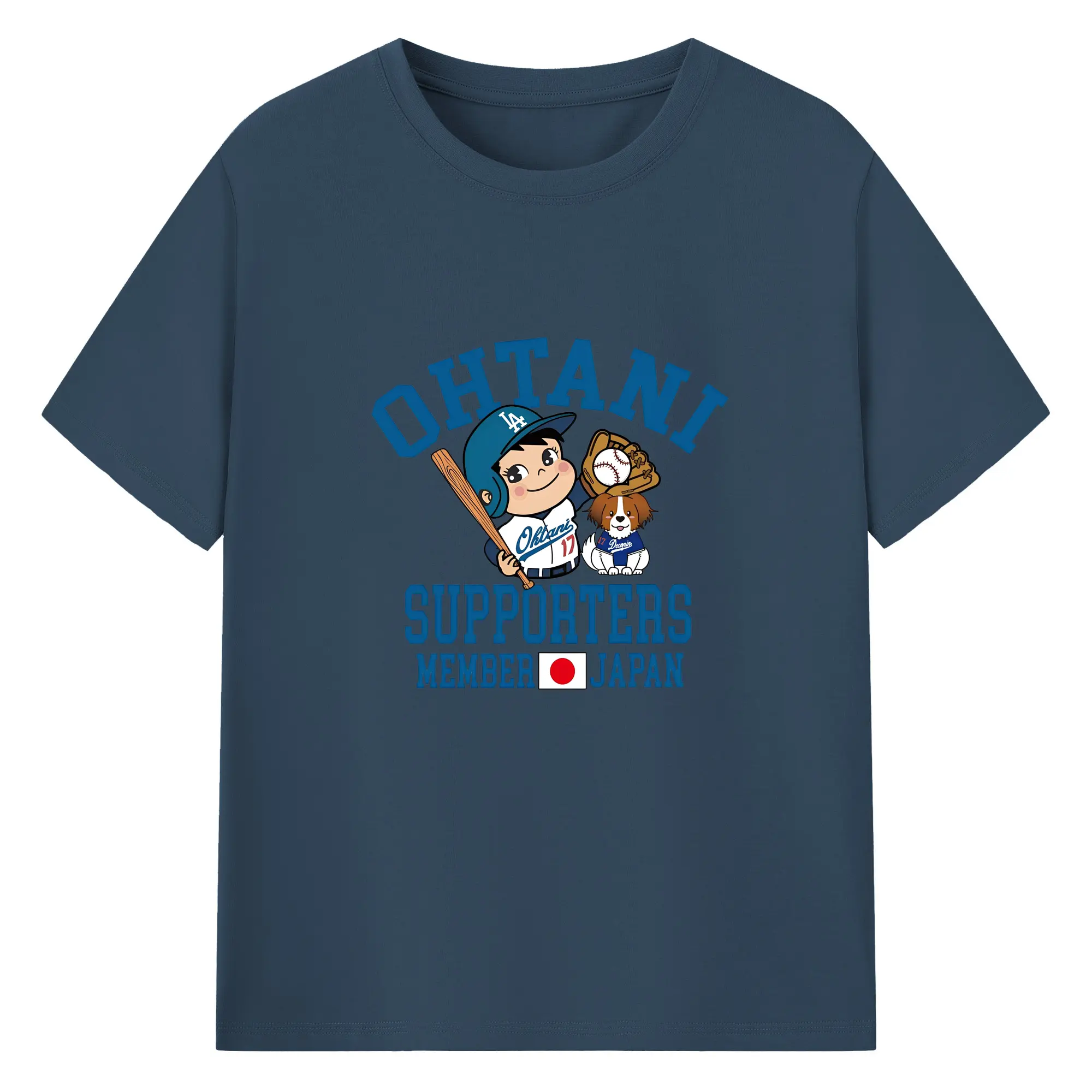 MLB ドジャース 大谷翔平 ペコちゃん 愛犬コラボデザイン - 綿100% ヴィンテージ風 半袖Tシャツ ・ フロントプリント ・ 柔らか肌触り ・ 通気性 快適 ・ スポーツ カジュアル 外出用
