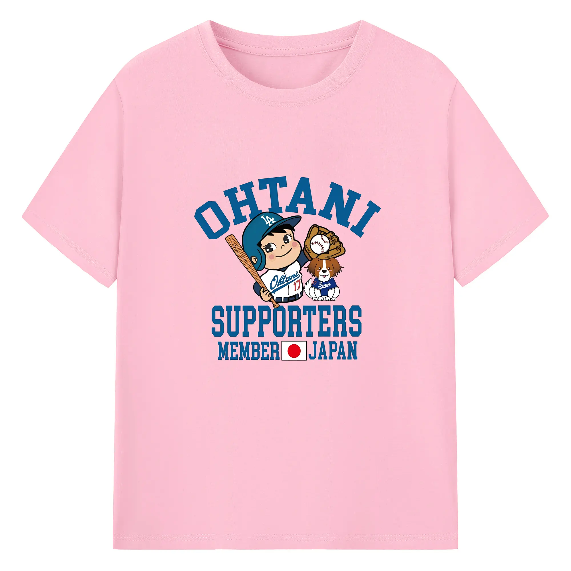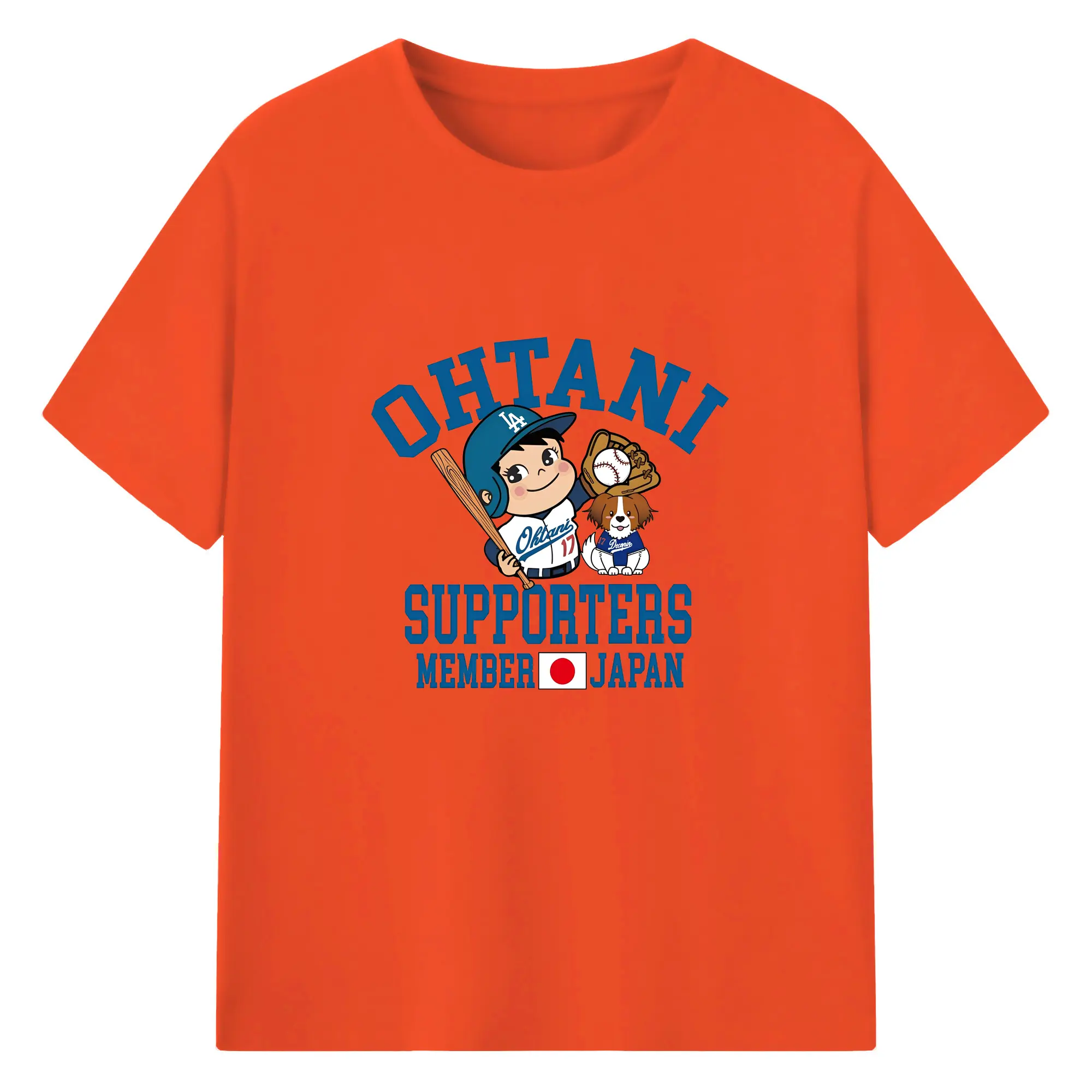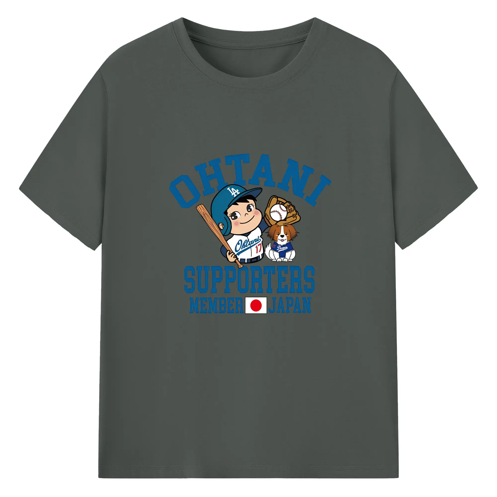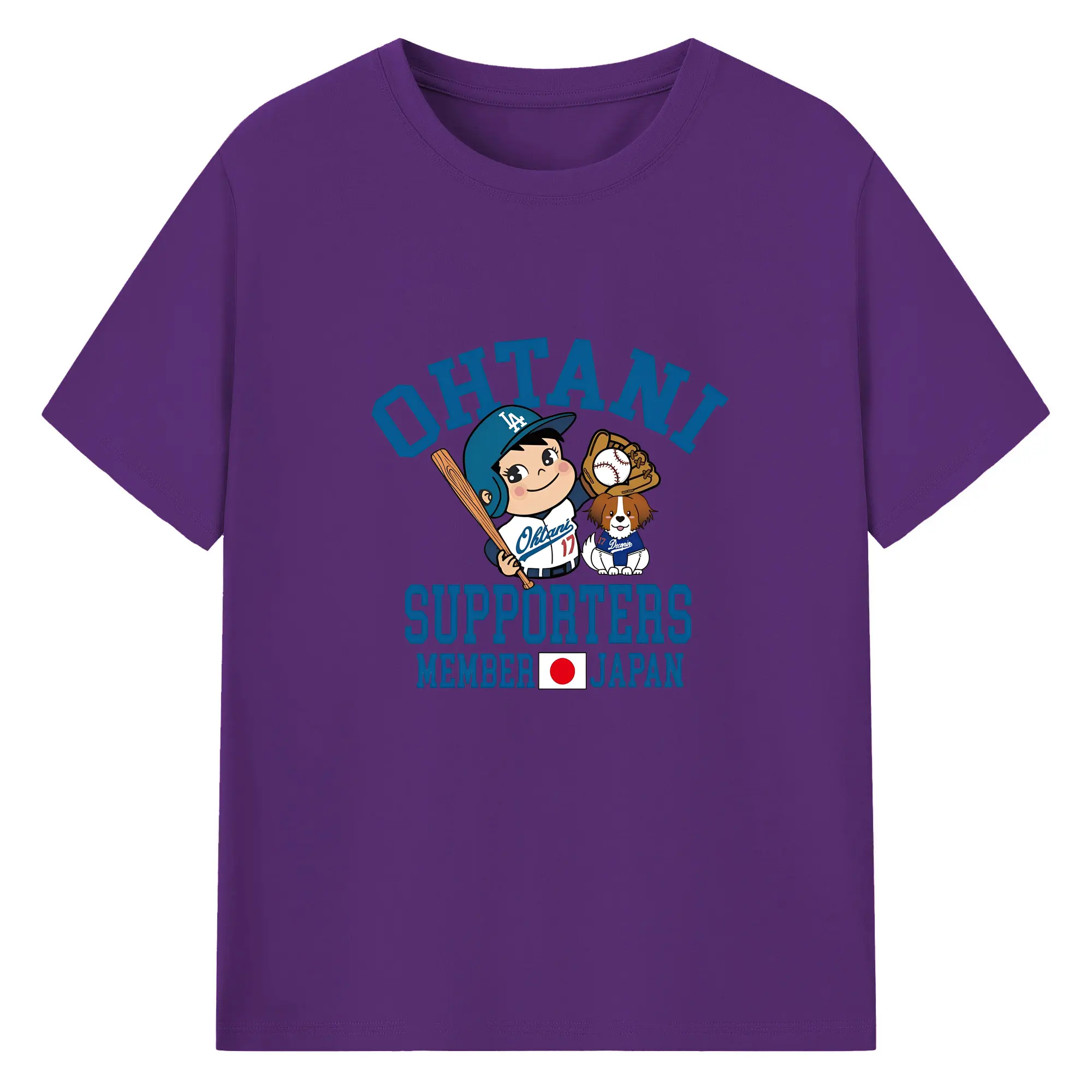 MLB ドジャース 大谷翔平 ペコちゃん 愛犬コラボデザイン - 綿100% ヴィンテージ風 半袖Tシャツ ・ フロントプリント ・ 柔らか肌触り ・ 通気性 快適 ・ スポーツ カジュアル 外出用