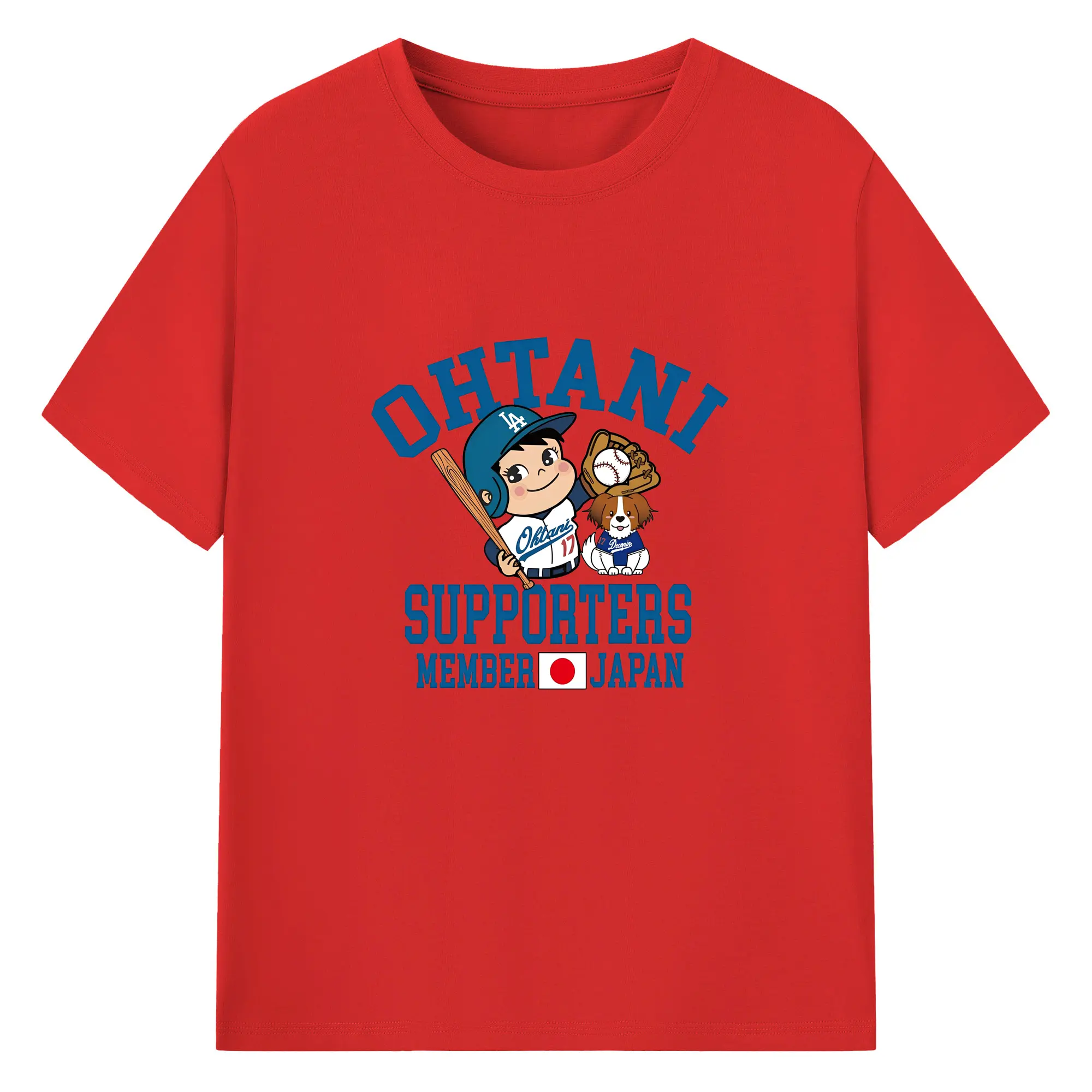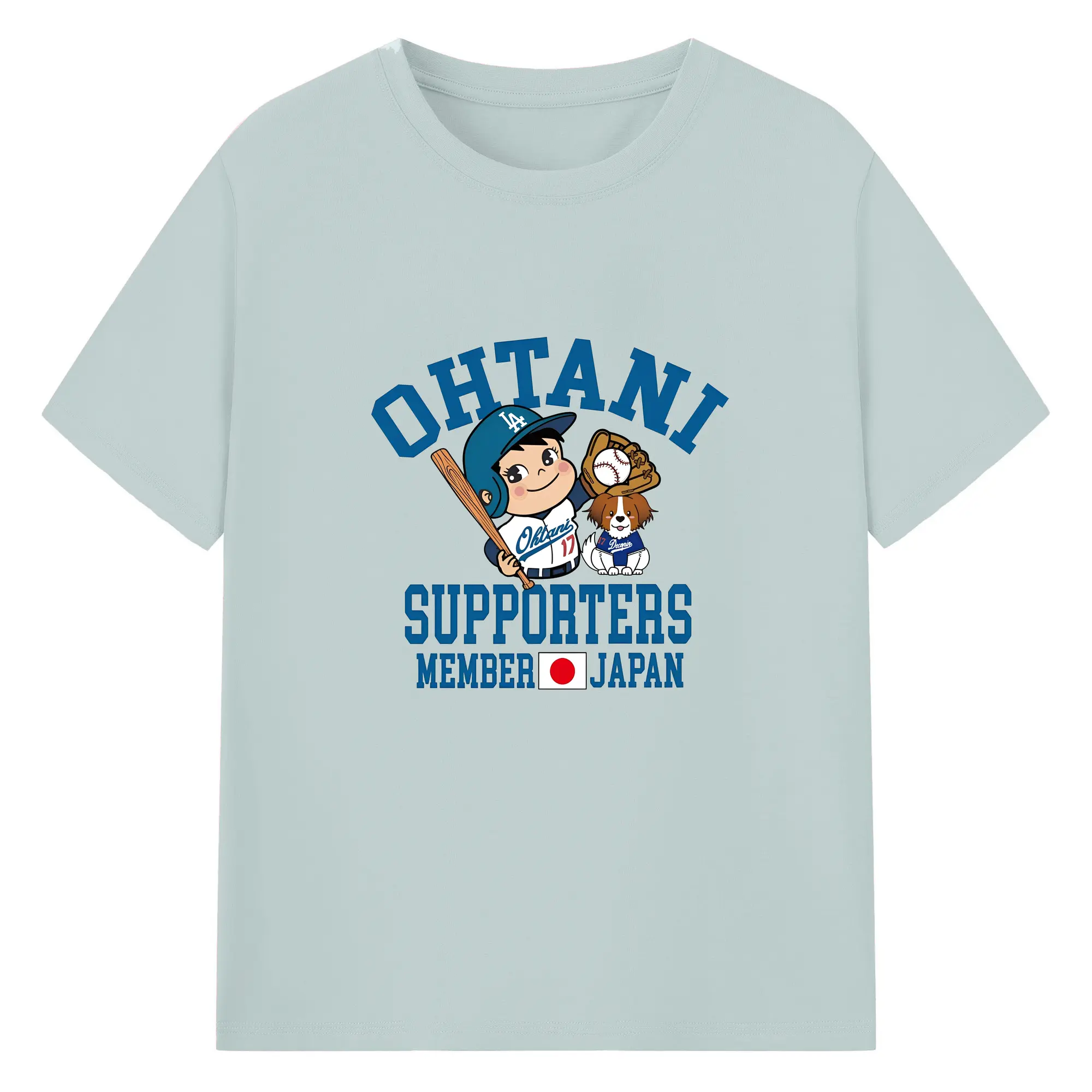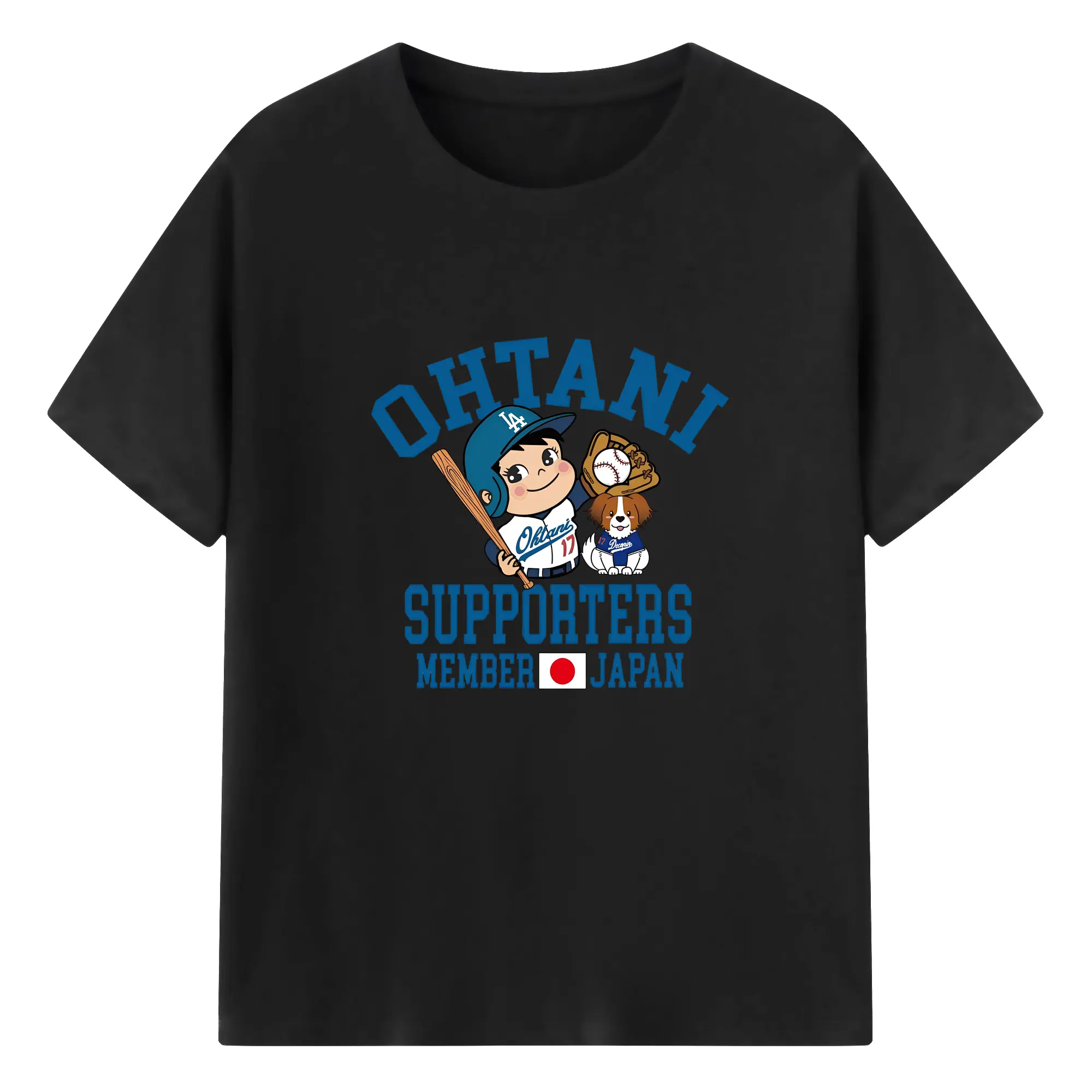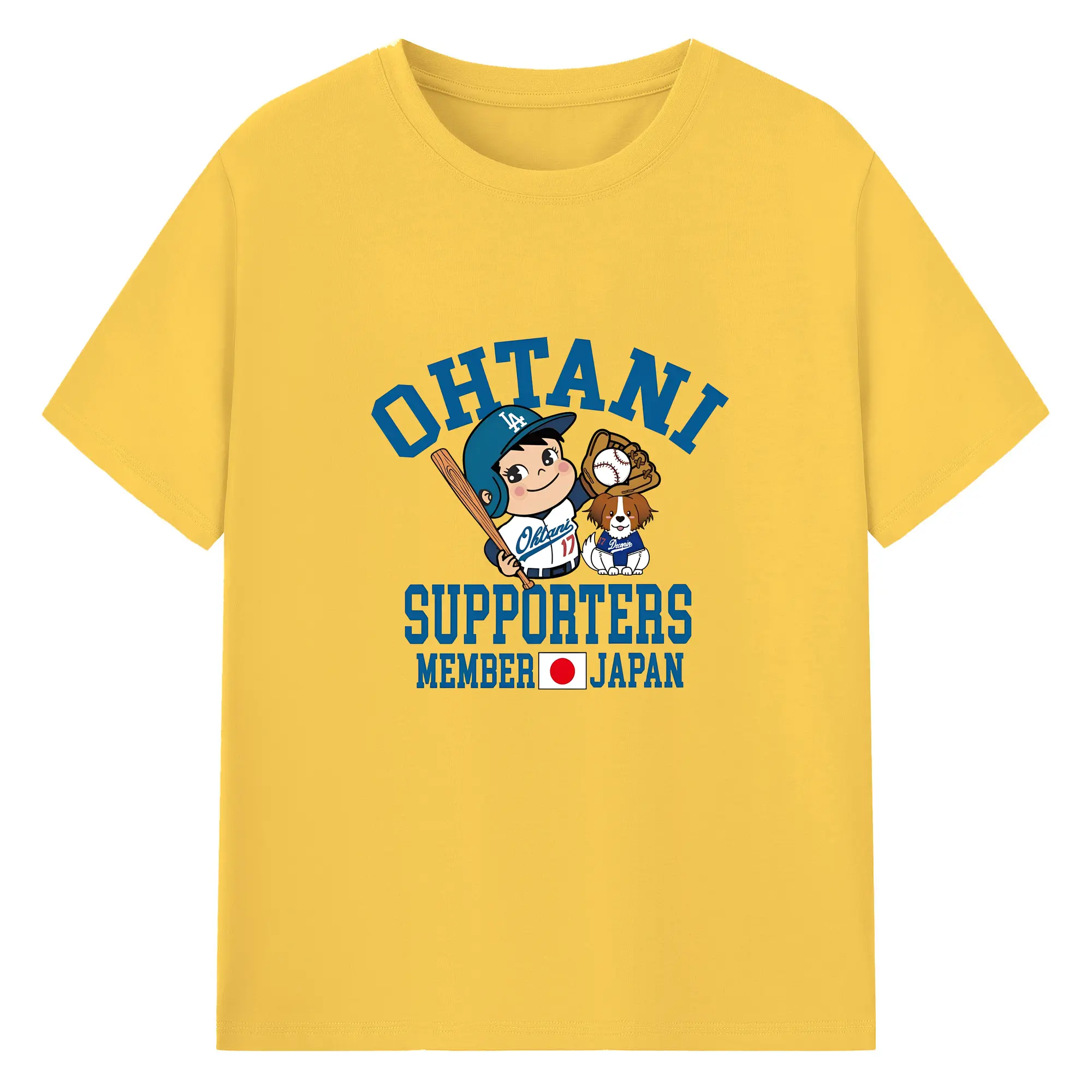 MLB ドジャース 大谷翔平 ペコちゃん 愛犬コラボデザイン - 綿100% ヴィンテージ風 半袖Tシャツ ・ フロントプリント ・ 柔らか肌触り ・ 通気性 快適 ・ スポーツ カジュアル 外出用