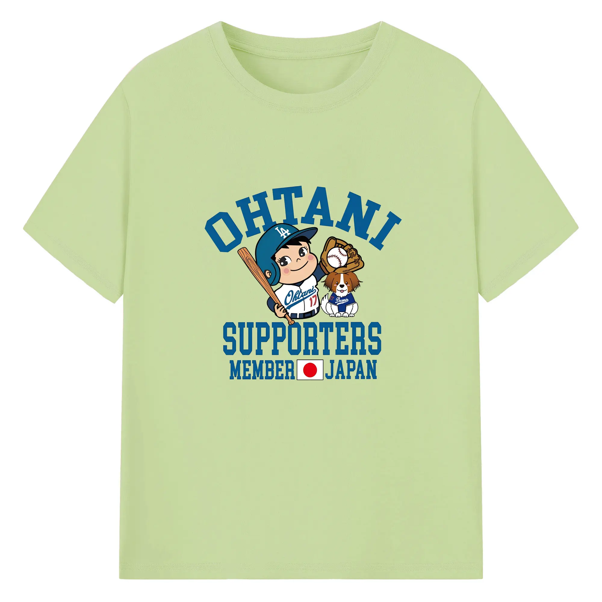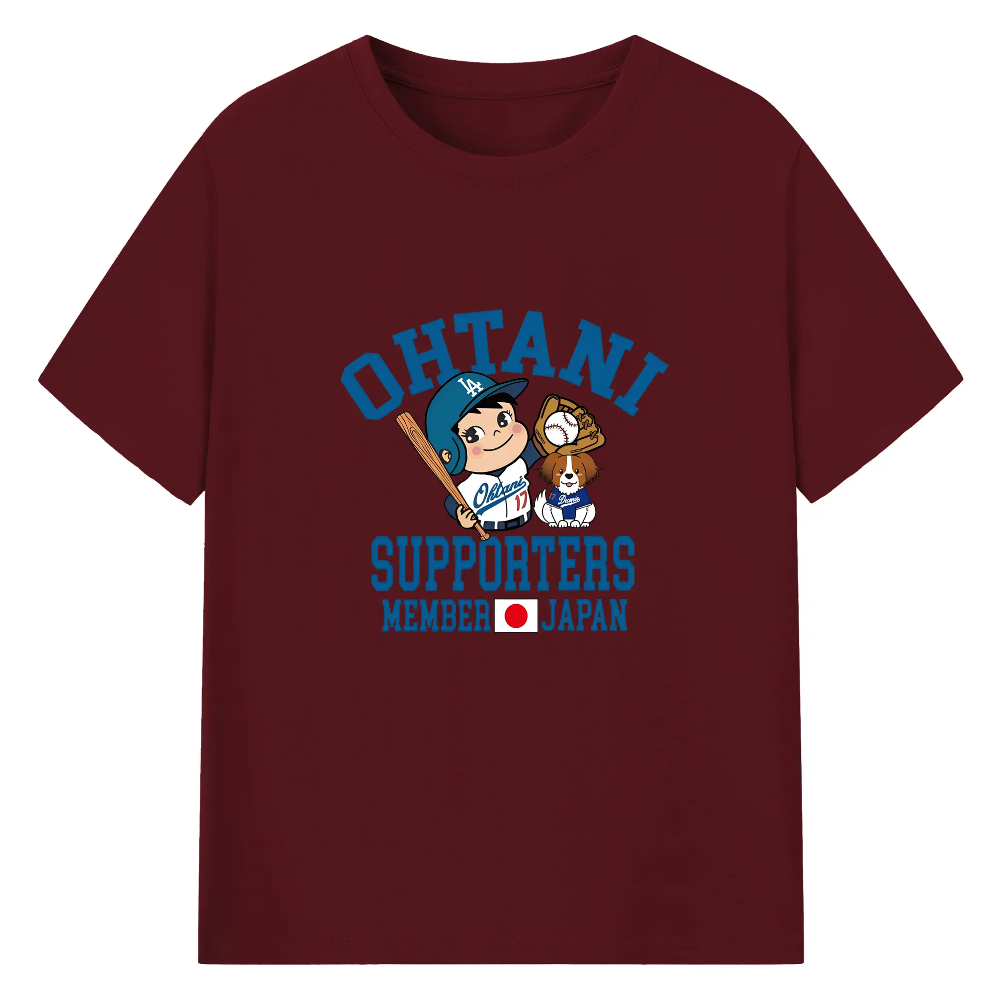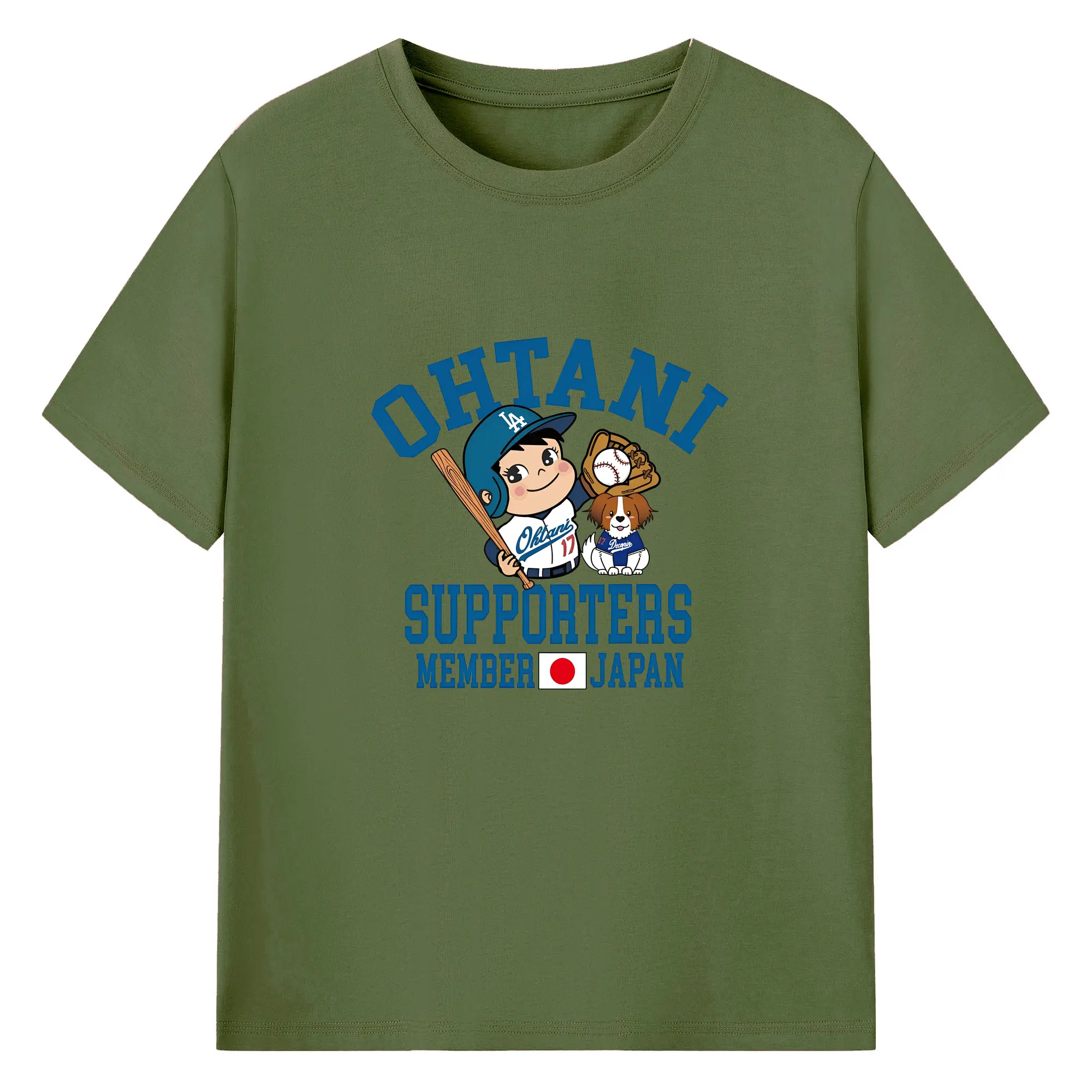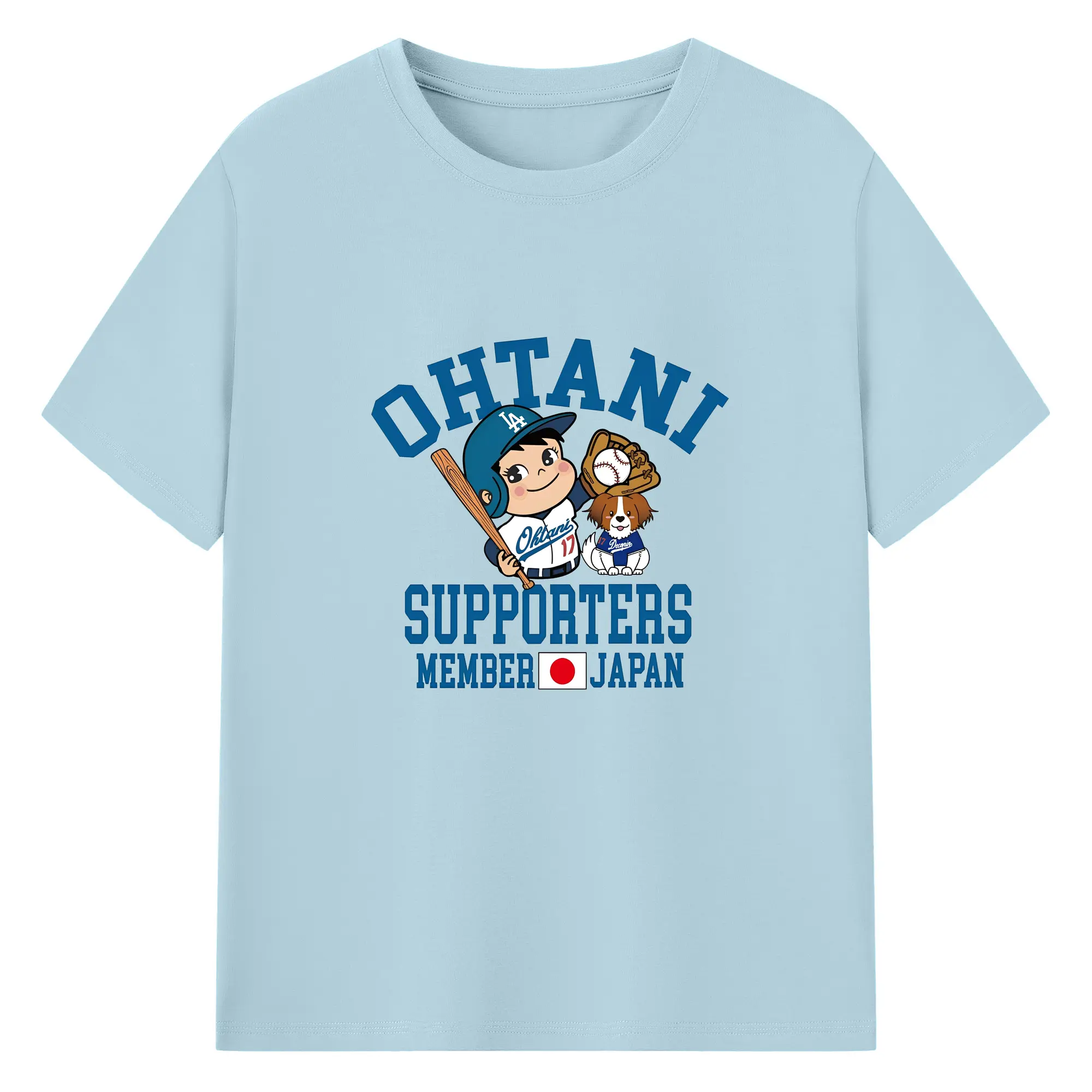 MLB ドジャース 大谷翔平 ペコちゃん 愛犬コラボデザイン - 綿100% ヴィンテージ風 半袖Tシャツ ・ フロントプリント ・ 柔らか肌触り ・ 通気性 快適 ・ スポーツ カジュアル 外出用