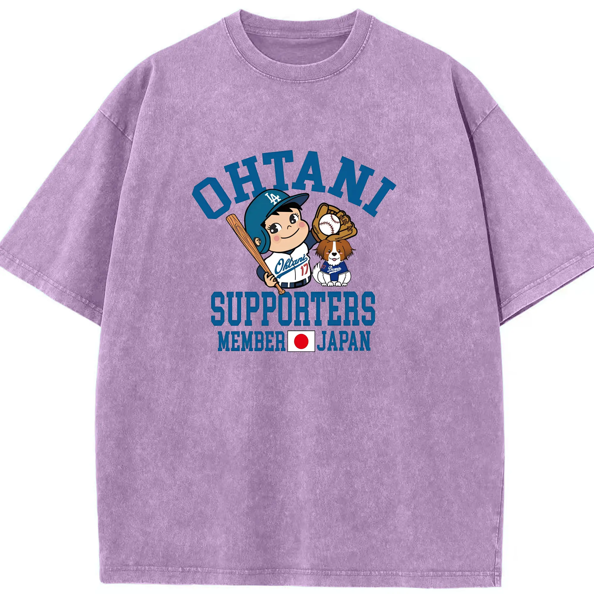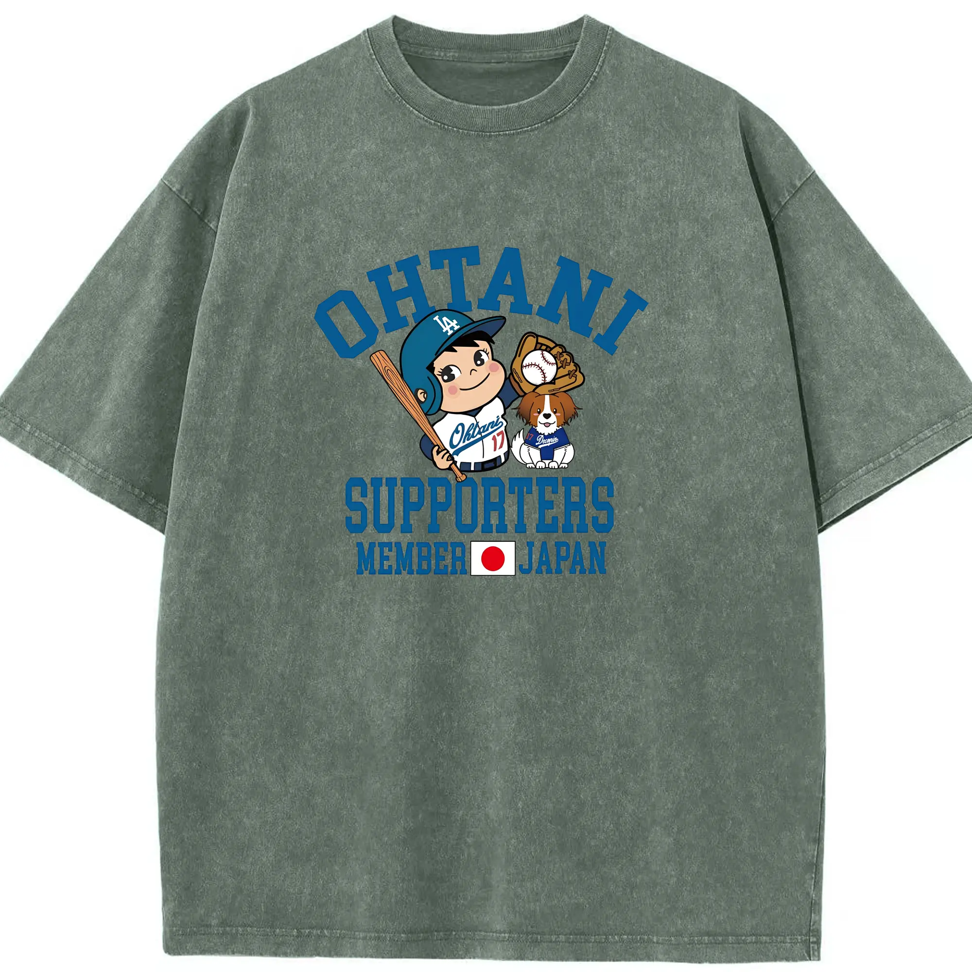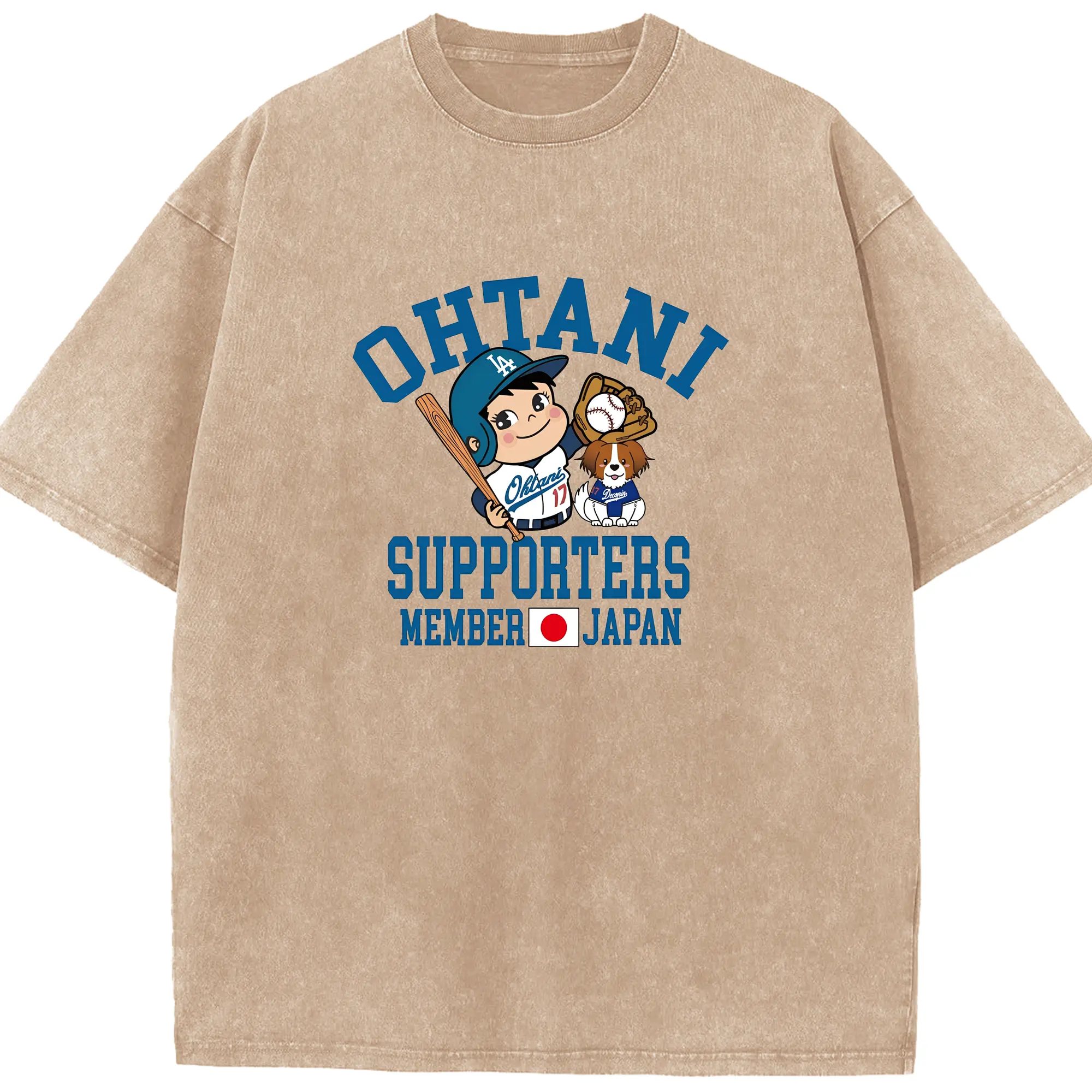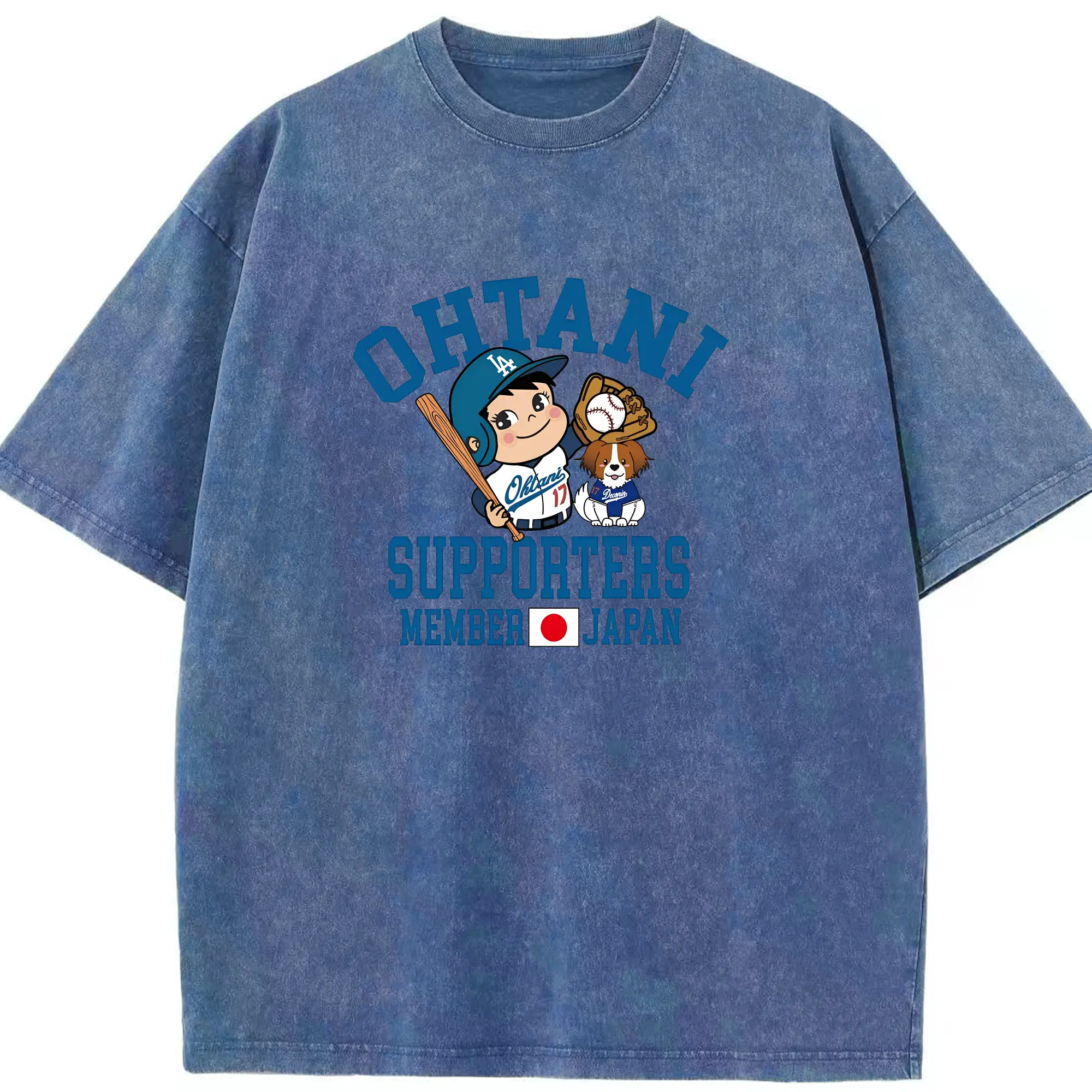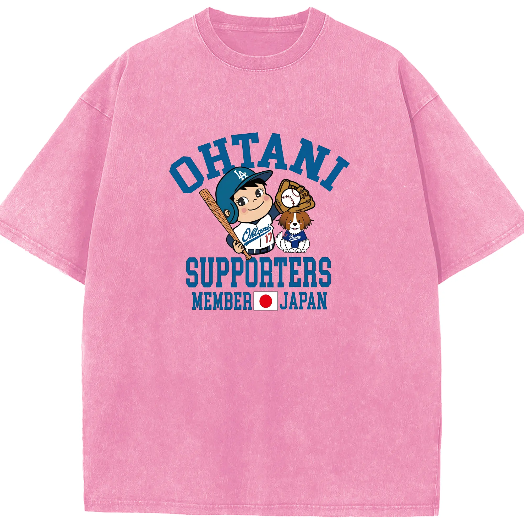 MLB ドジャース 大谷翔平 ペコちゃん 愛犬コラボデザイン - 綿100% 半袖Tシャツ ・ フロントプリント ・ 快適 通気性 ・ 日常使い 散歩 スポーツ用