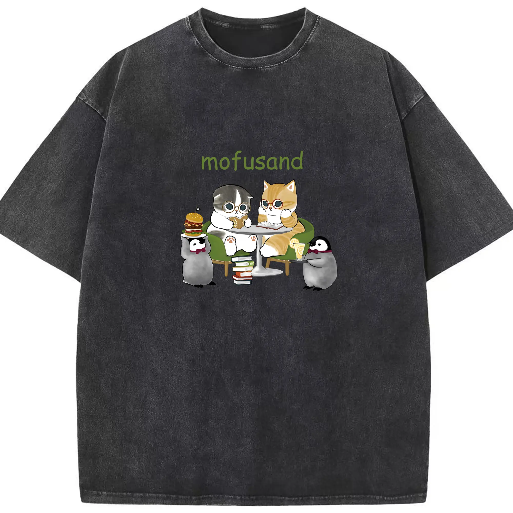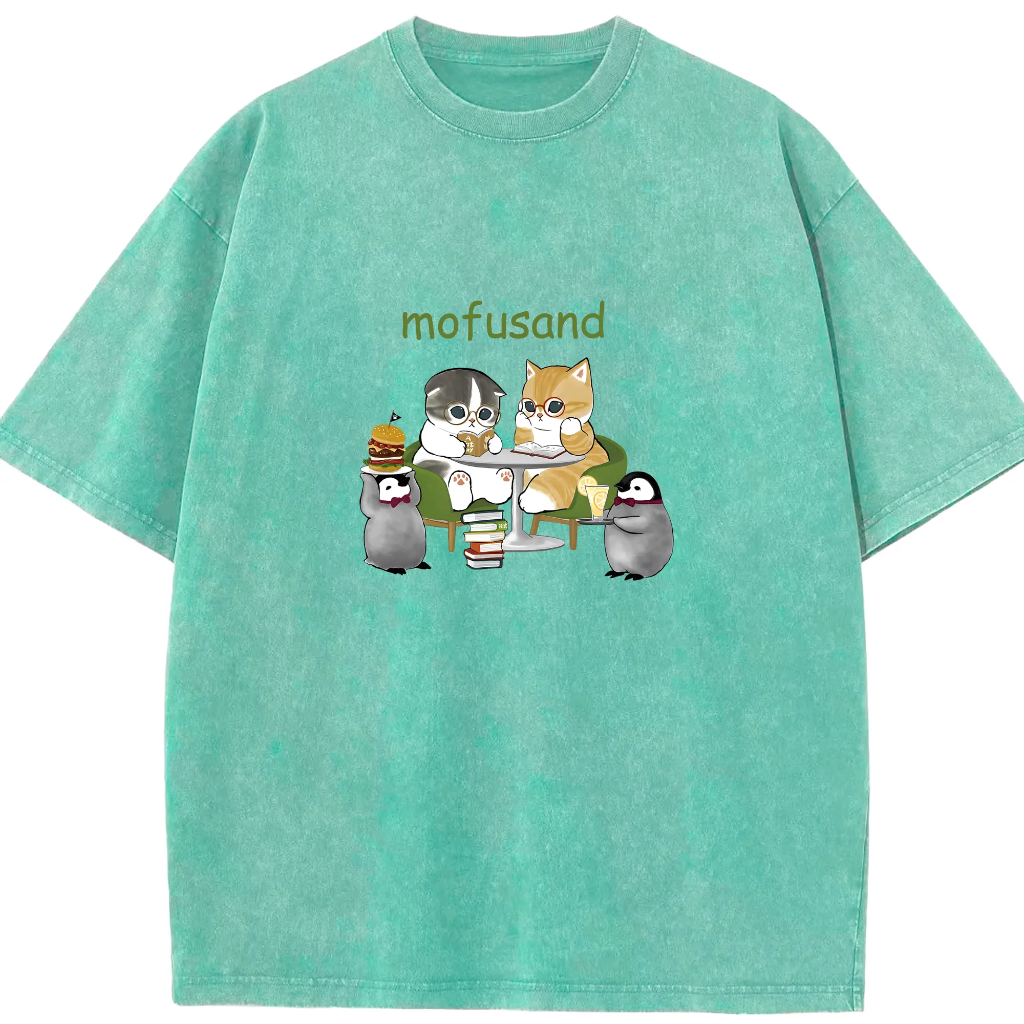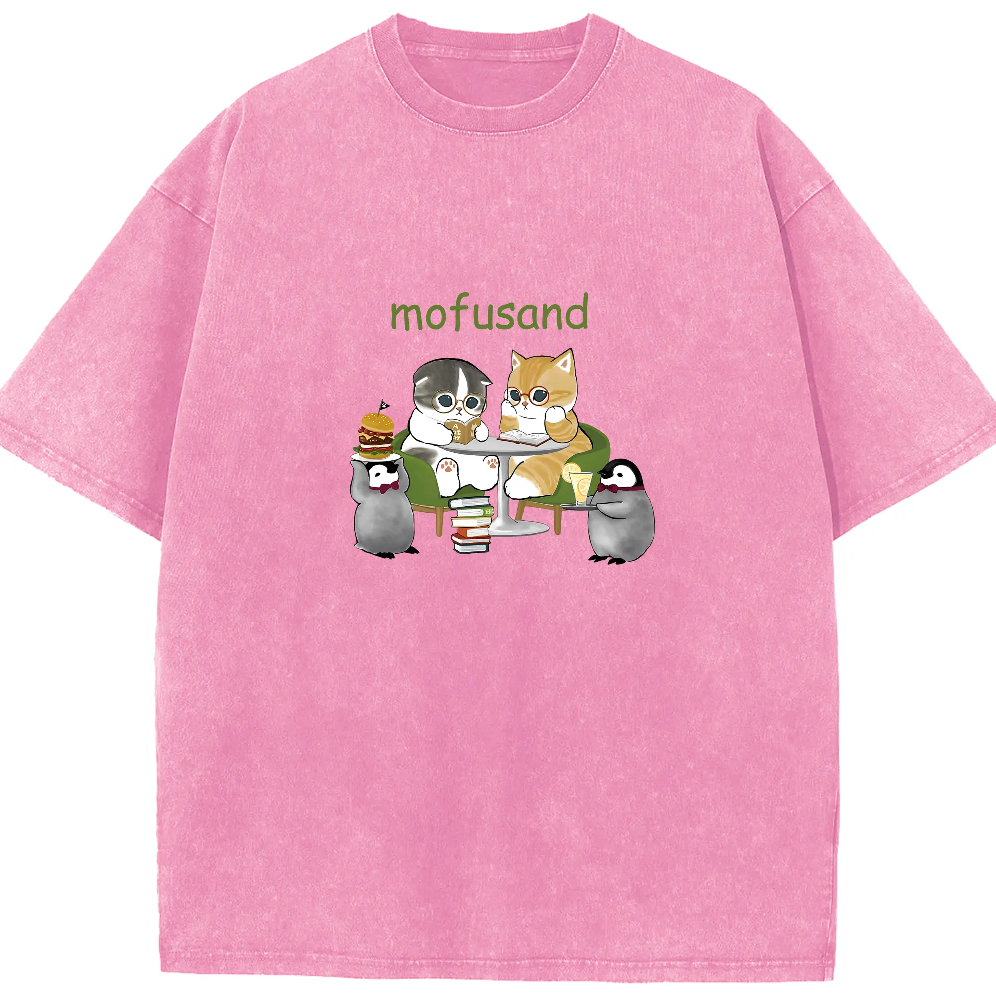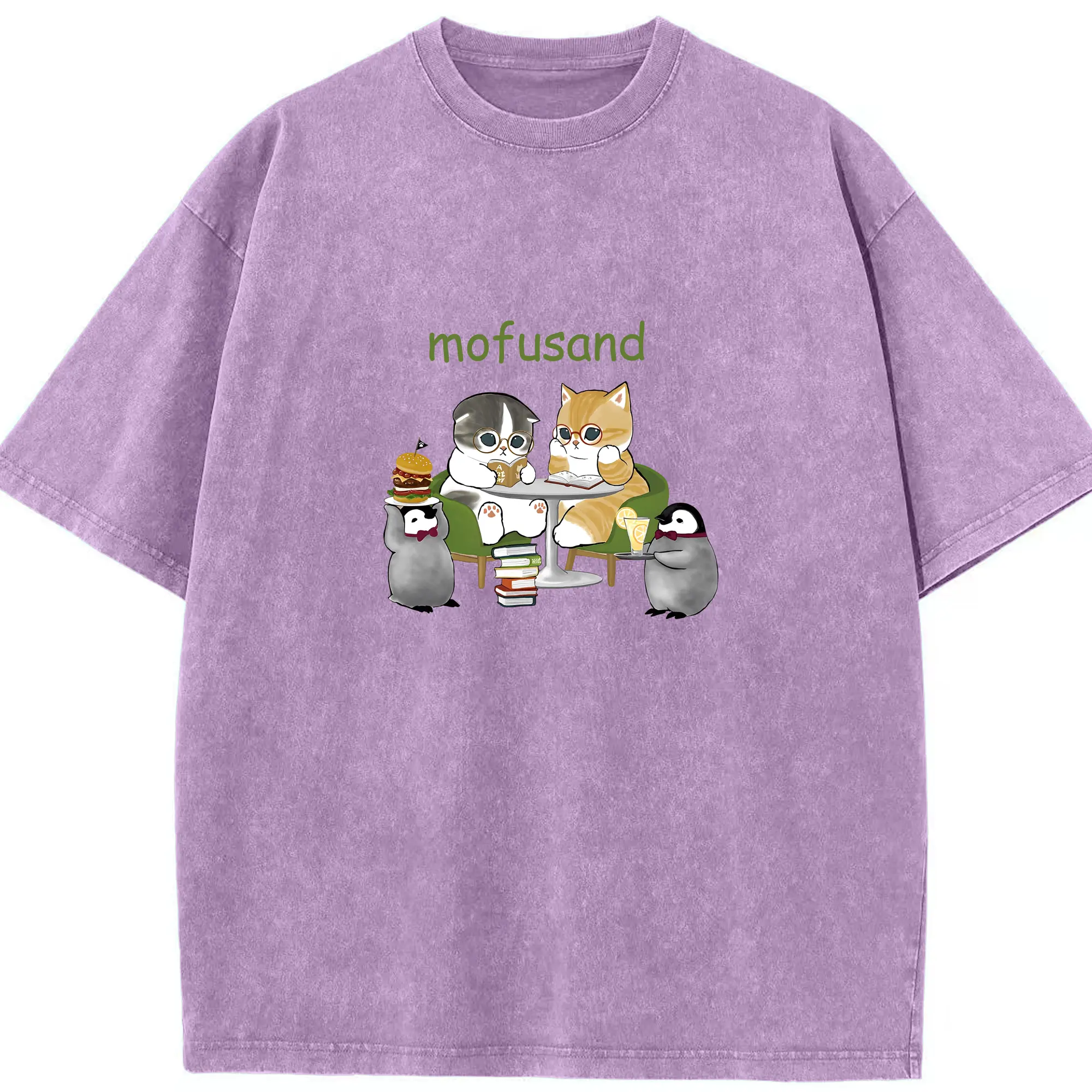 Mofusandにゃんこバーガー - 綿100% 半袖Tシャツ ・ フロントプリント ・ 快適 通気性 ・ 日常使い 散歩 スポーツ用
