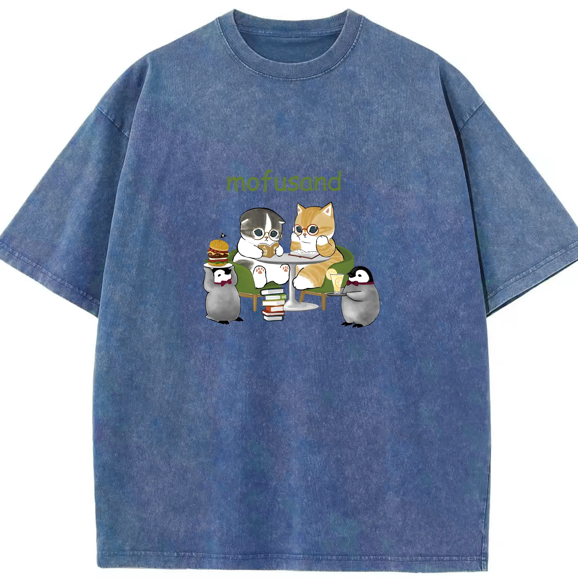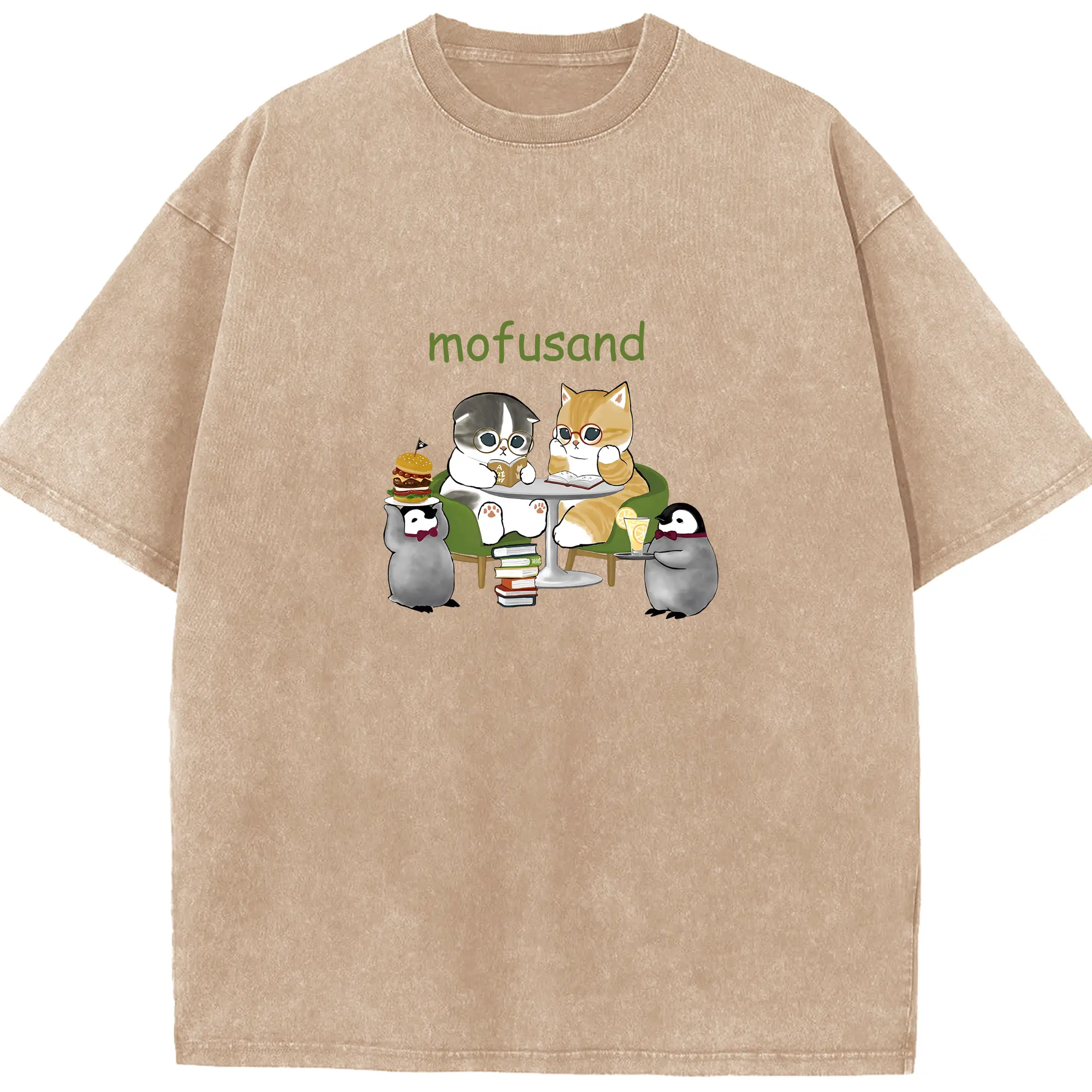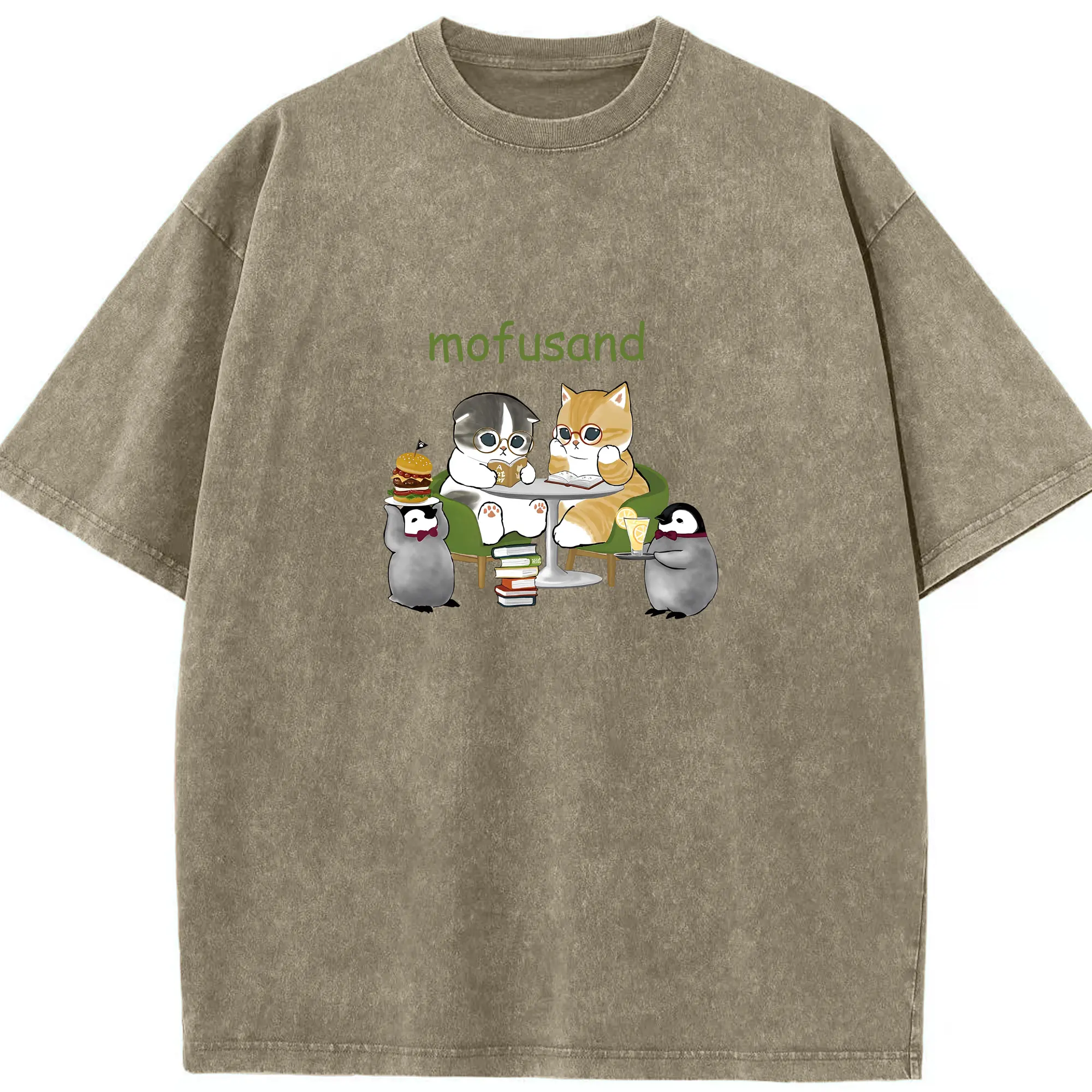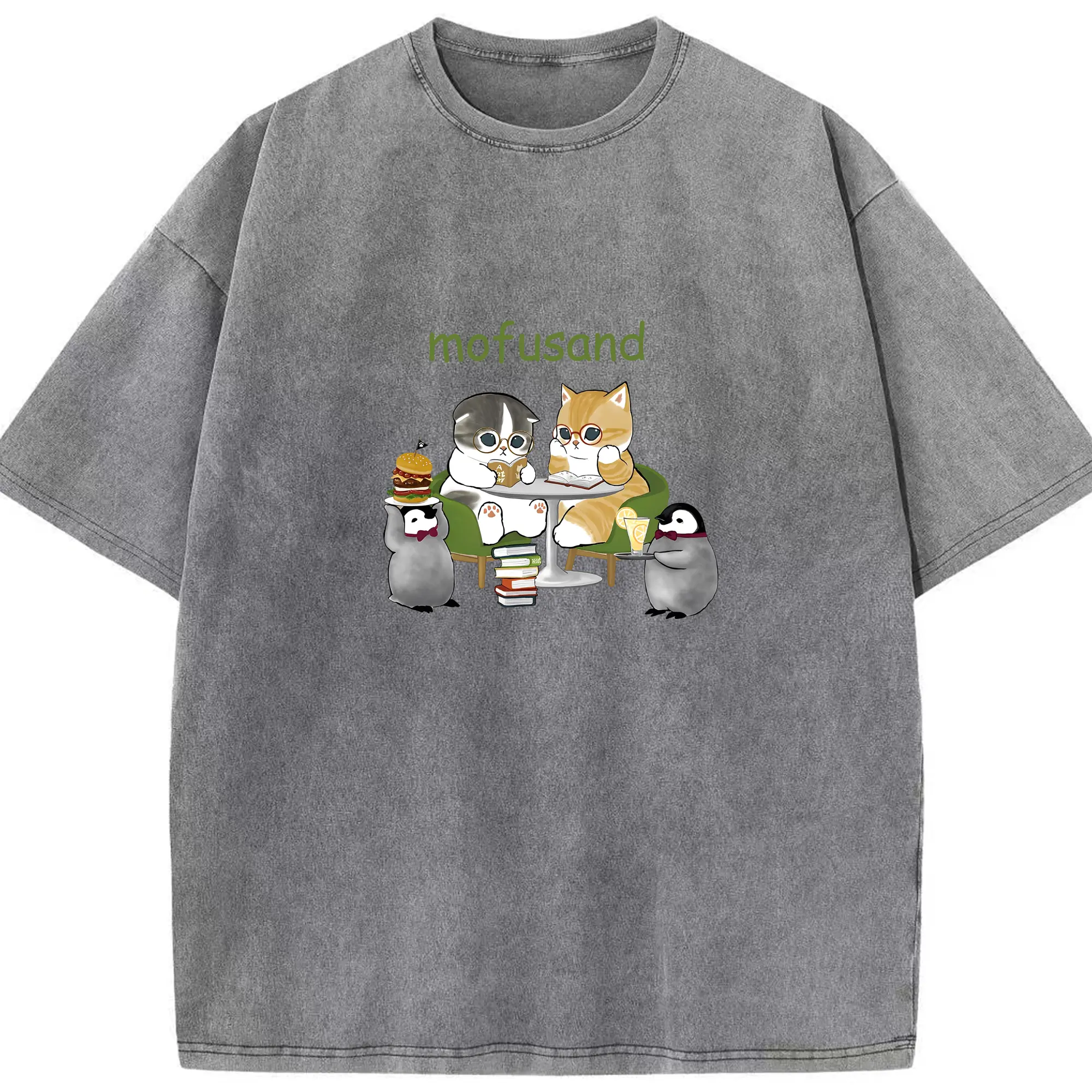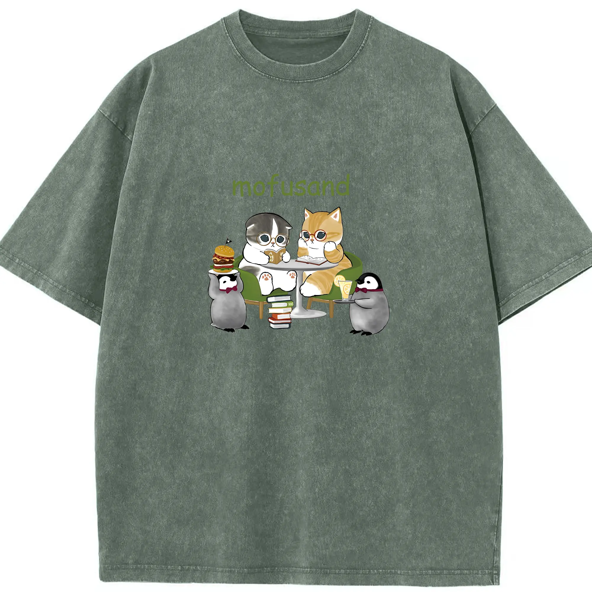 Mofusandにゃんこバーガー - 綿100% 半袖Tシャツ ・ フロントプリント ・ 快適 通気性 ・ 日常使い 散歩 スポーツ用
