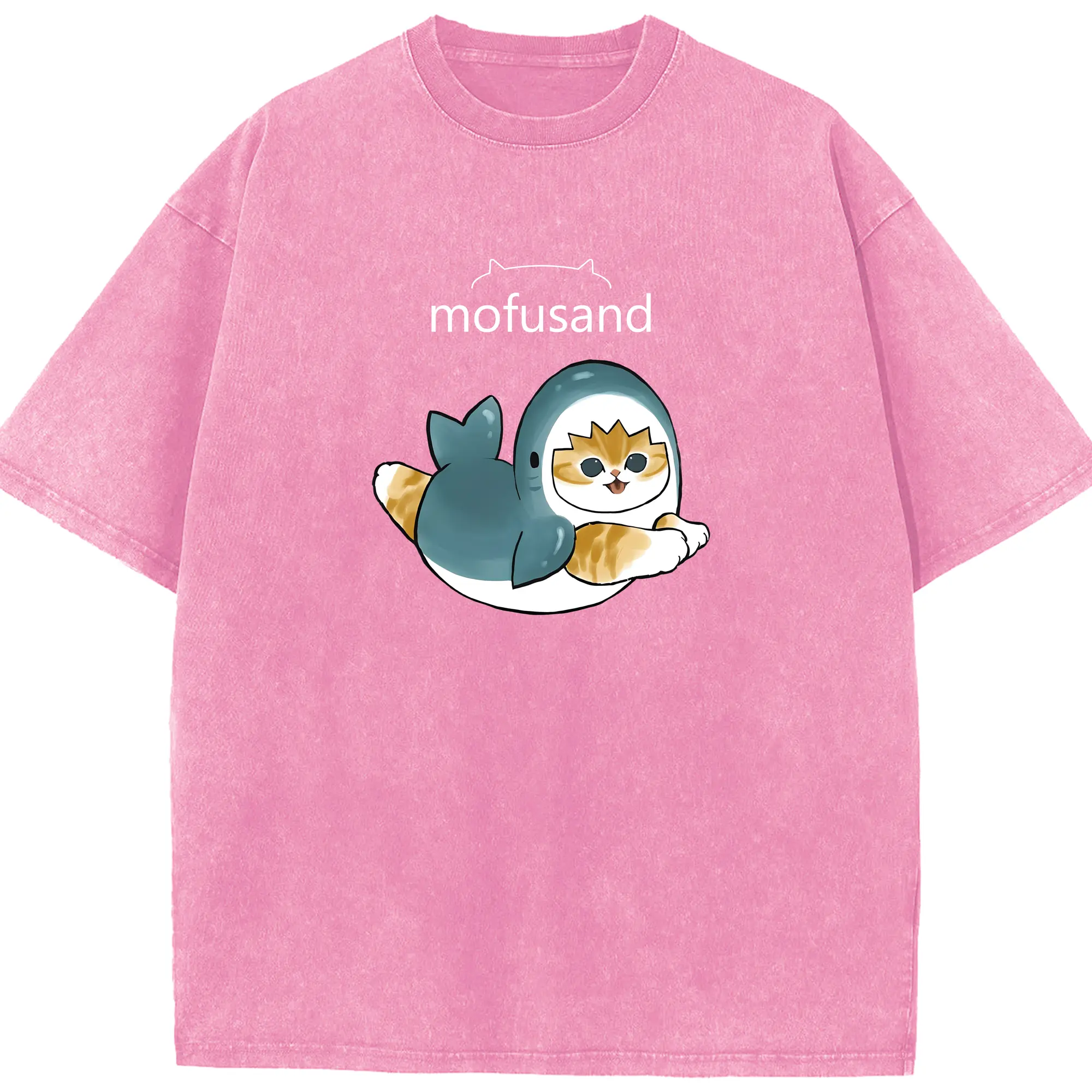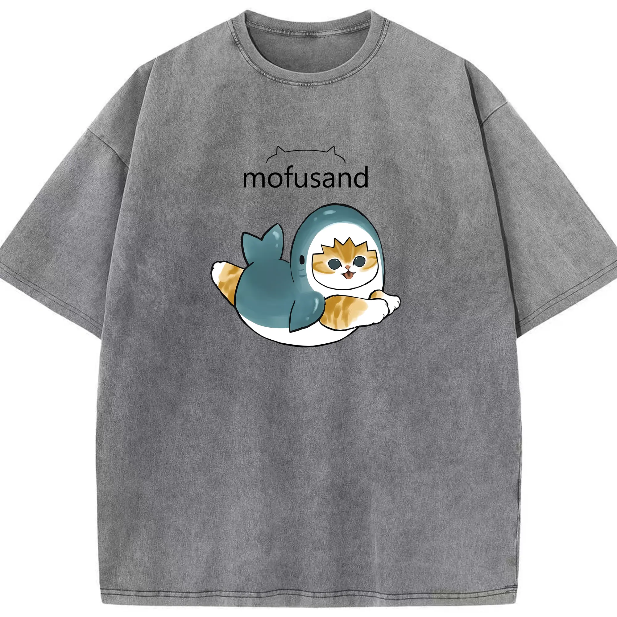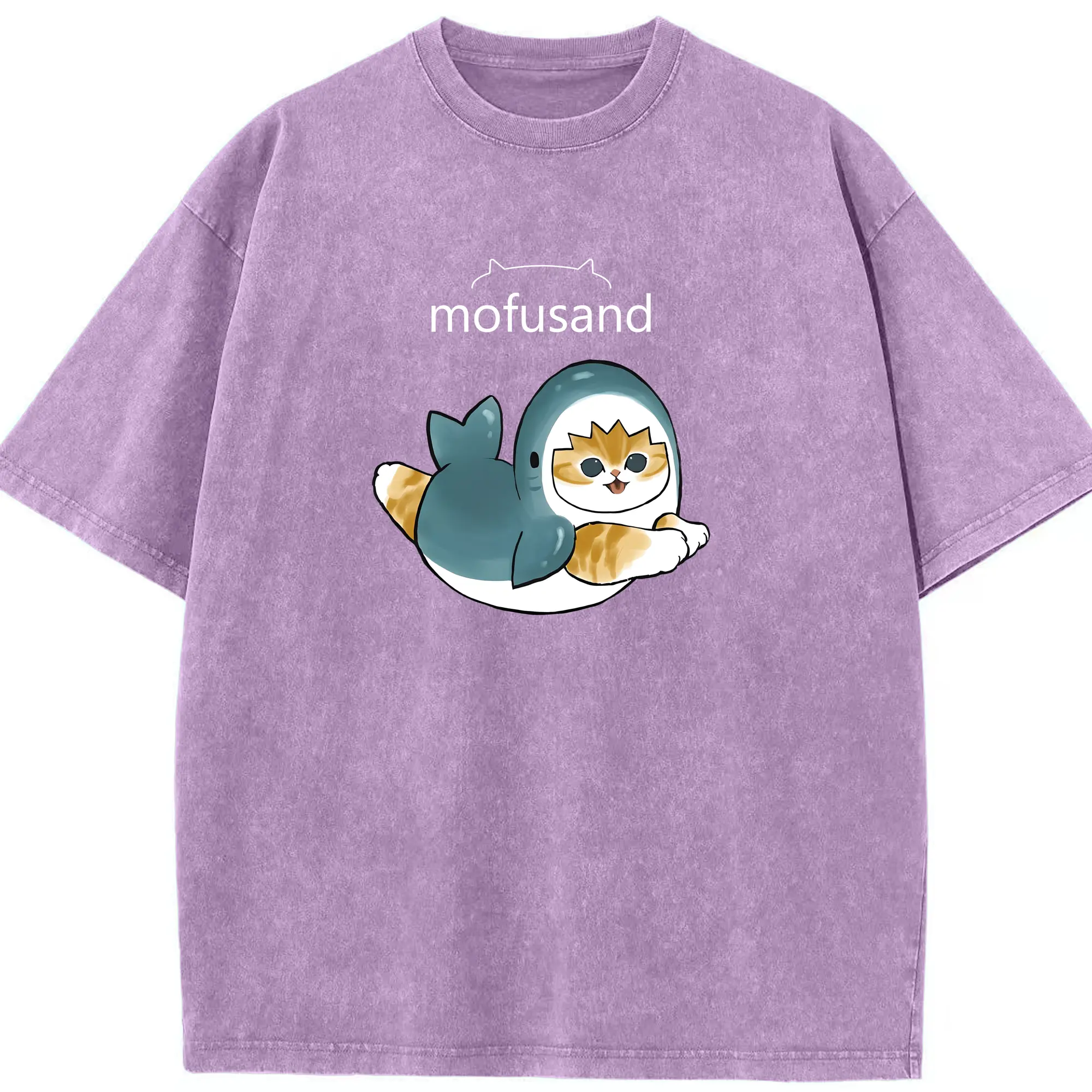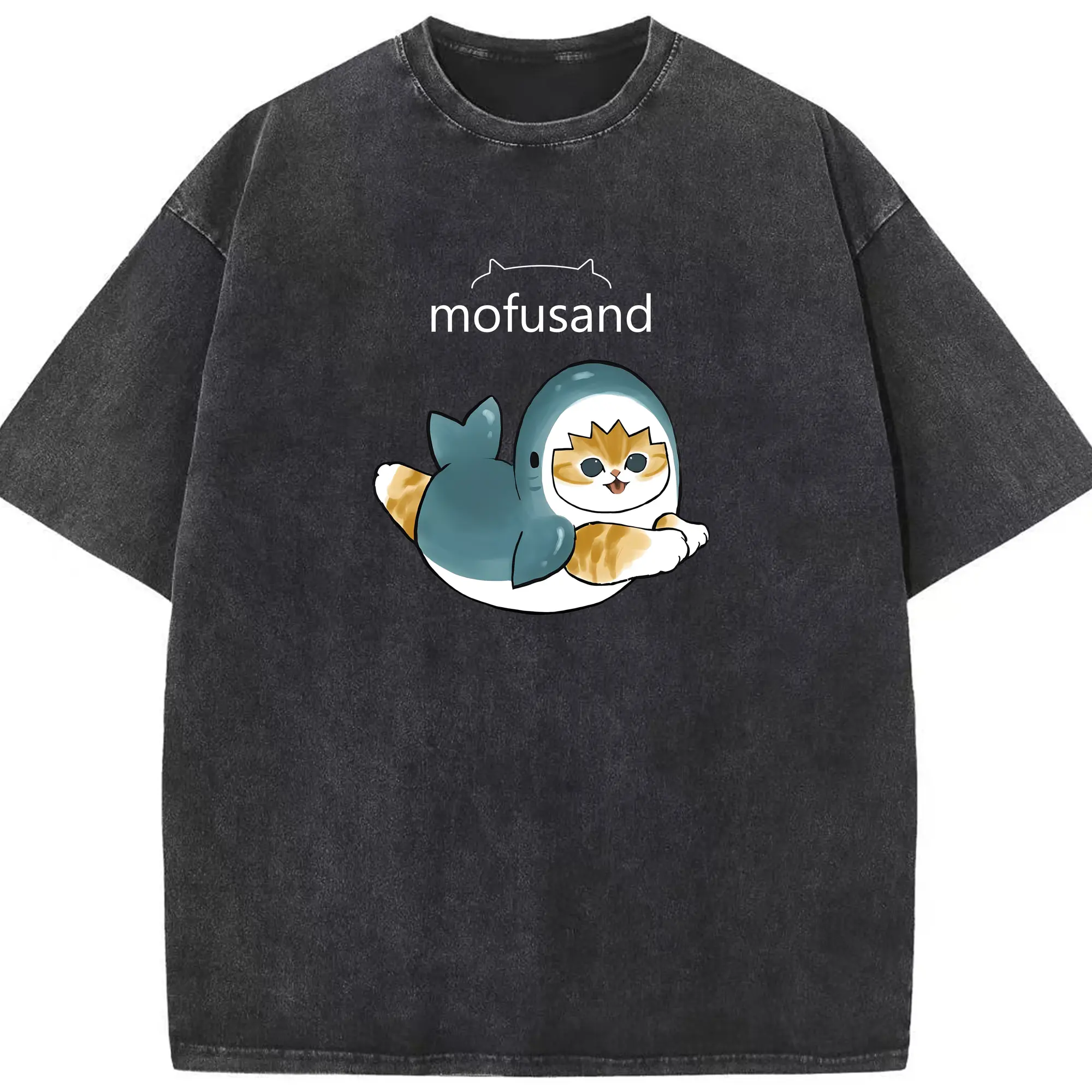 Mofusandサメにゃん限定 - 綿100% 半袖Tシャツ ・ フロントプリント ・ 快適 通気性 ・ 日常使い 散歩 スポーツ用
