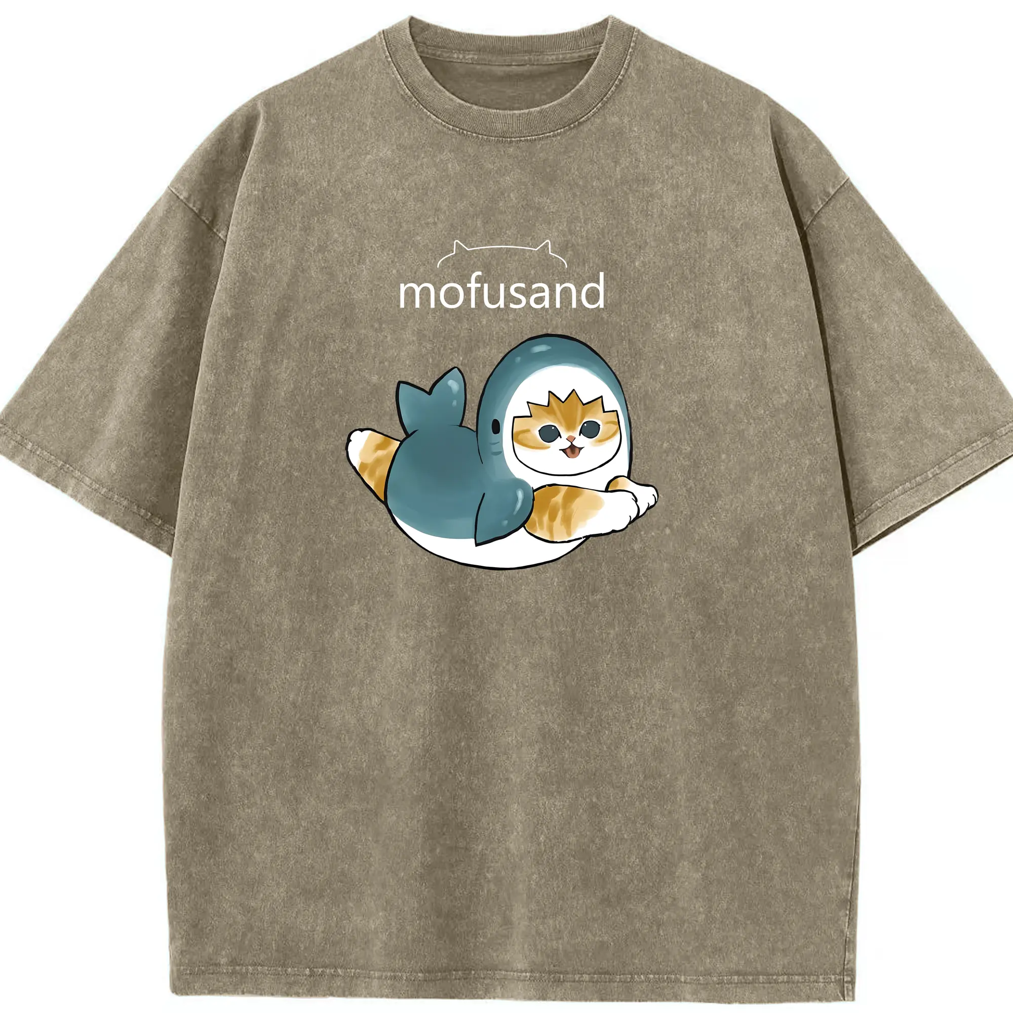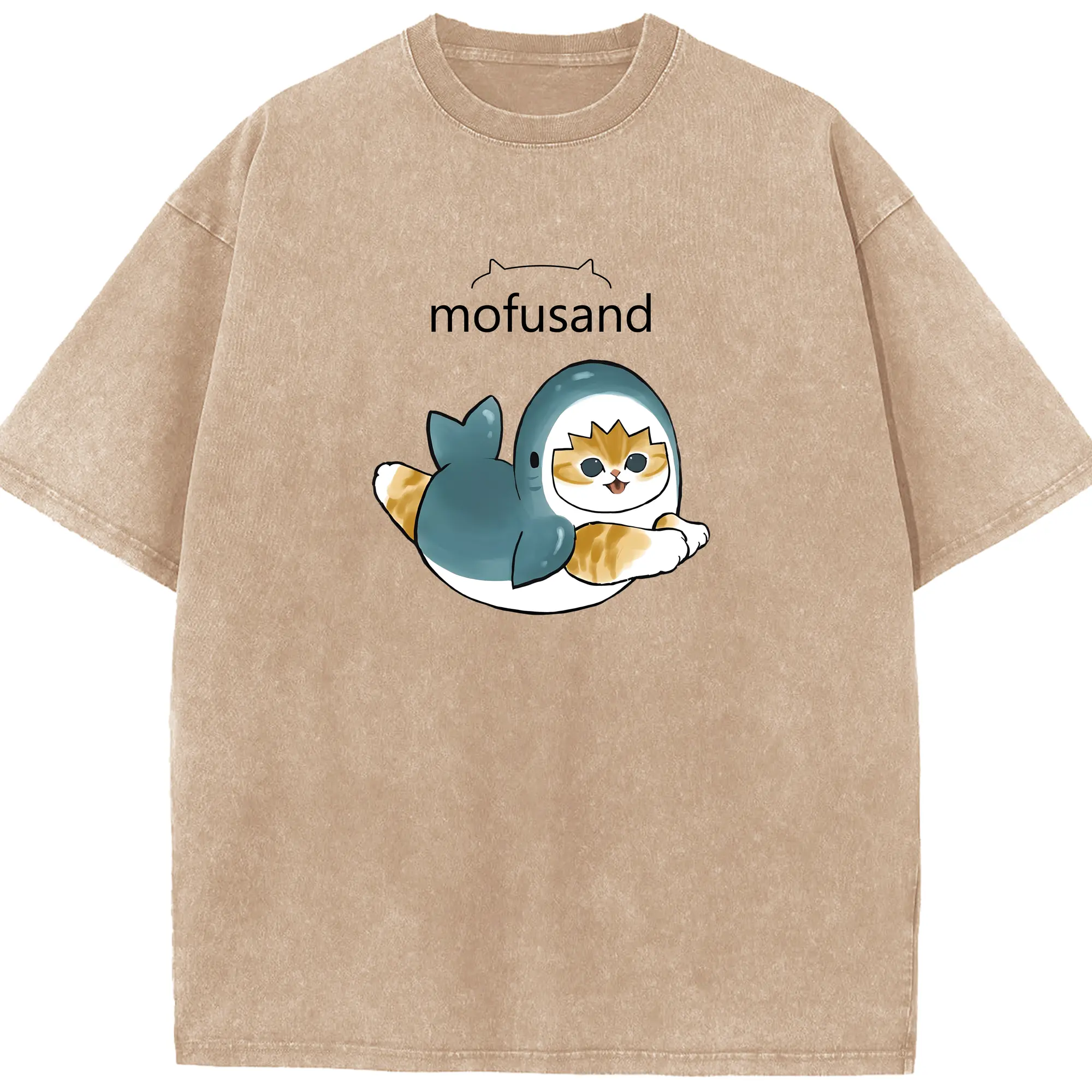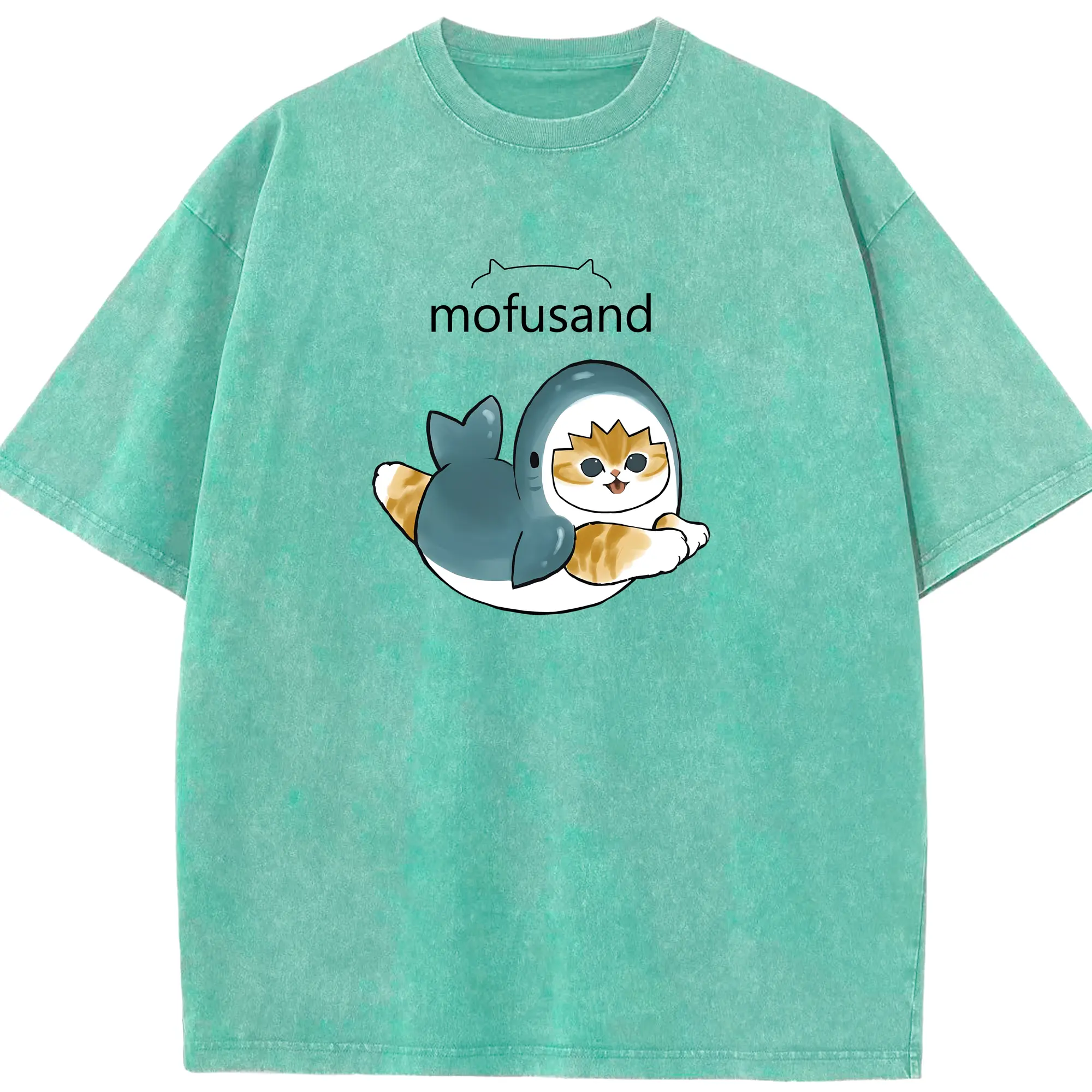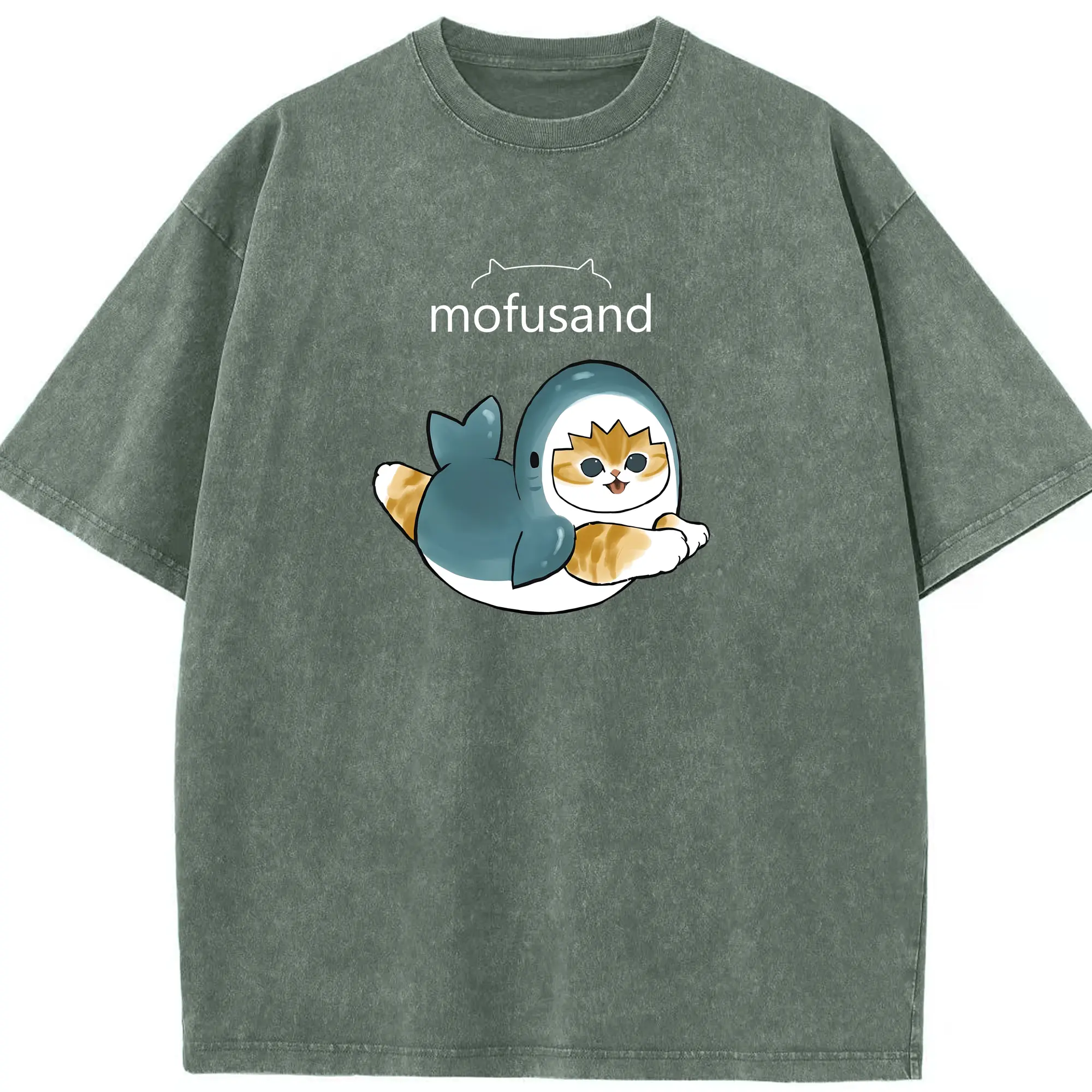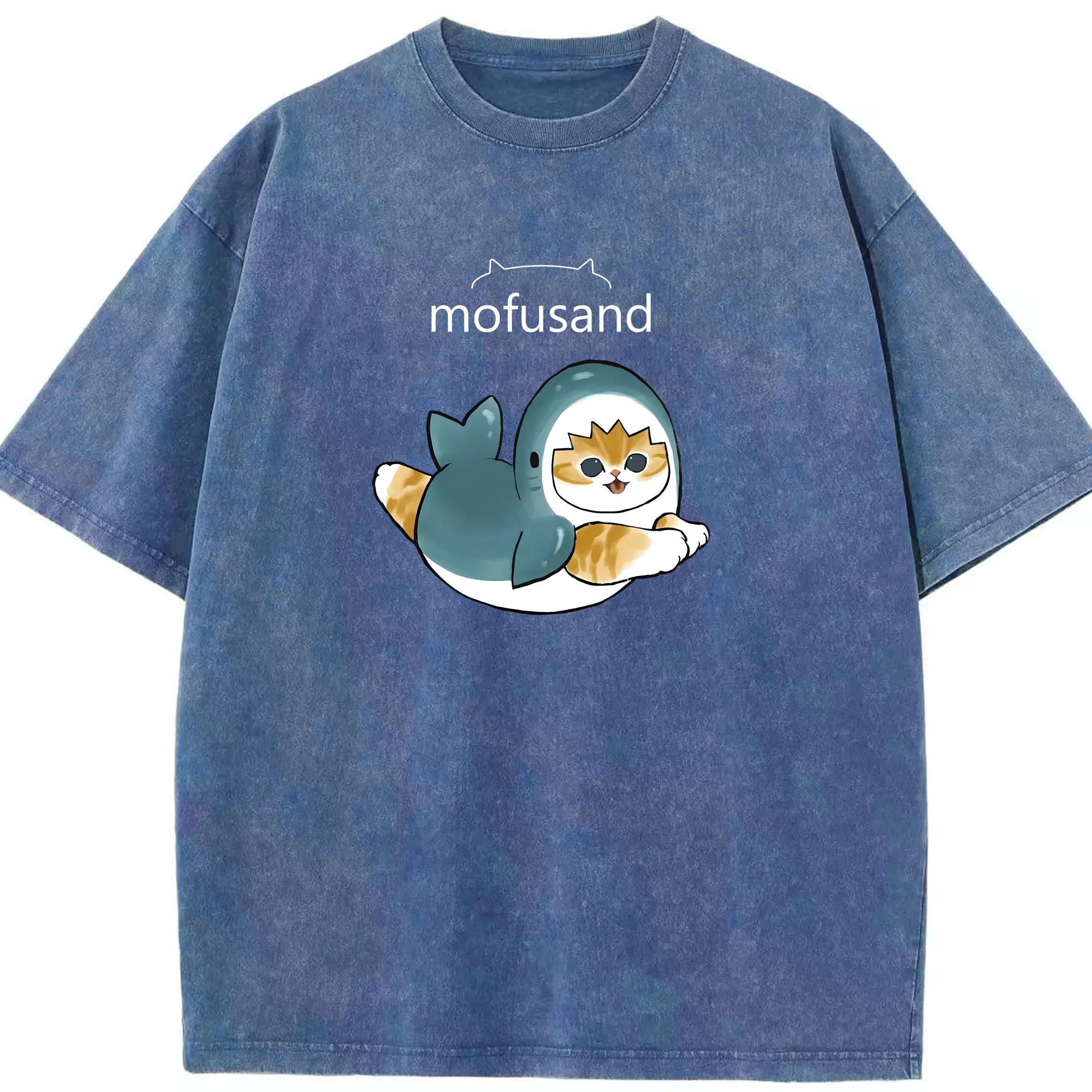 Mofusandサメにゃん限定 - 綿100% 半袖Tシャツ ・ フロントプリント ・ 快適 通気性 ・ 日常使い 散歩 スポーツ用