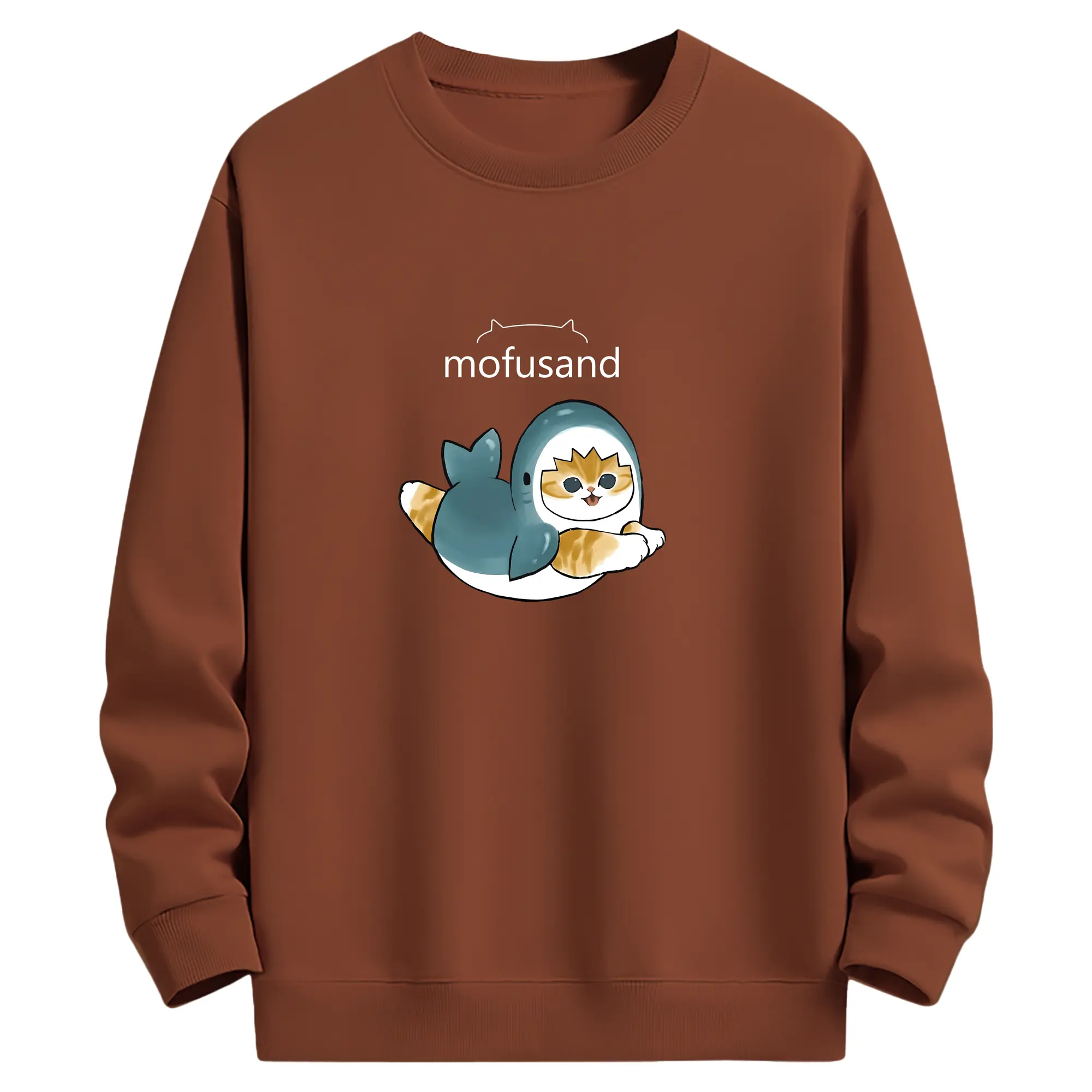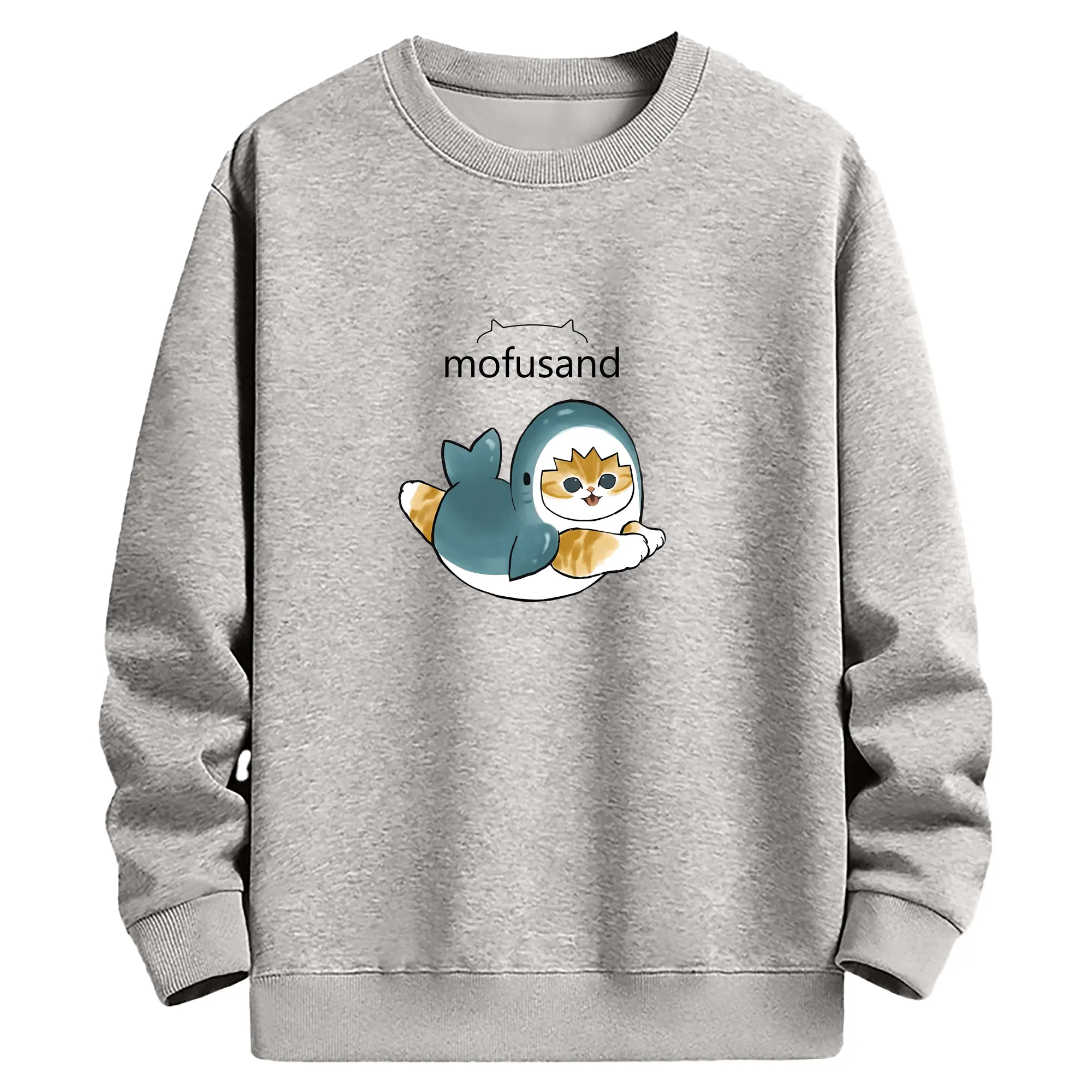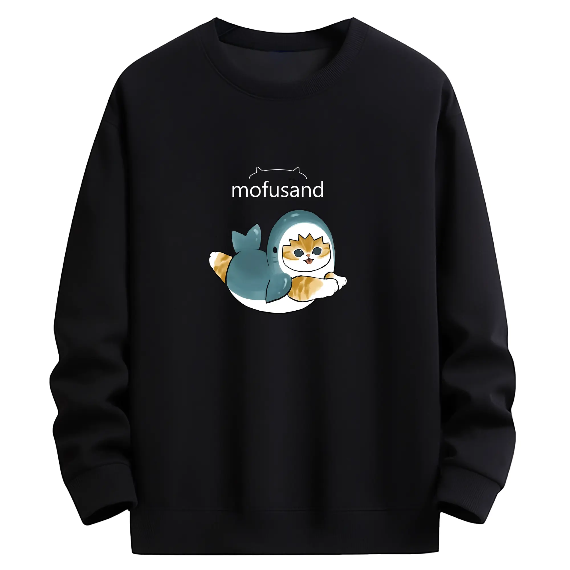Mofusandサメにゃん限定 - 綿100% 半袖Tシャツ ・ フロントプリント ・ 快適 通気性 ・ 日常使い 散歩 スポーツ用