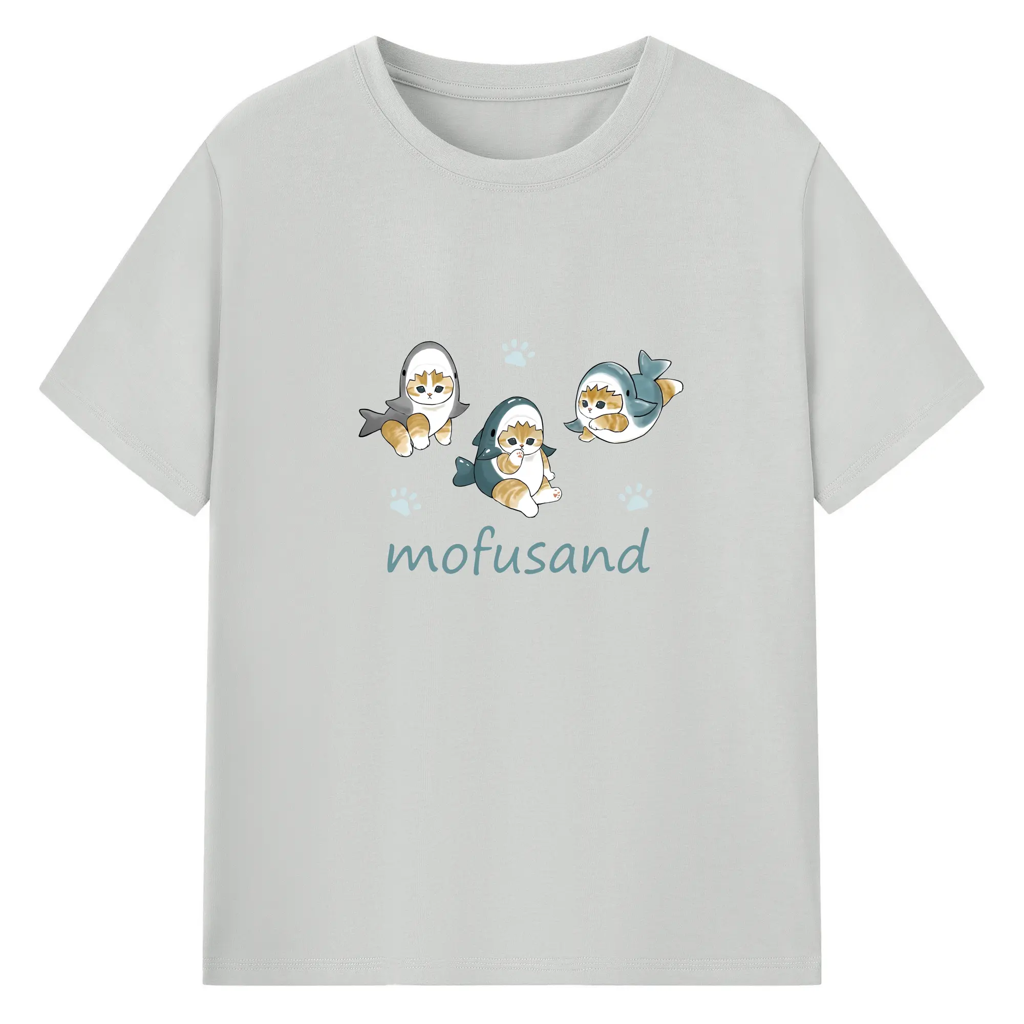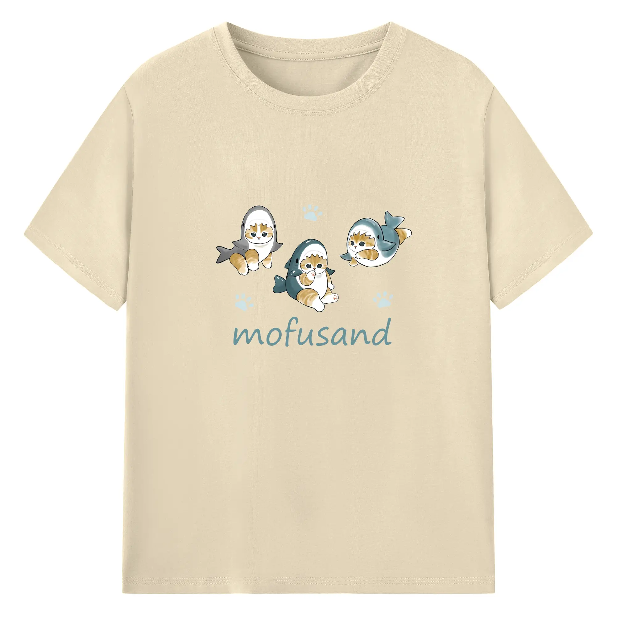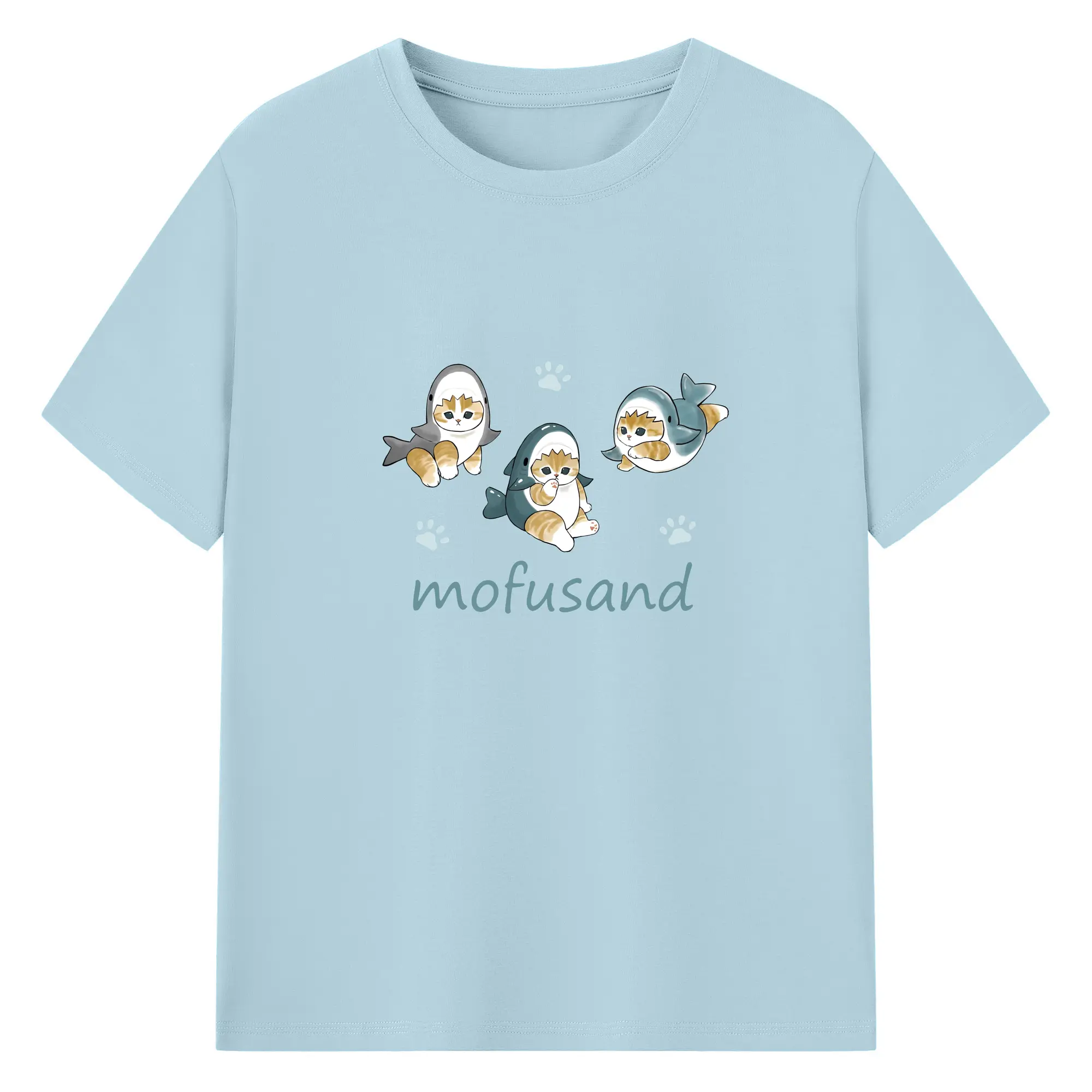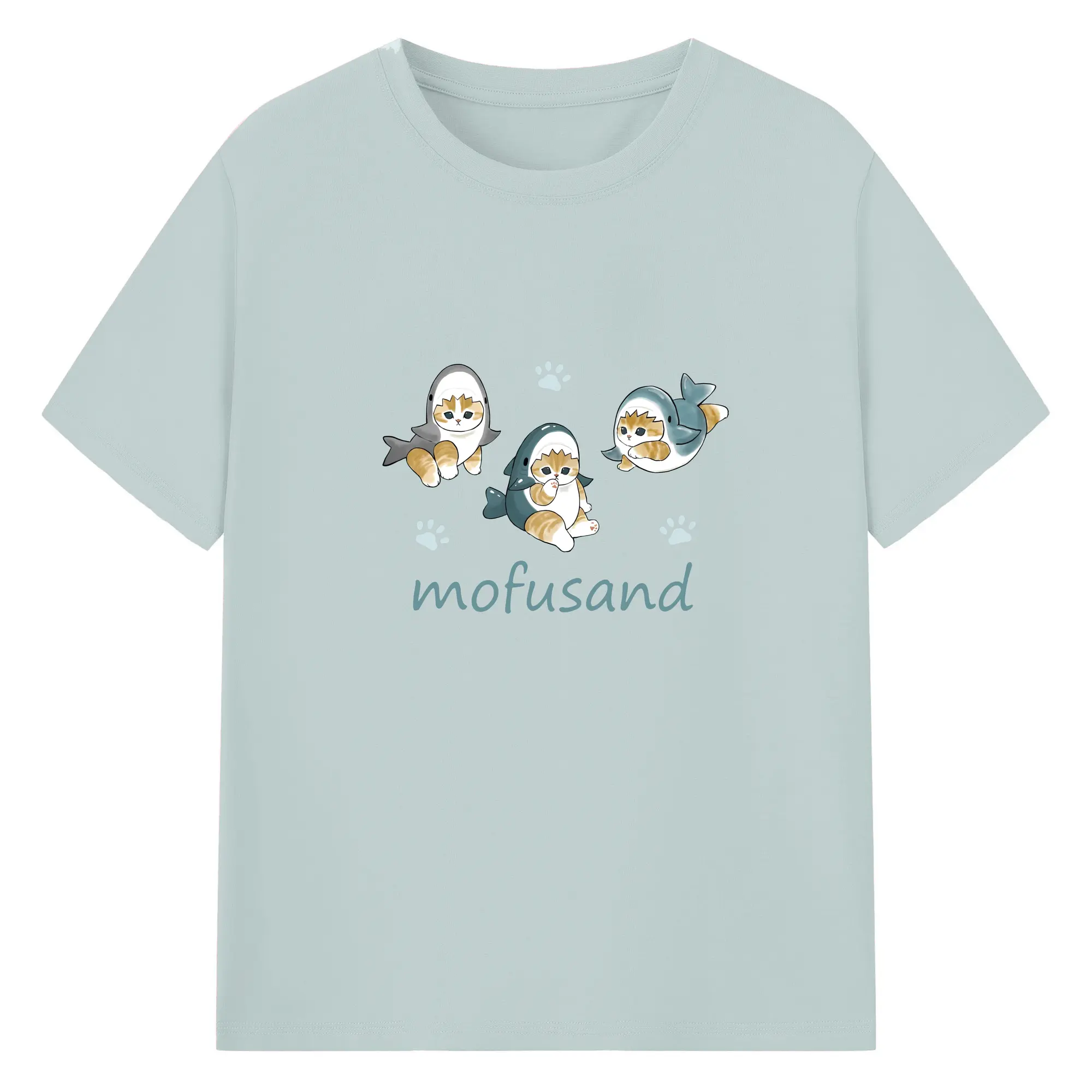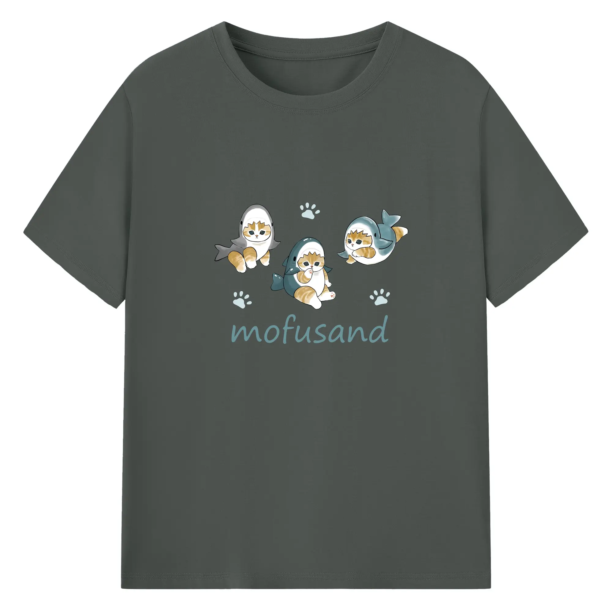 Mofusand人気のサメ図鑑 - 綿100% ヴィンテージ風 半袖Tシャツ ・ フロントプリント ・ 柔らか肌触り ・ 通気性 快適 ・ スポーツ カジュアル 外出用