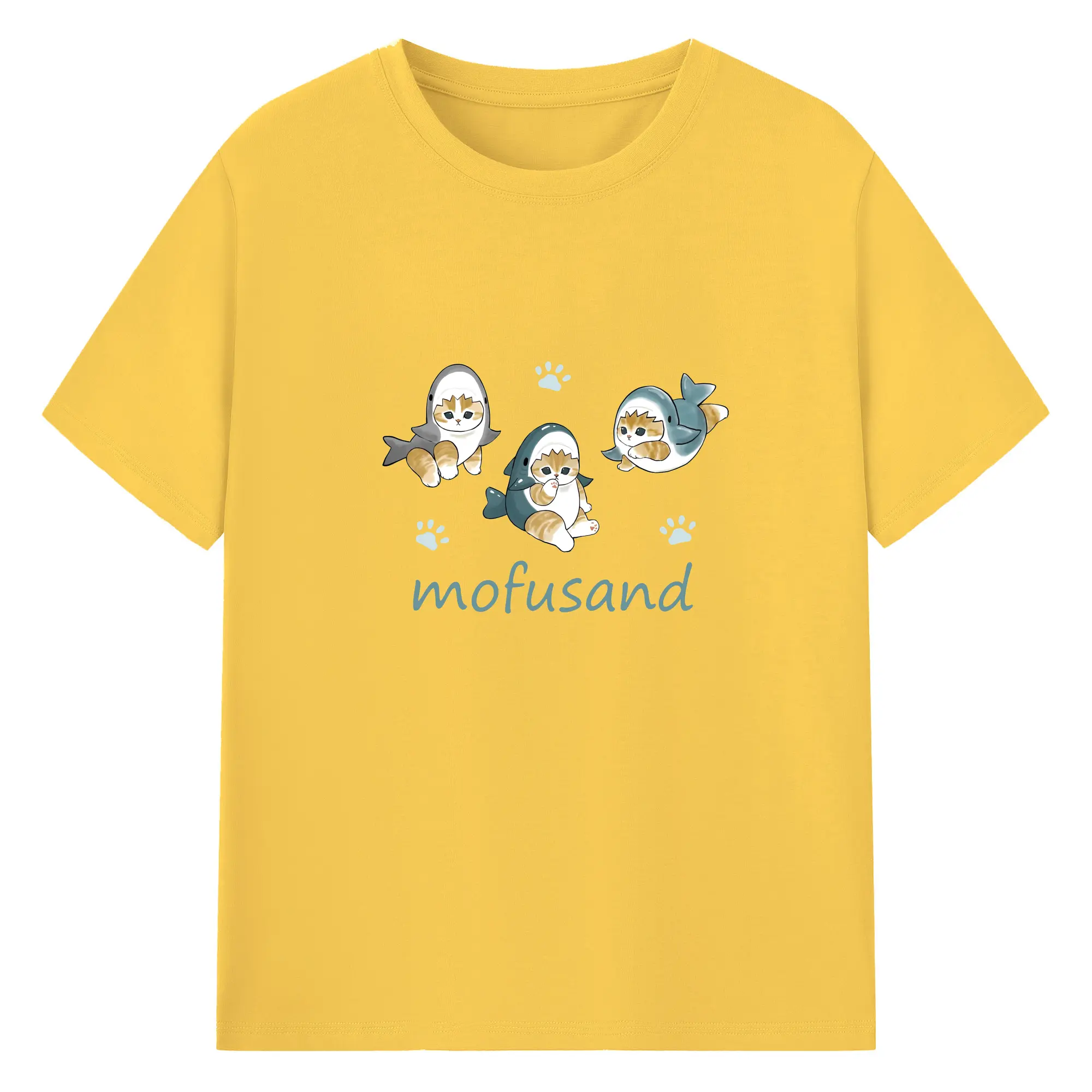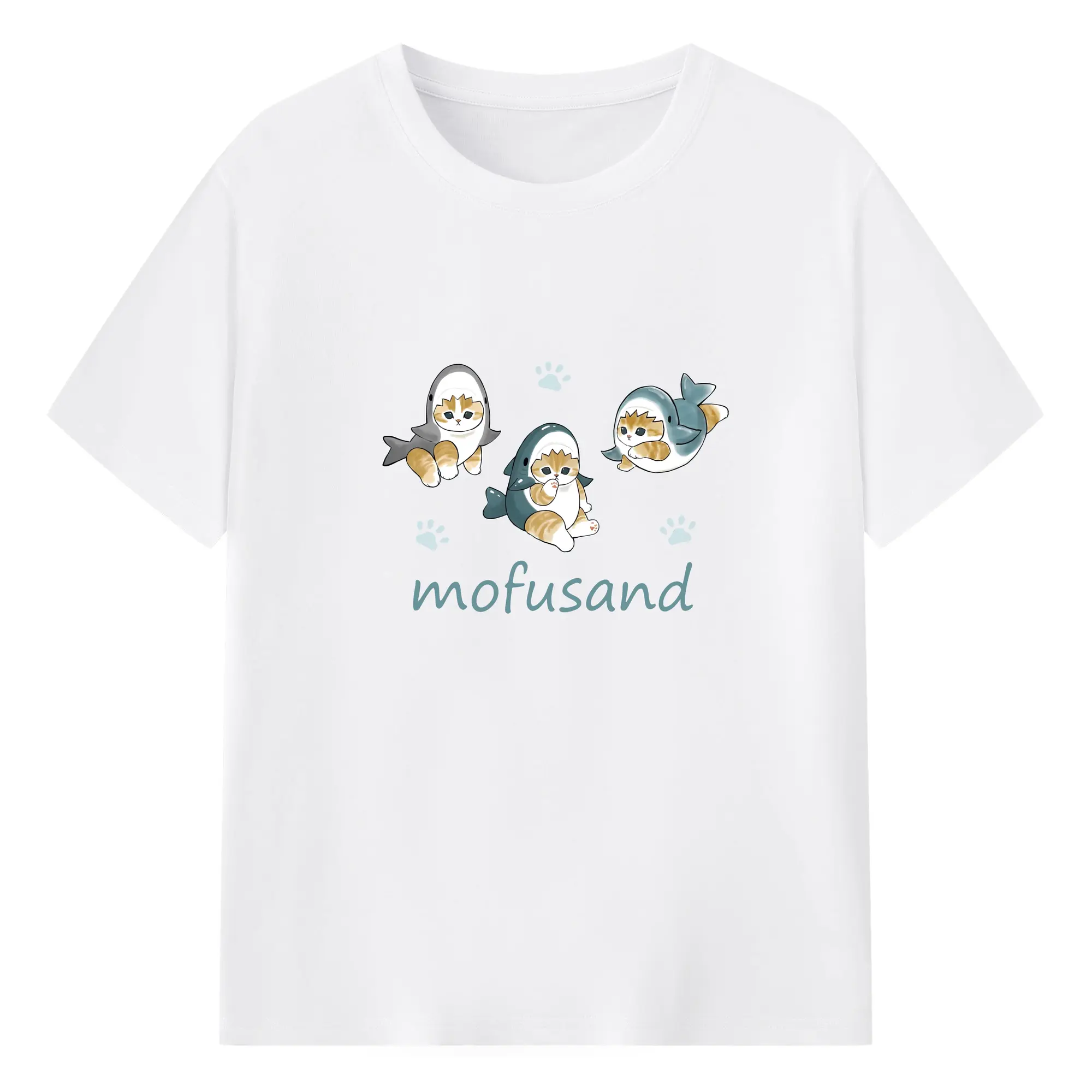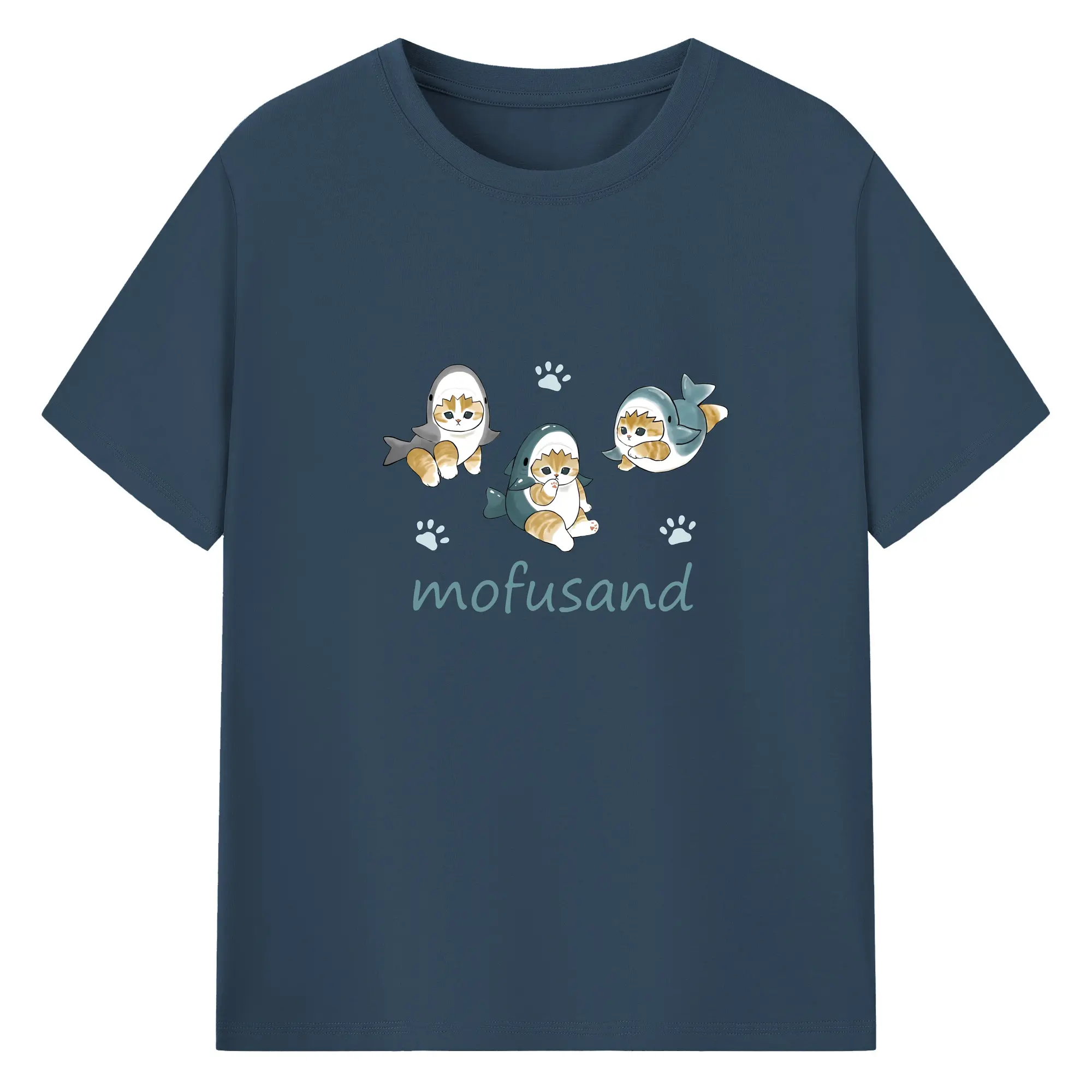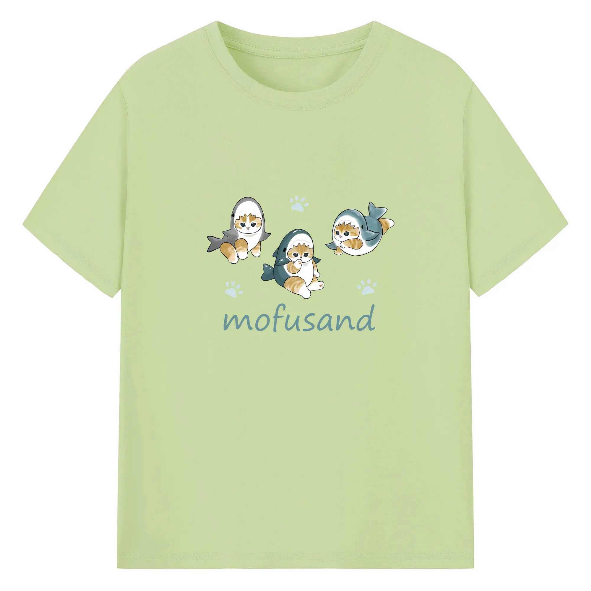 Mofusand人気のサメ図鑑 - 綿100% ヴィンテージ風 半袖Tシャツ ・ フロントプリント ・ 柔らか肌触り ・ 通気性 快適 ・ スポーツ カジュアル 外出用