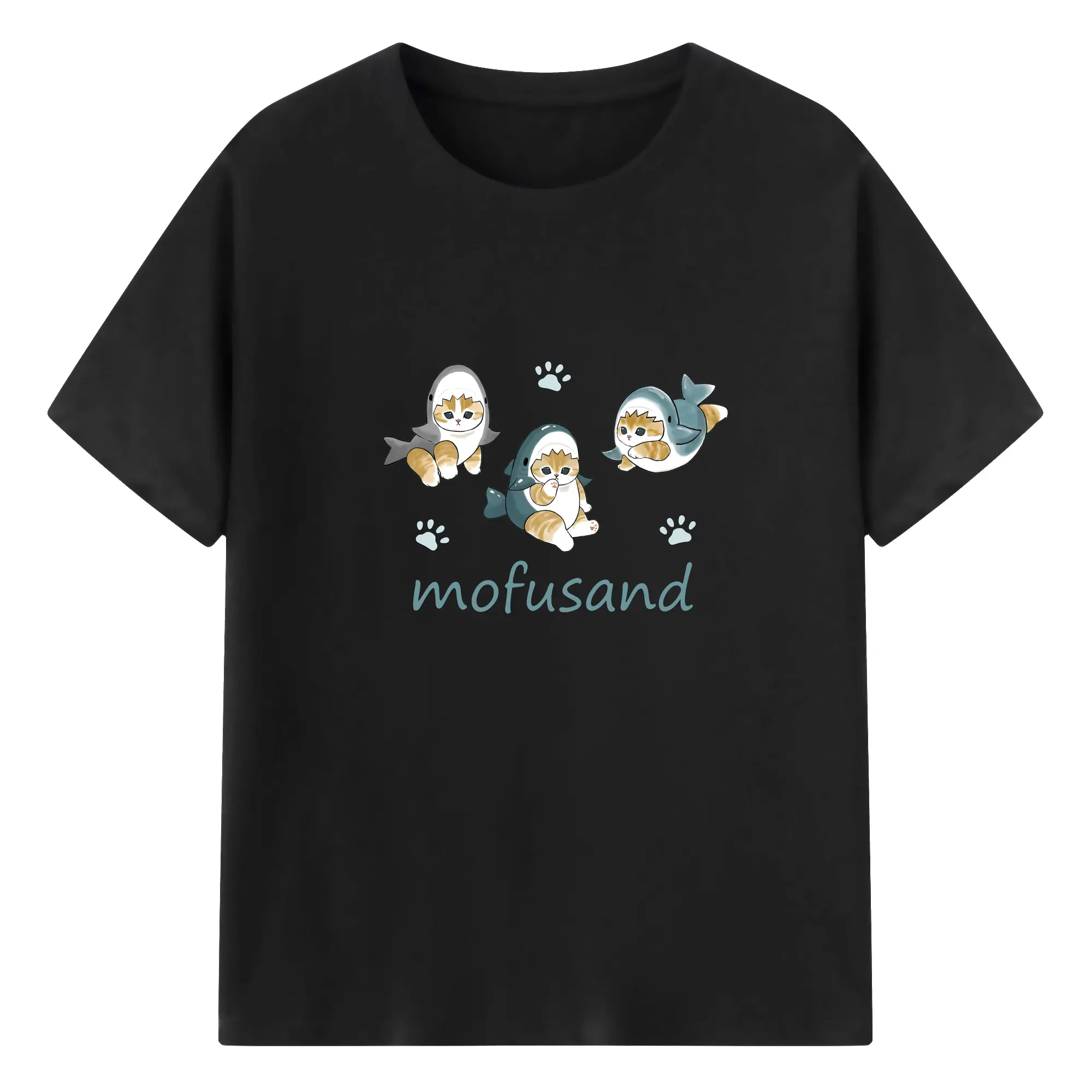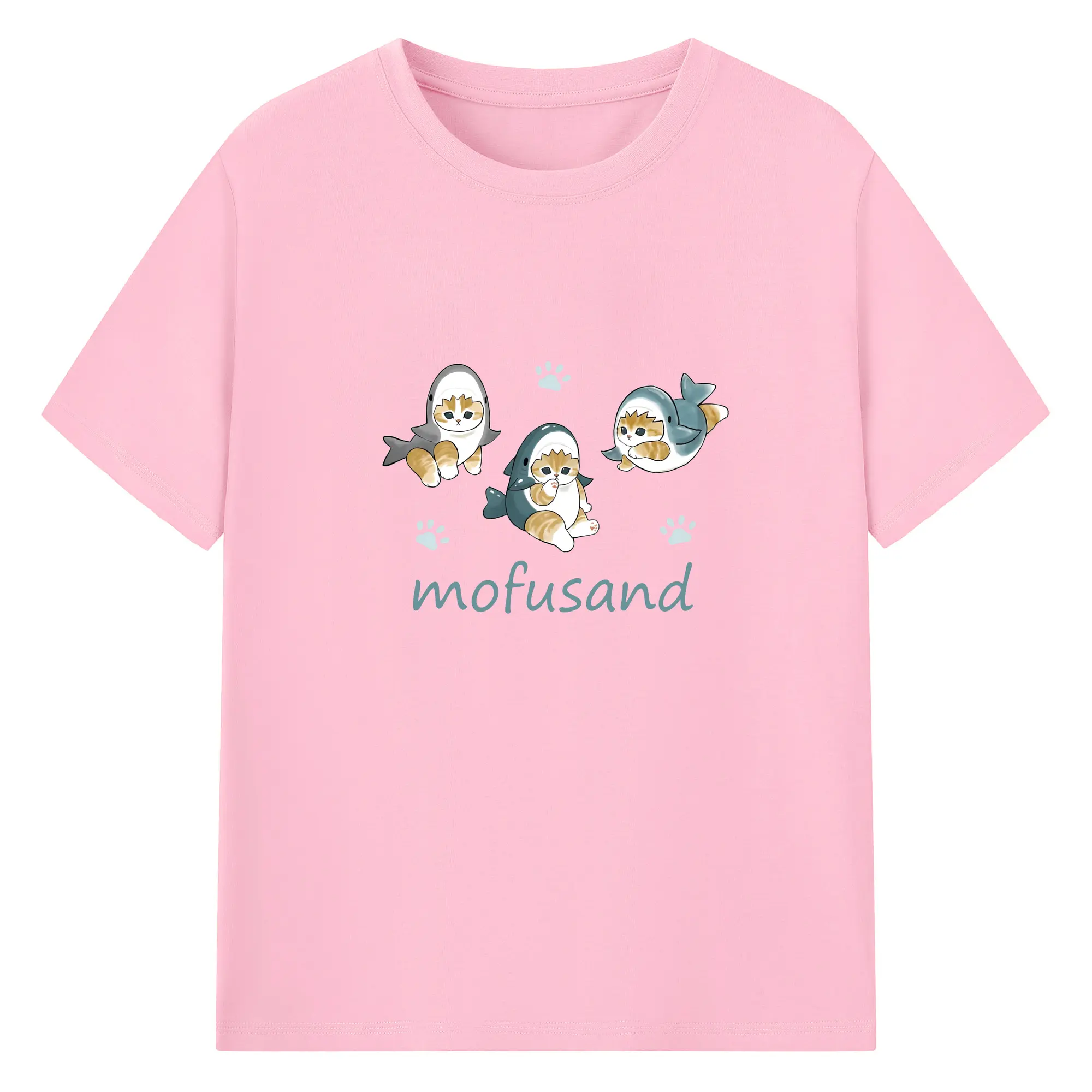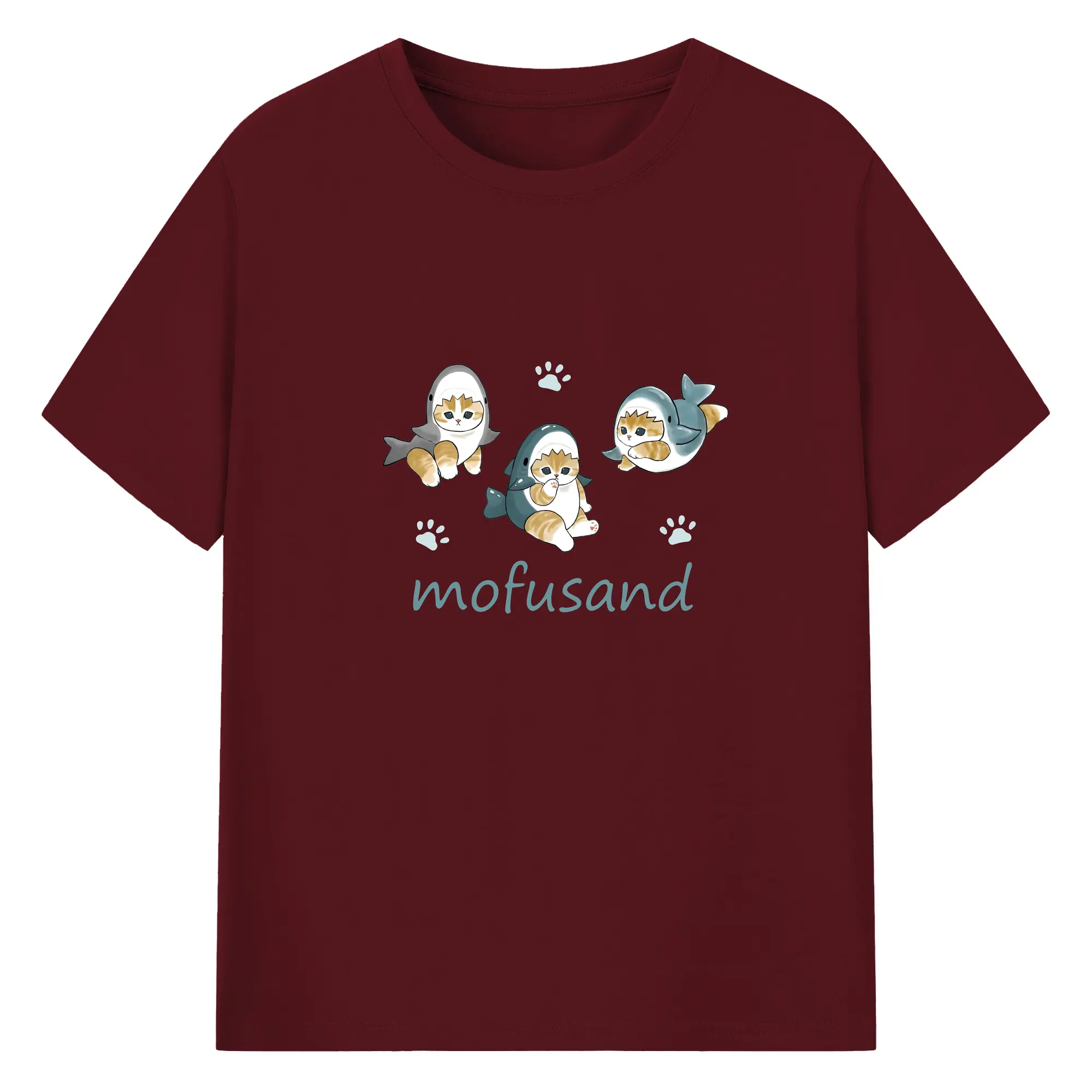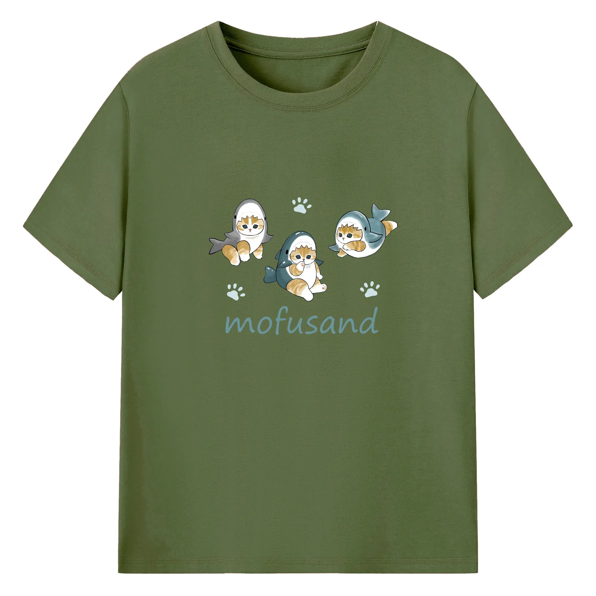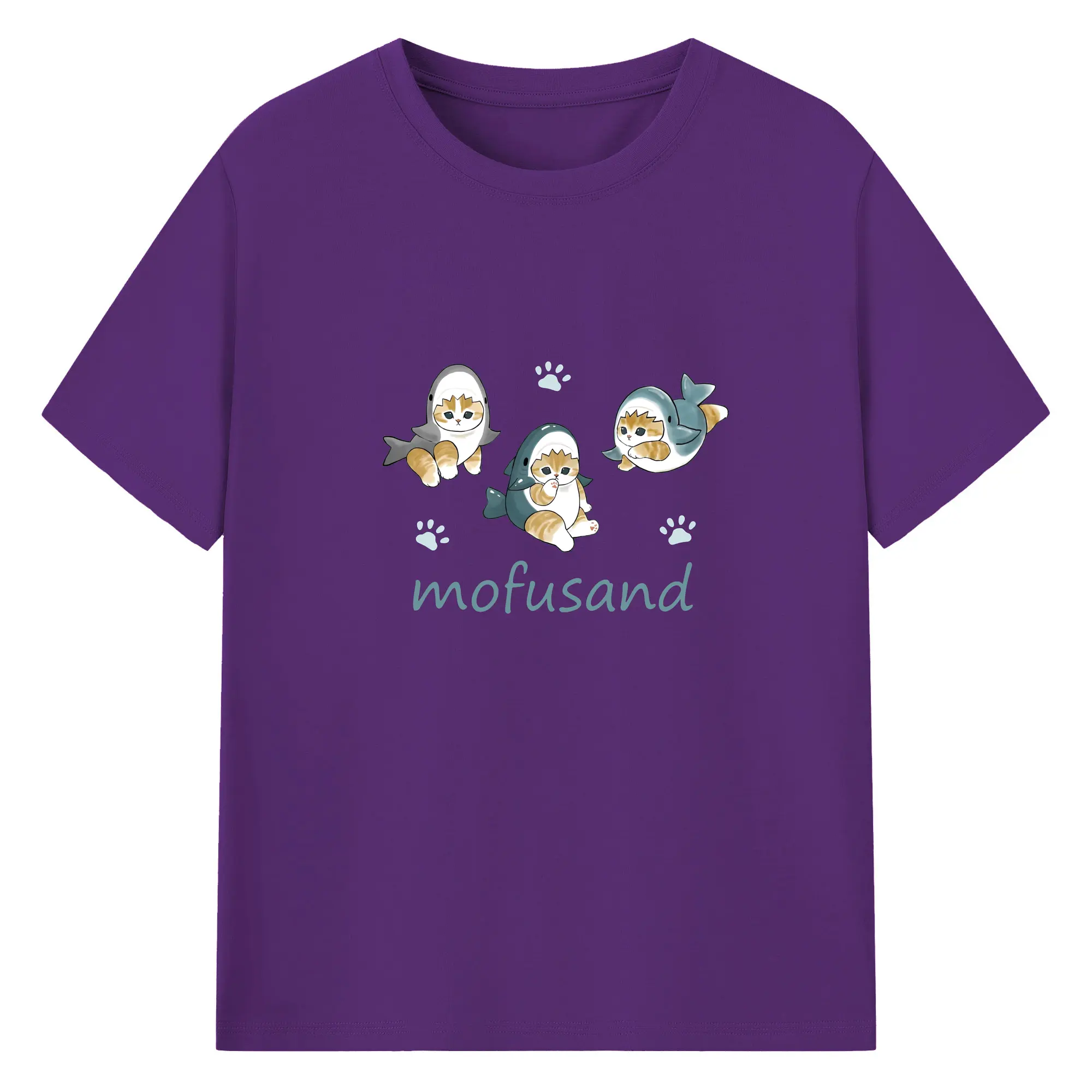 Mofusand人気のサメ図鑑 - 綿100% ヴィンテージ風 半袖Tシャツ ・ フロントプリント ・ 柔らか肌触り ・ 通気性 快適 ・ スポーツ カジュアル 外出用