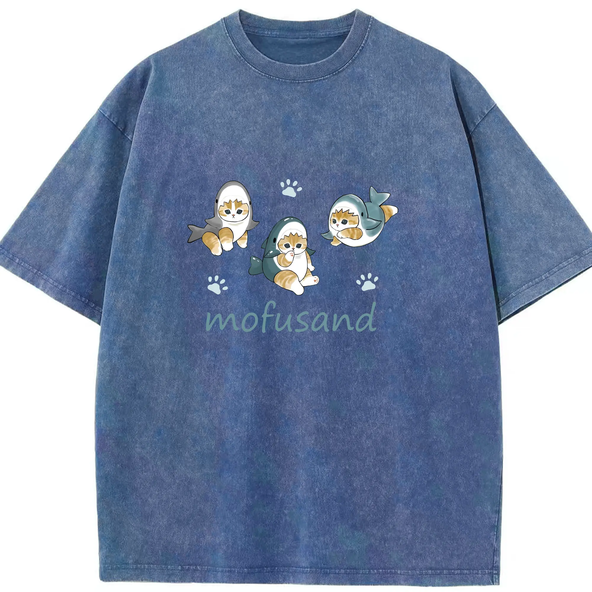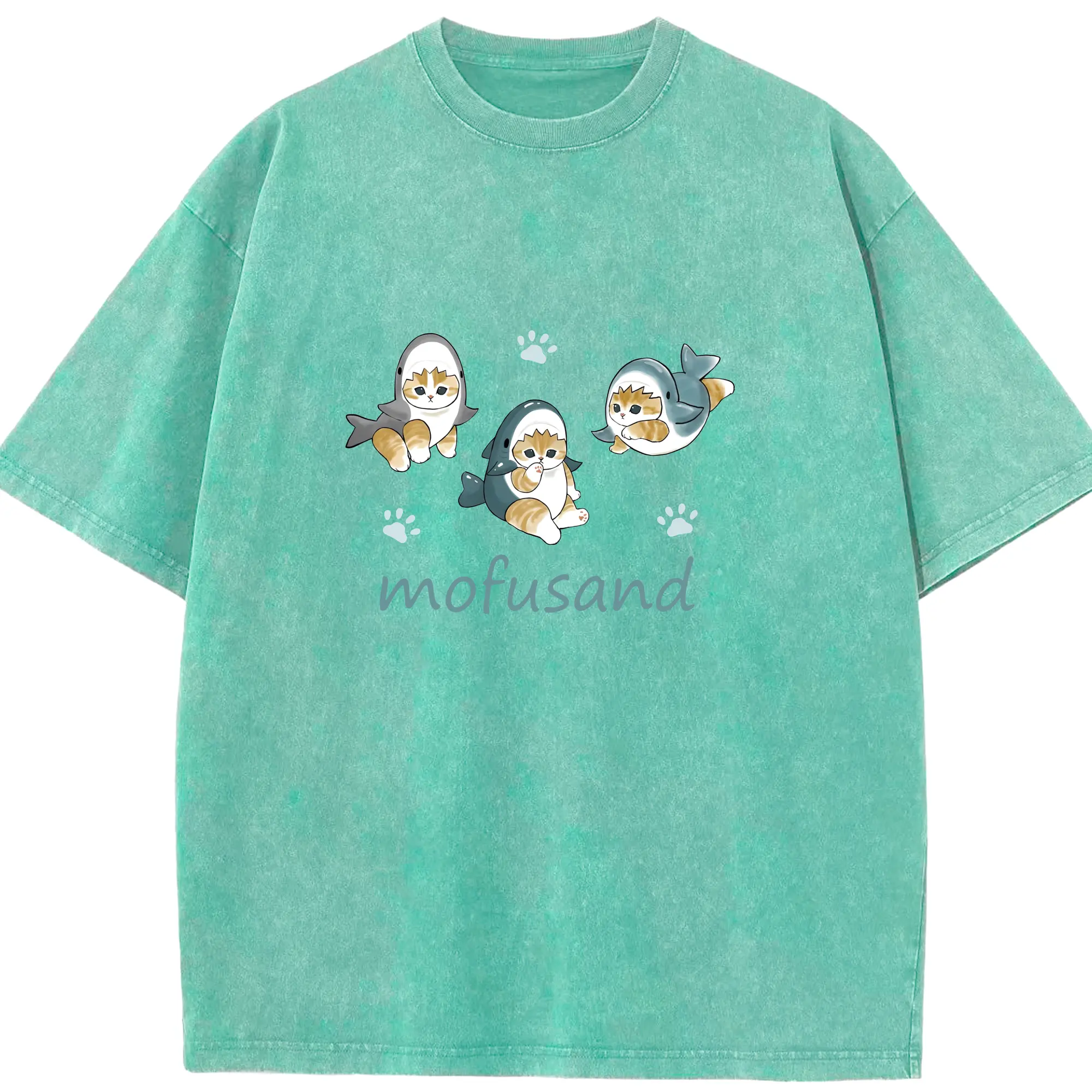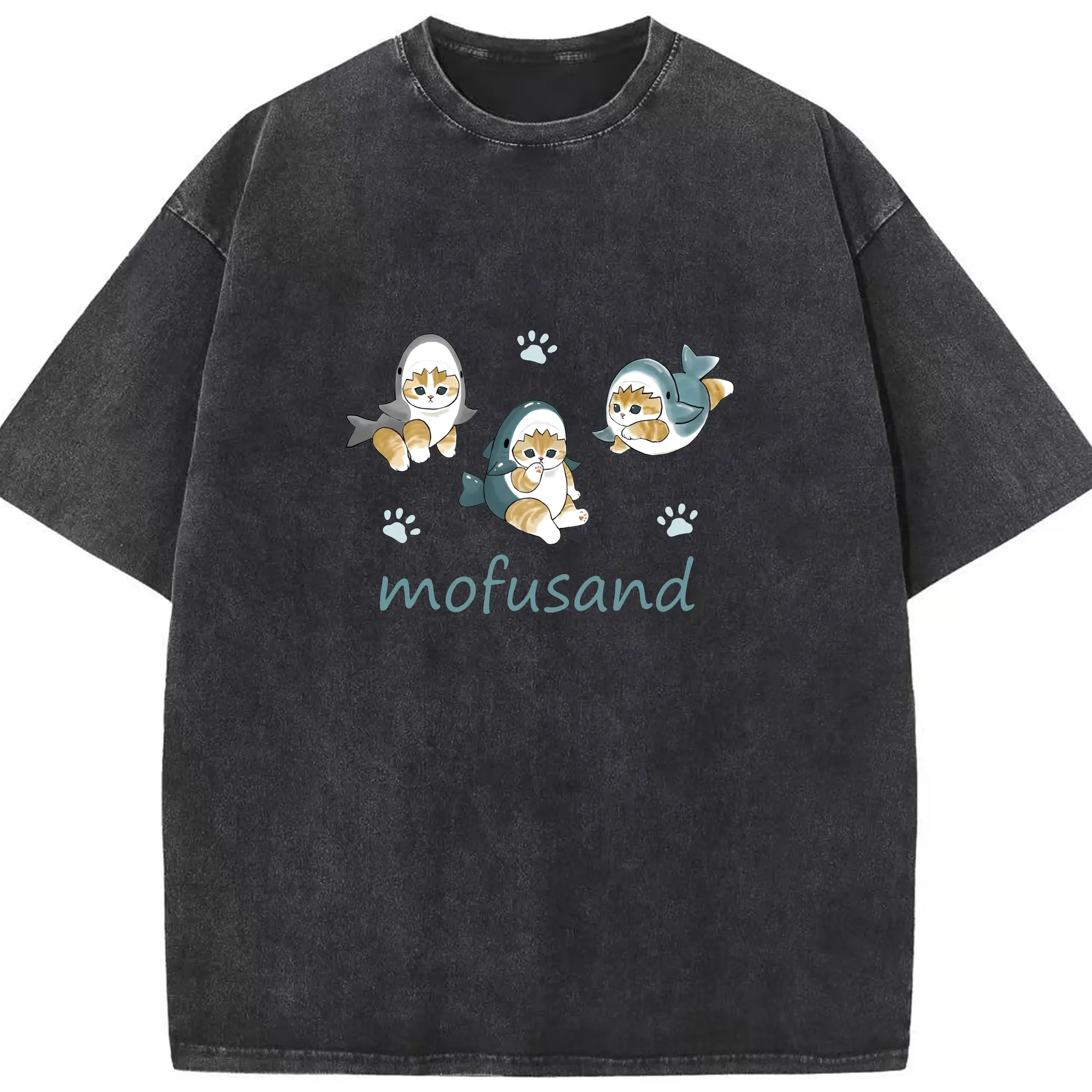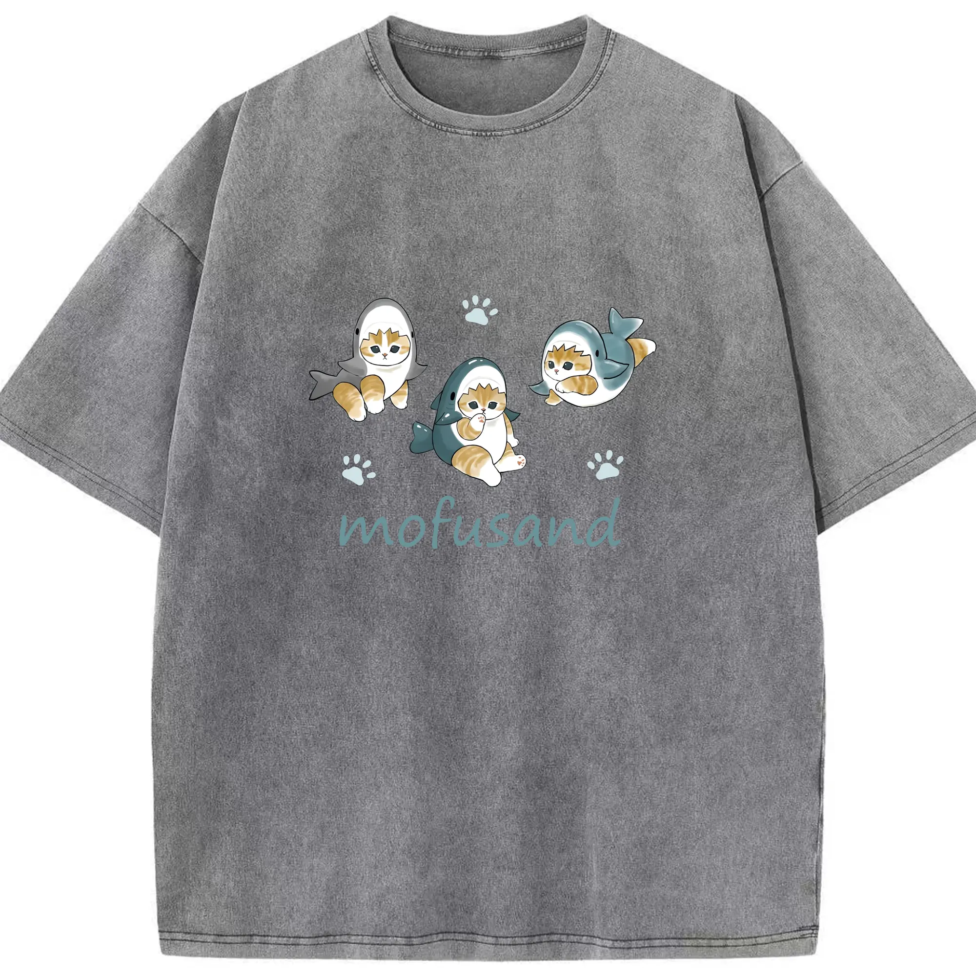 Mofusand人気のサメ図鑑 - 綿100% 半袖Tシャツ ・ フロントプリント ・ 快適 通気性 ・ 日常使い 散歩 スポーツ用