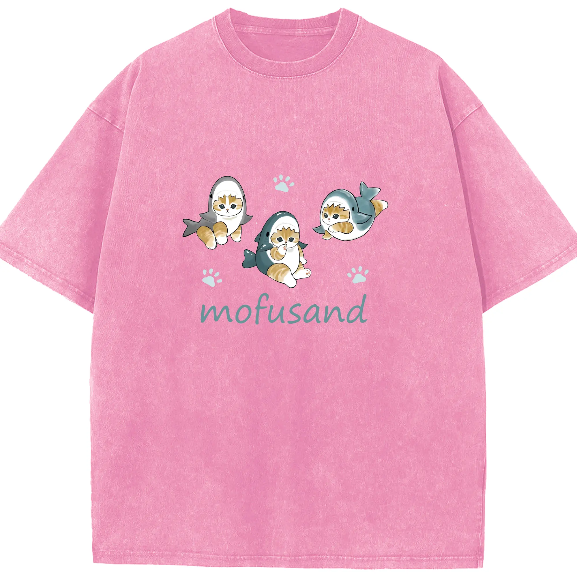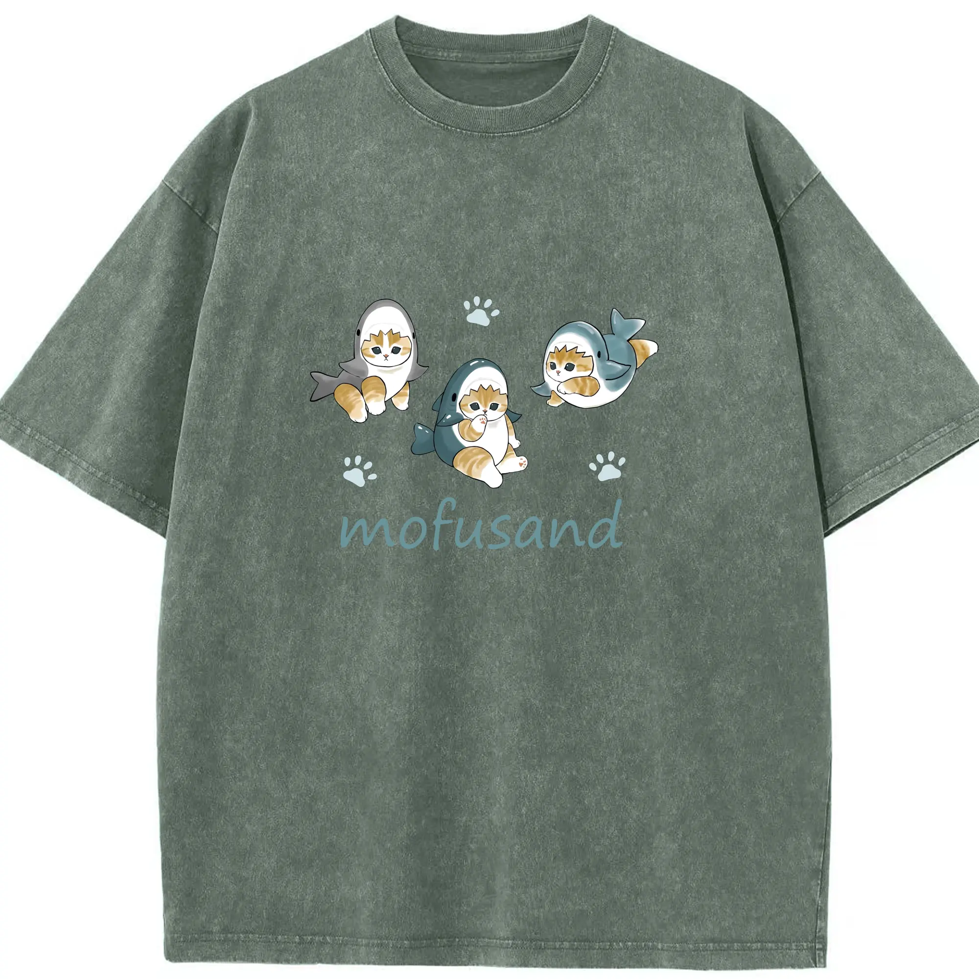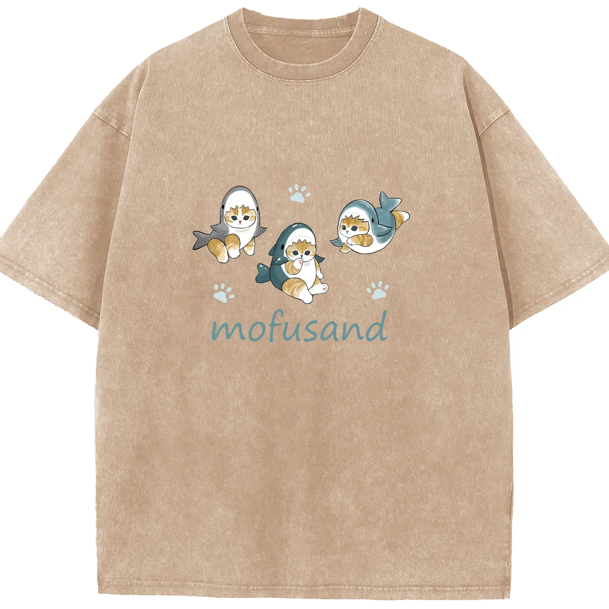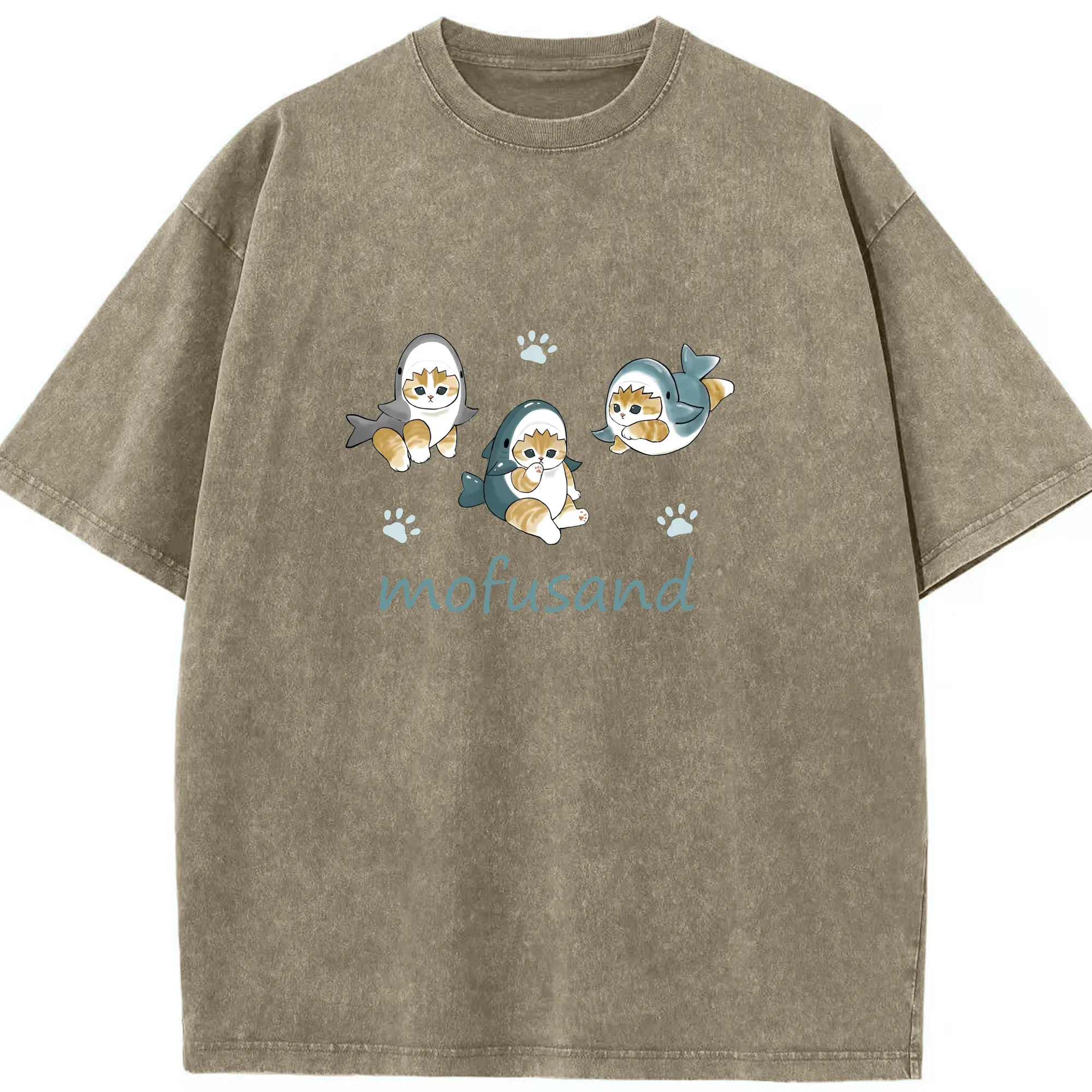 Mofusand人気のサメ図鑑 - 綿100% 半袖Tシャツ ・ フロントプリント ・ 快適 通気性 ・ 日常使い 散歩 スポーツ用