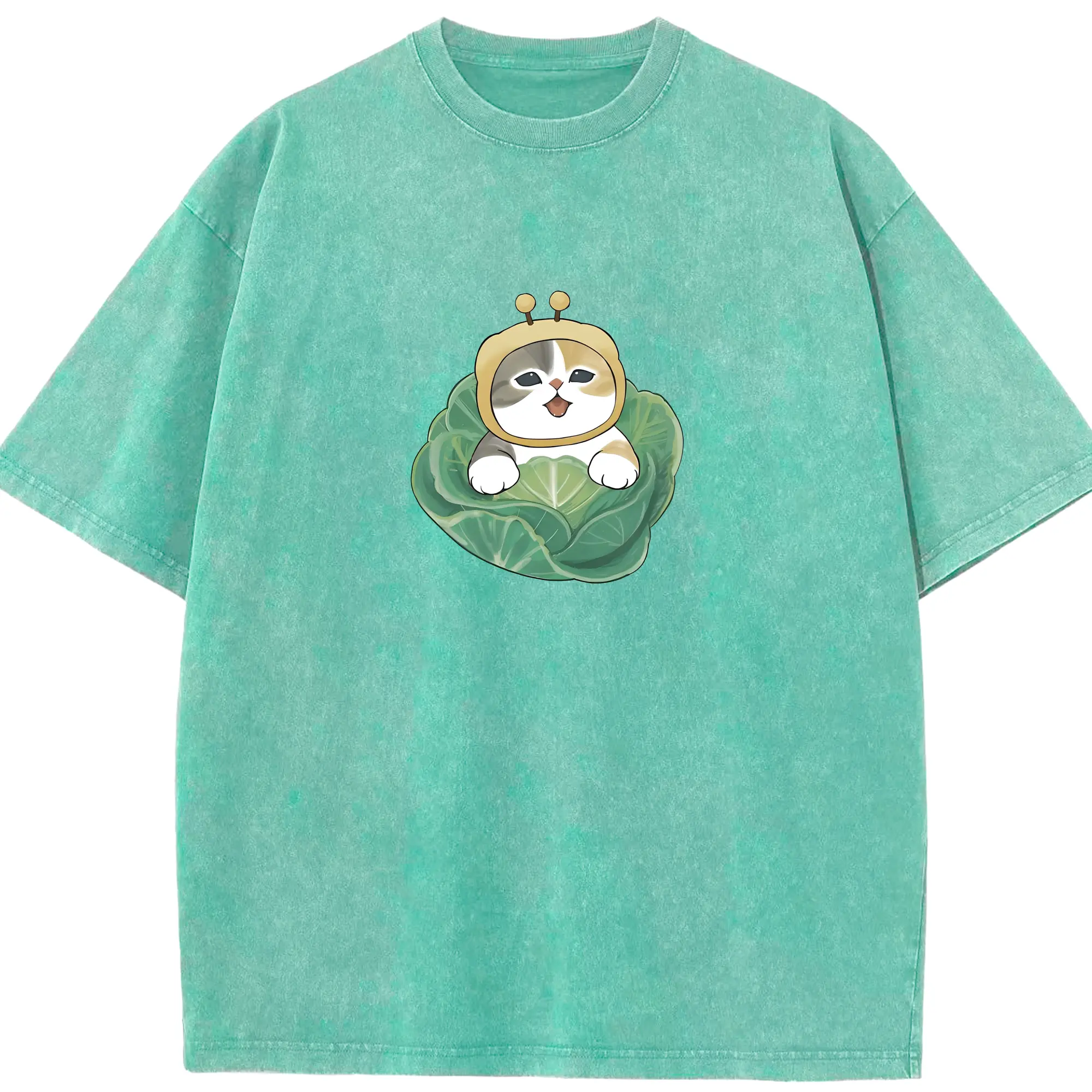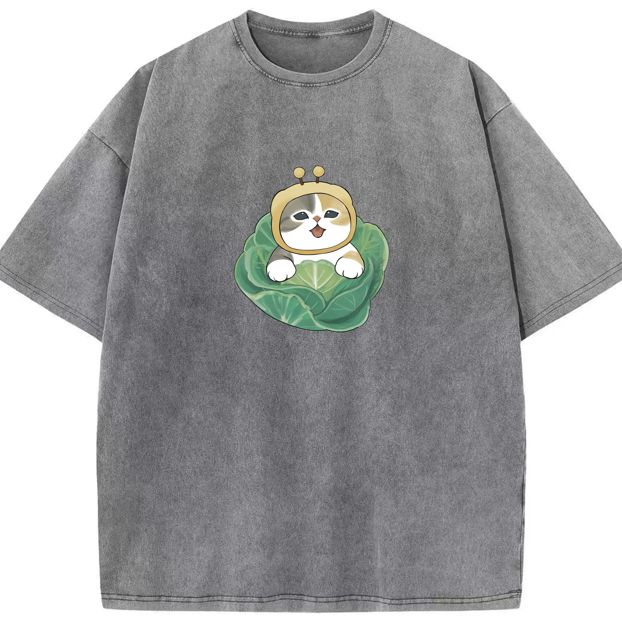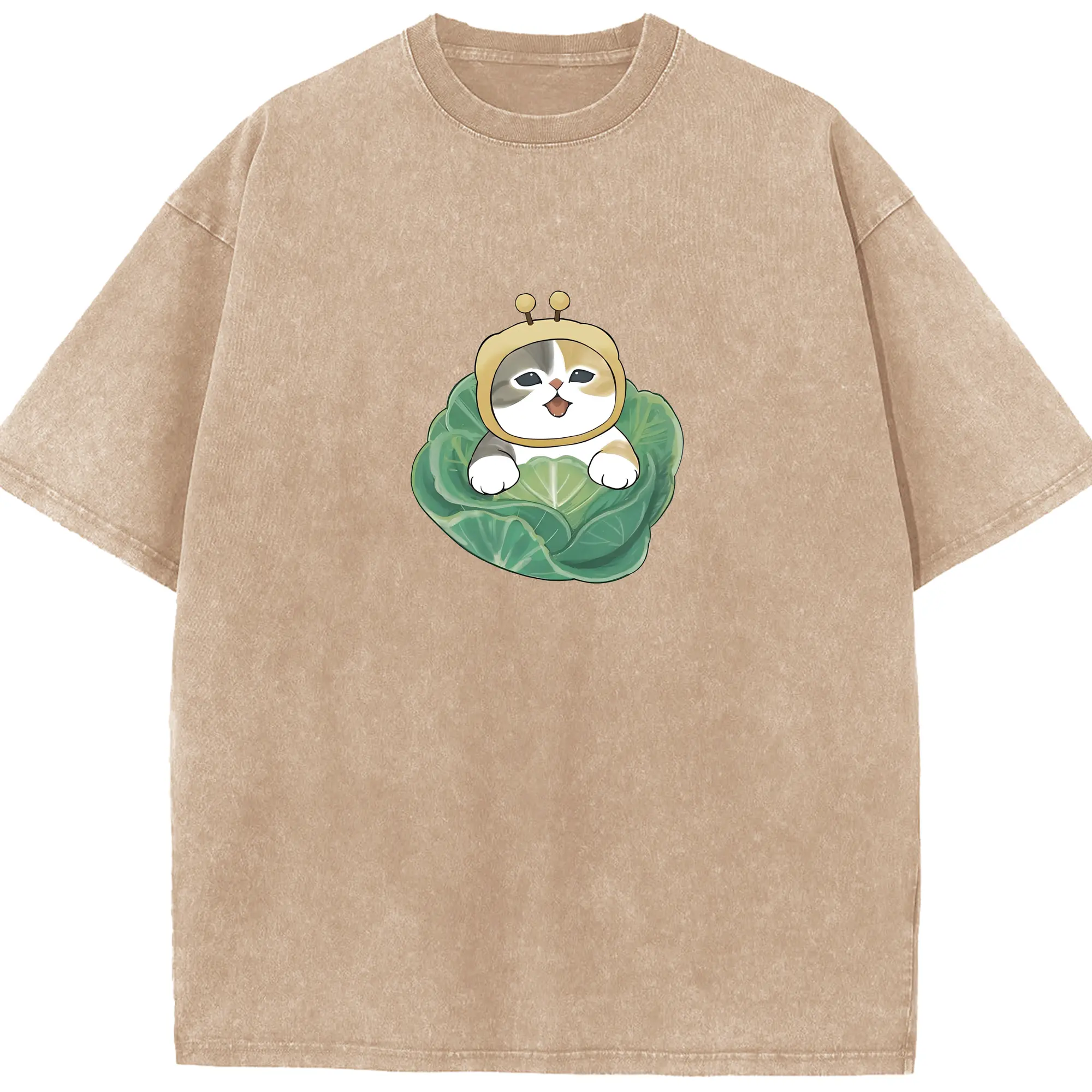 もふもふのにやんこ動物モチーフの着ぐるみ - 綿100% ヴィンテージ風 半袖Tシャツ ・ フロントプリント ・ 柔らか肌触り ・ 通気性 快適 ・ スポーツ カジュアル 外出用