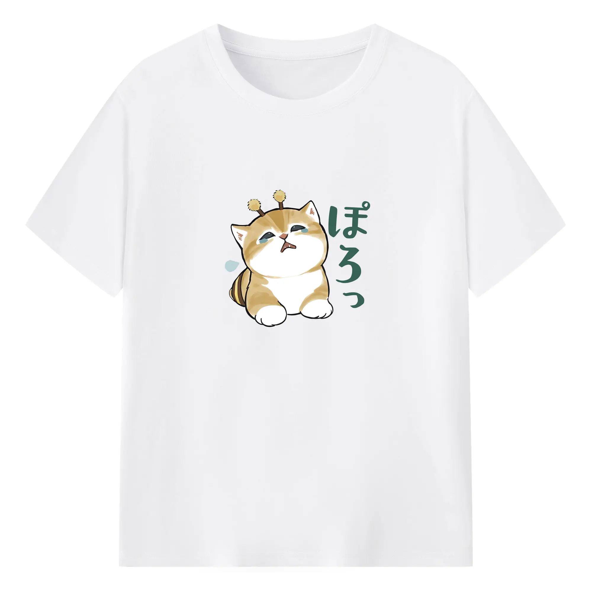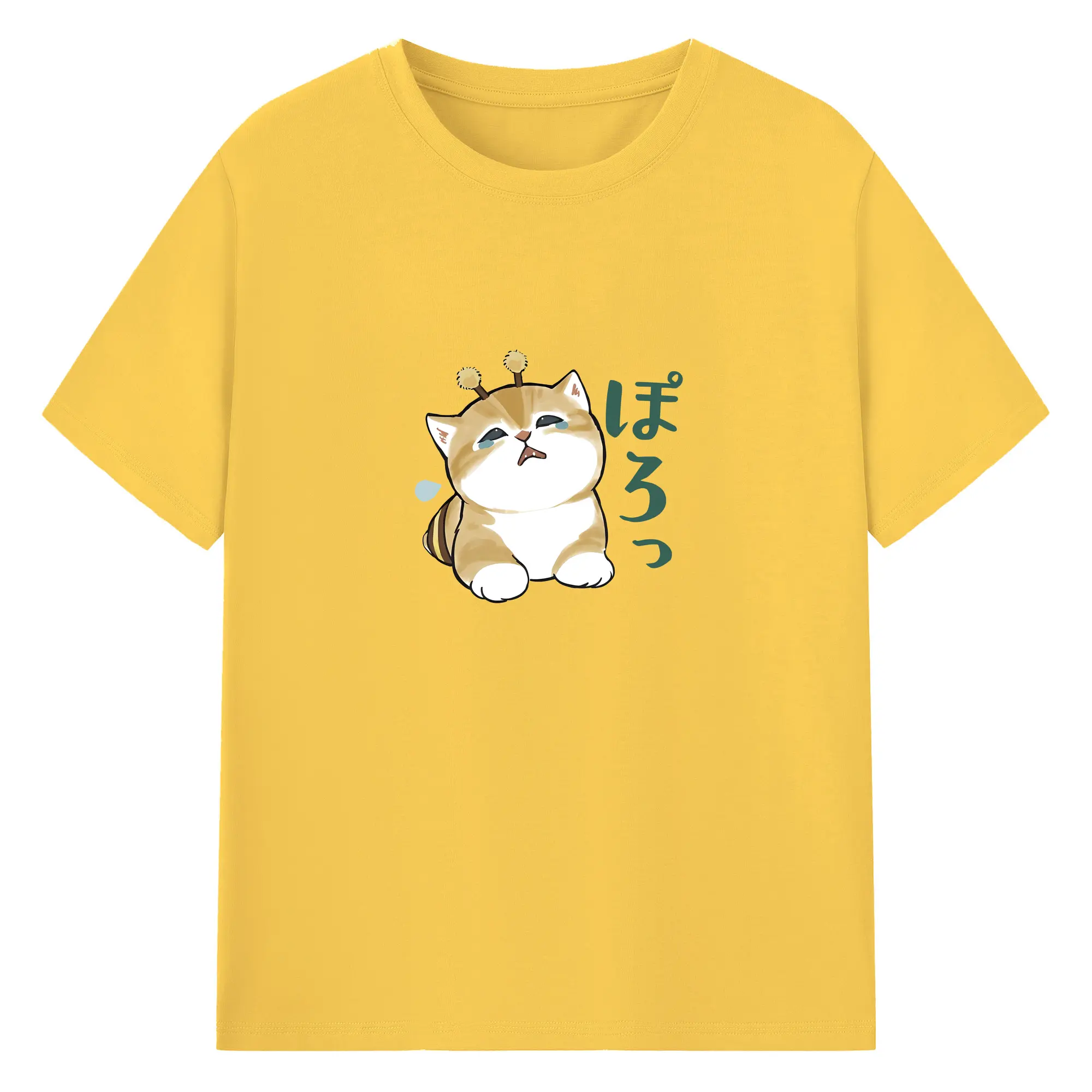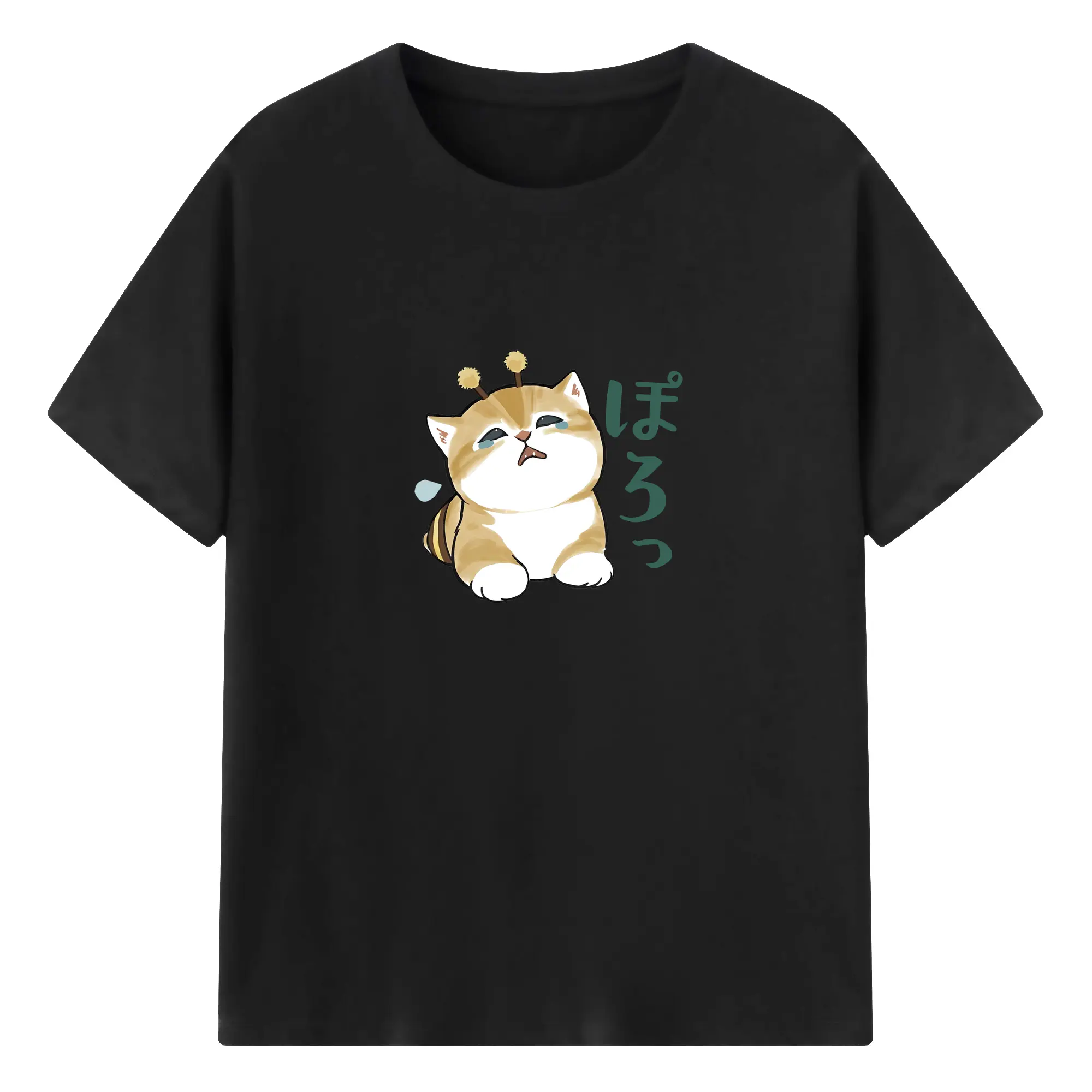Mofusand みつばちネコモチーフ 可愛い&ユニーク 🐝 - 綿100% ヴィンテージ風 半袖Tシャツ ・ フロントプリント ・ 柔らか肌触り ・ 通気性 快適 ・ スポーツ カジュアル 外出用