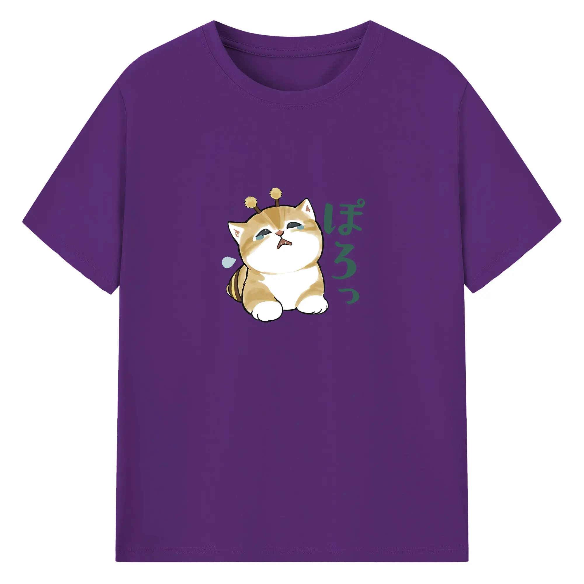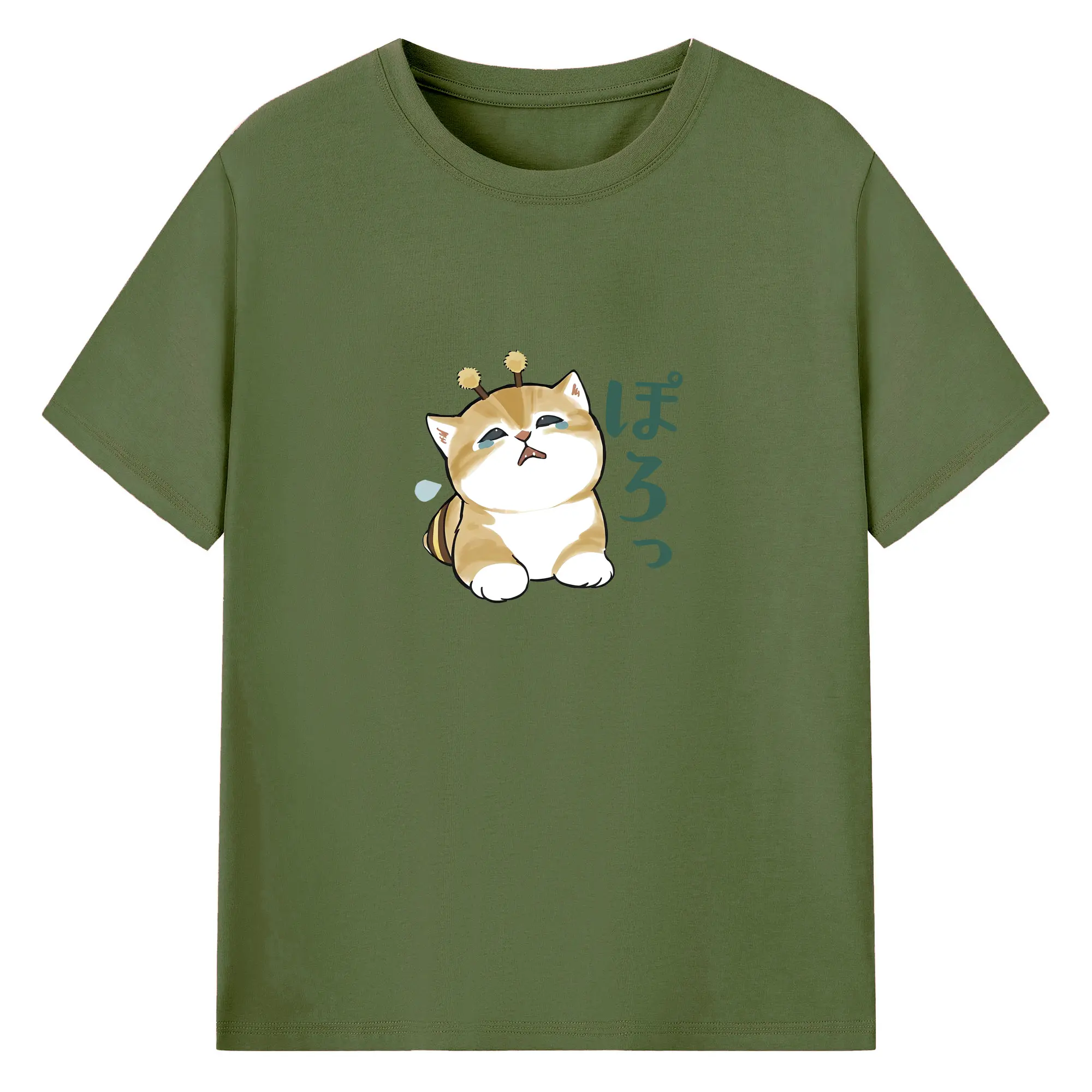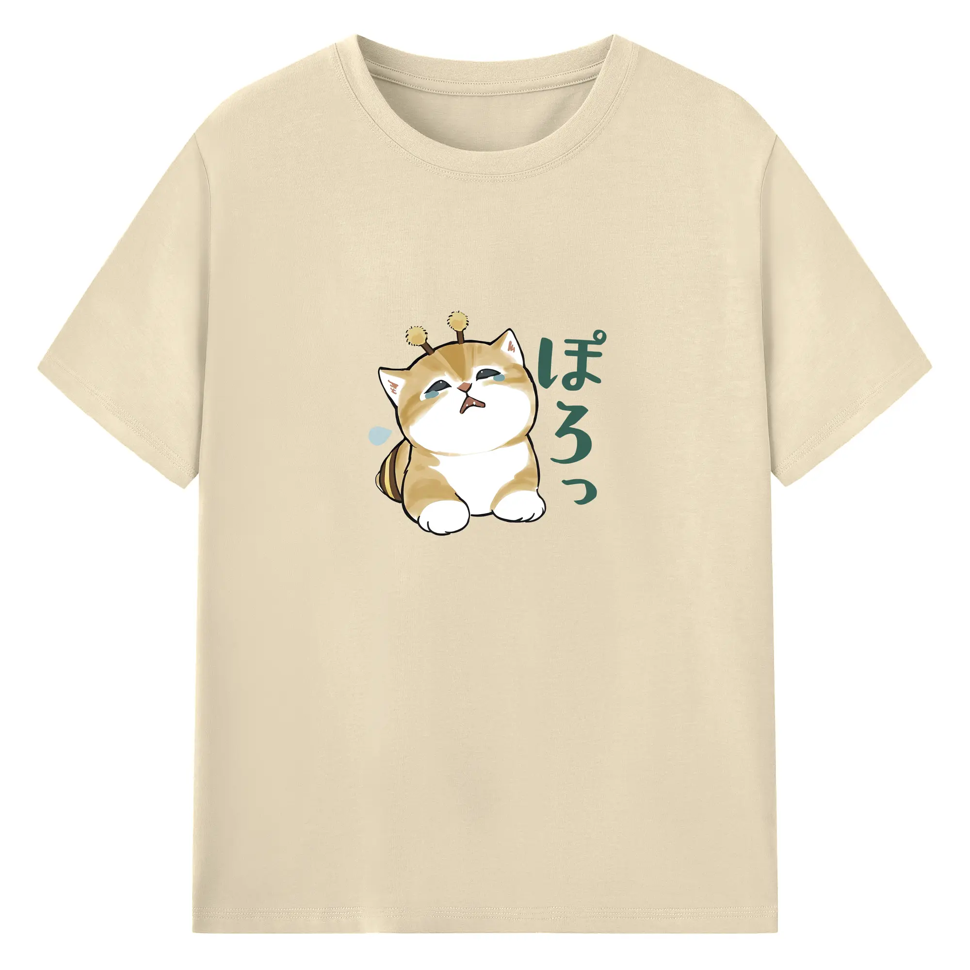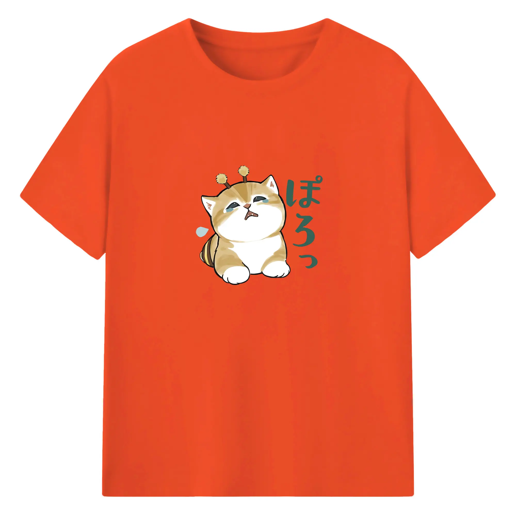 Mofusand みつばちネコモチーフ 可愛い&ユニーク 🐝 - 綿100% ヴィンテージ風 半袖Tシャツ ・ フロントプリント ・ 柔らか肌触り ・ 通気性 快適 ・ スポーツ カジュアル 外出用