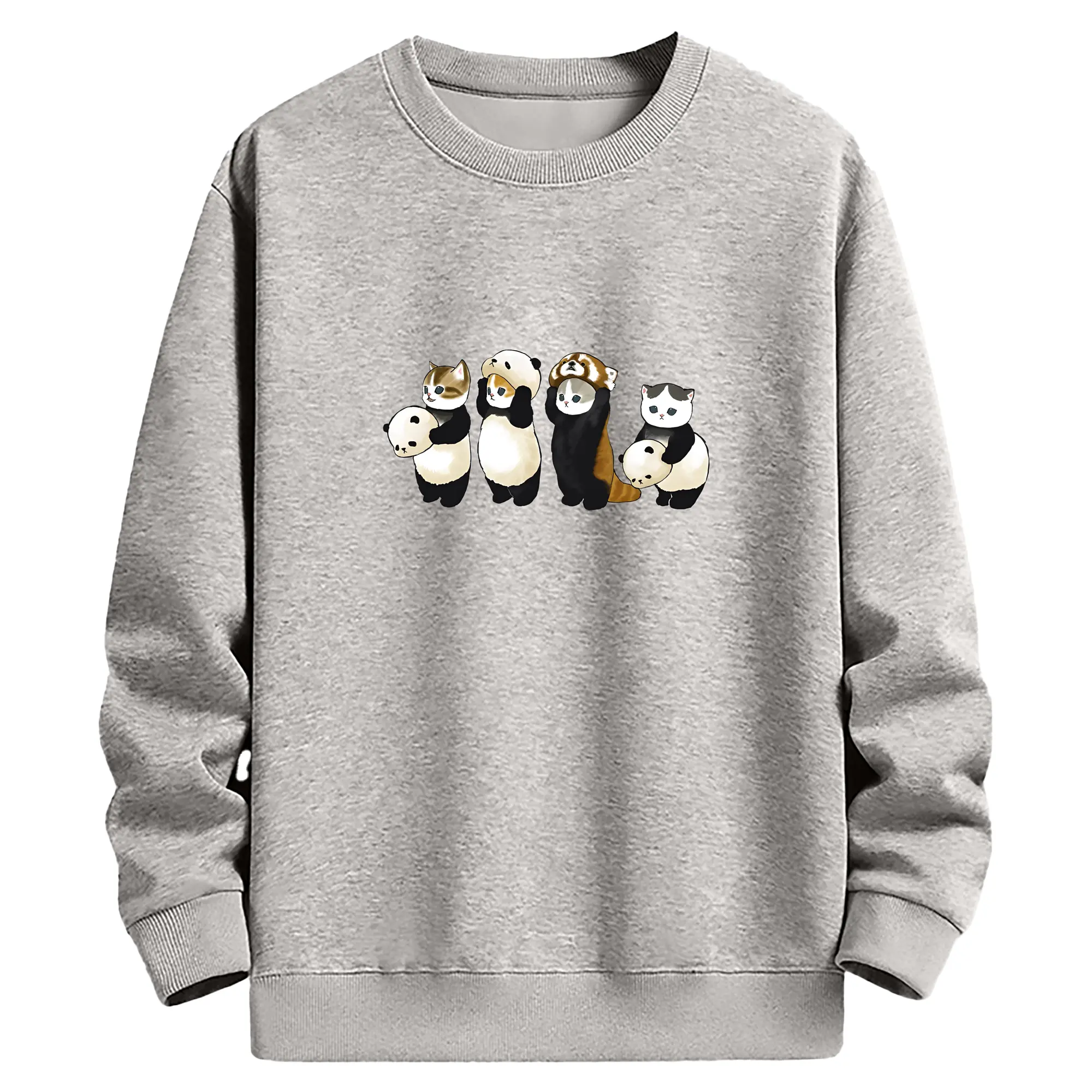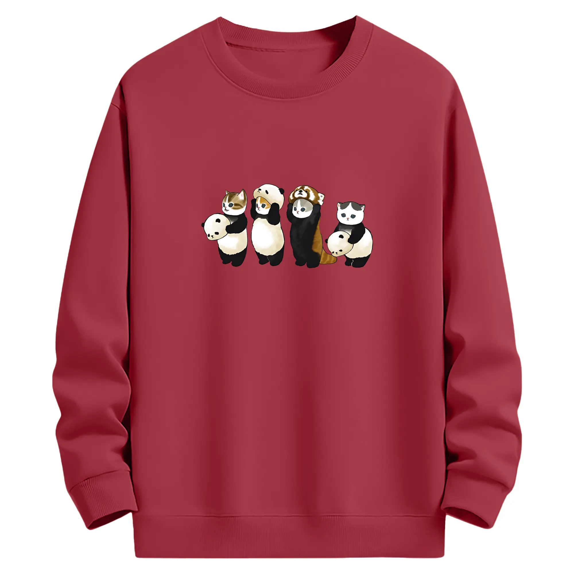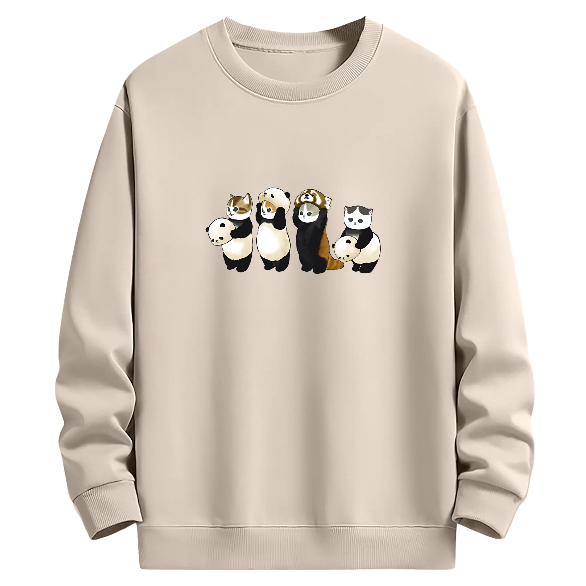 新作パンダの着ぐるみ猫 人気限定 おしゃれデザイン - 高品質 クルーネック スウェット ・ コットン59% ポリエステル41% ・ ユニセックス 長袖 トレーナー ・ カジュアル デイリー スポーツ 散歩用