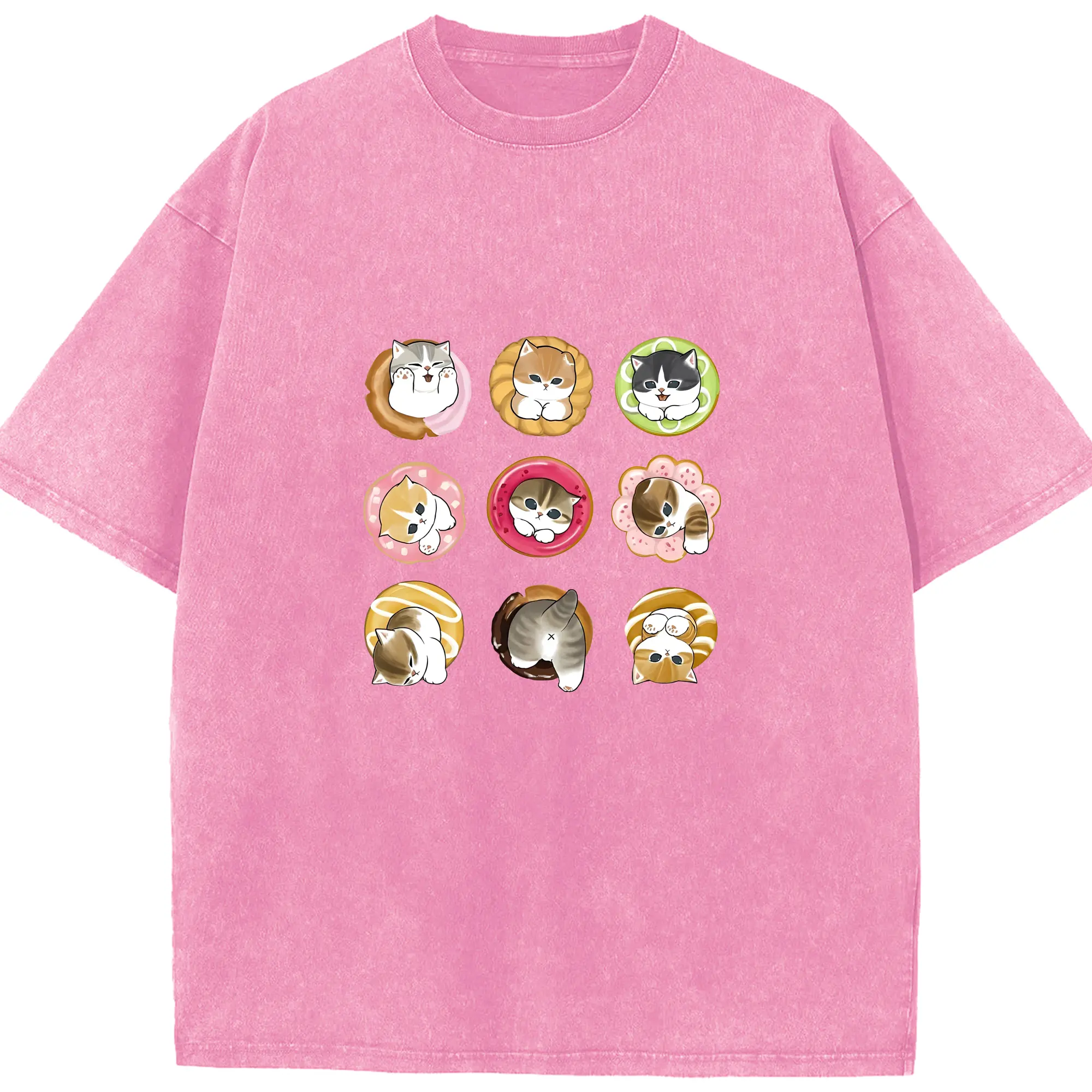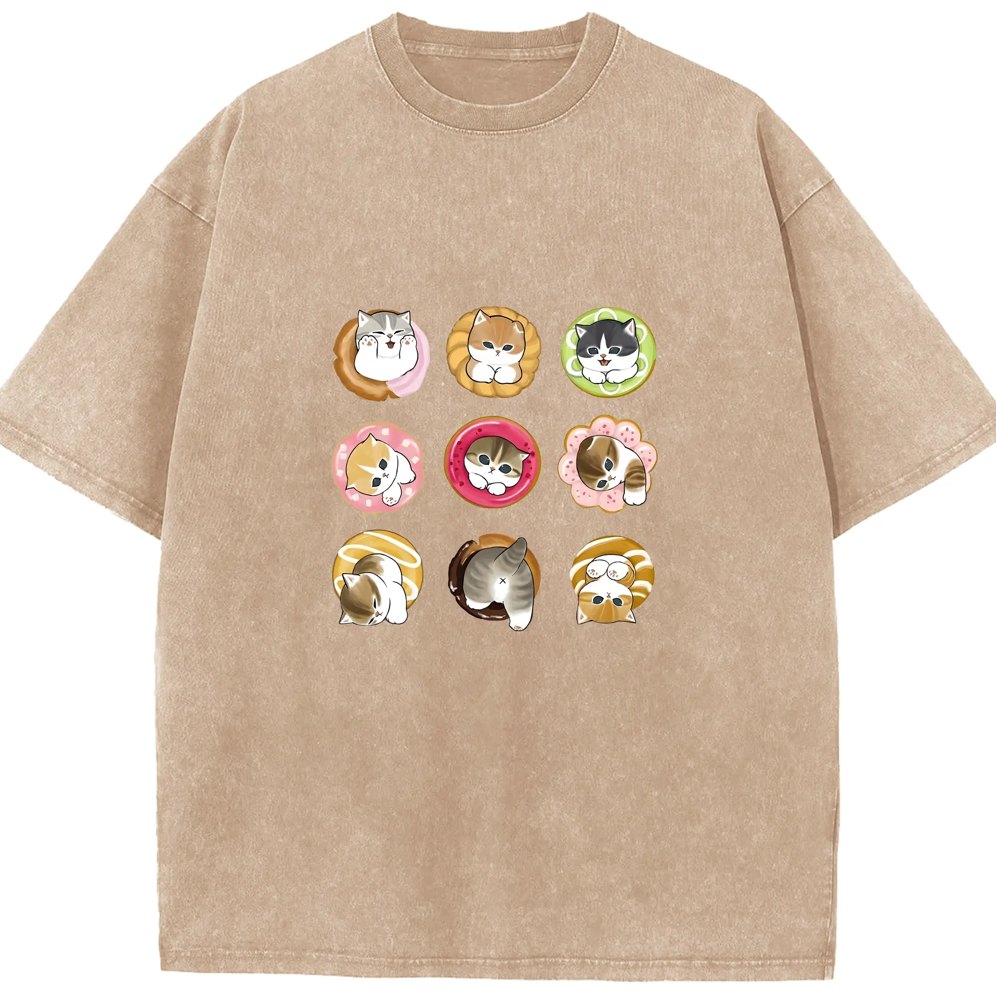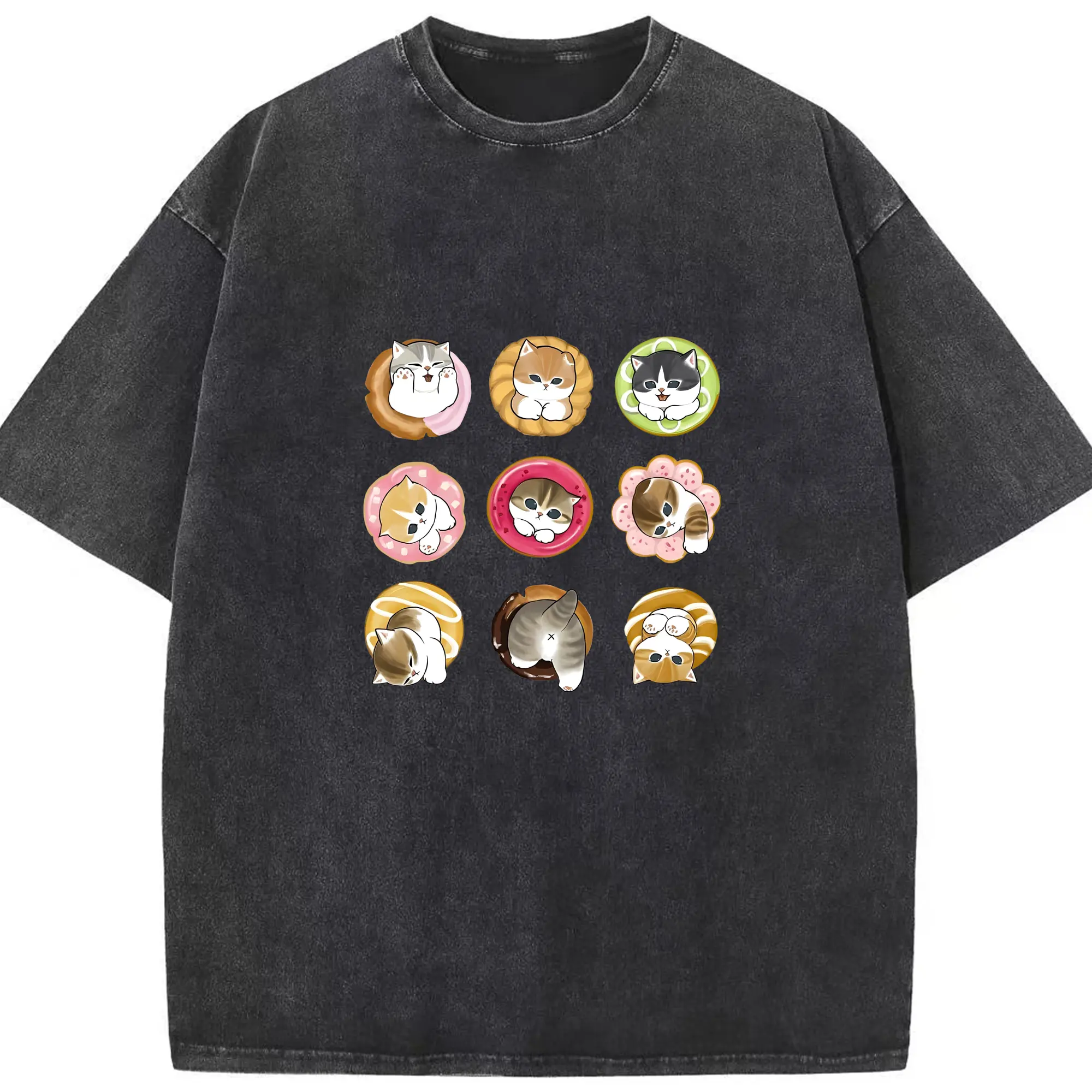 Mofusand ネコ×ドーナツ キャラクター 可愛いデザイン - 綿100% 半袖Tシャツ ・ フロントプリント ・ 快適 通気性 ・ 日常使い 散歩 スポーツ用