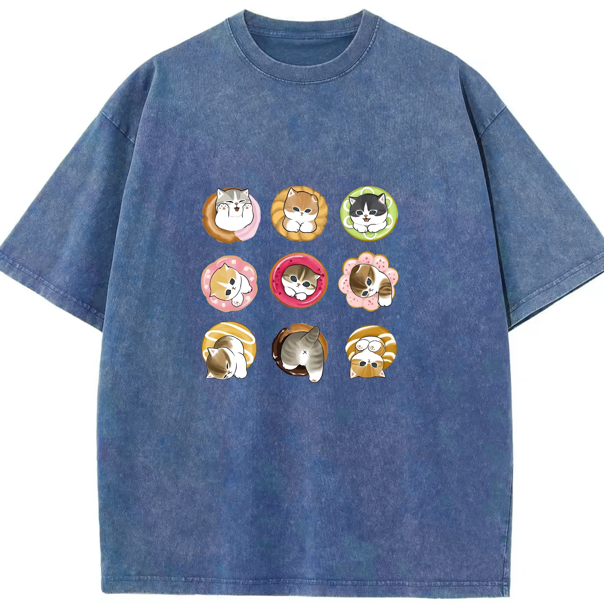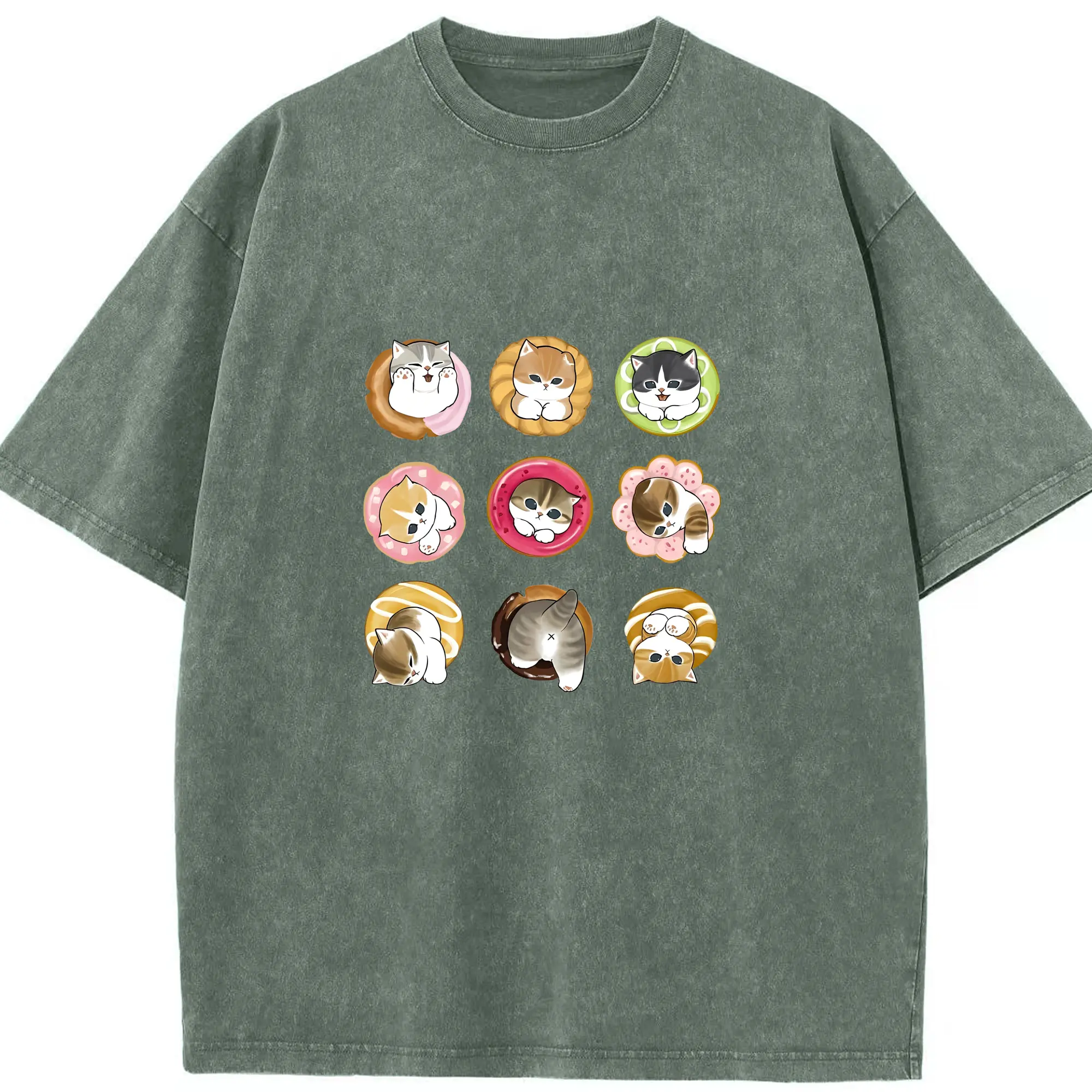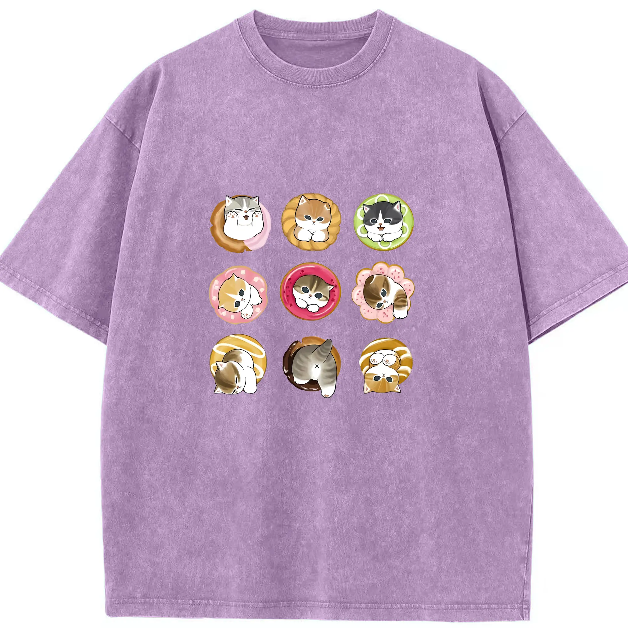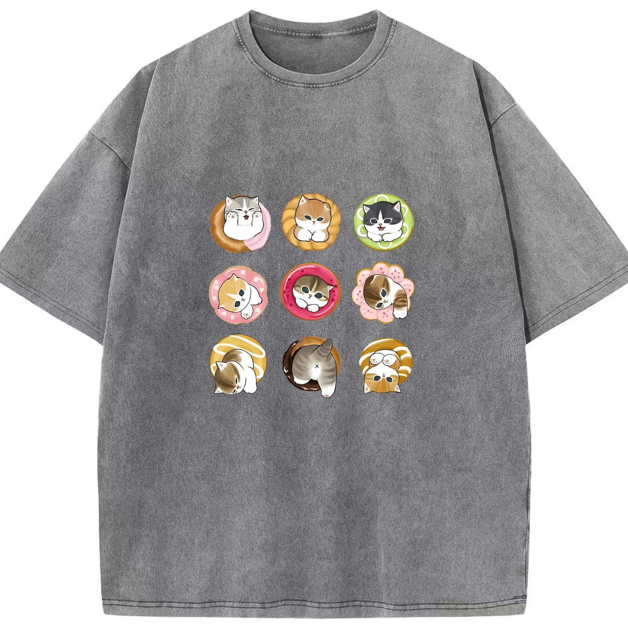 Mofusand ネコ×ドーナツ キャラクター 可愛いデザイン - 綿100% 半袖Tシャツ ・ フロントプリント ・ 快適 通気性 ・ 日常使い 散歩 スポーツ用