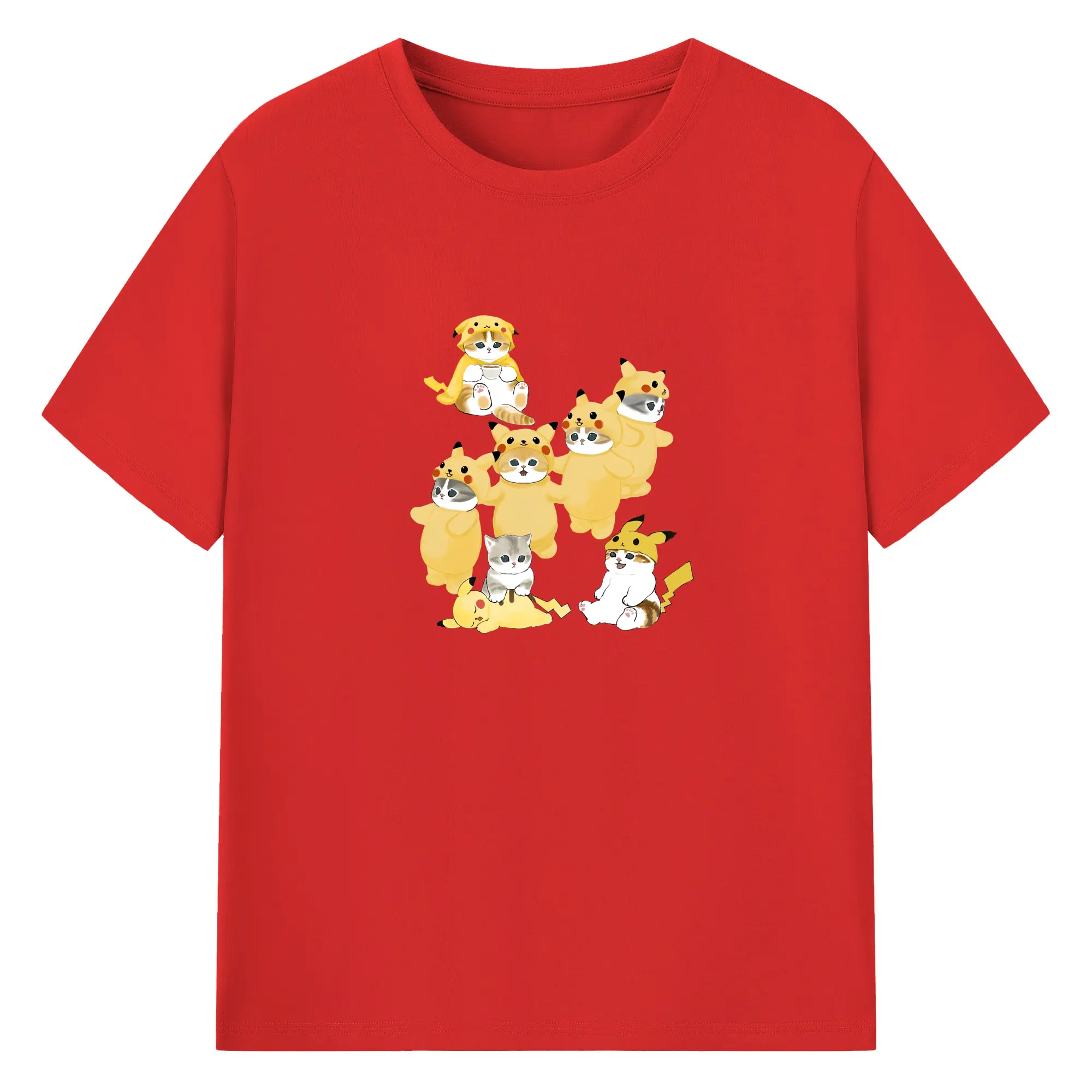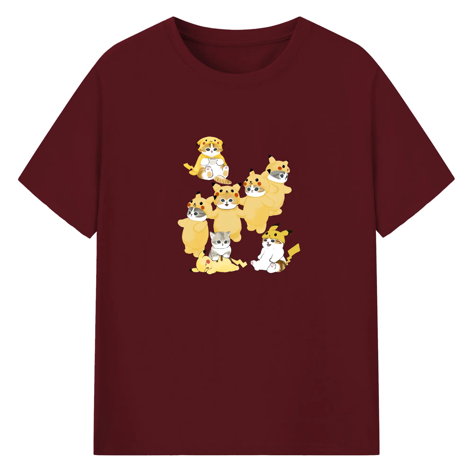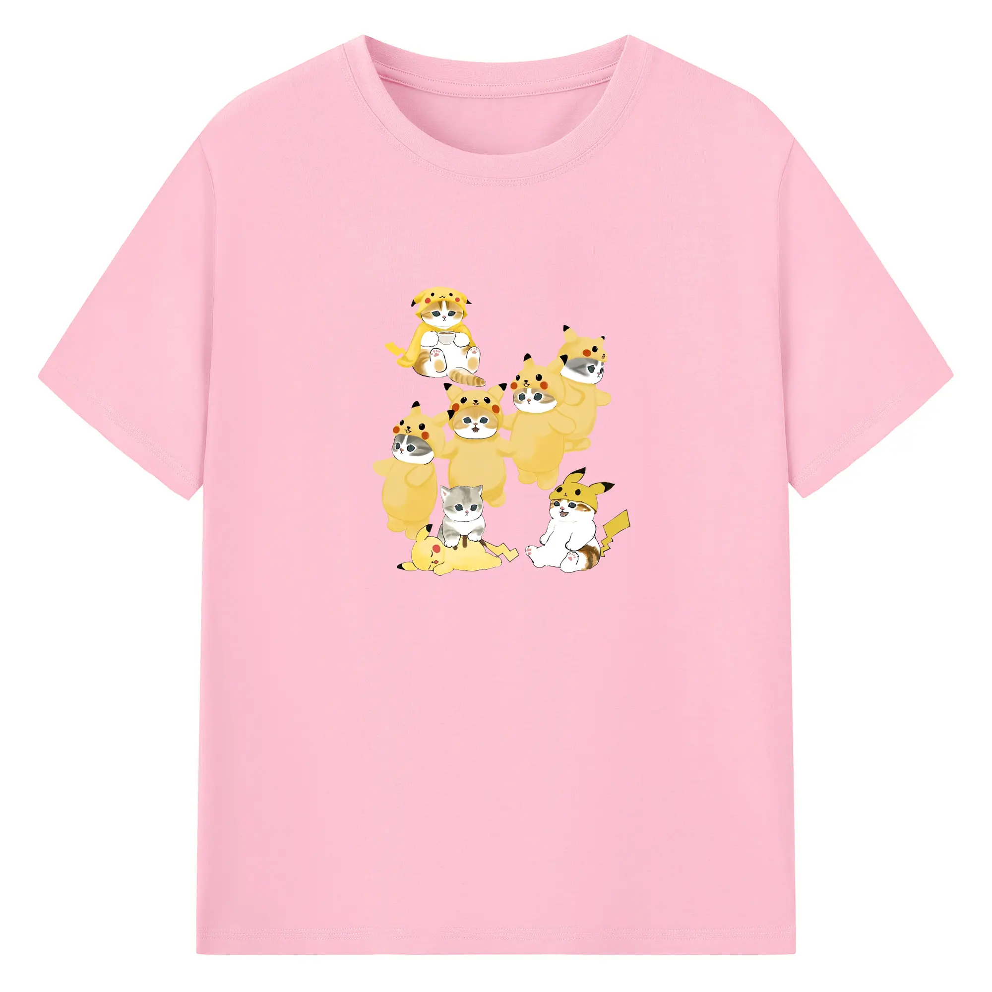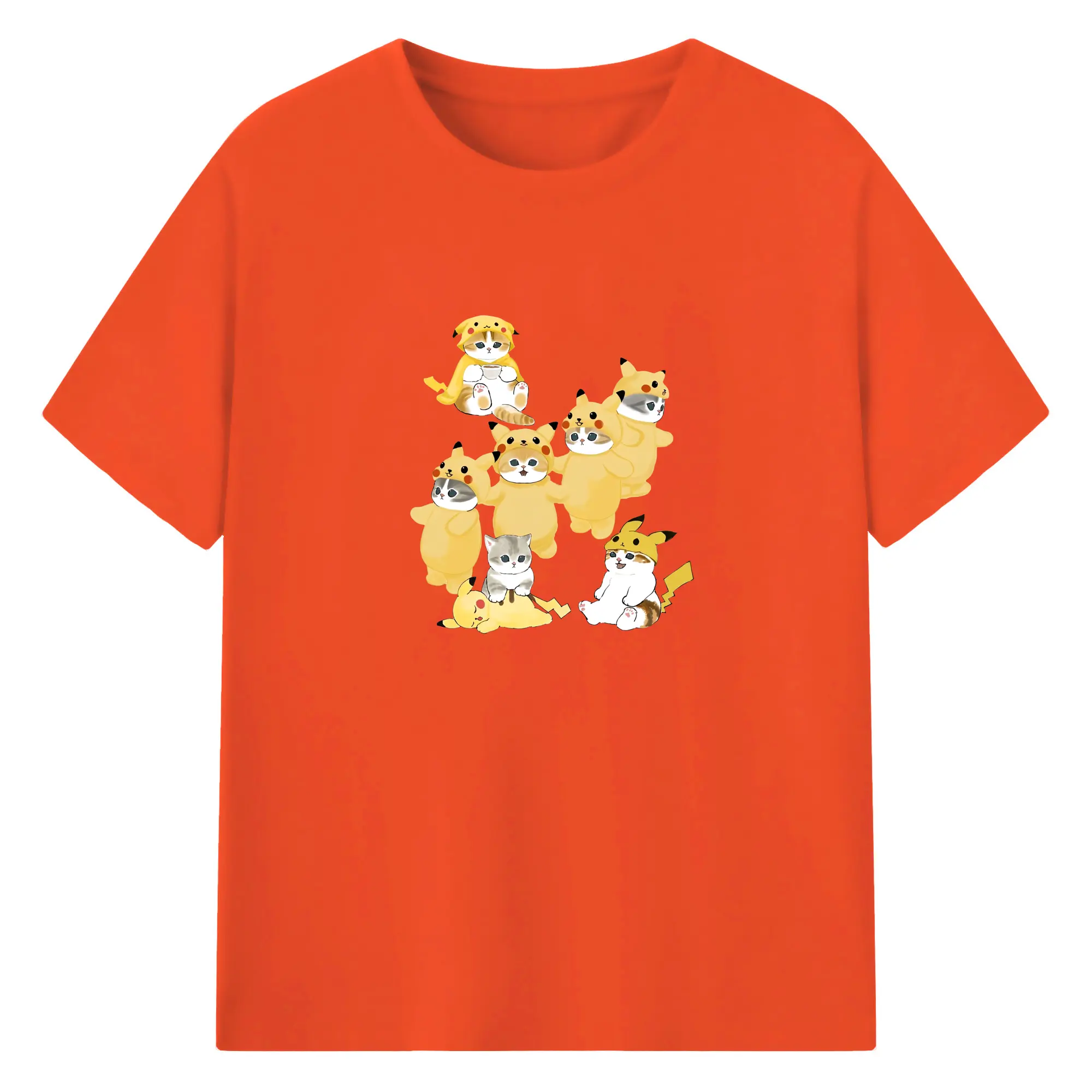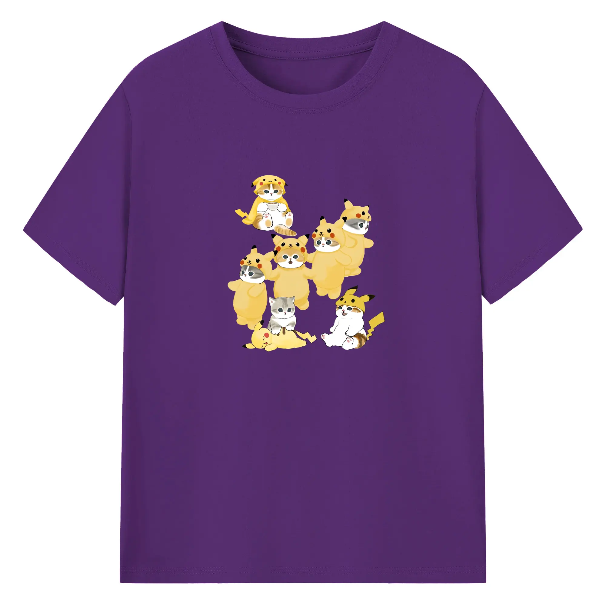 Mofusand × ピカチュウ コラ限定ボ - 綿100% ヴィンテージ風 半袖Tシャツ ・ フロントプリント ・ 柔らか肌触り ・ 通気性 快適 ・ スポーツ カジュアル 外出用
