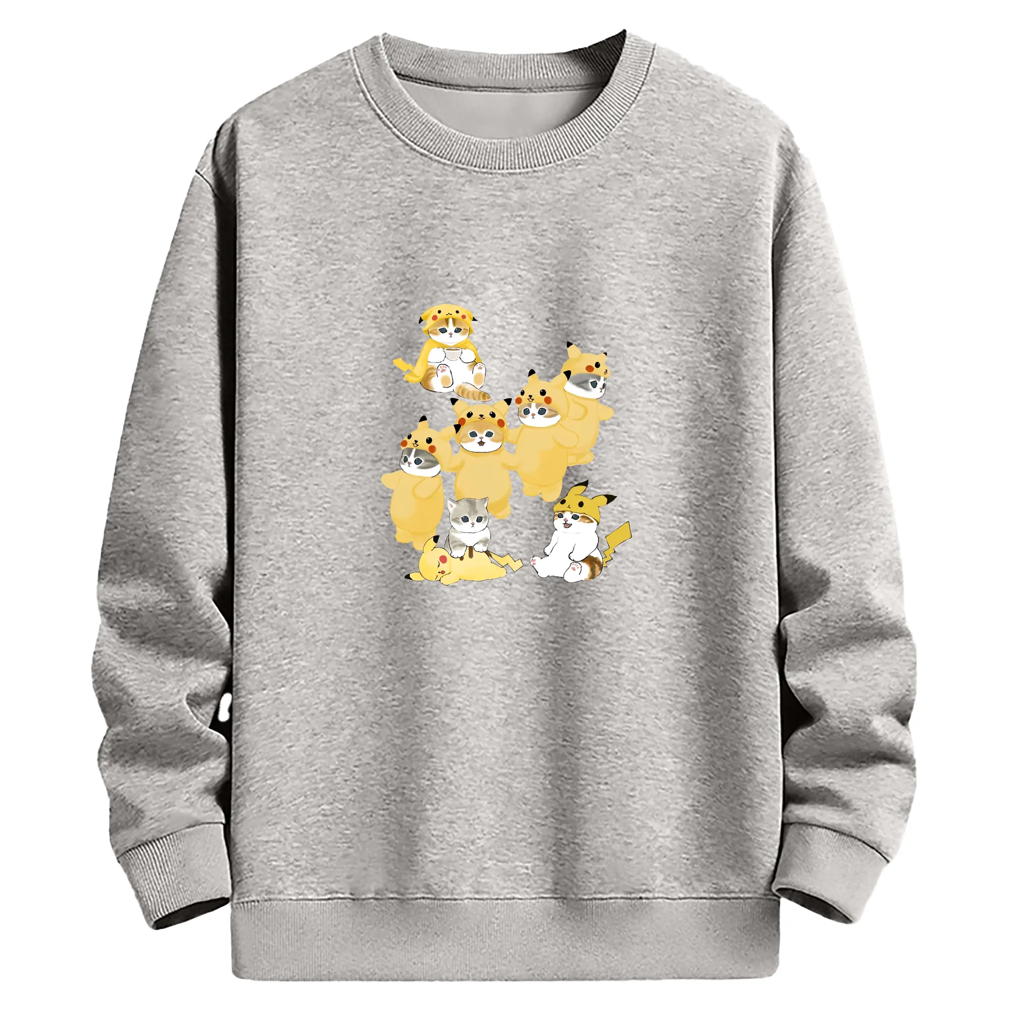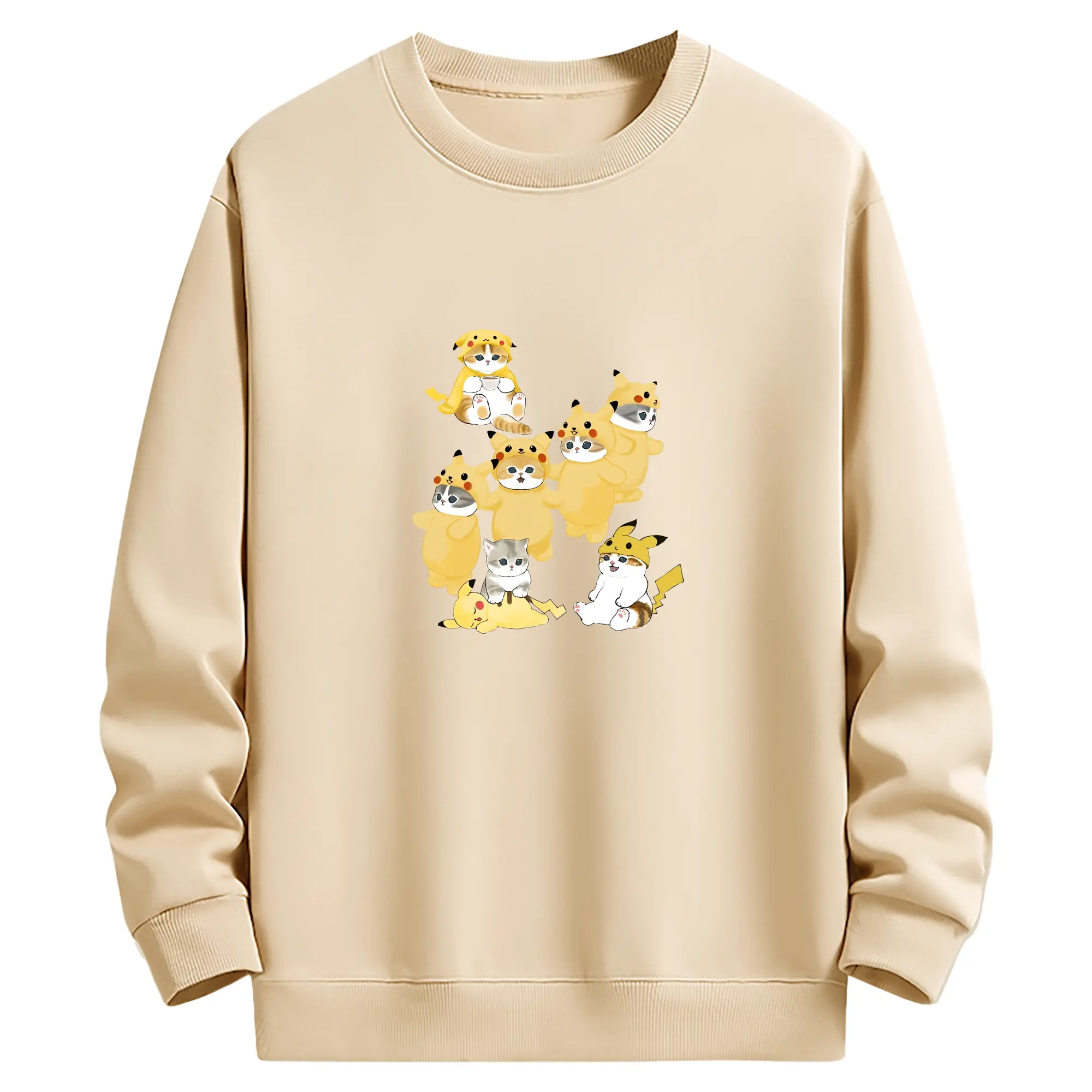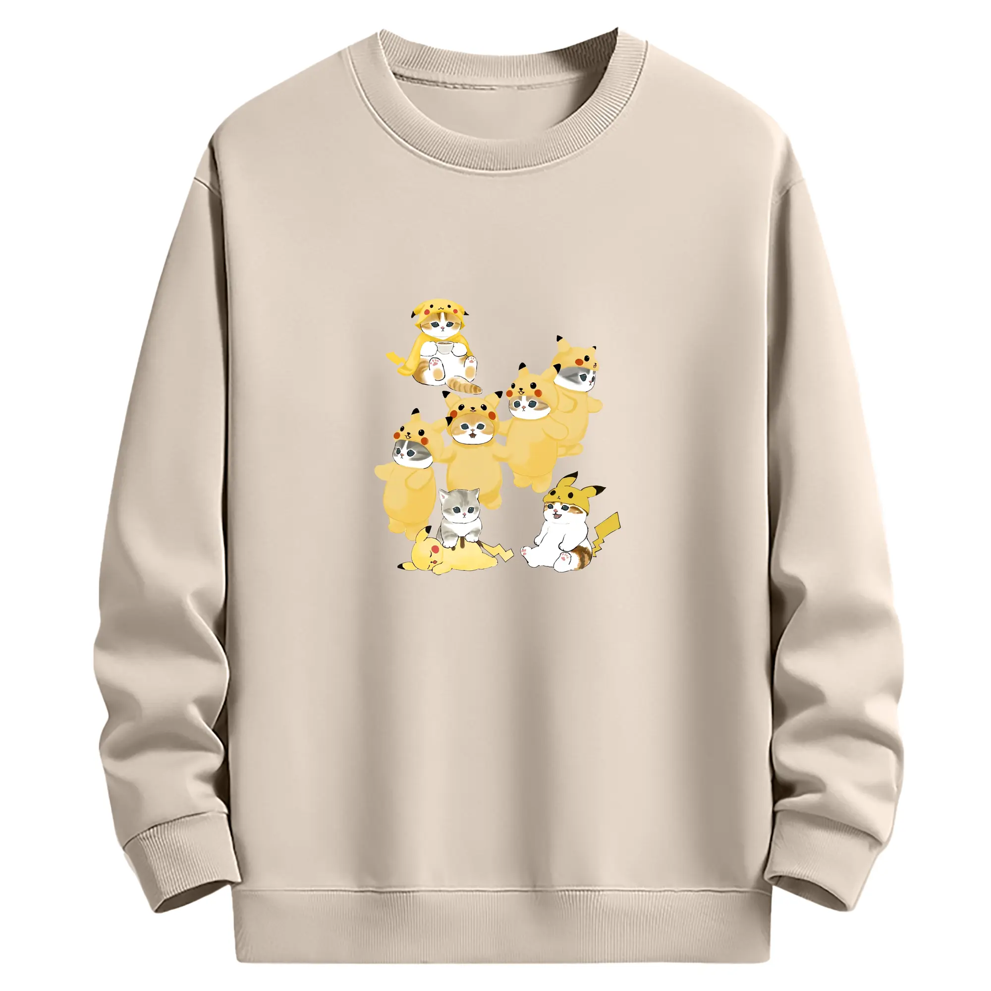 Mofusand × ピカチュウ コラ限定ボ - 綿100% ヴィンテージ風 半袖Tシャツ ・ フロントプリント ・ 柔らか肌触り ・ 通気性 快適 ・ スポーツ カジュアル 外出用
