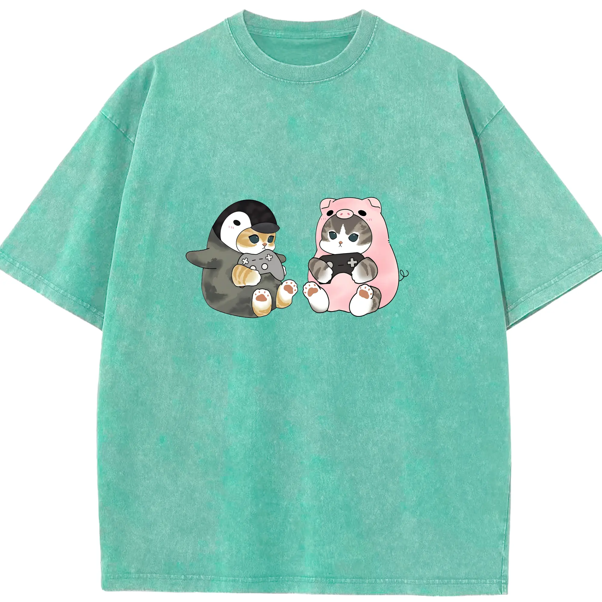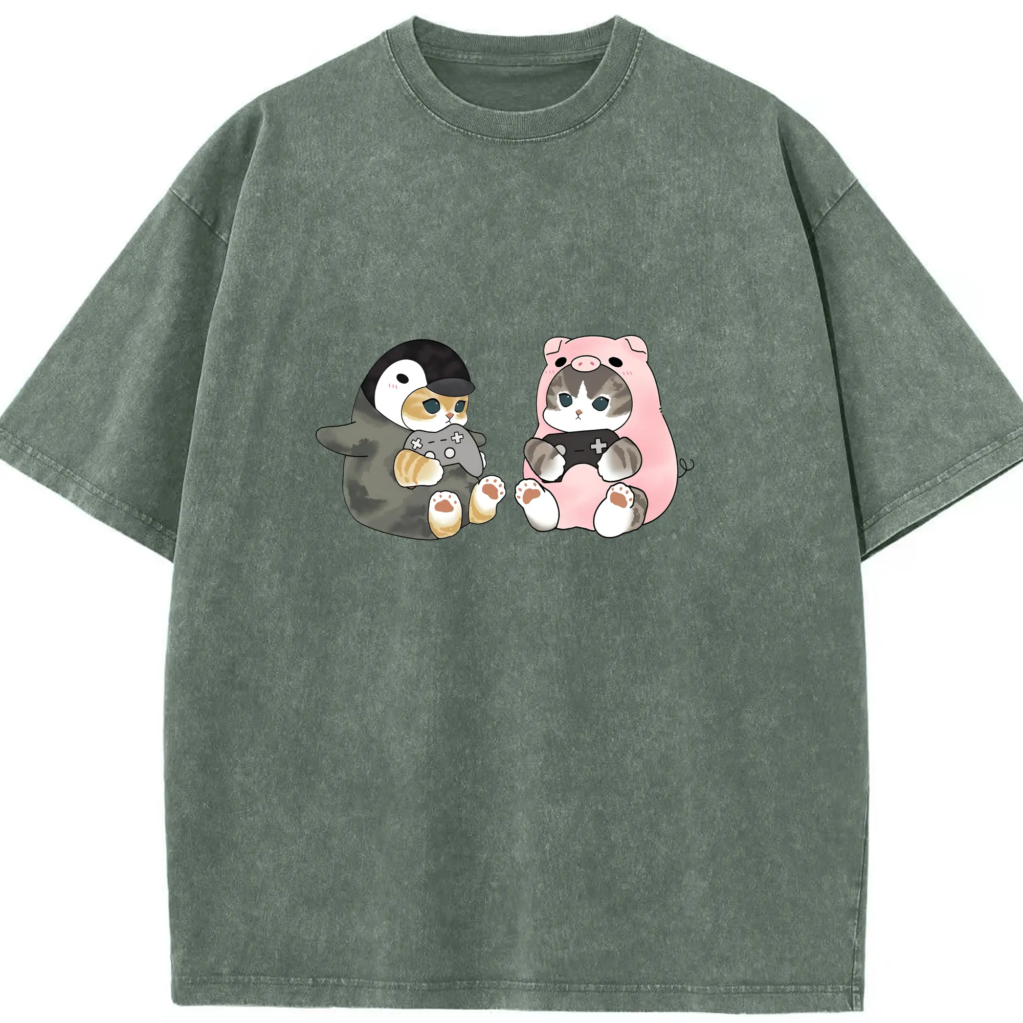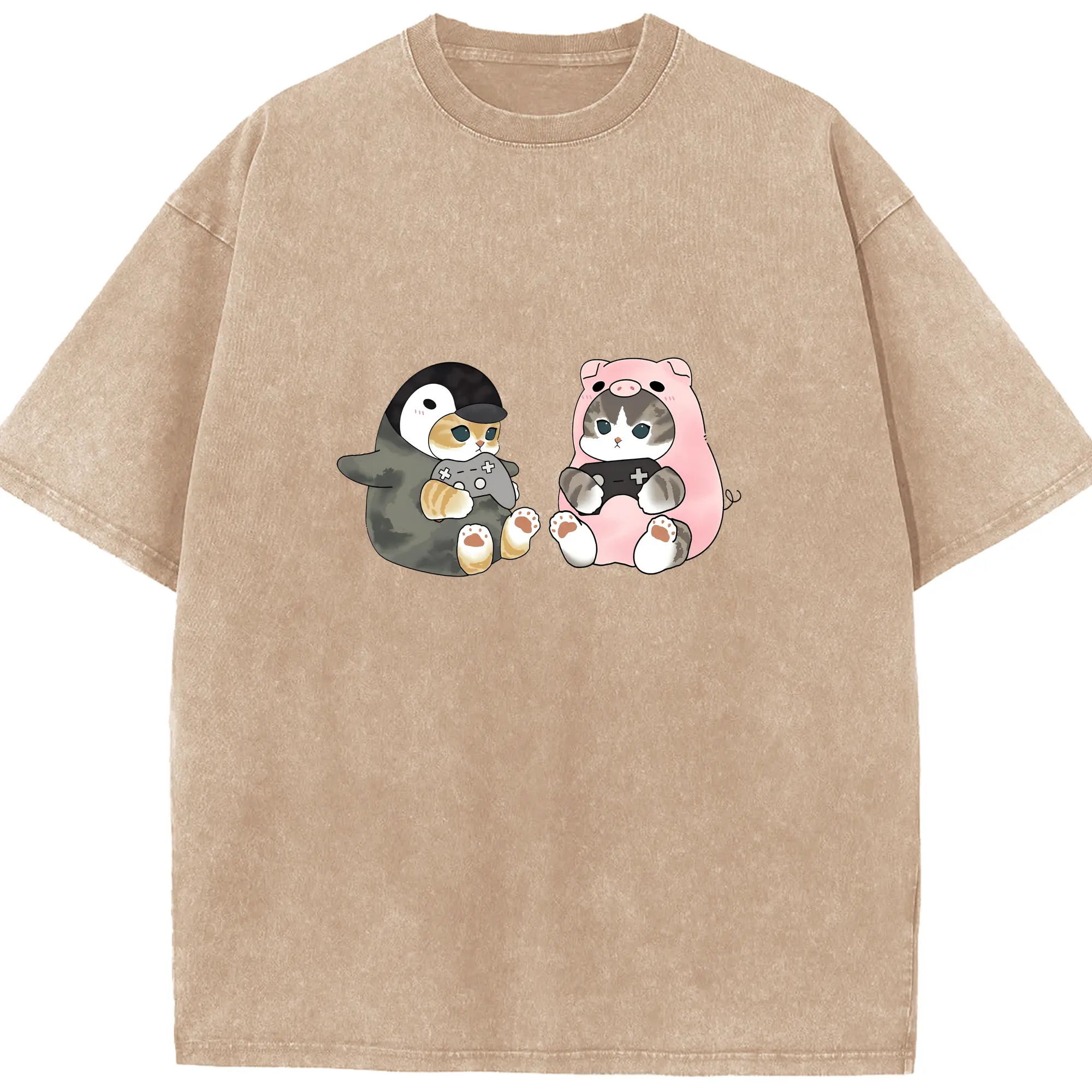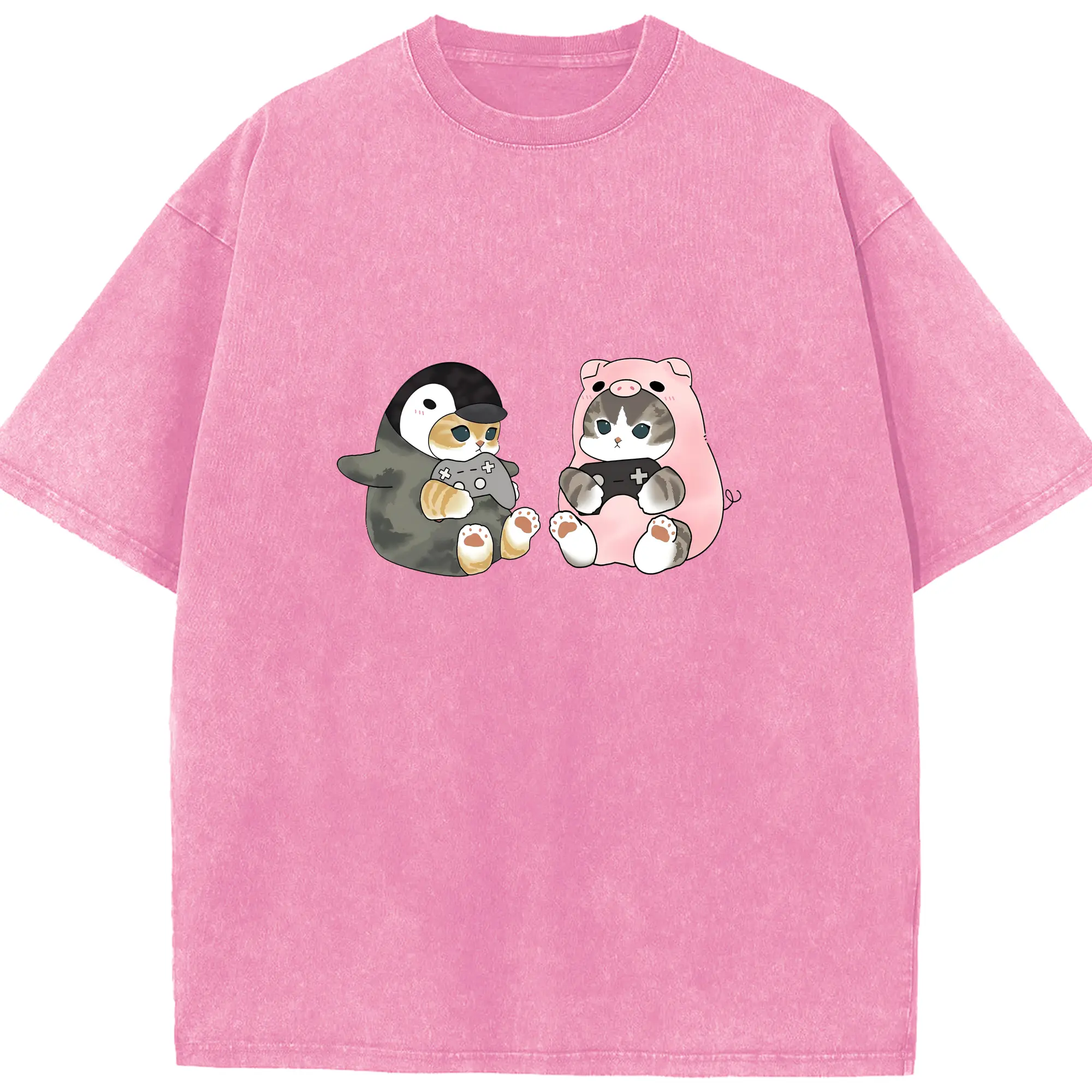Mofusand ペンギンブタ着ぐるみ 可愛いデザイン - 綿100% 半袖Tシャツ ・ フロントプリント ・ 快適 通気性 ・ 日常使い 散歩 スポーツ用