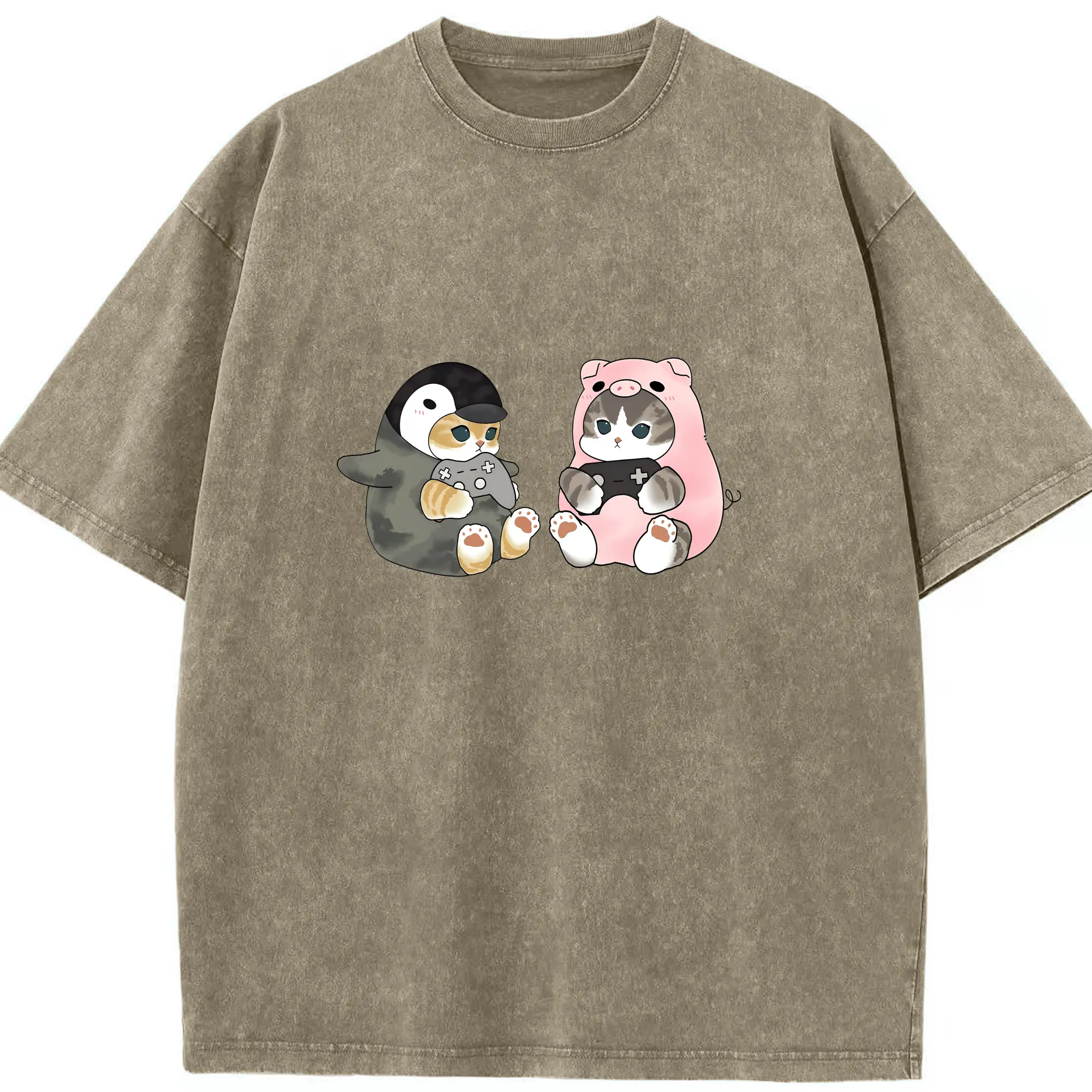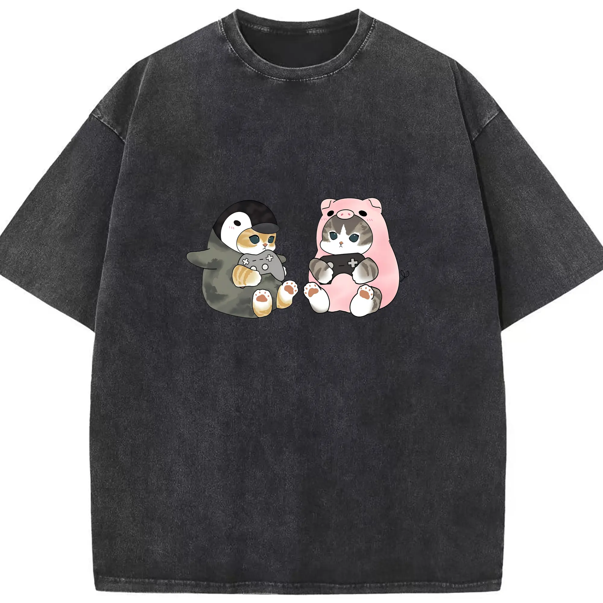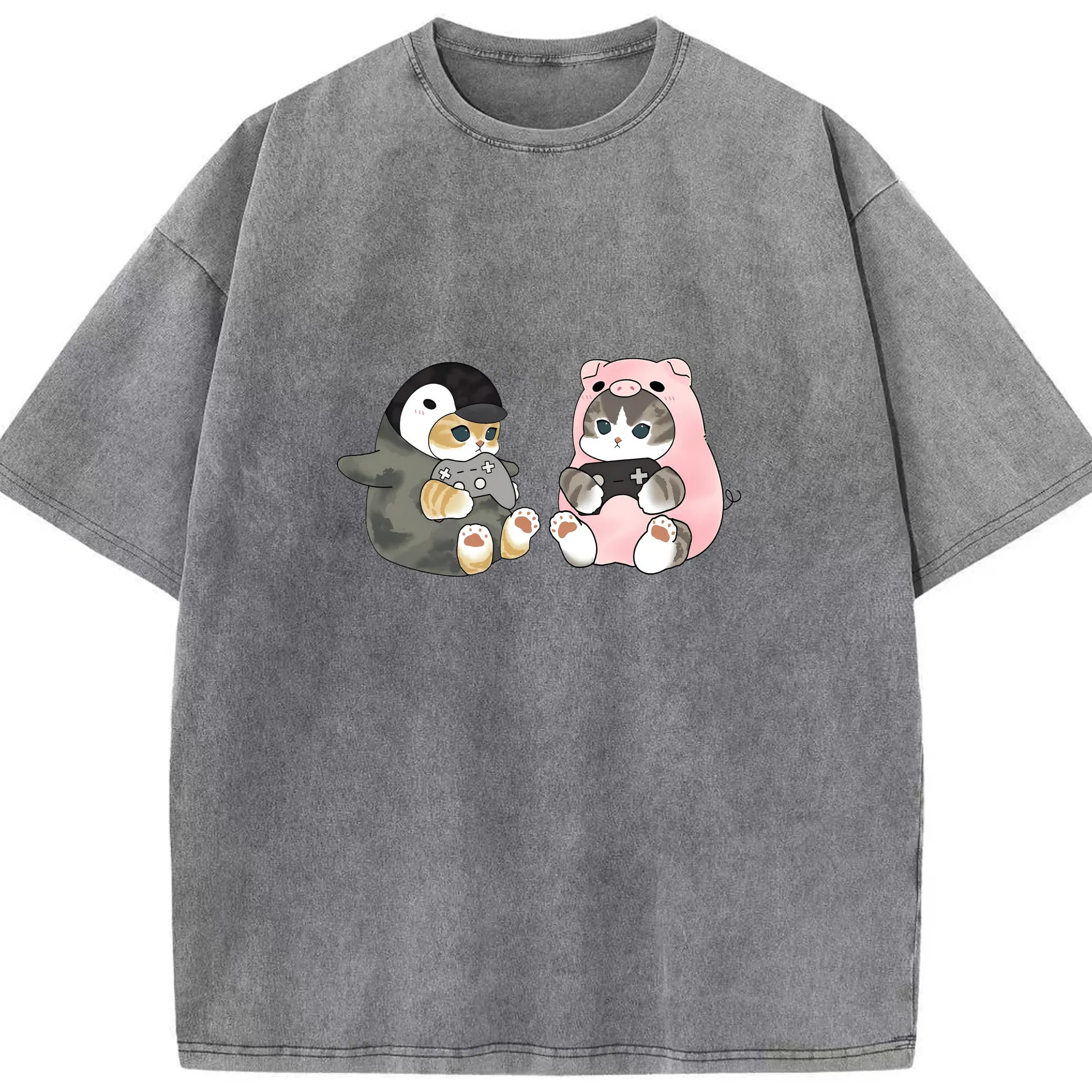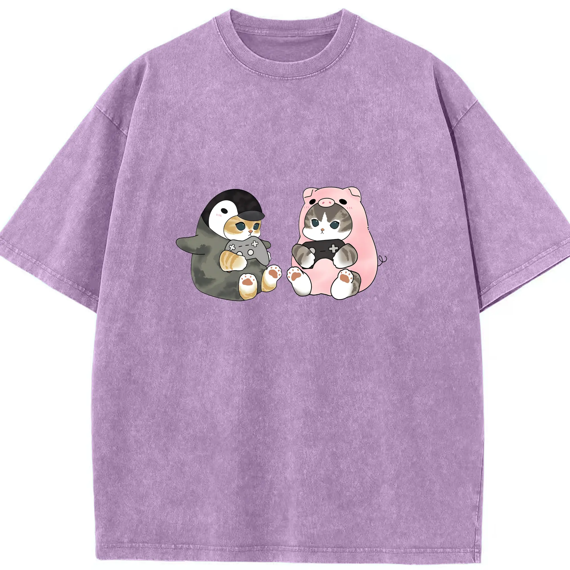Mofusand ペンギンブタ着ぐるみ 可愛いデザイン - 綿100% 半袖Tシャツ ・ フロントプリント ・ 快適 通気性 ・ 日常使い 散歩 スポーツ用