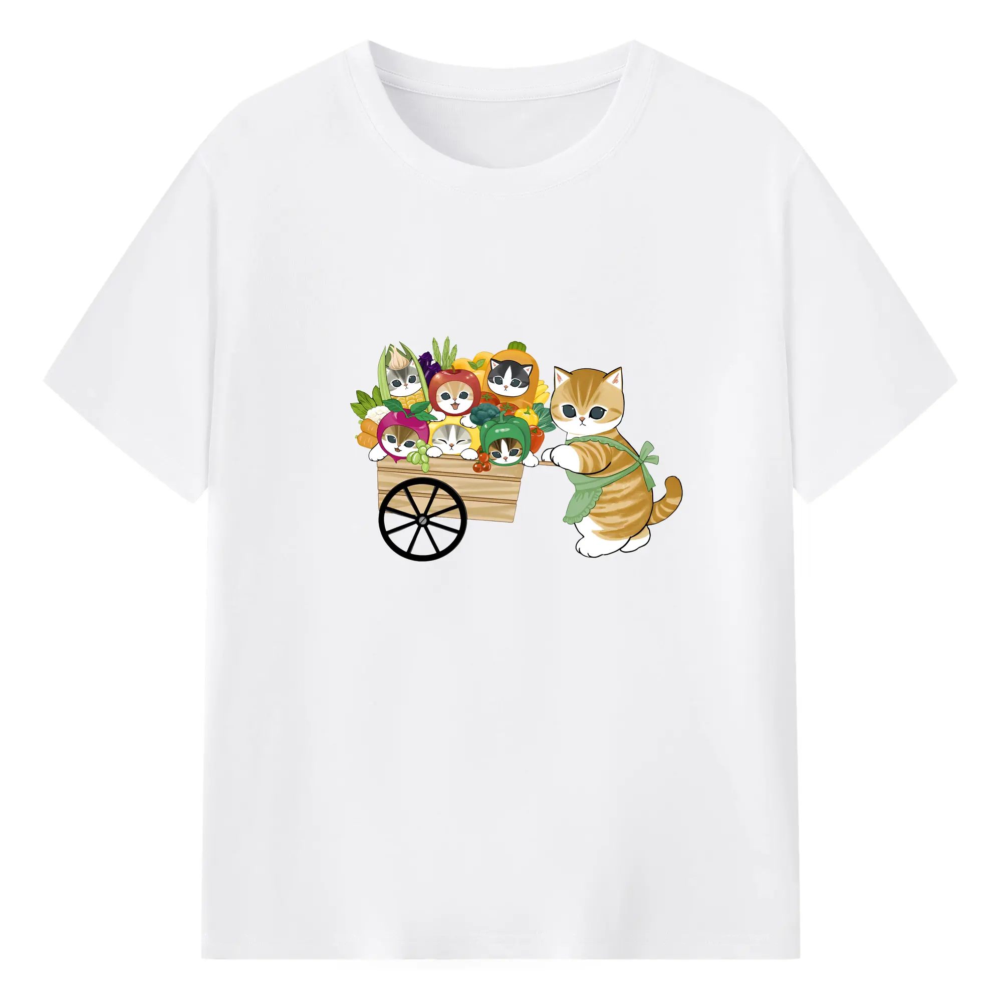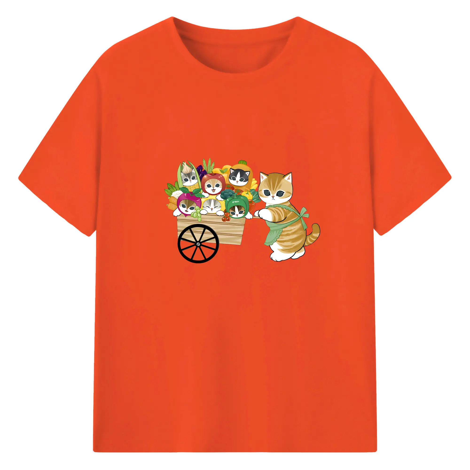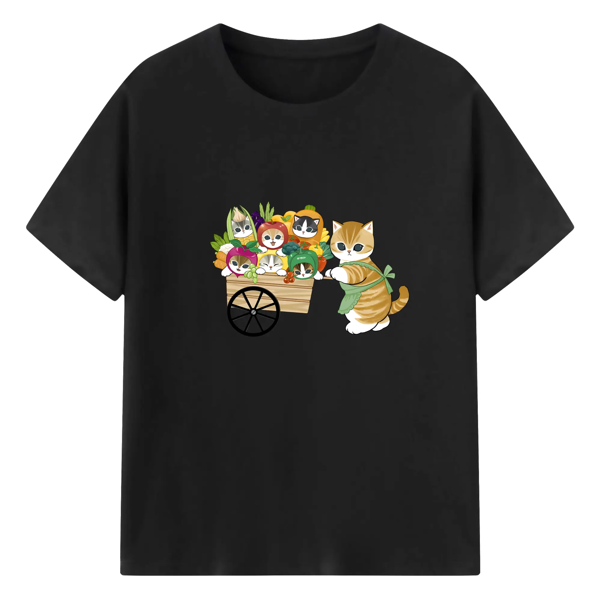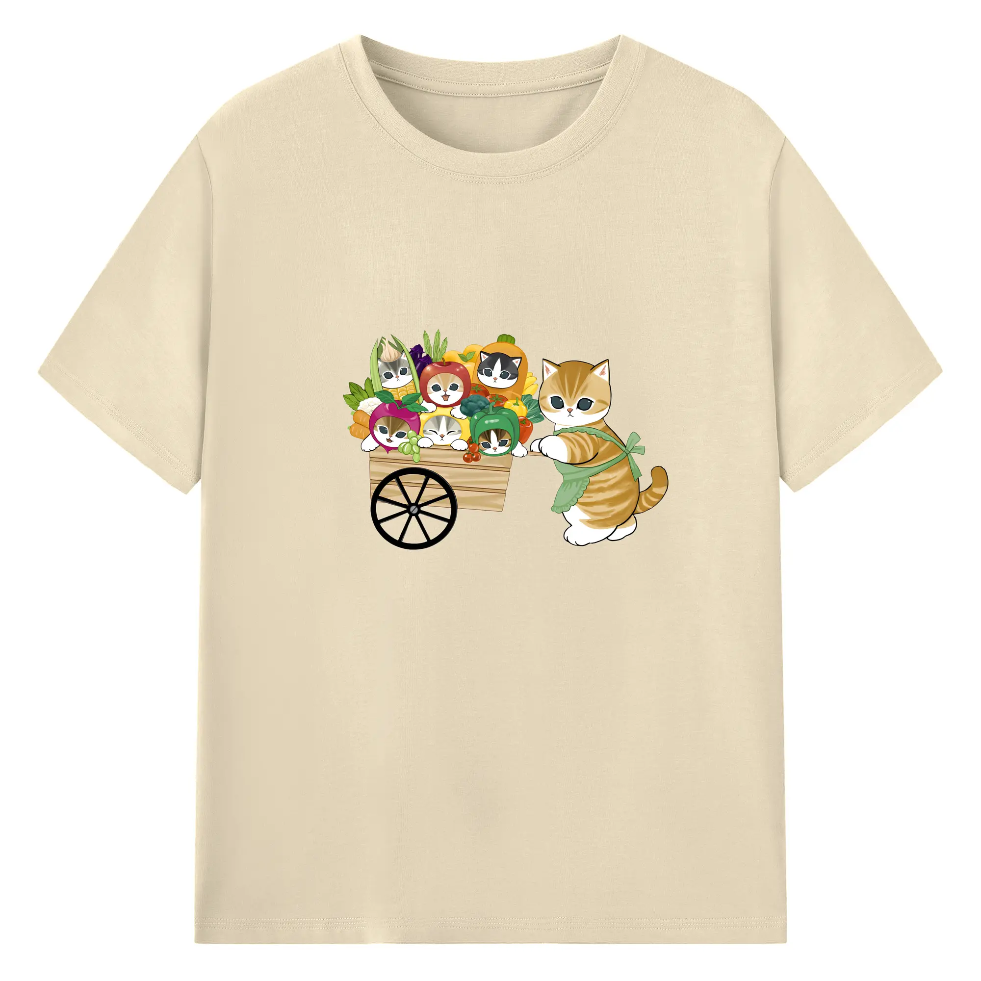 Mofusand 野菜ネコおもしろ&ユニークデザイン - 綿100% ヴィンテージ風 半袖Tシャツ ・ フロントプリント ・ 柔らか肌触り ・ 通気性 快適 ・ スポーツ カジュアル 外出用