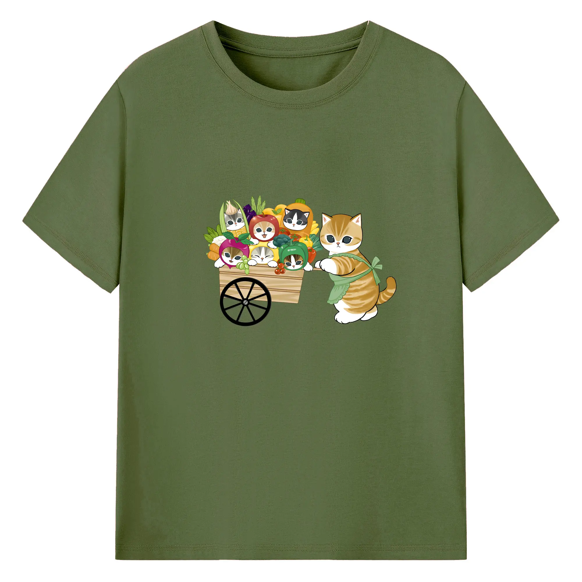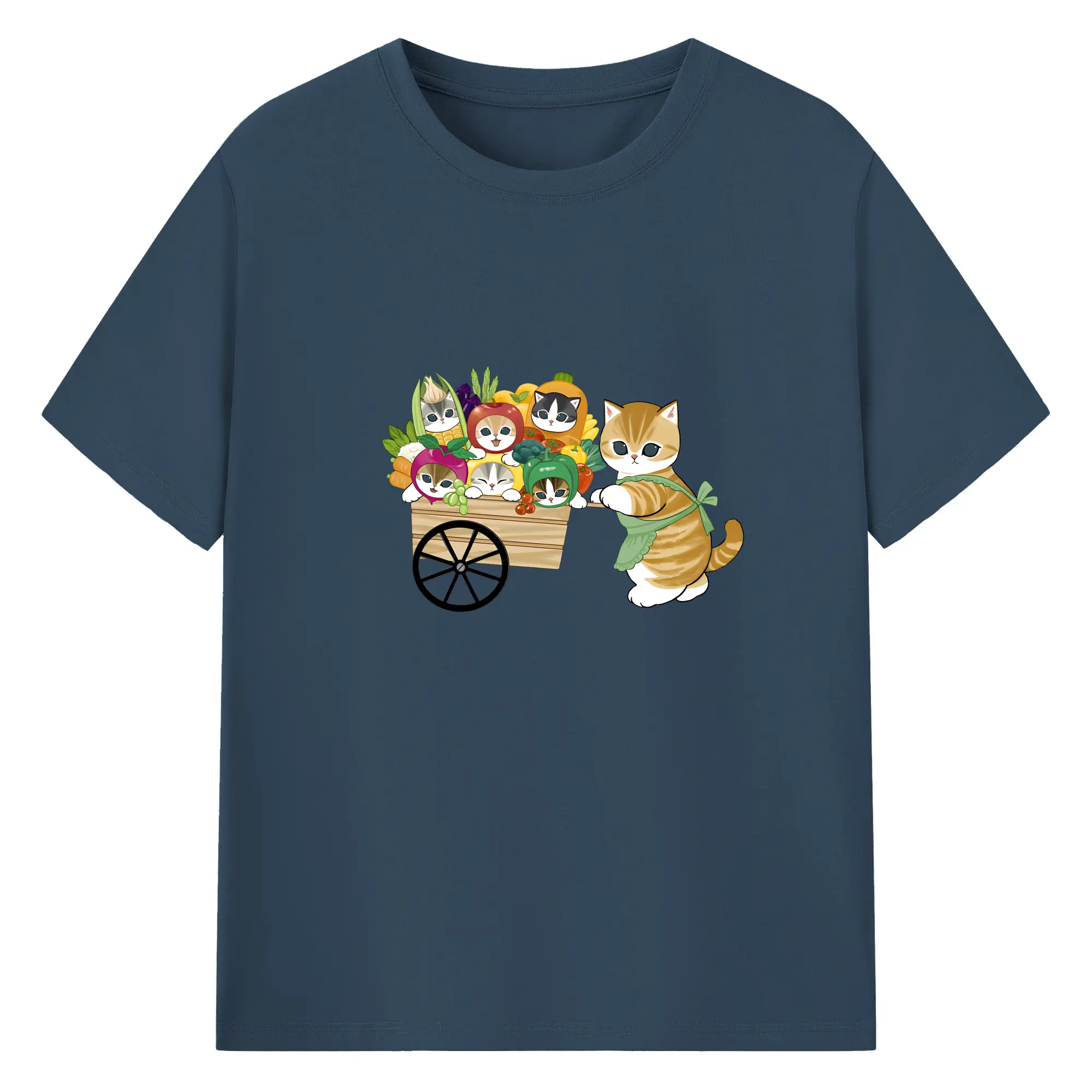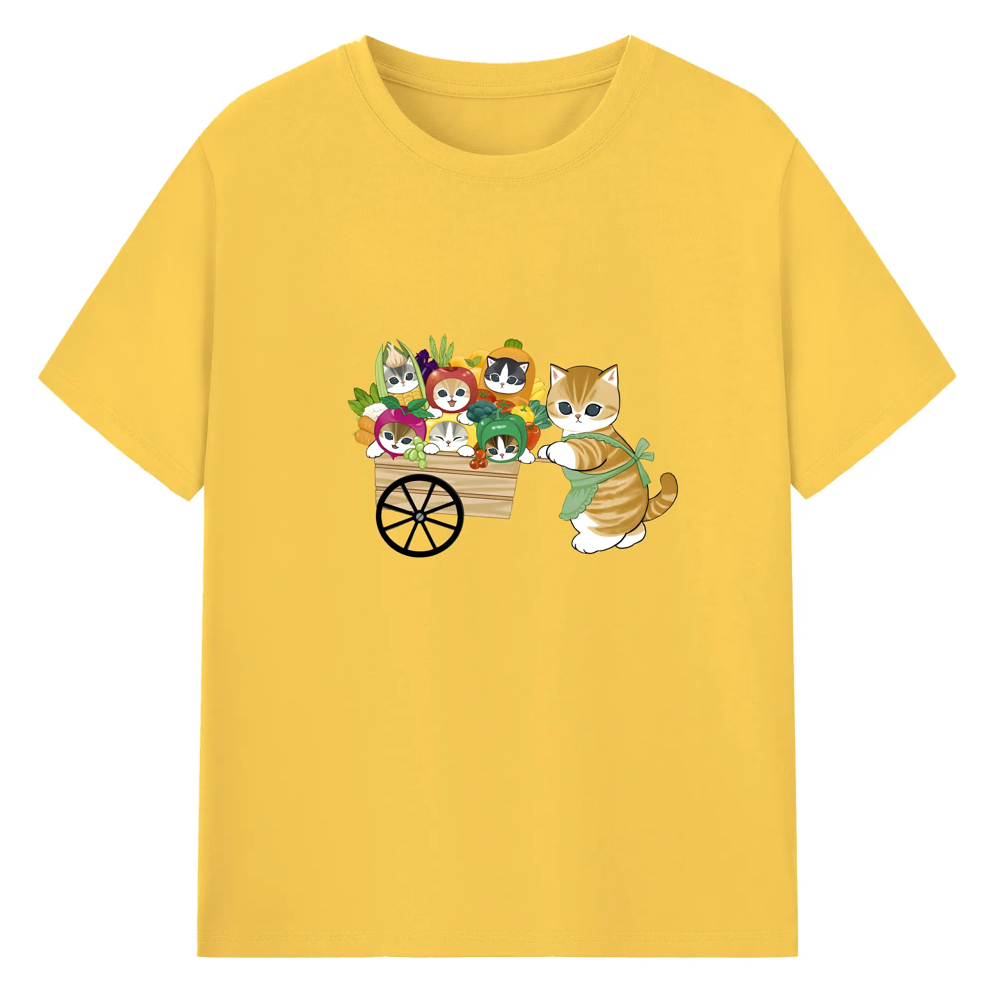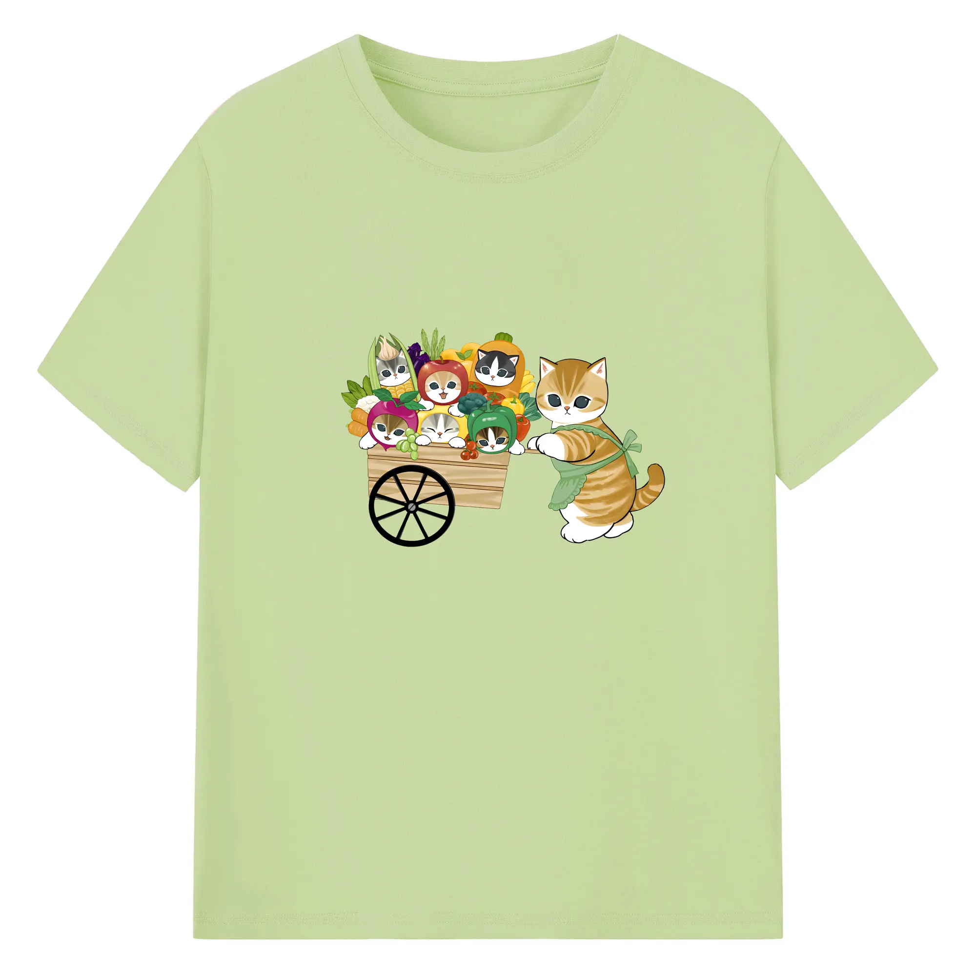 Mofusand 野菜ネコおもしろ&ユニークデザイン - 綿100% ヴィンテージ風 半袖Tシャツ ・ フロントプリント ・ 柔らか肌触り ・ 通気性 快適 ・ スポーツ カジュアル 外出用