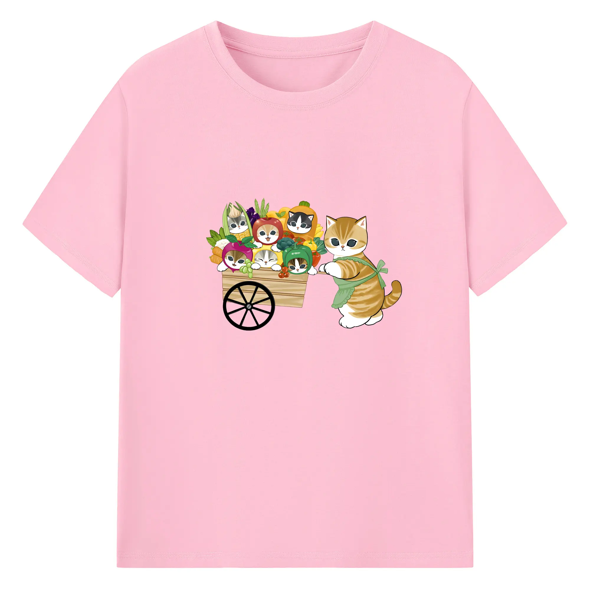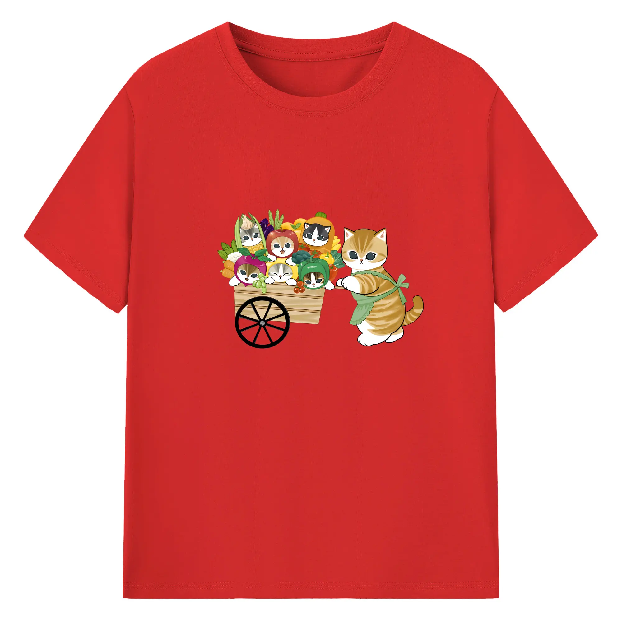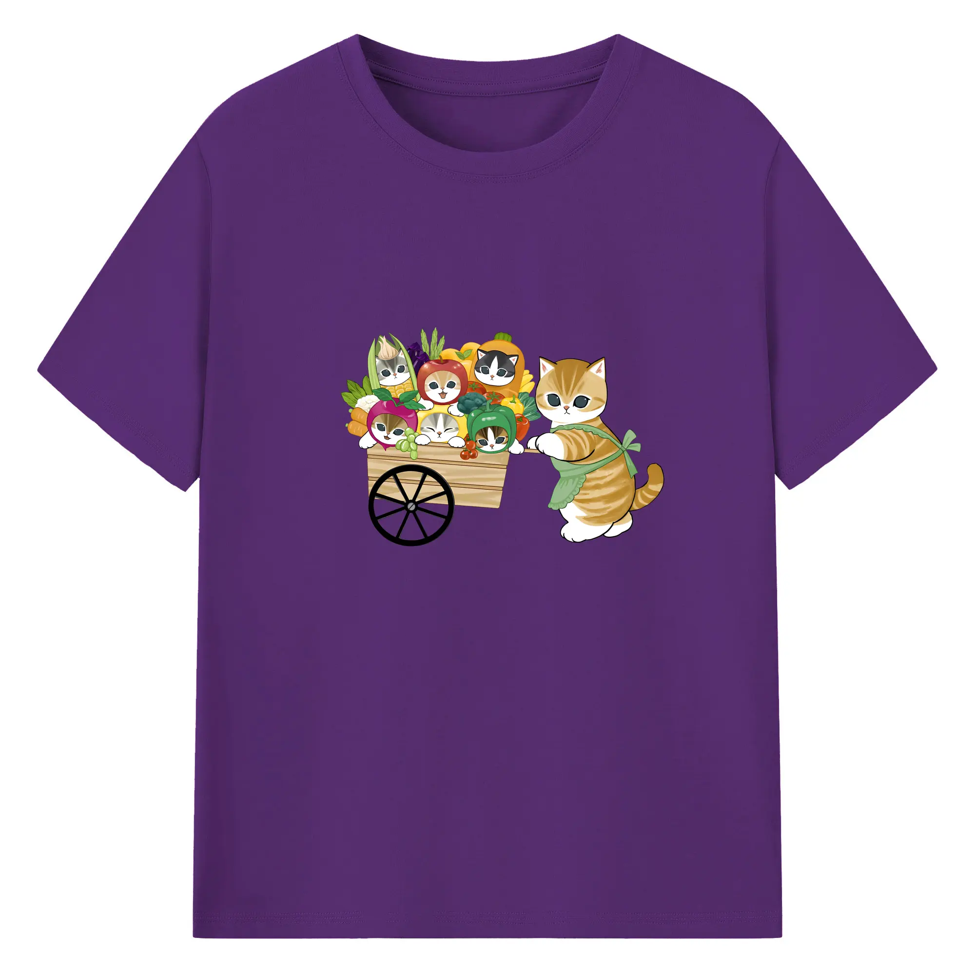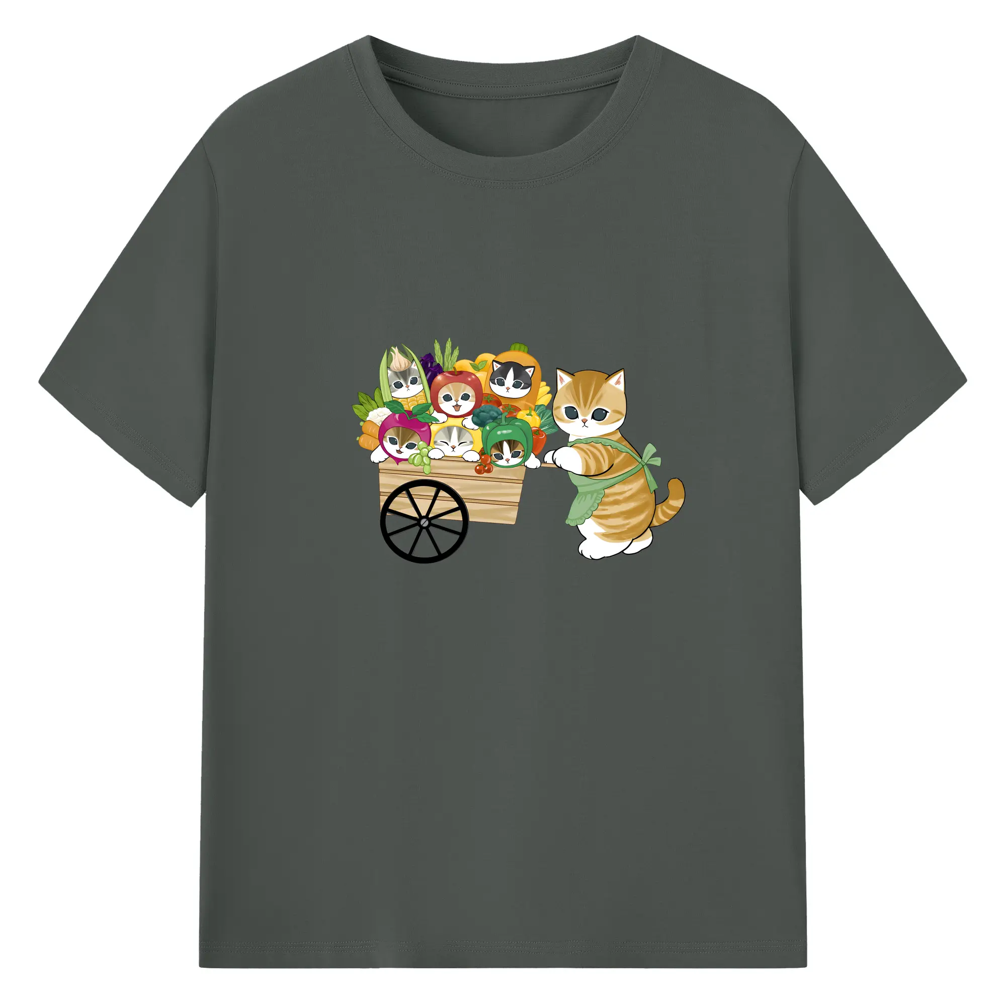 Mofusand 野菜ネコおもしろ&ユニークデザイン - 綿100% ヴィンテージ風 半袖Tシャツ ・ フロントプリント ・ 柔らか肌触り ・ 通気性 快適 ・ スポーツ カジュアル 外出用
