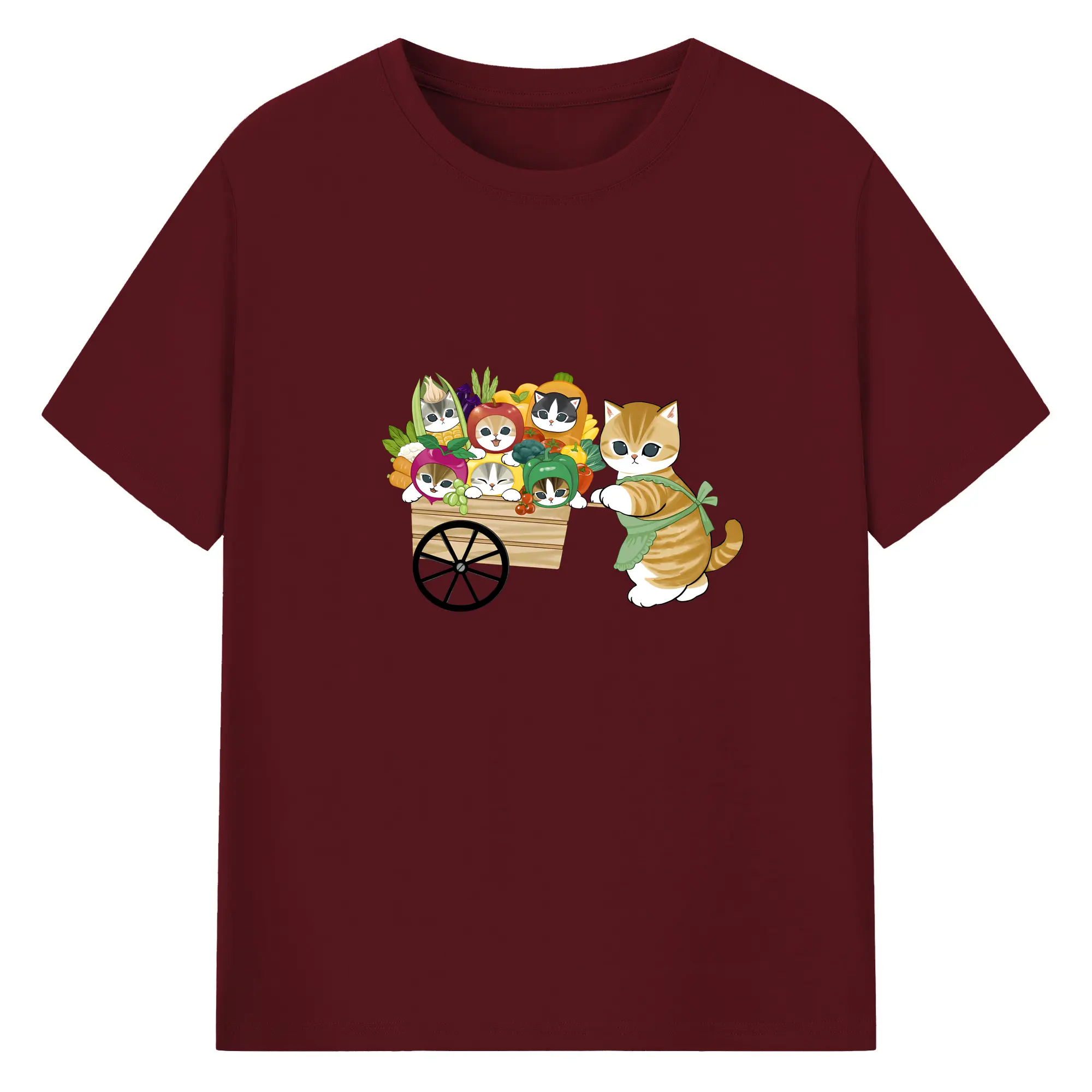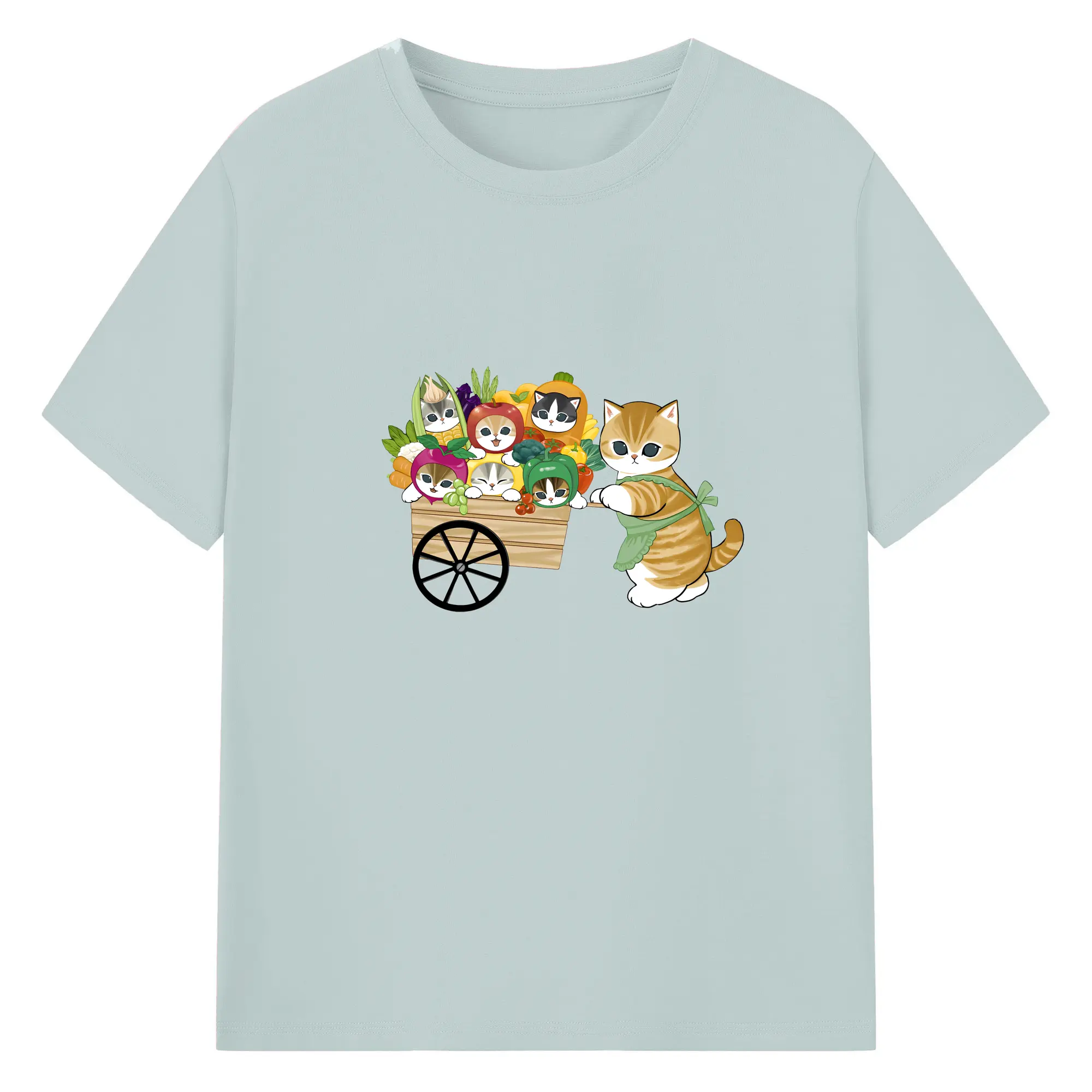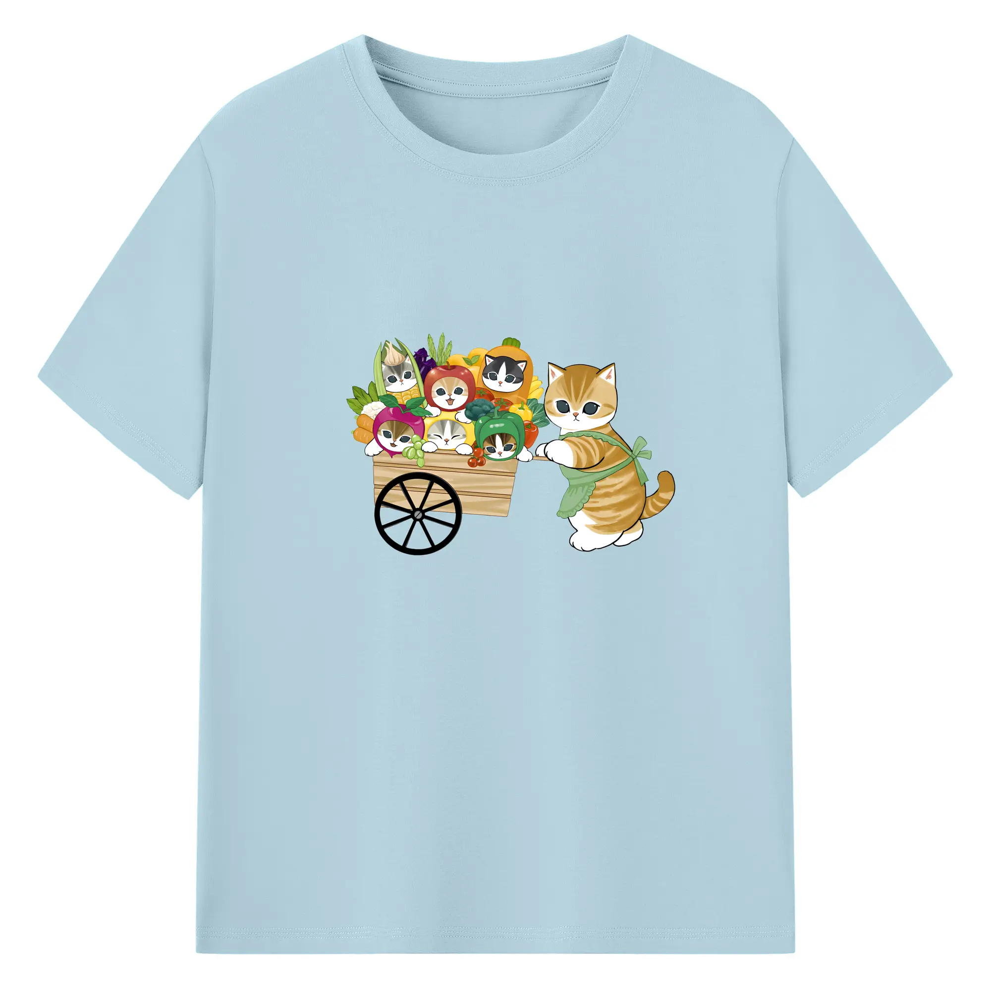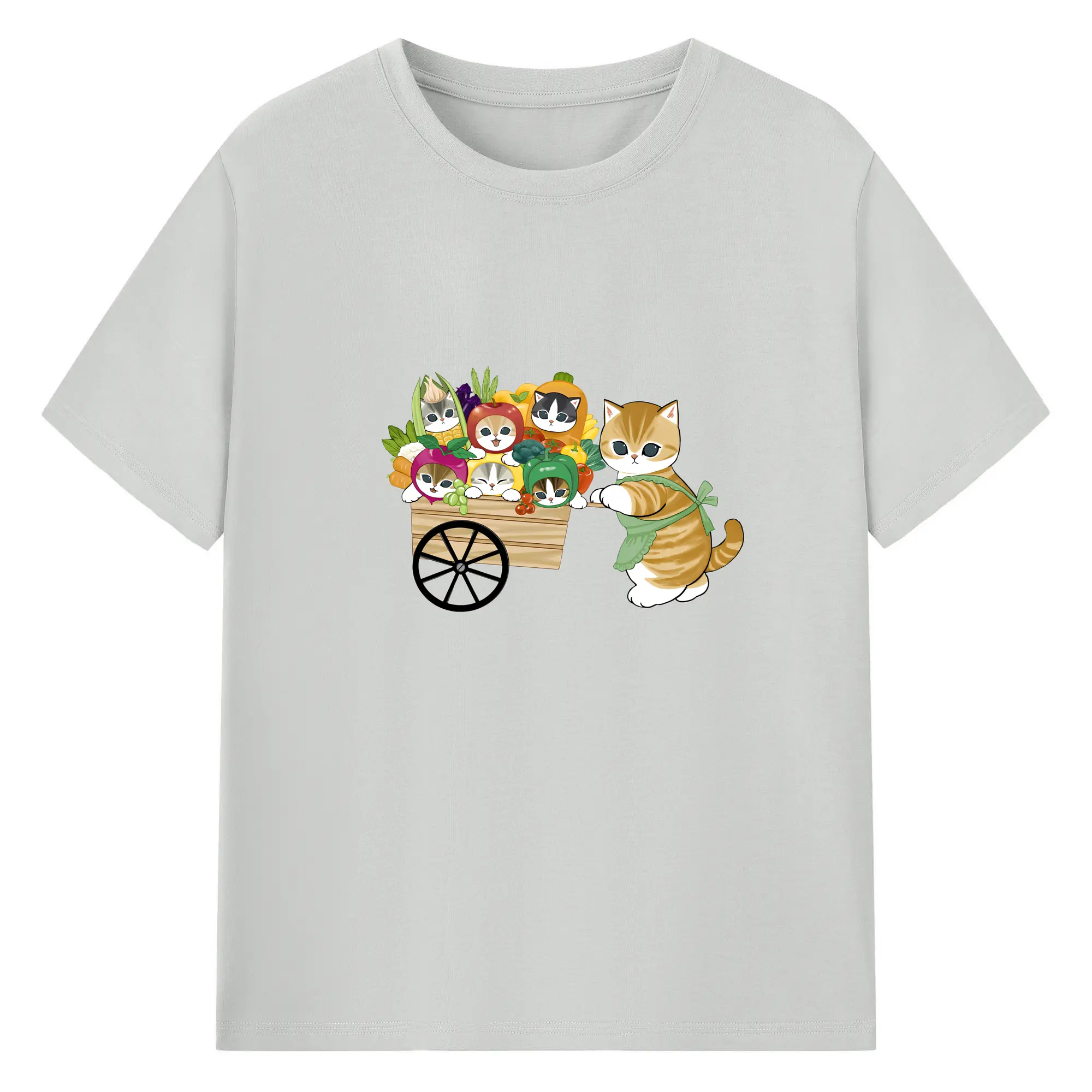 Mofusand 野菜ネコおもしろ&ユニークデザイン - 綿100% ヴィンテージ風 半袖Tシャツ ・ フロントプリント ・ 柔らか肌触り ・ 通気性 快適 ・ スポーツ カジュアル 外出用